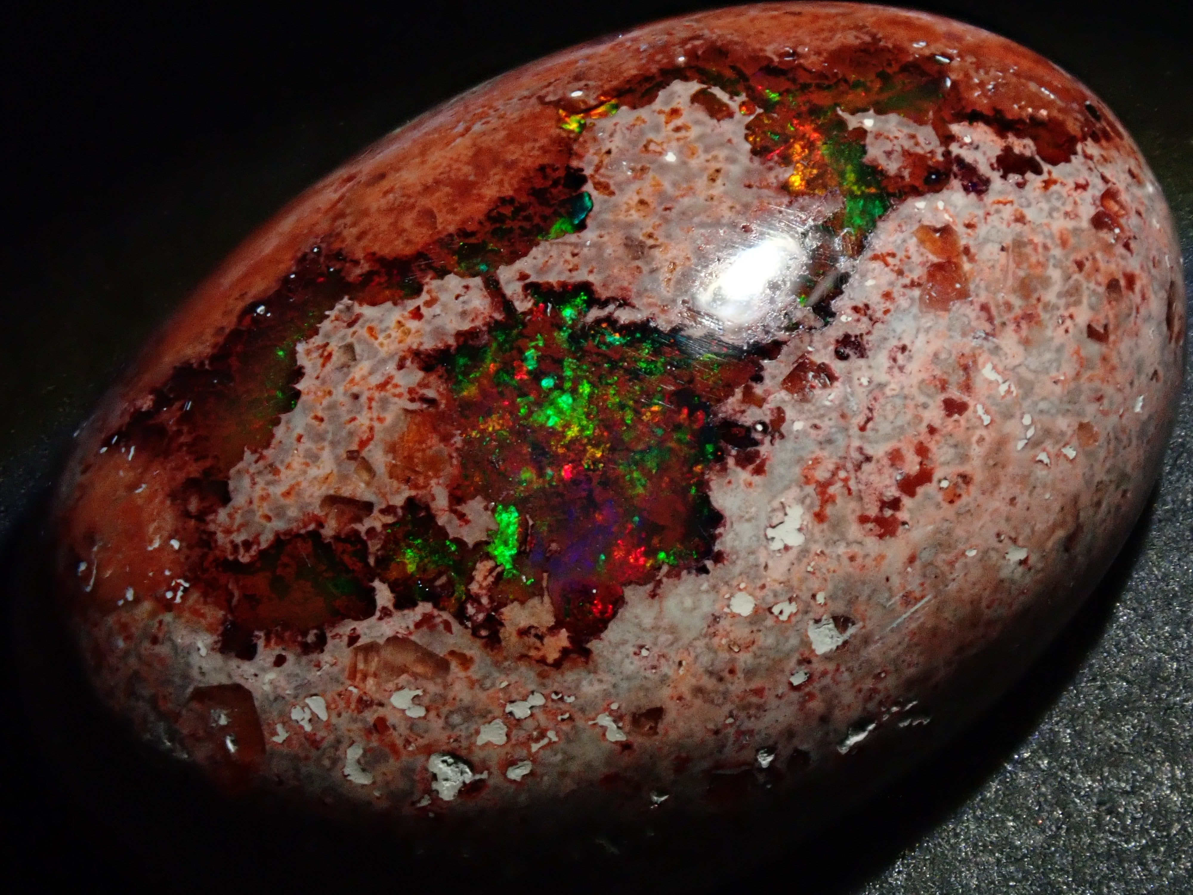 這是一顆重達 32 克拉的坎德拉蛋白石,其尺寸令人印象深刻,讓您可以欣賞到色彩的變化。