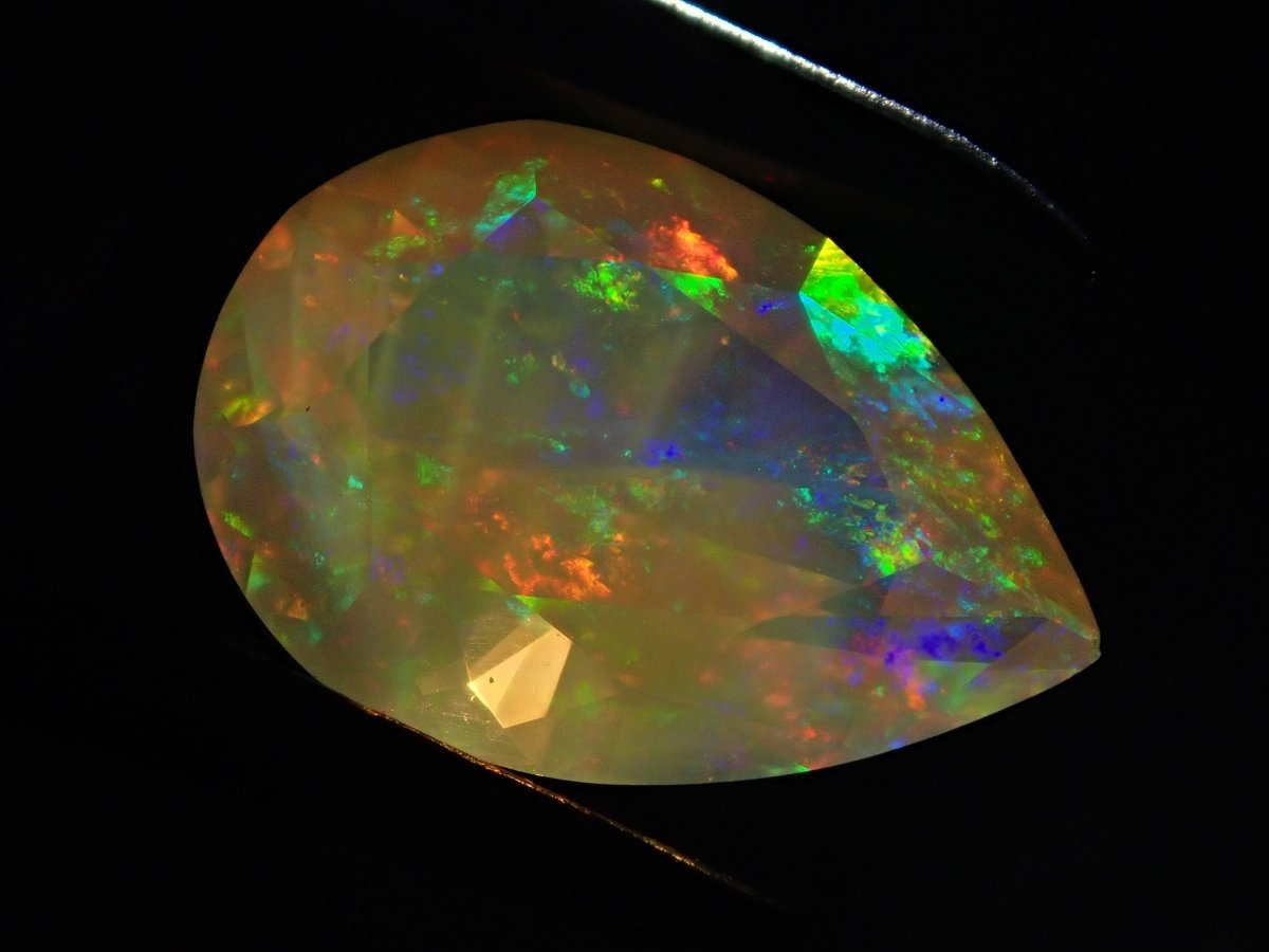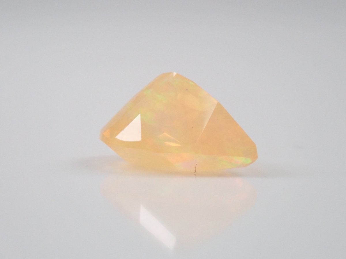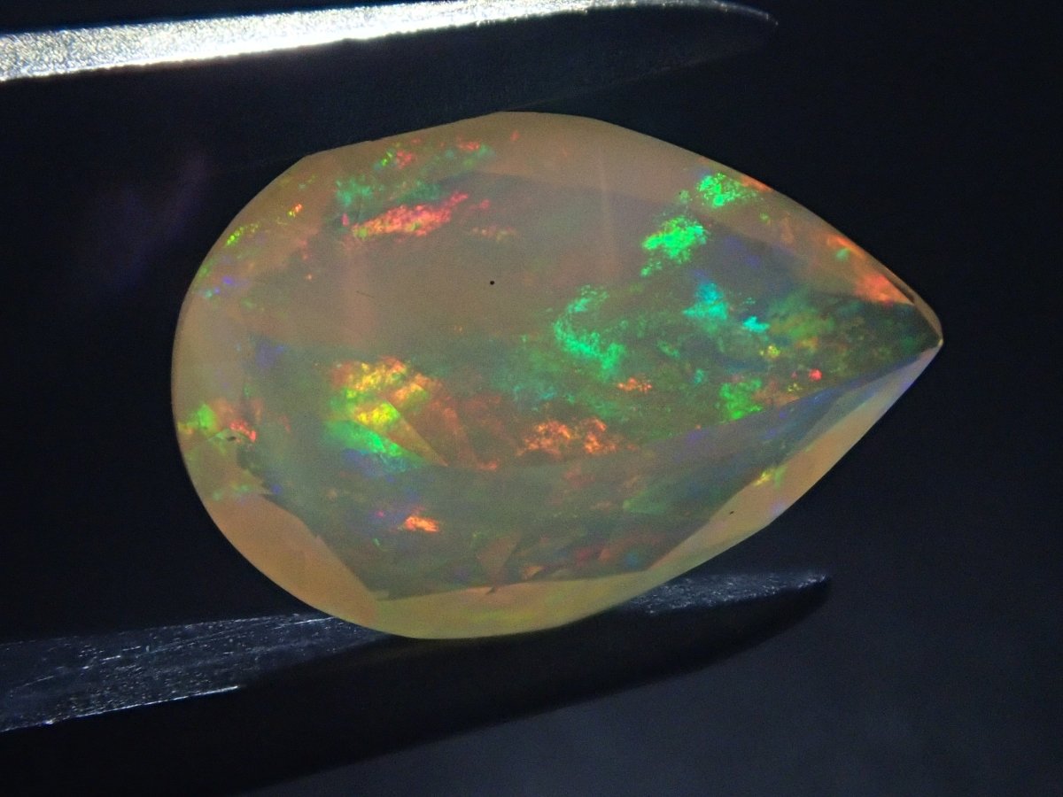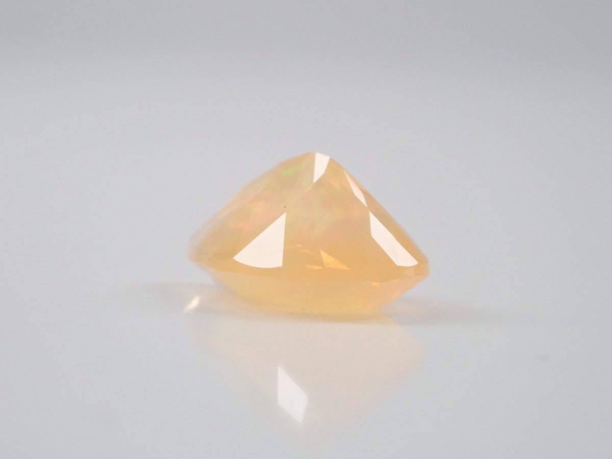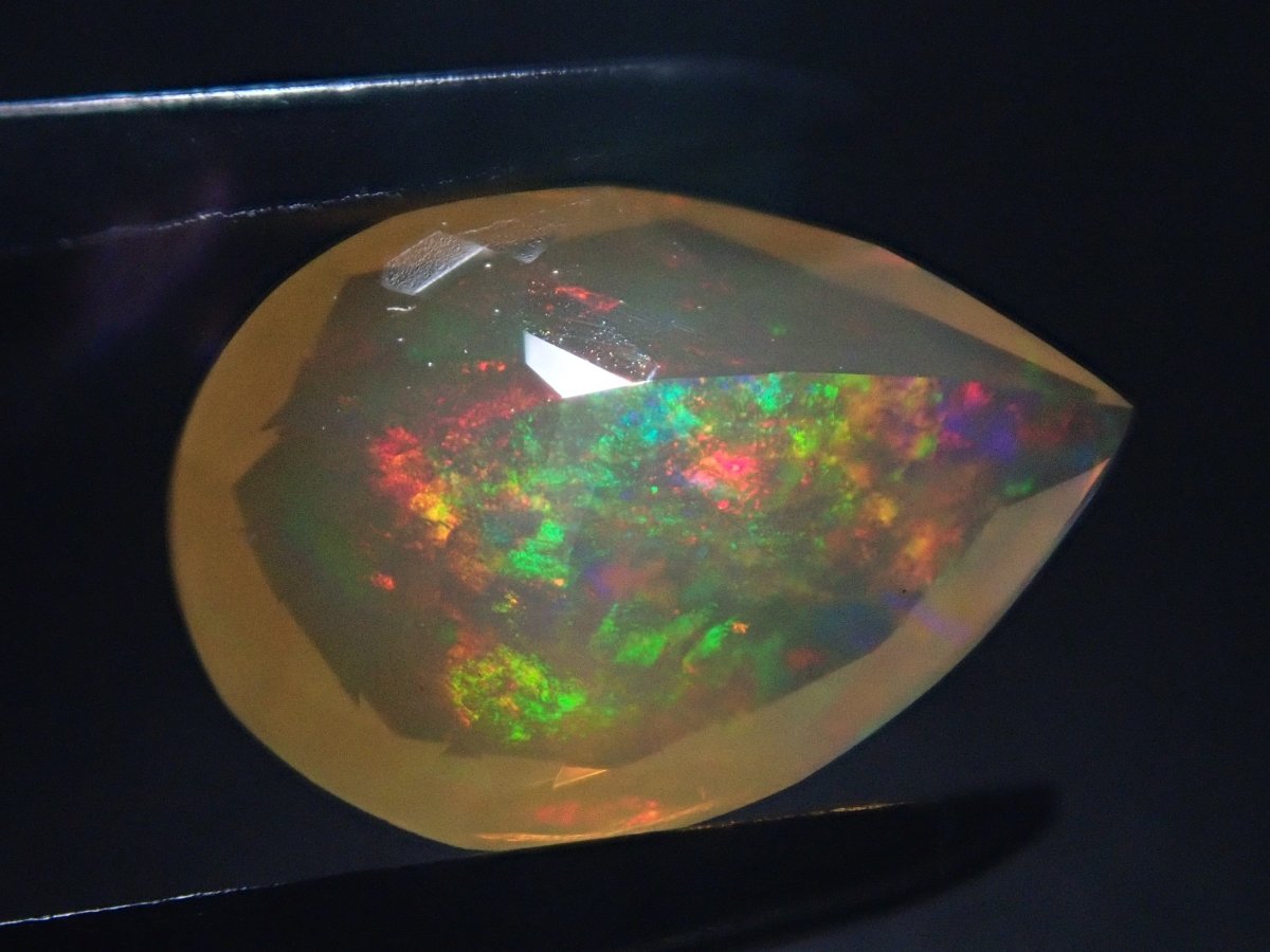 由美國熟練工匠KEN松剪。這是一種火蛋白石(墨西哥製造),在黑色背景下從後面照射時,您可以欣賞到整體色彩的變化。