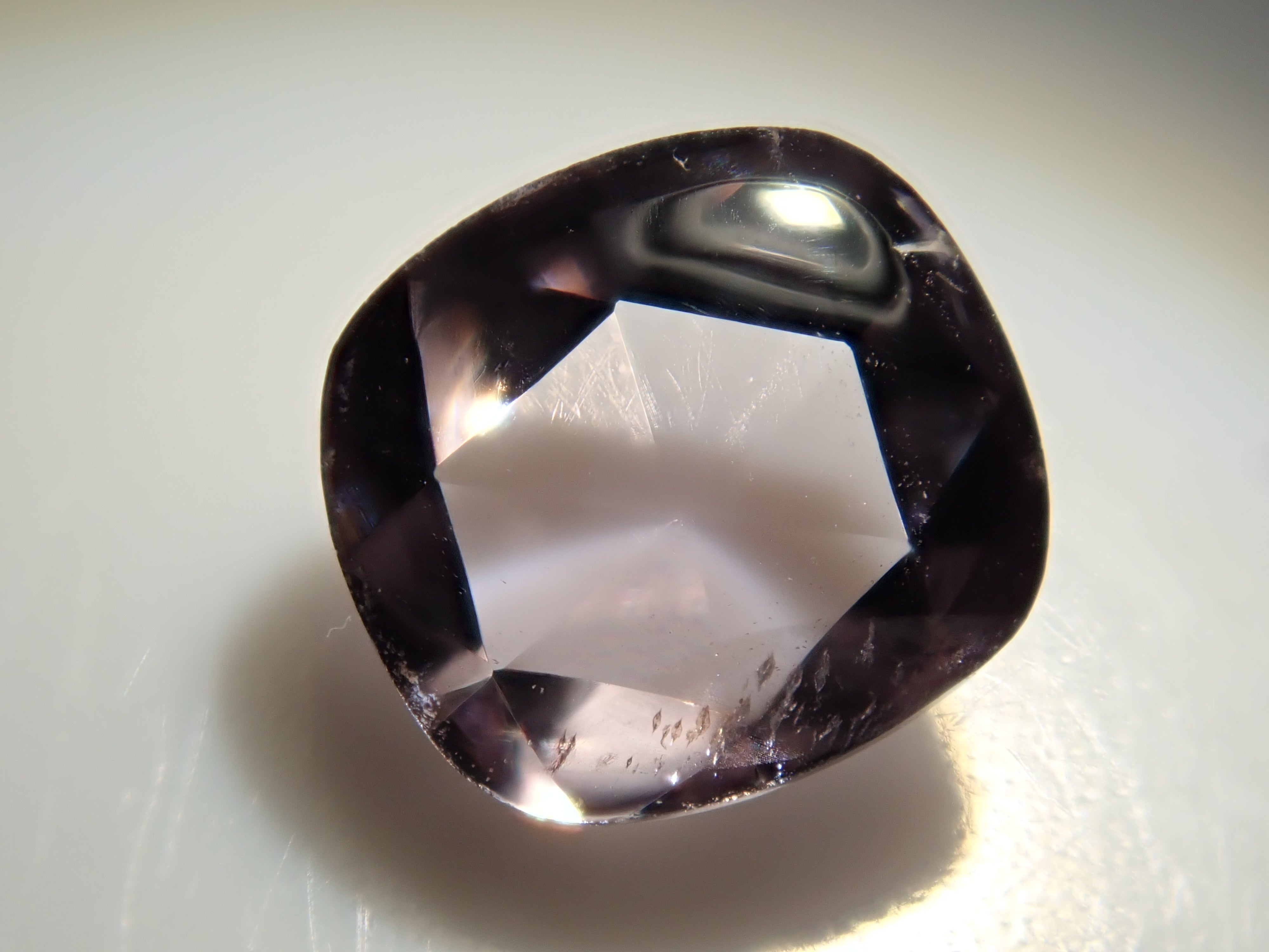 這顆尖晶石被切割成一種罕見的凸圓形切割組合,如玫瑰切割 x 淺黃色頂部。