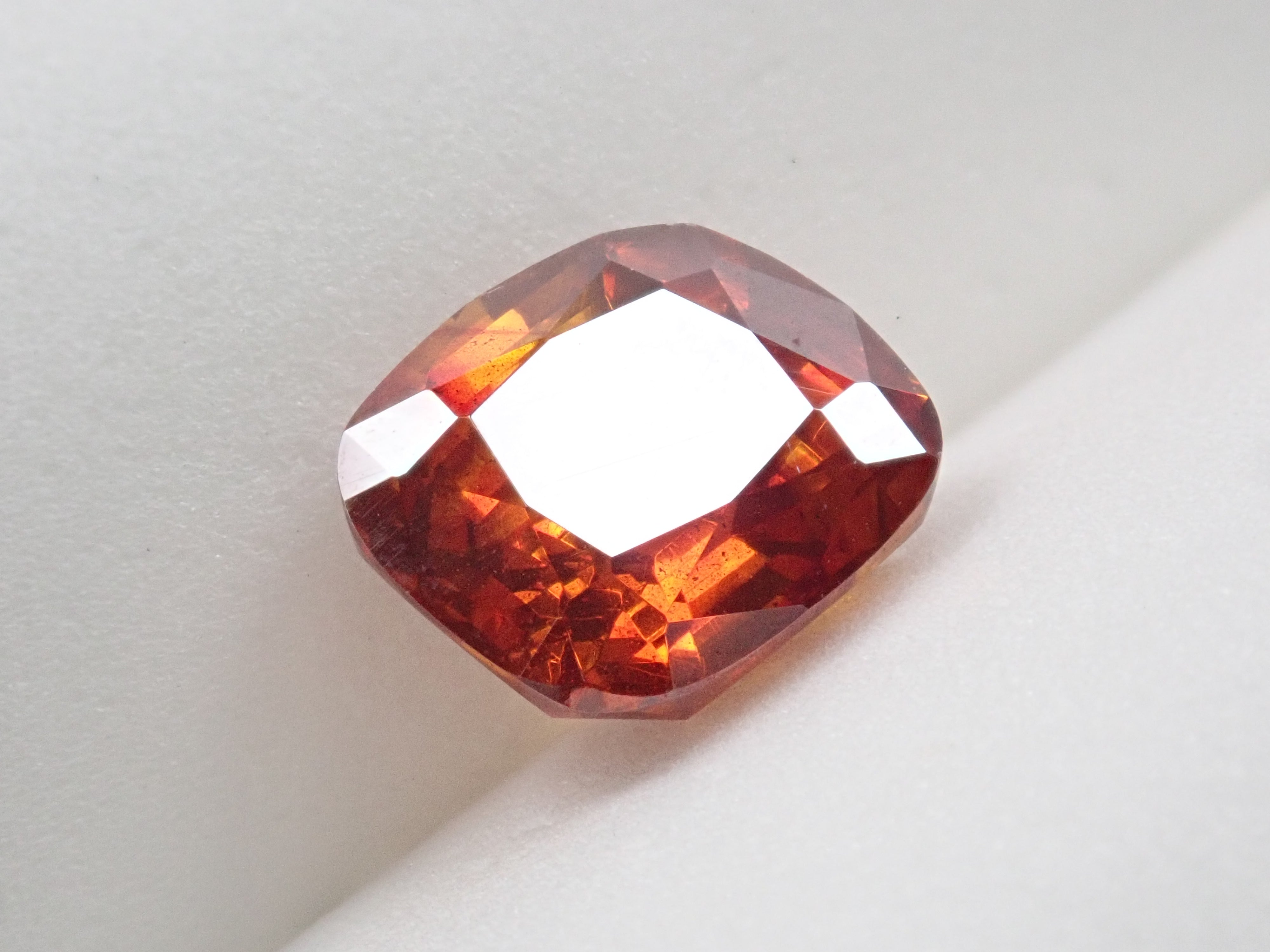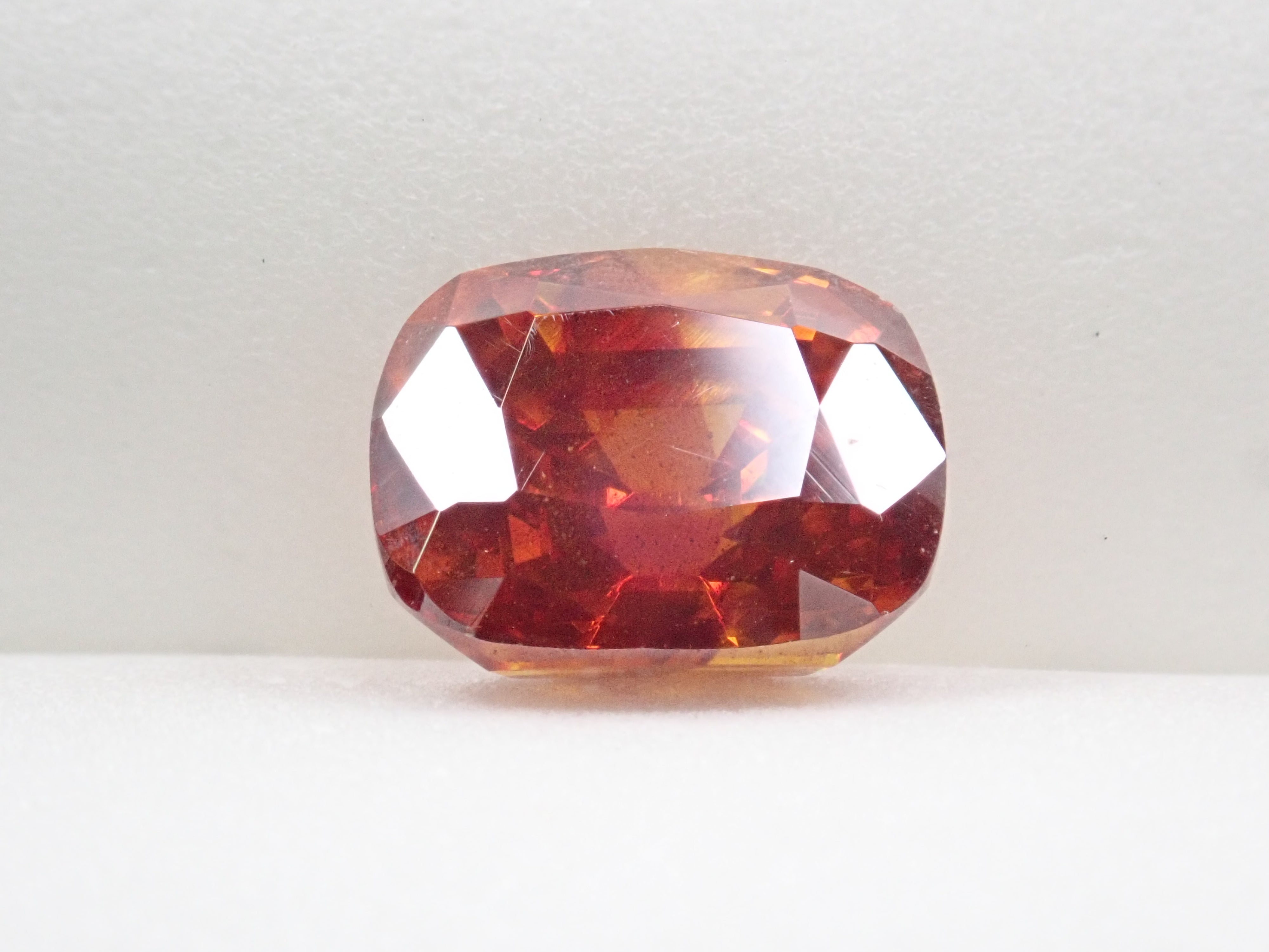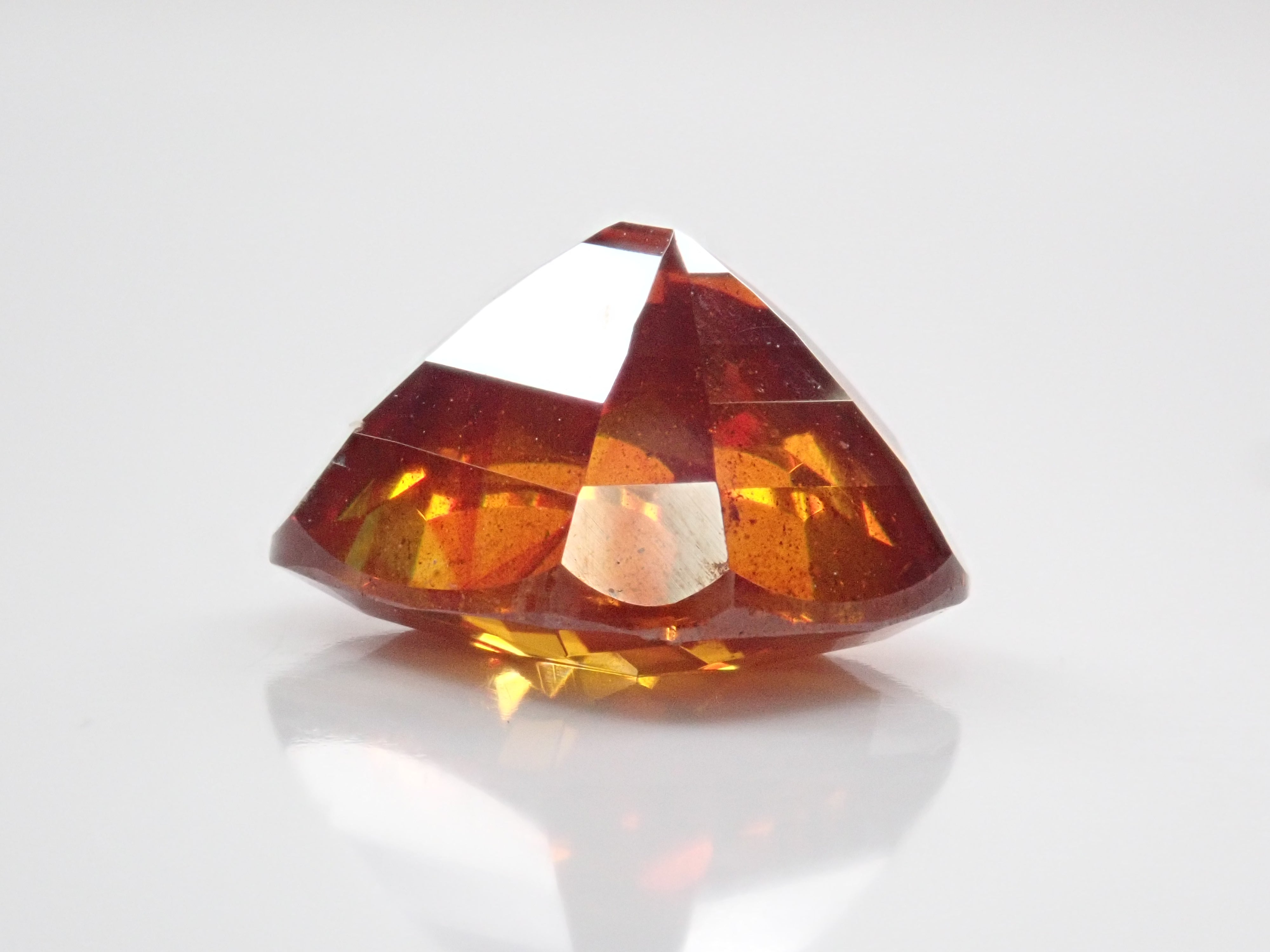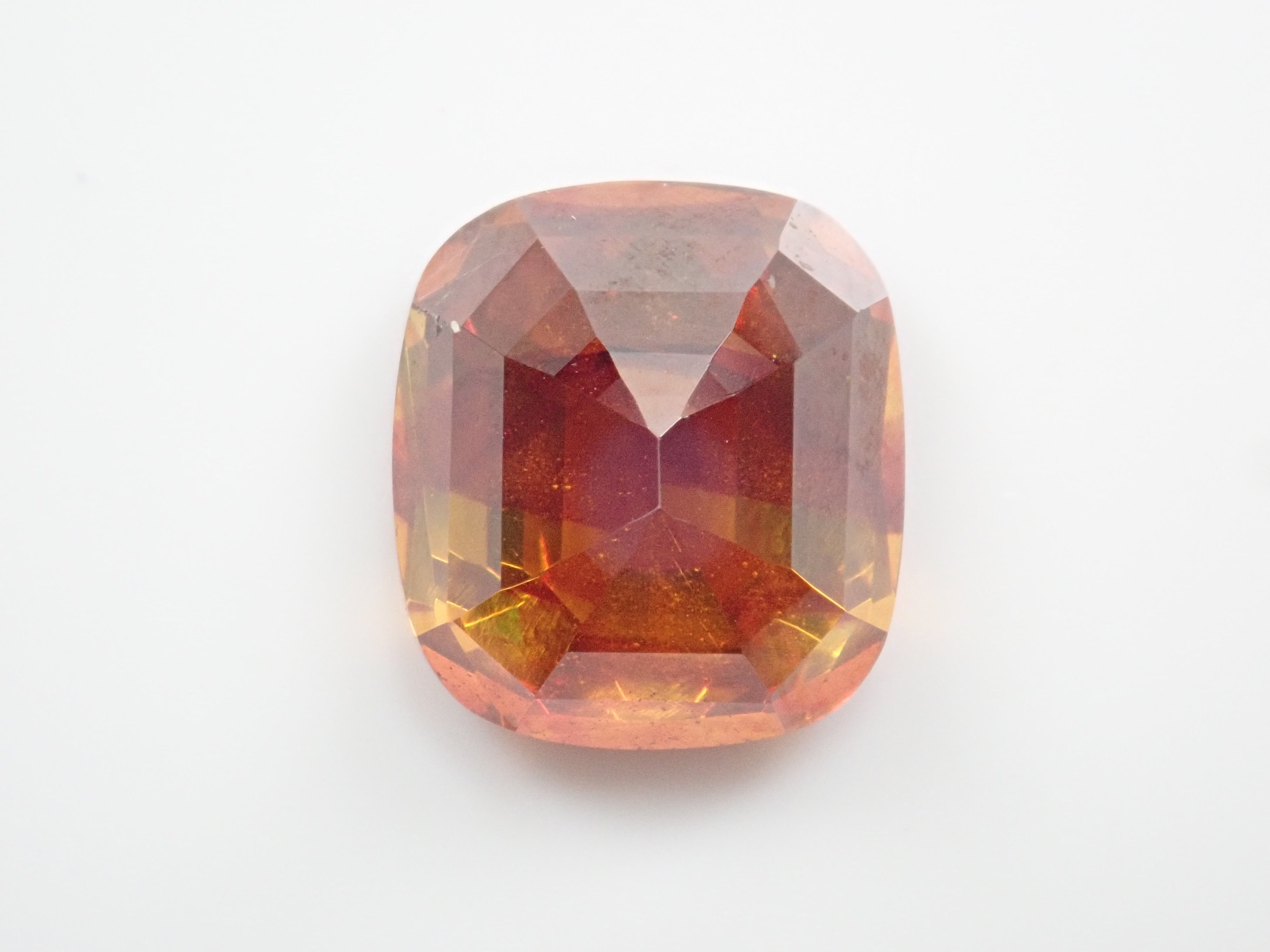 閃鋅礦的色散率幾乎是鑽石的四倍,並能展現出絢麗的火彩。據說,它是稀有寶石之一,流通量很小,在市場上並不常見。其底色為黃色、橙色、綠色等,火彩則呈現各種顏色,例如黃色、棕色、橙色、紅色和綠色。這顆閃鋅礦呈現出橙色和黃色的混合色。