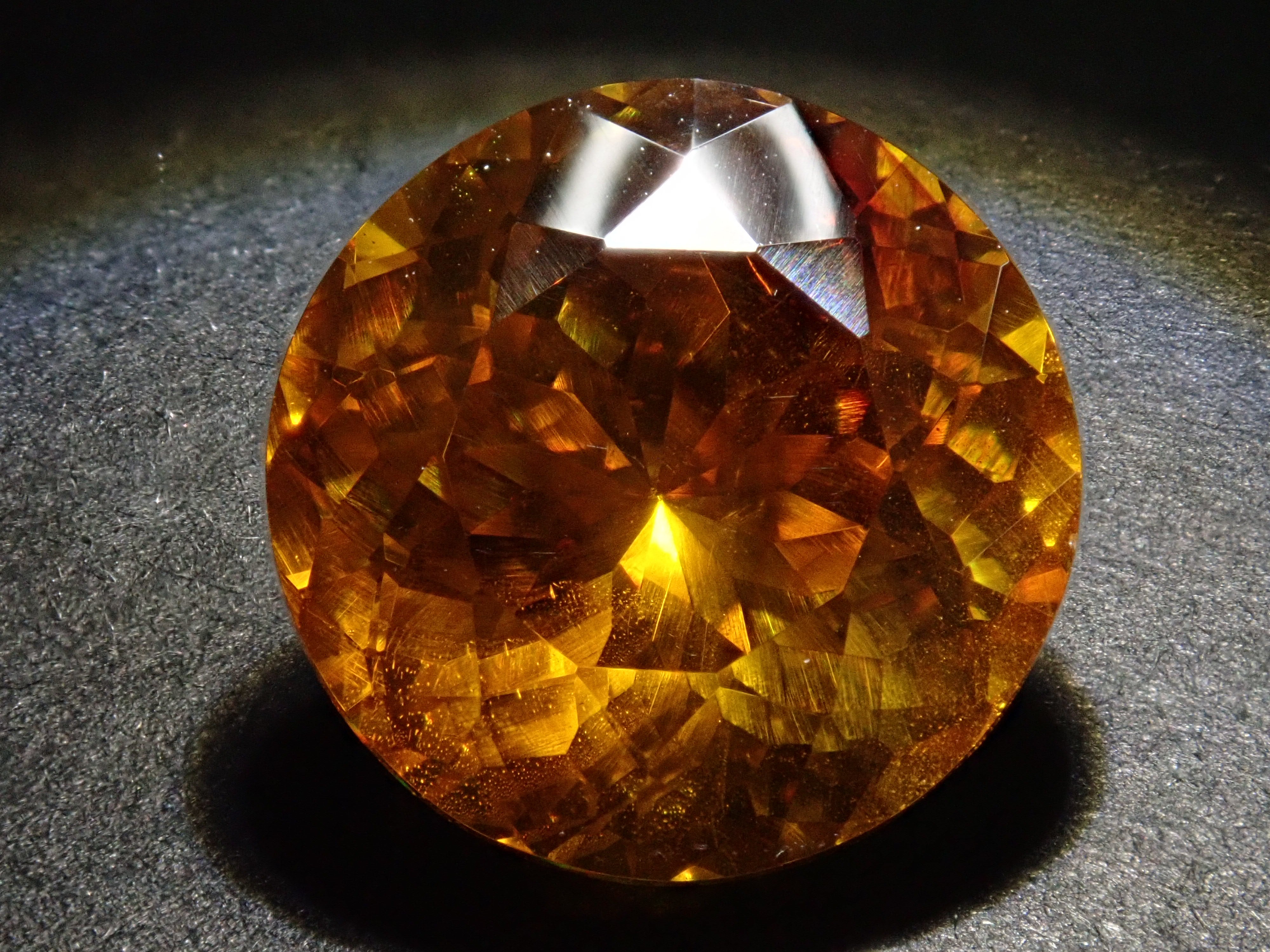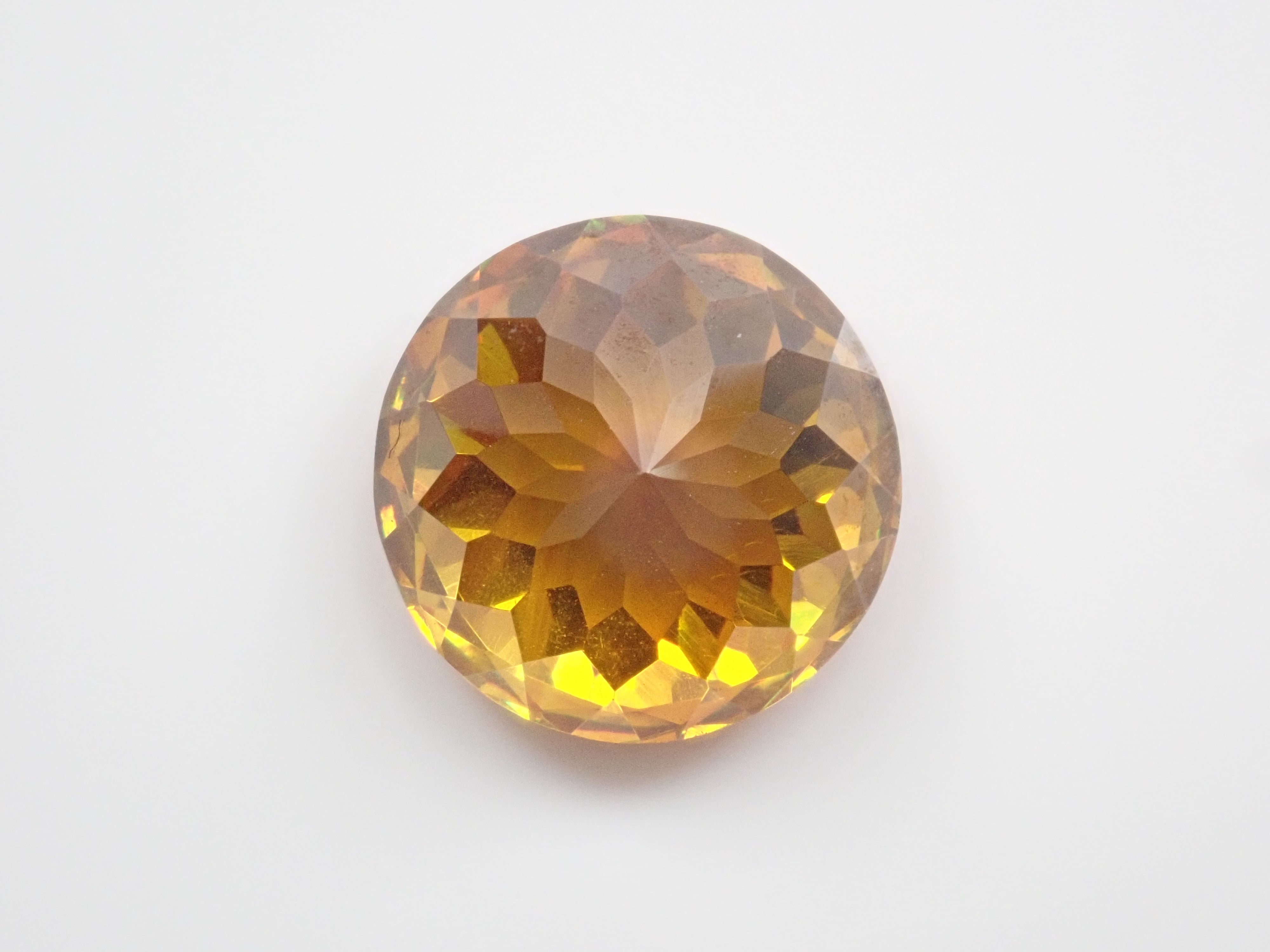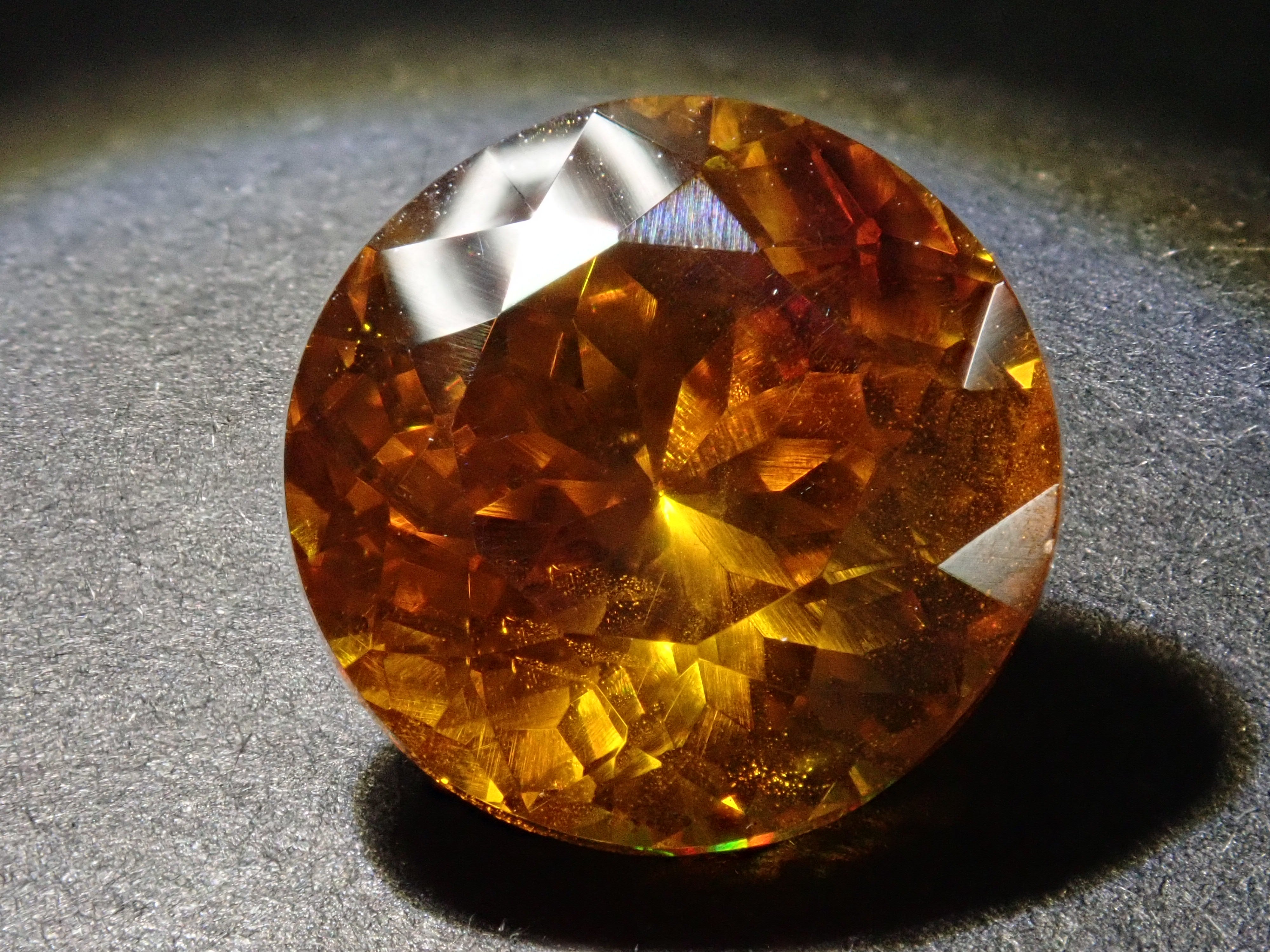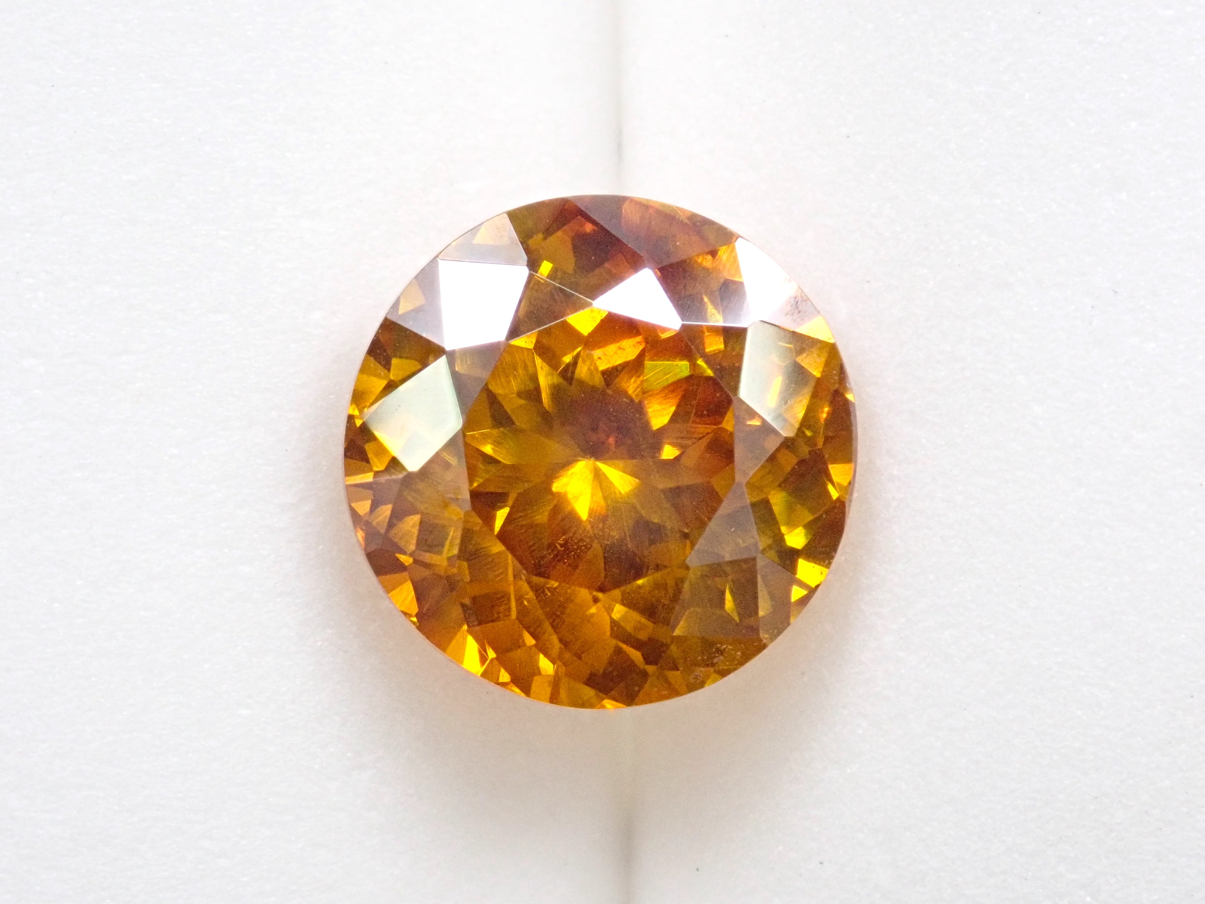 閃鋅礦的色散率幾乎是鑽石的四倍,並展現出華麗的火彩。據說它是稀有寶石之一,流通量極小,在市場上並不常見。其底色為黃色、橙色、綠色等,火彩呈現各種顏色,如黃色、棕色、橙色、紅色和綠色。這顆11毫米圓形切割的高品質閃鋅礦,您可以同時欣賞其透明度和火彩。