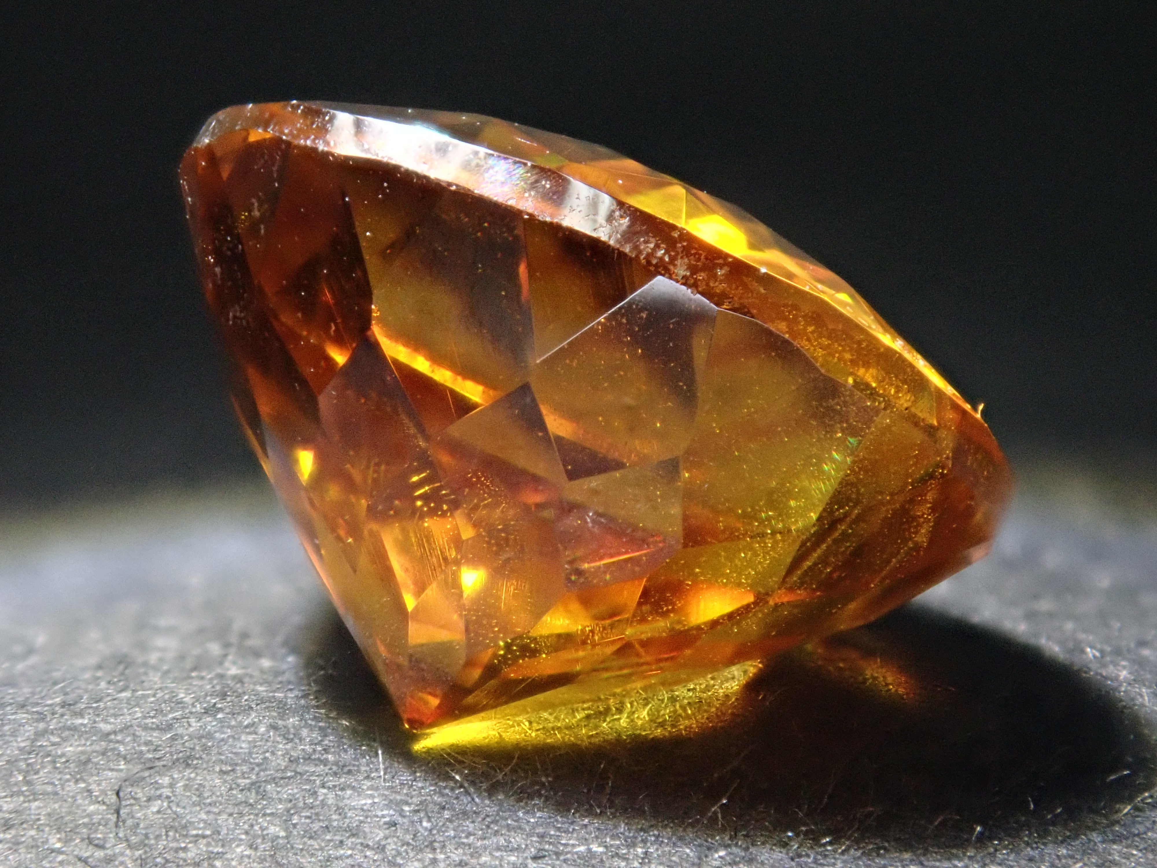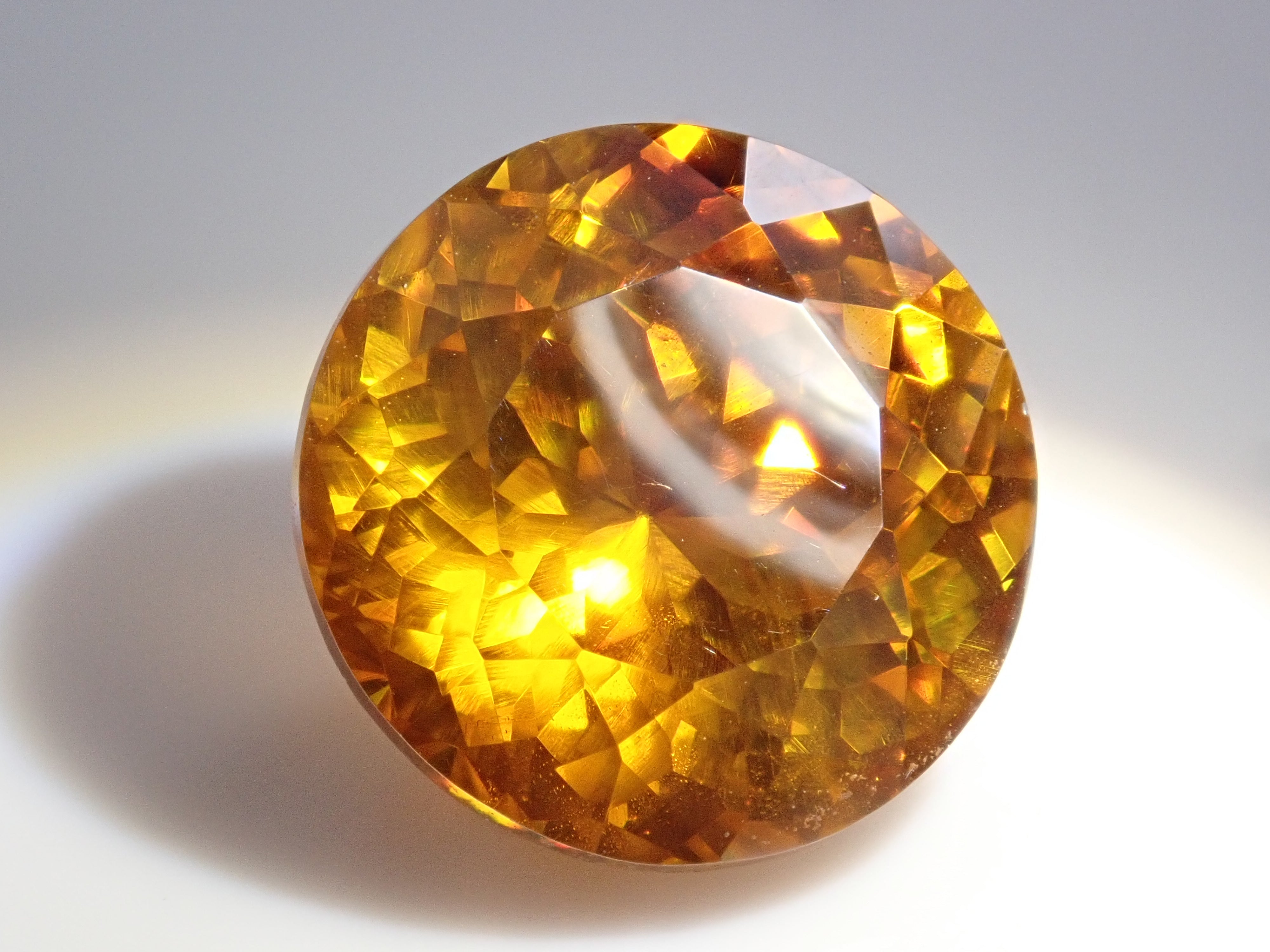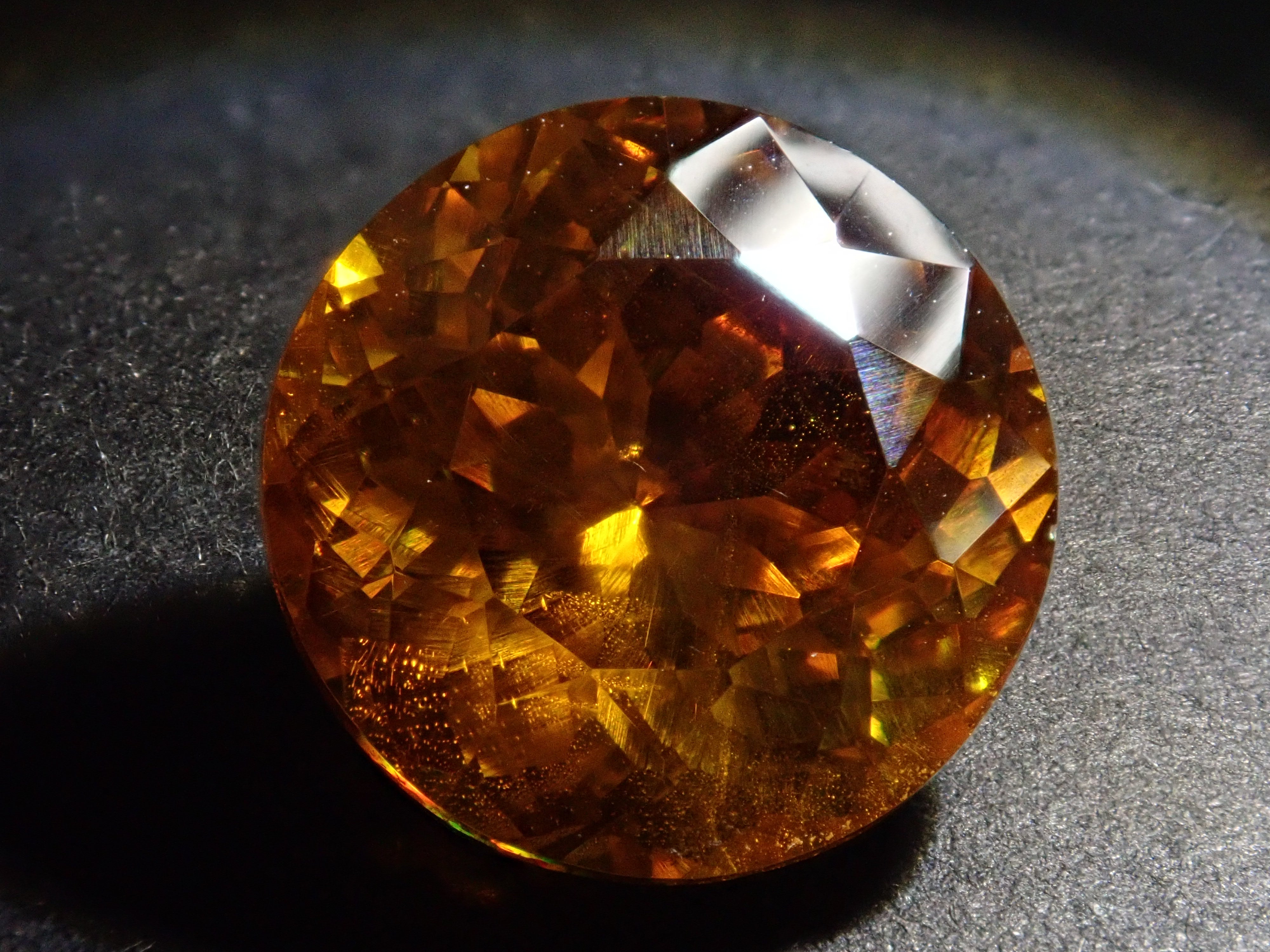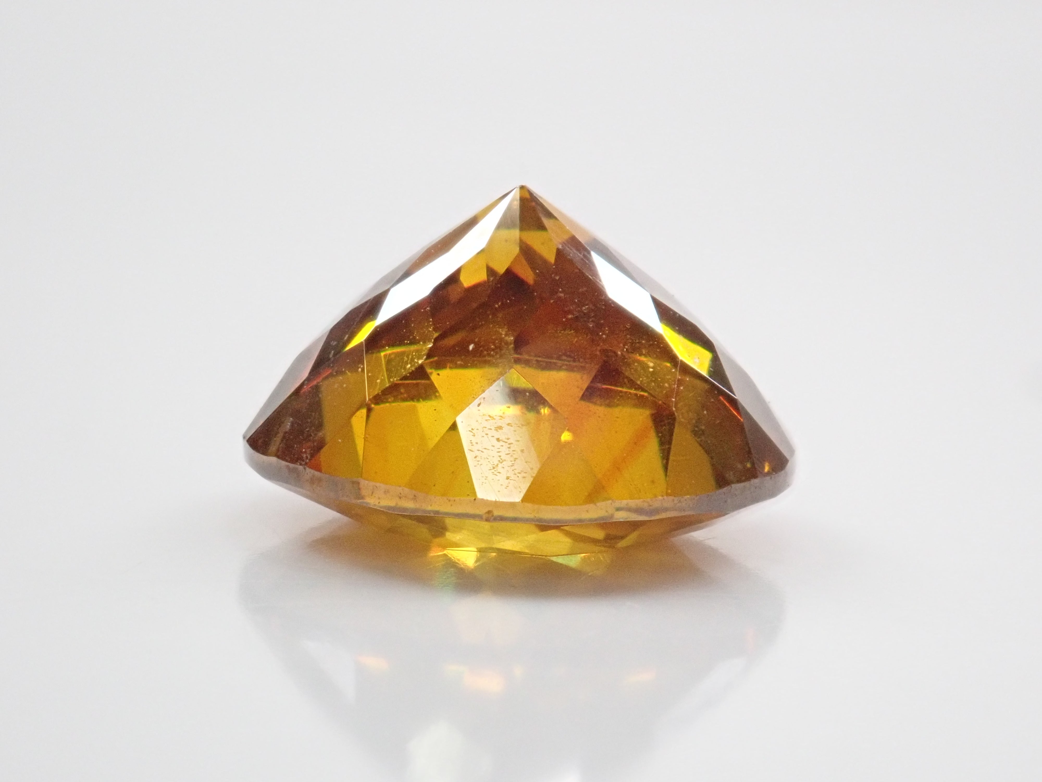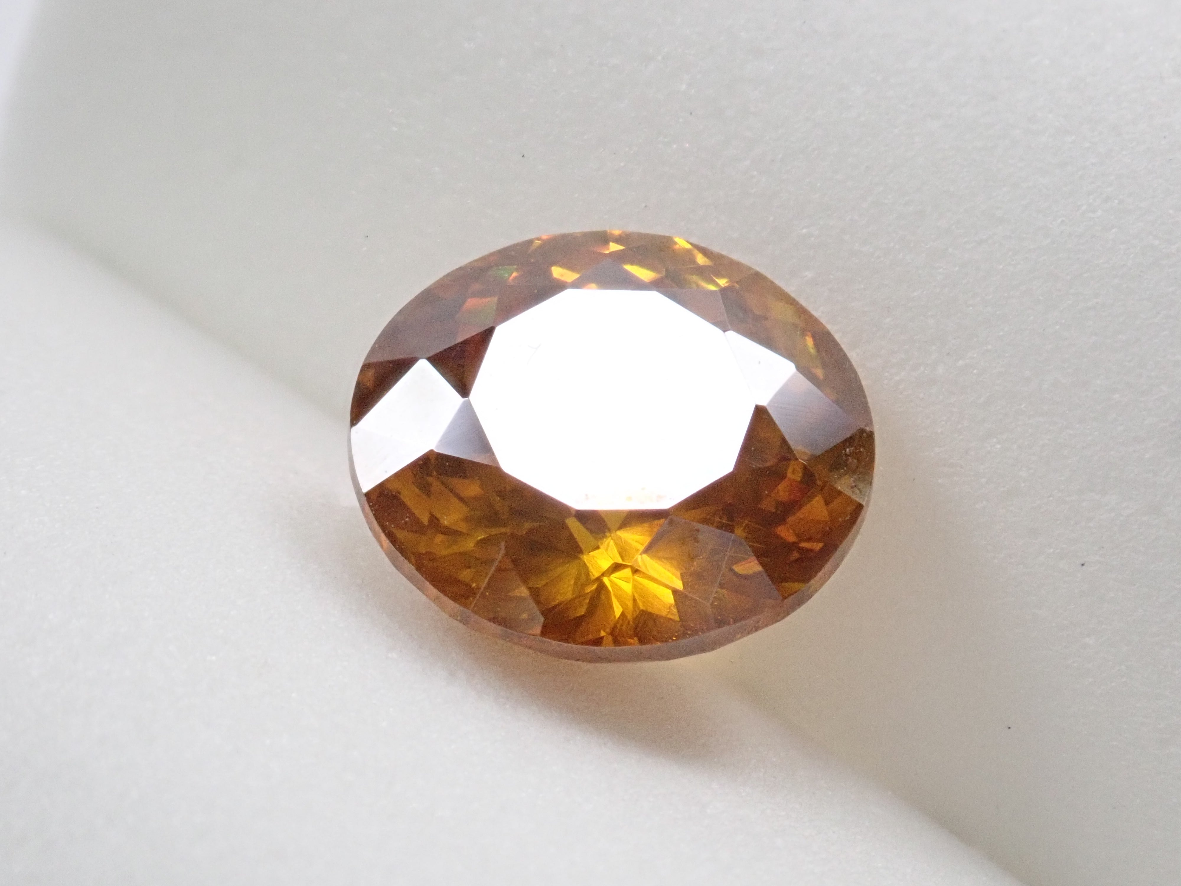 閃鋅礦的色散率幾乎是鑽石的四倍,並展現出華麗的火彩。據說它是稀有寶石之一,流通量極小,在市場上並不常見。其底色為黃色、橙色、綠色等,火彩呈現各種顏色,如黃色、棕色、橙色、紅色和綠色。這顆11毫米圓形切割的高品質閃鋅礦,您可以同時欣賞其透明度和火彩。