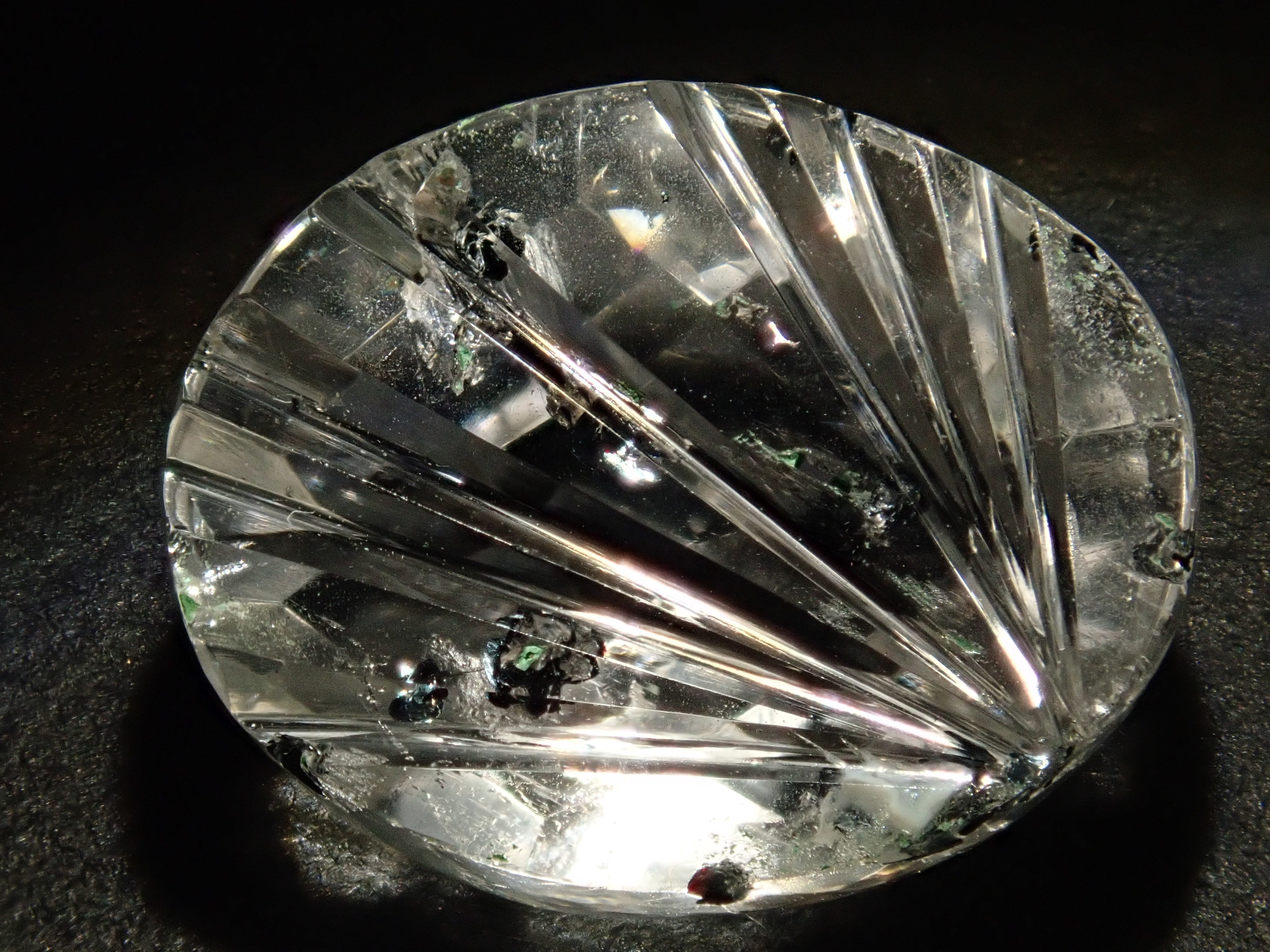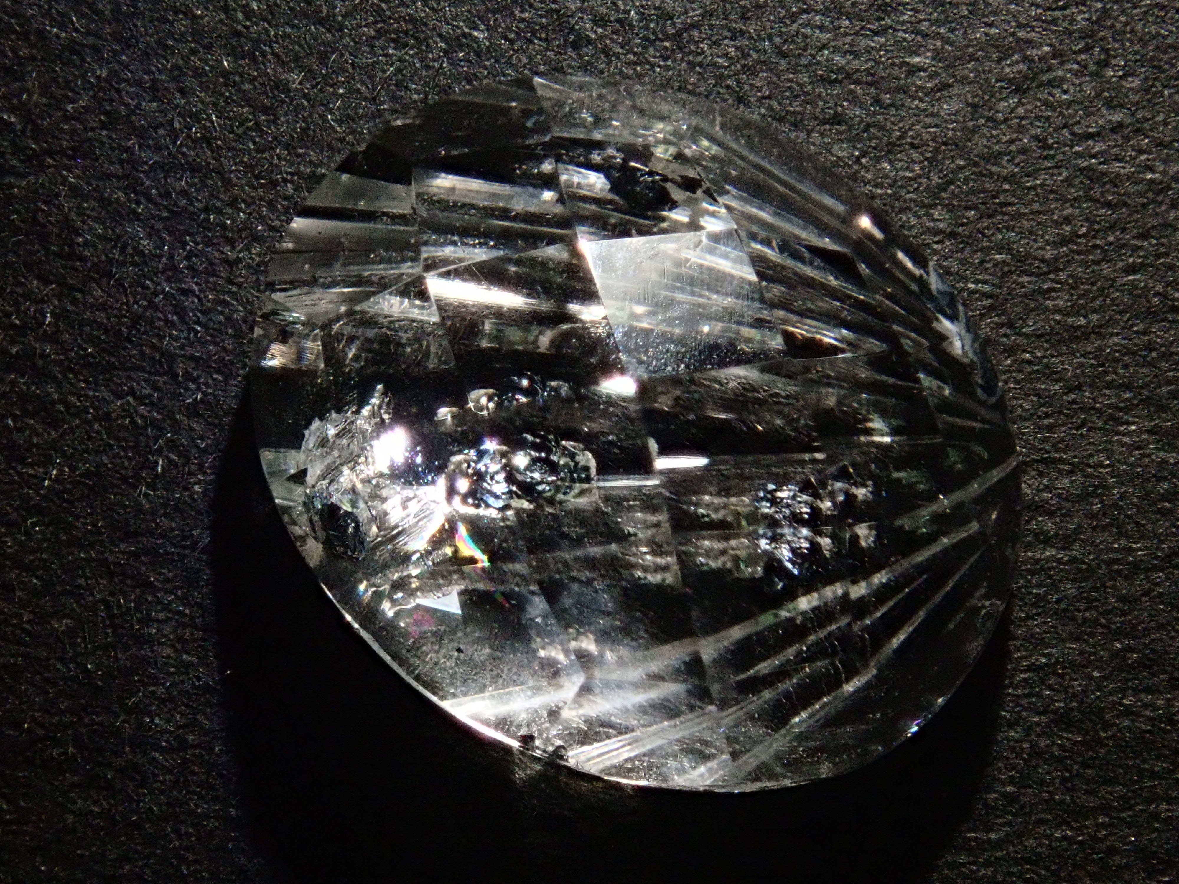 這款甲州寶石切割 (Koshu Precious Stone Cut) 出自兩位工藝大師之手:清水寶石公司 (Shimizu Precious Stones) 總裁清水幸雄 (Yukio Shimizu) 和深澤珠寶工藝公司 (Jewelry Craft Fukasawa) 總裁深澤洋一 (Yoichi Fukasawa)。清水負責刻面,深澤負責切割面。這是一塊棋盤格切割 x 昴星團切割的赤鐵礦石英。