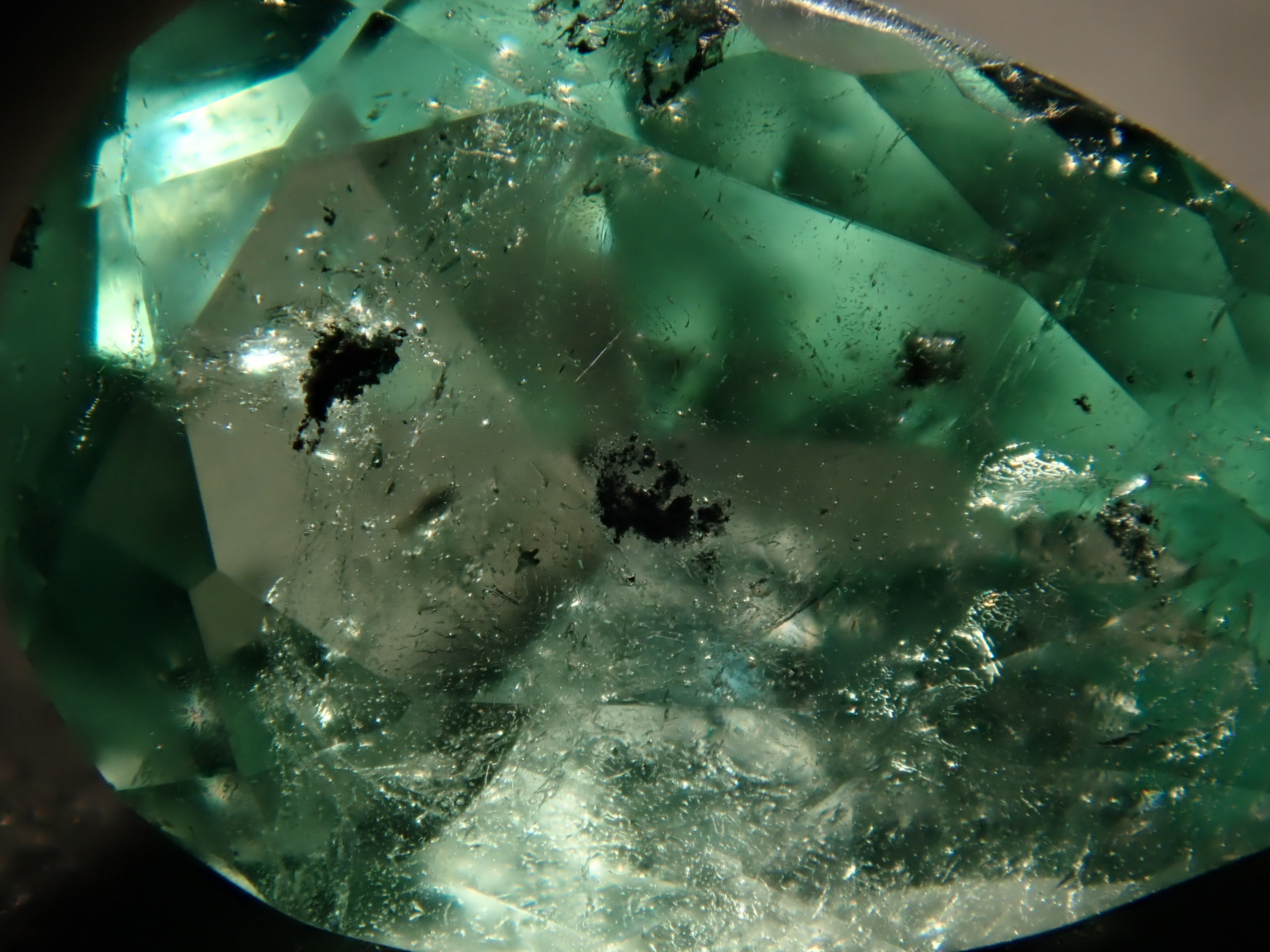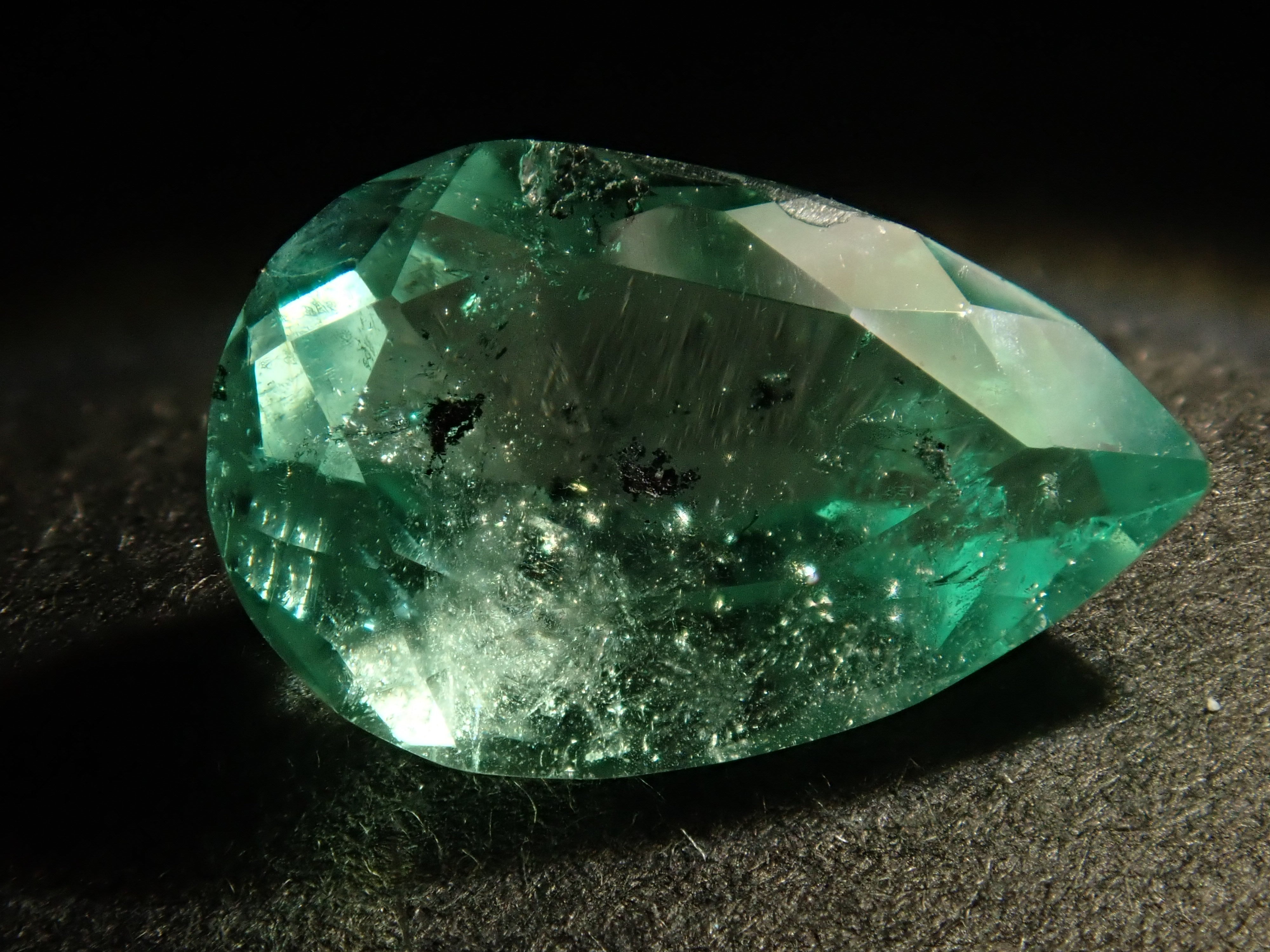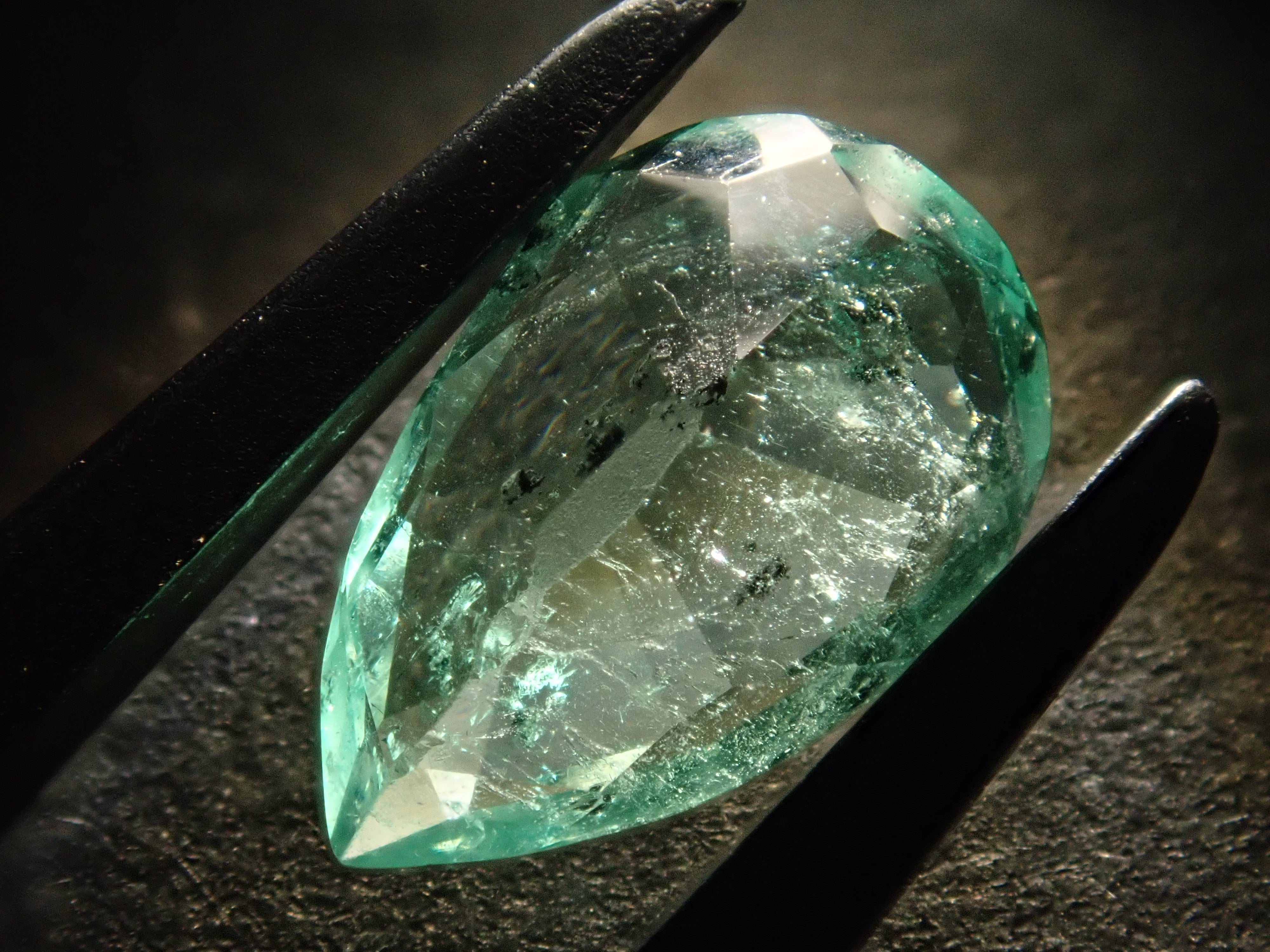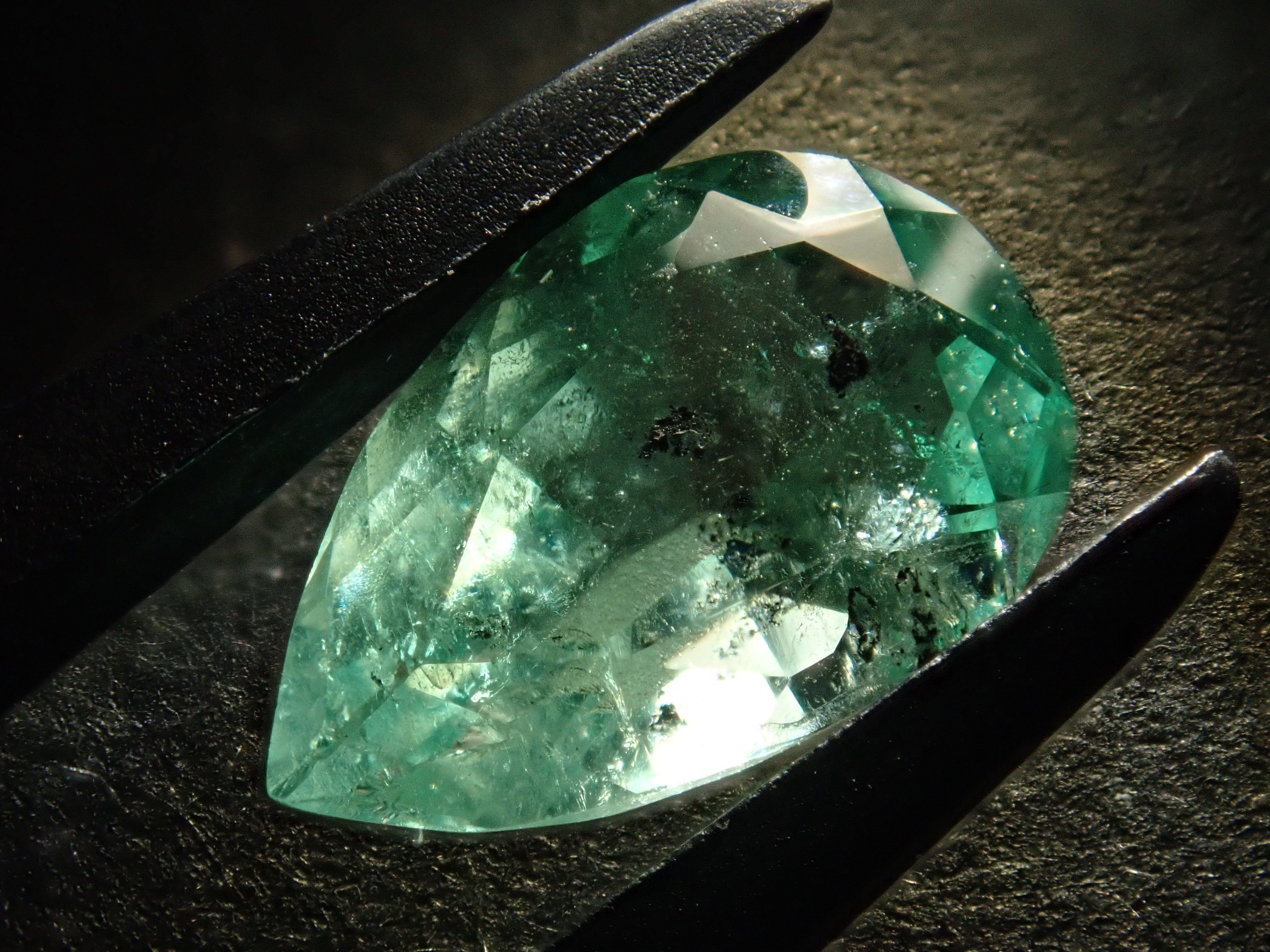 據說祖母綠美麗的綠色會根據產地的不同而改變。這是產自哥倫比亞的祖母綠,據說有特別深的綠色。祖母綠通常是一種有很多划痕的寶石,因此通常會用油對其進行處理,以使划痕不那麼明顯。享受優雅的綠色。這是一顆含有黃鐵礦的祖母綠。