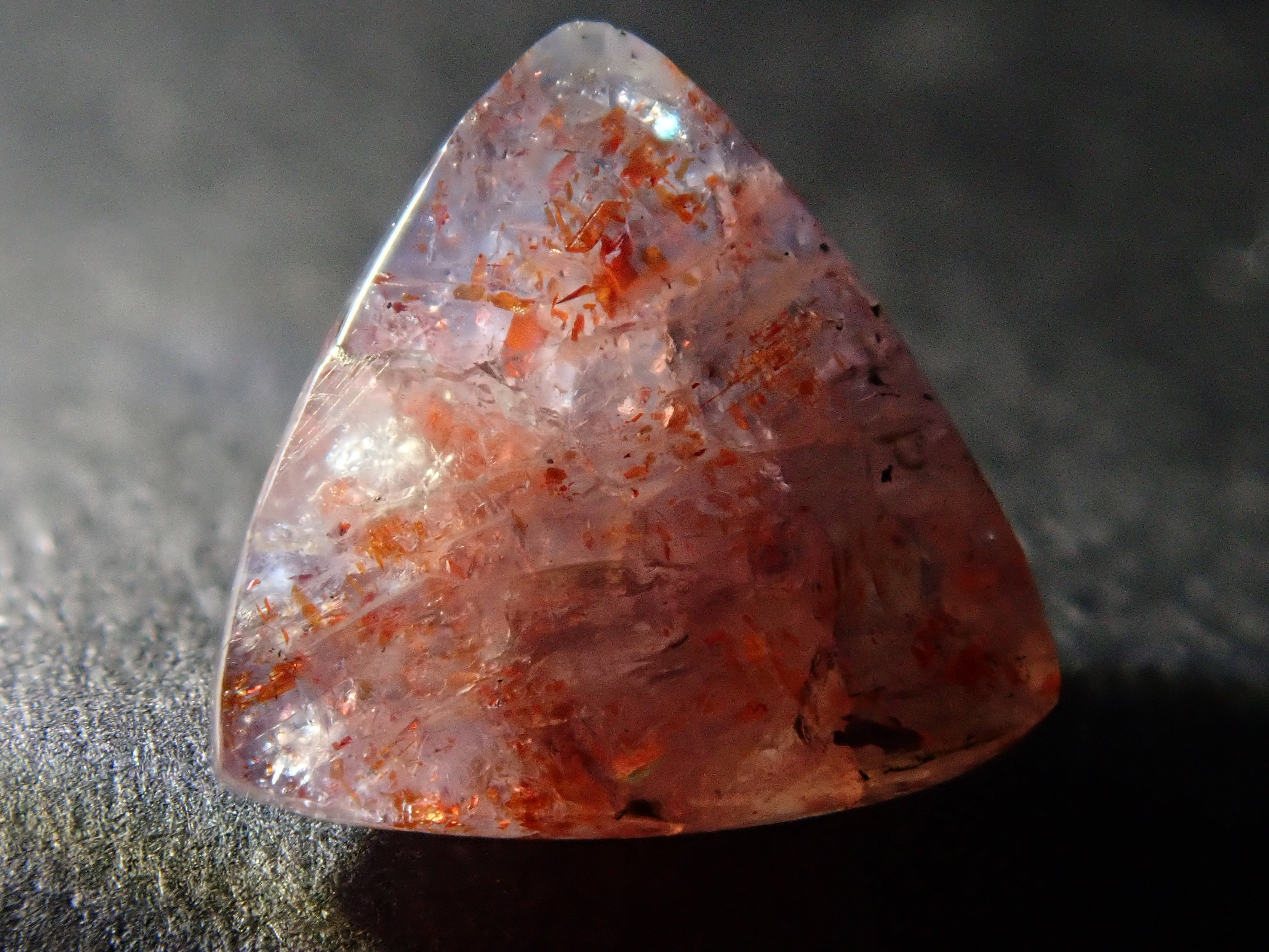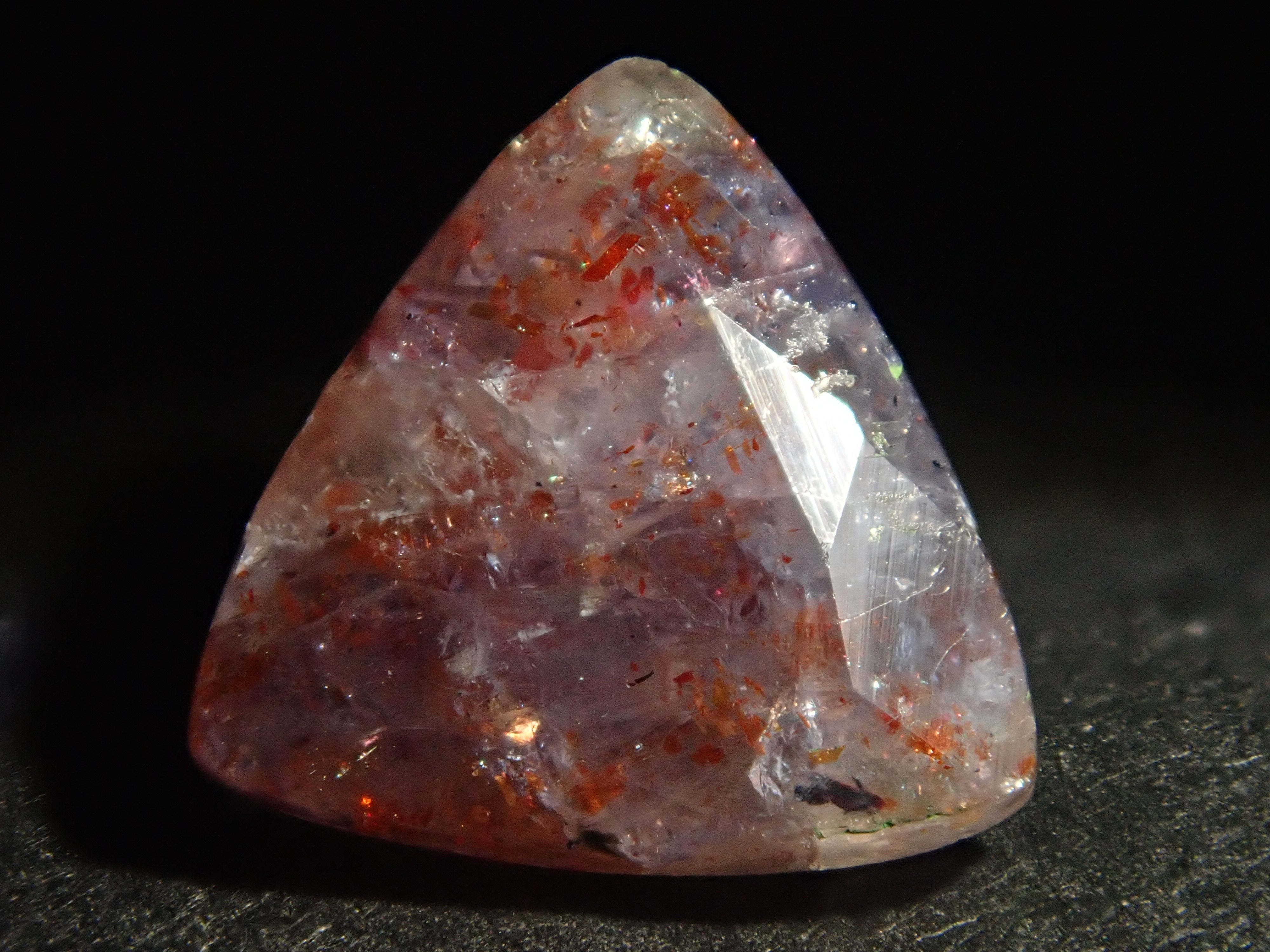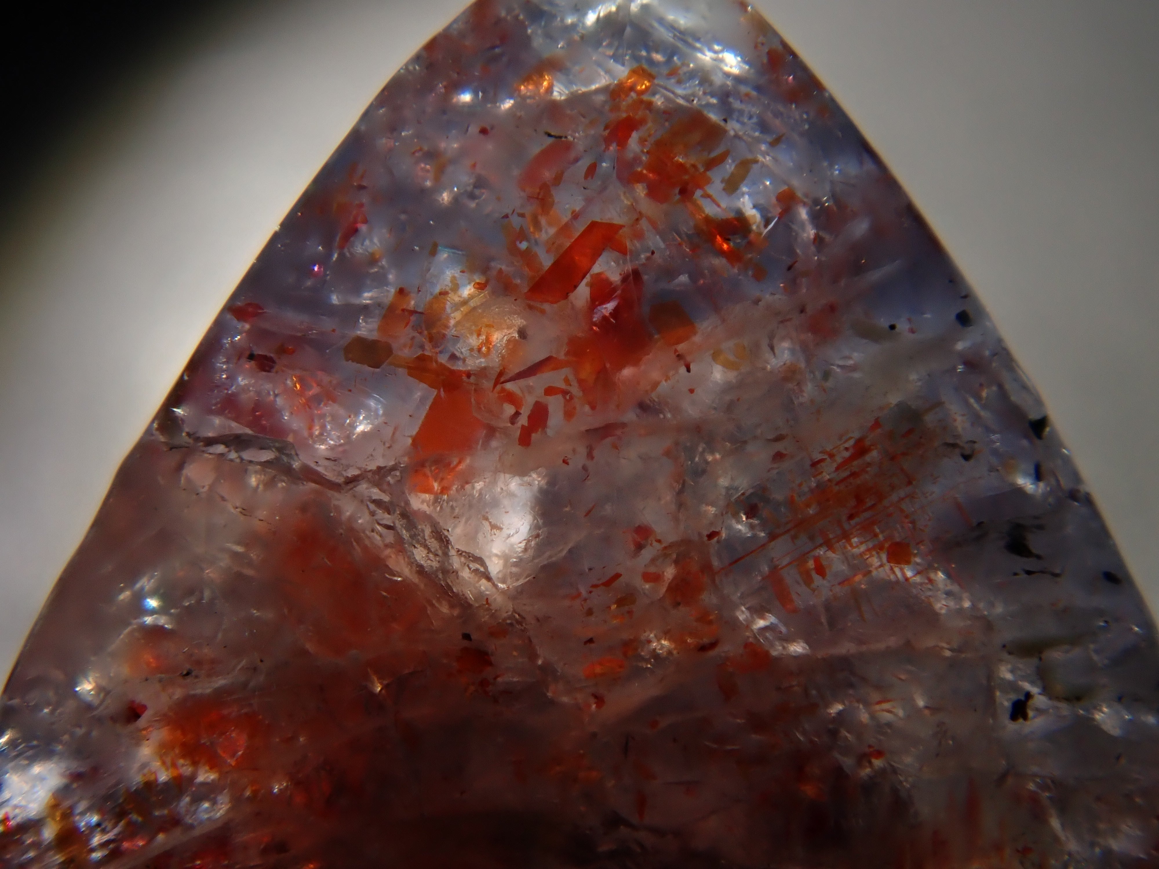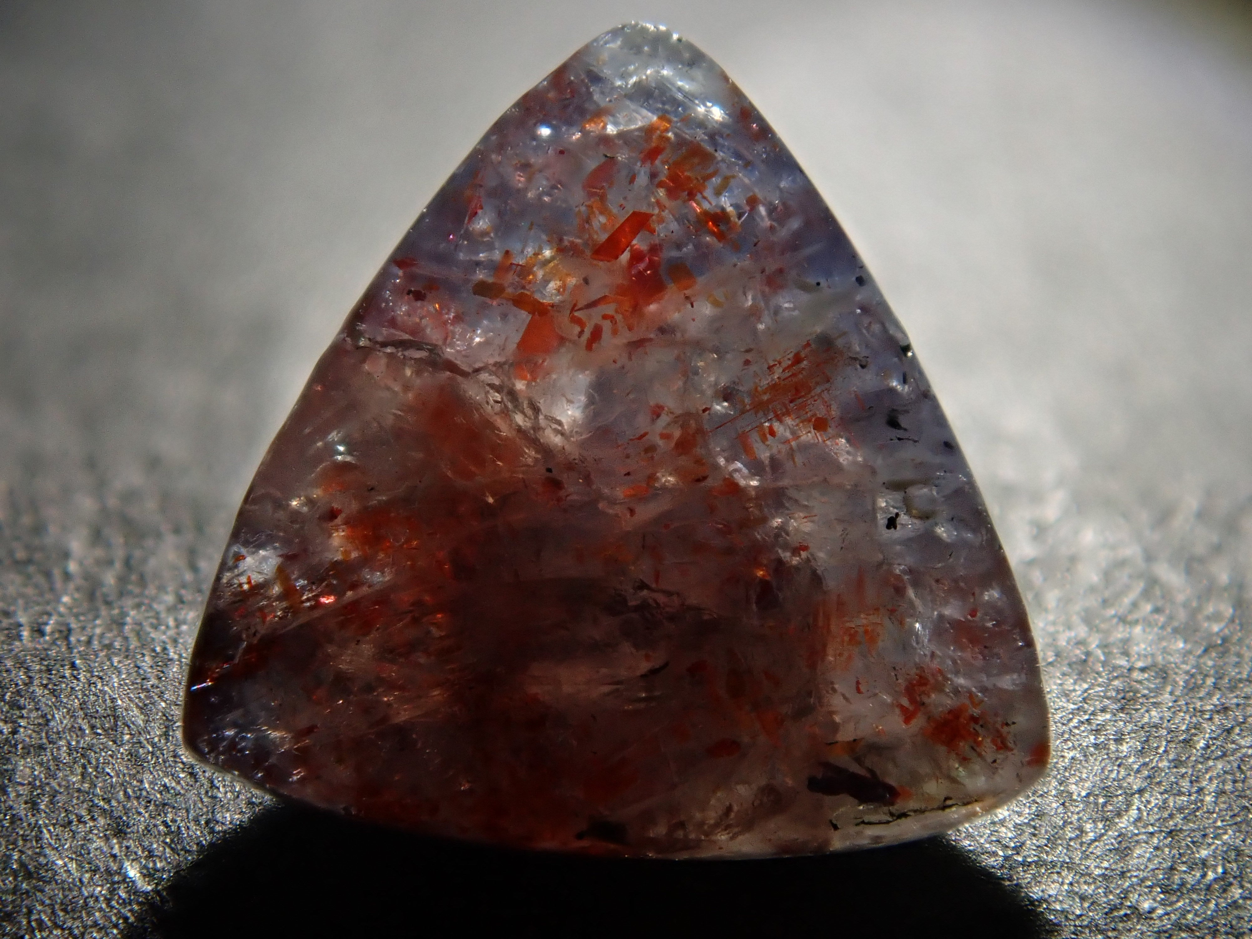 在表現出這種效果的那些中,那些帶有紅色斑點狀圖案的被稱為“血絲”。據說紅色的主要原因是纖鐵礦。它是一顆充滿夜空魅力的寶石。