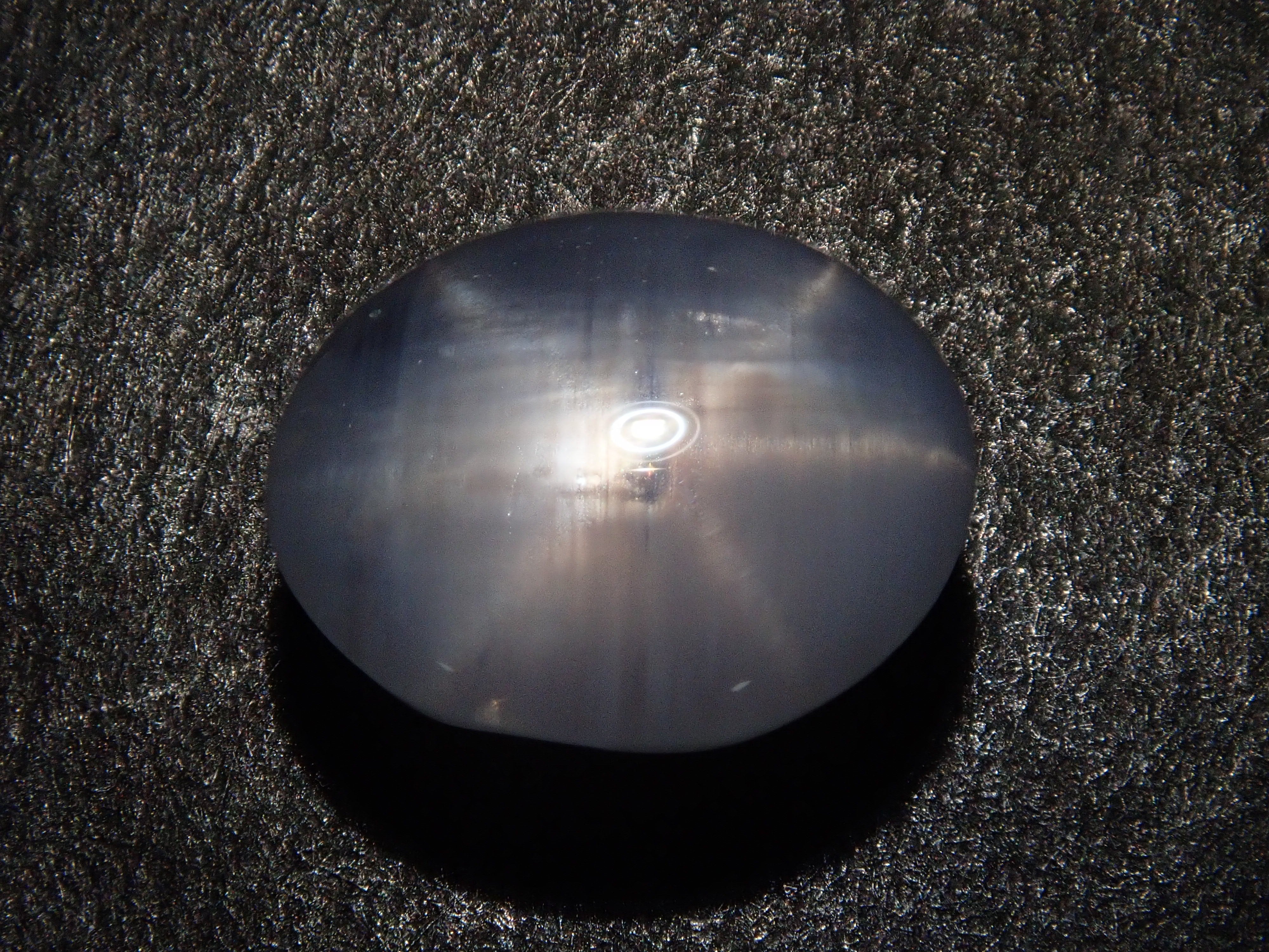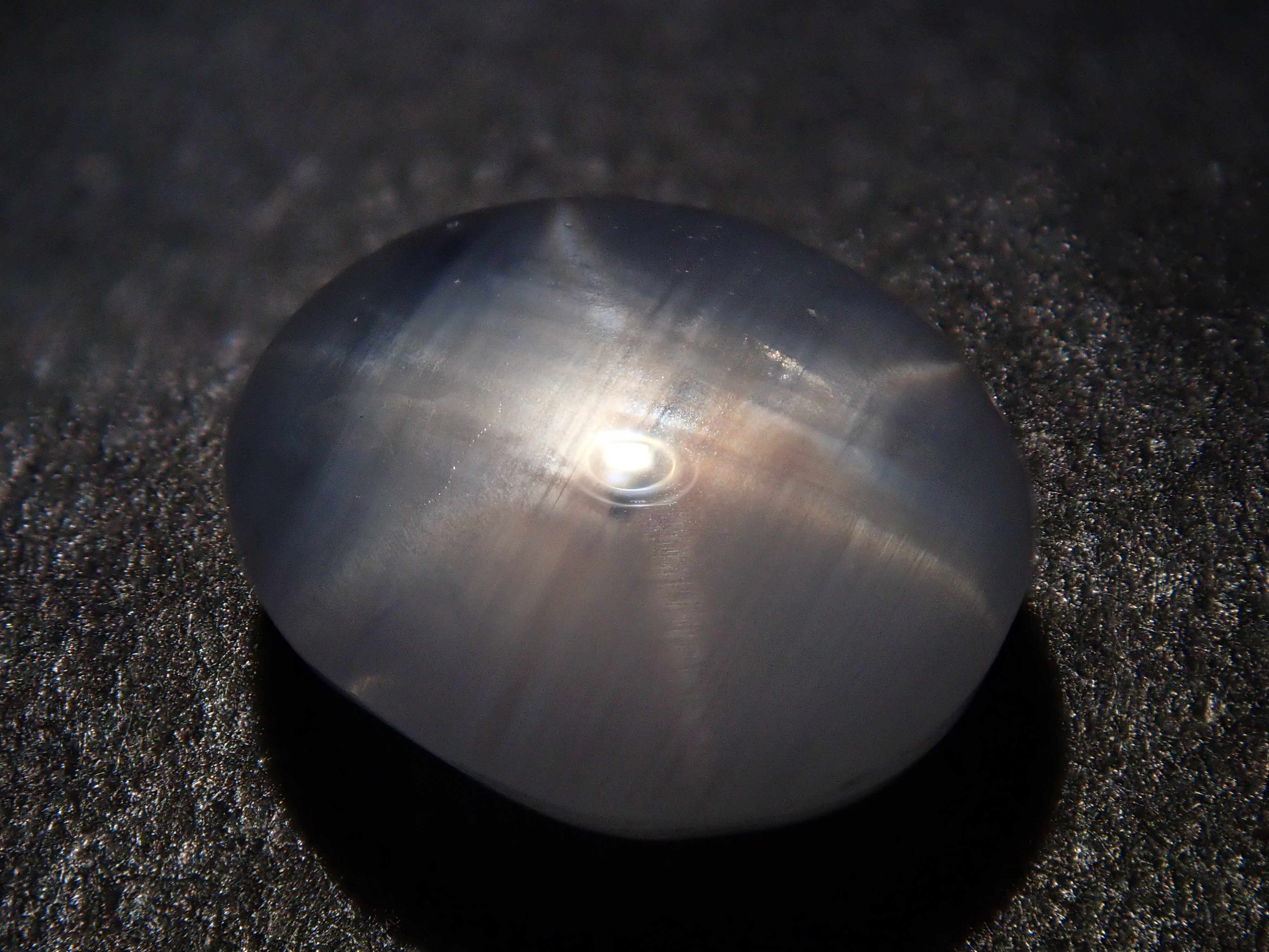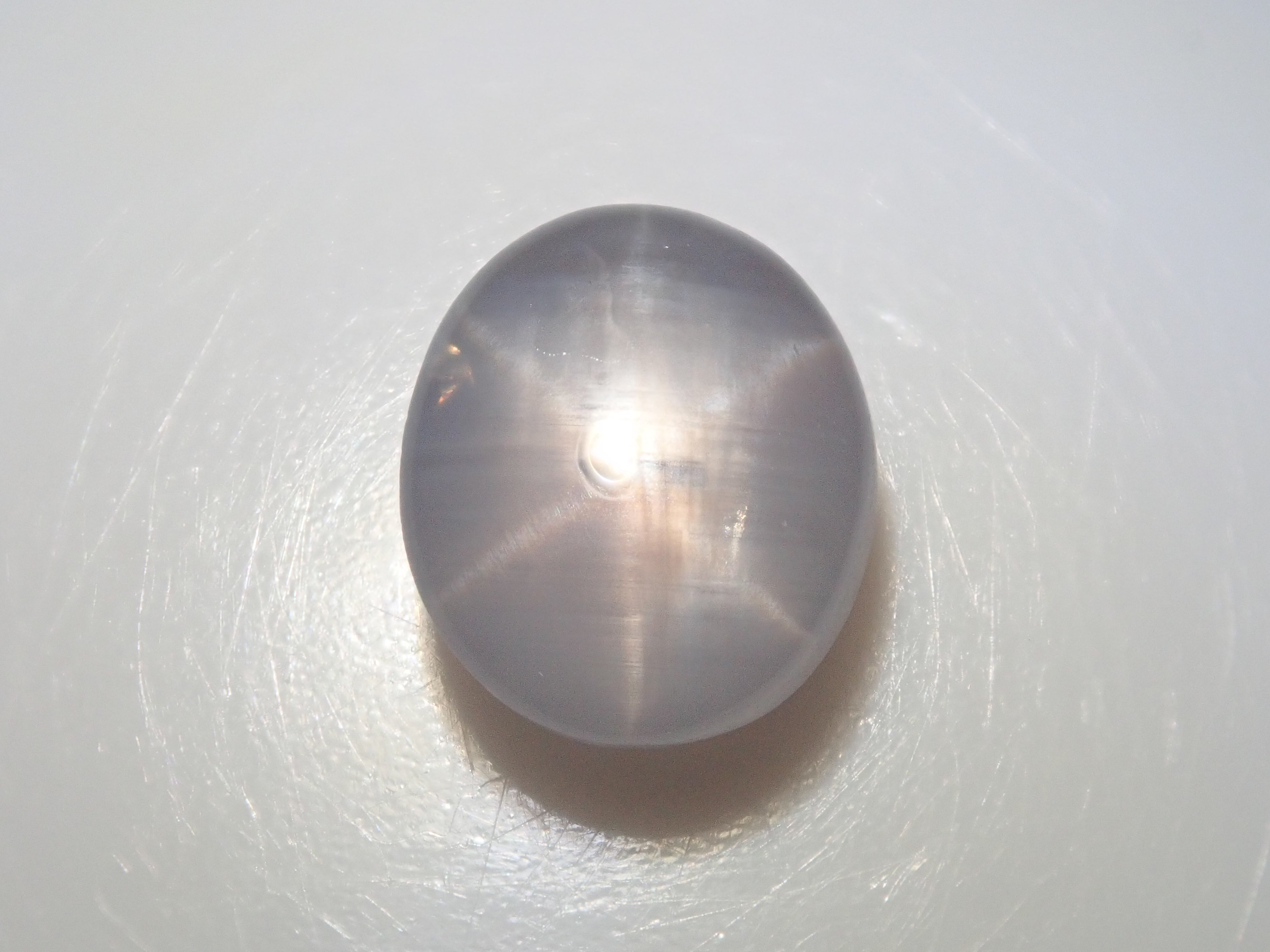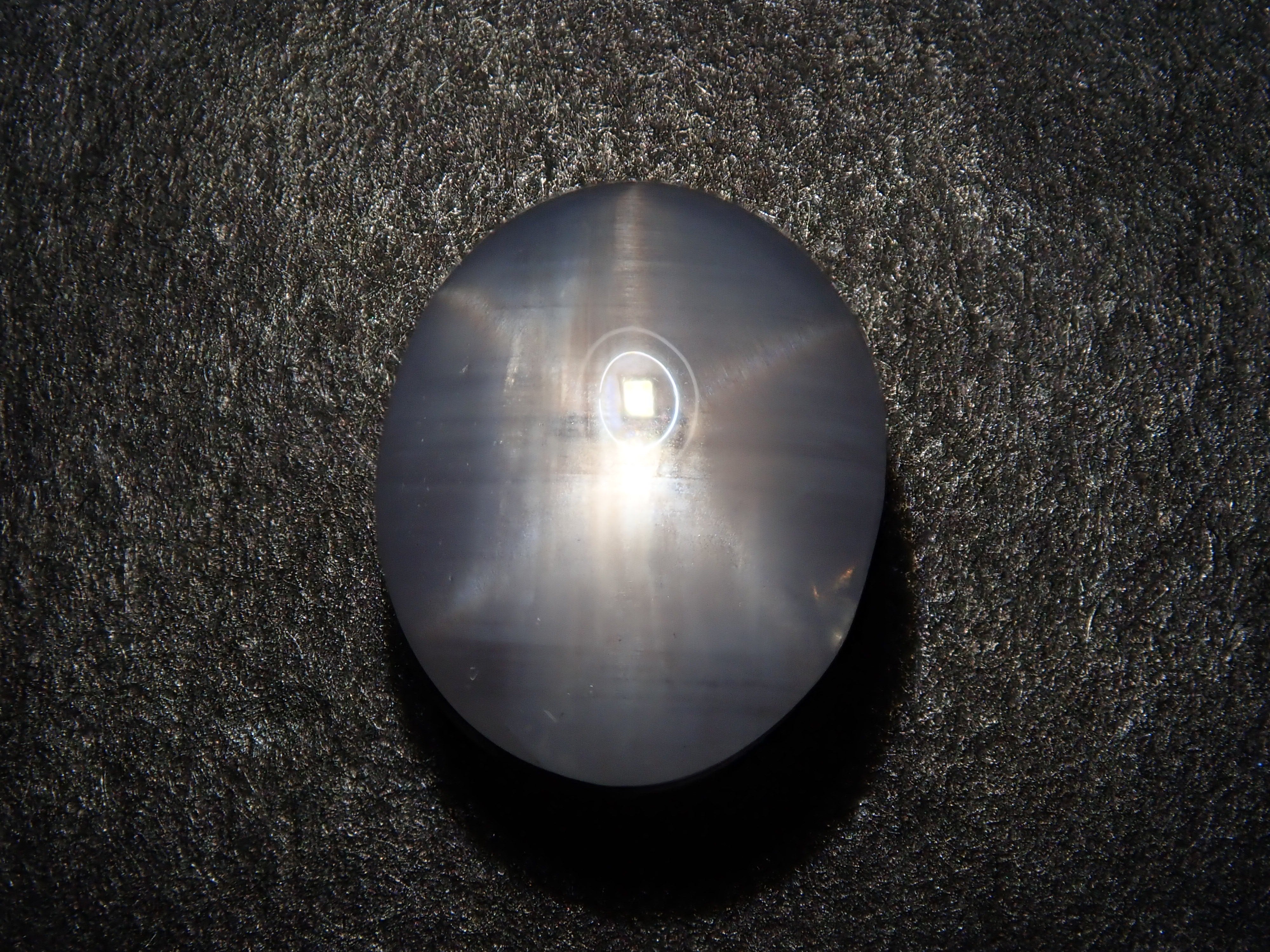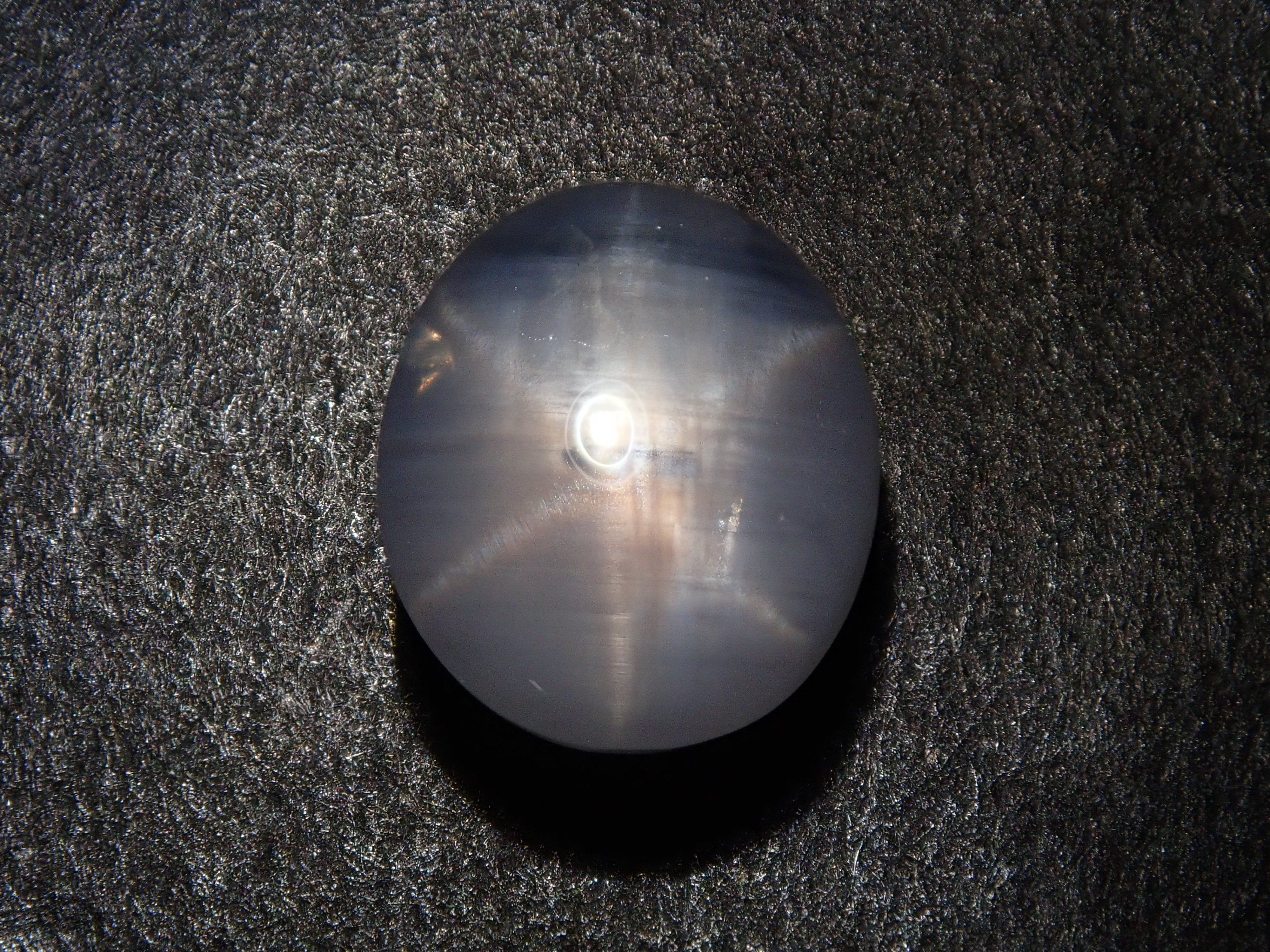 著名的藍寶石是一種著名的寶石。這顆藍寶石具有星光效果。藍寶石是僅次於鑽石的第二硬寶石,硬度為9,堅韌、穩定且易於保養。照片使用了筆型手電筒拍攝。寶石的背面通常未經拋光。