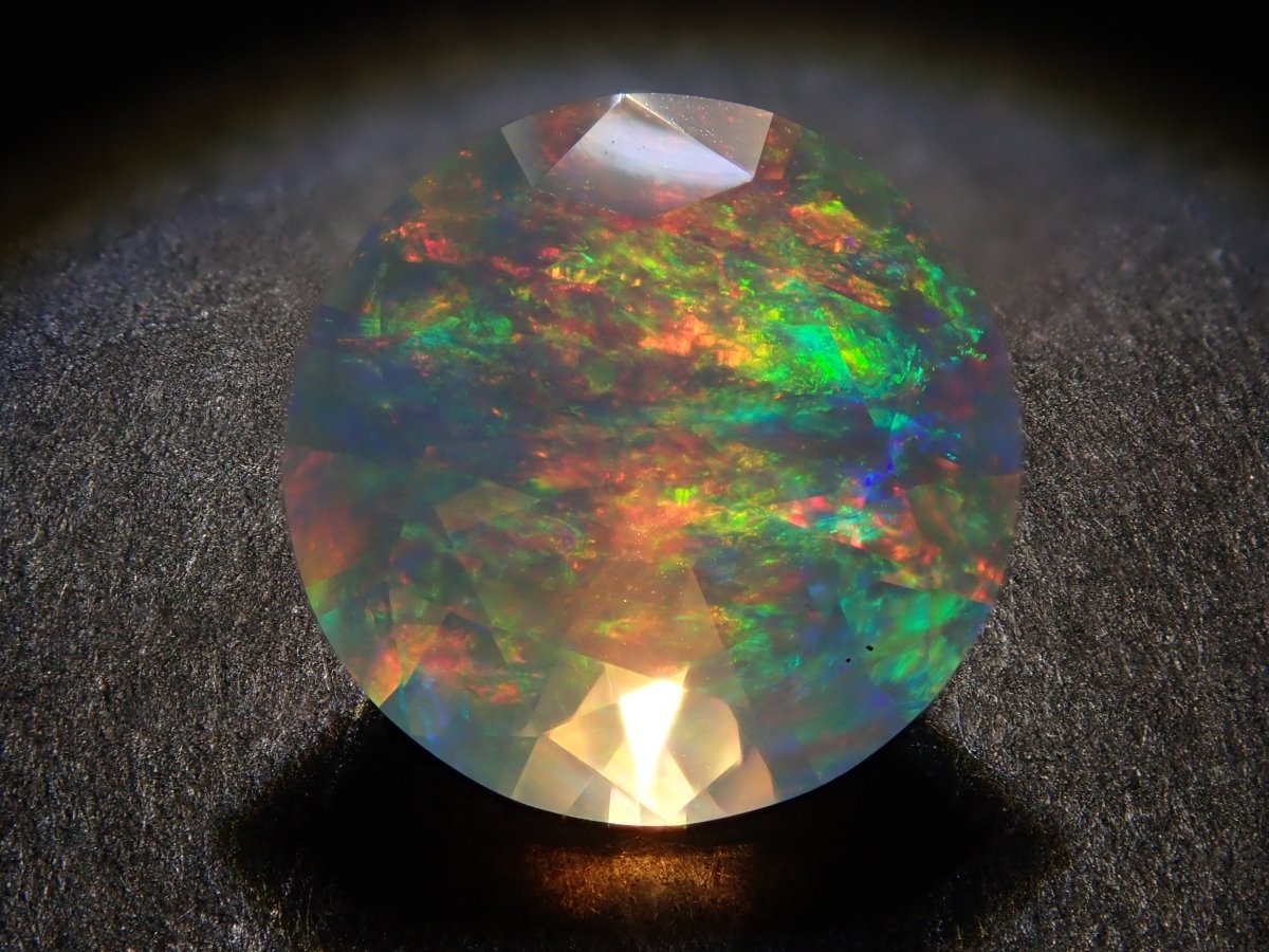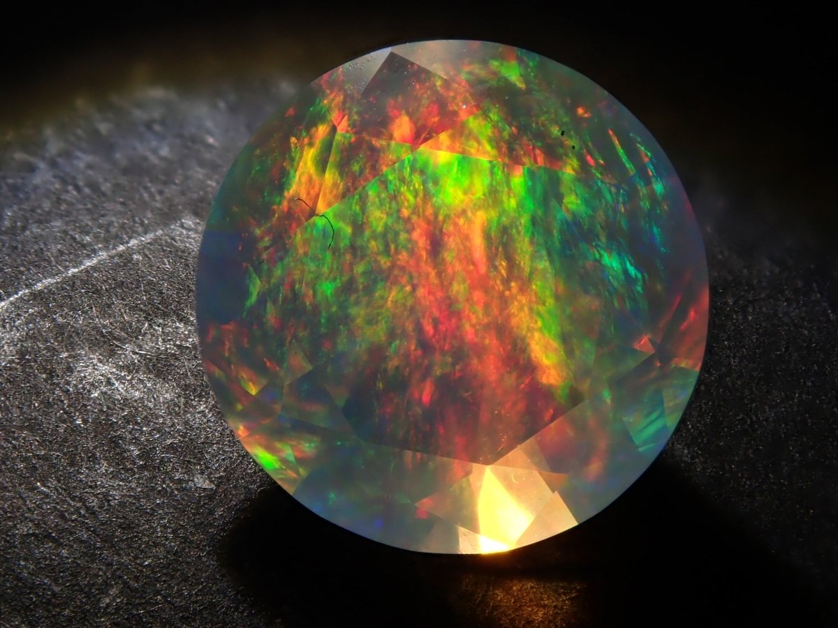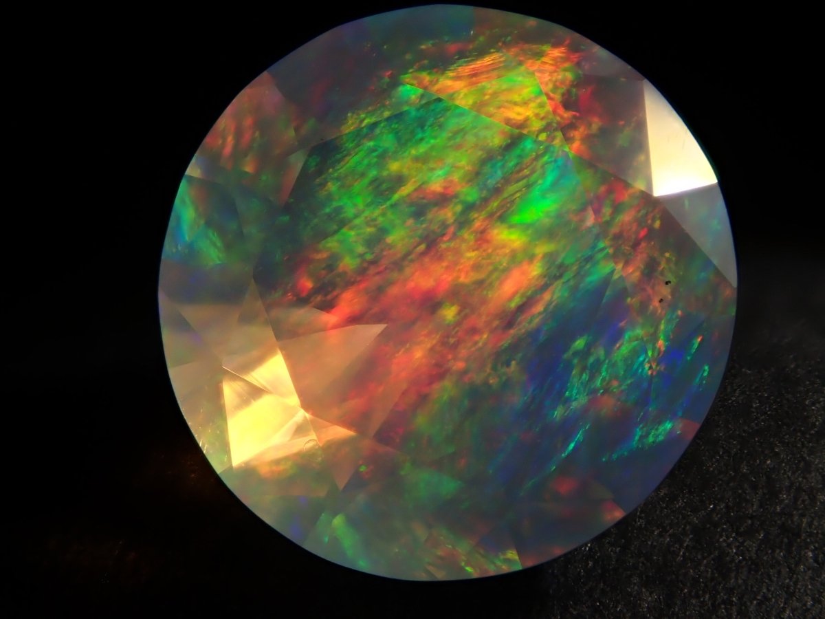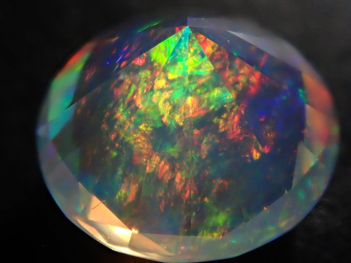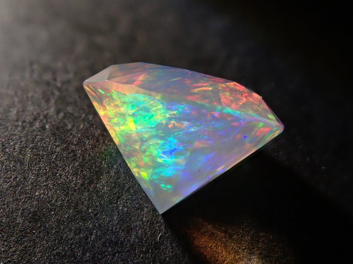 蛋白石是一種閃爍著彩虹色光芒的寶石。蛋白石是一種寶石,有許多不同的類型並具有多種表現形式。有些人被這種魅力所吸引,以至於只收集蛋白石。照片是使用筆燈拍攝的。