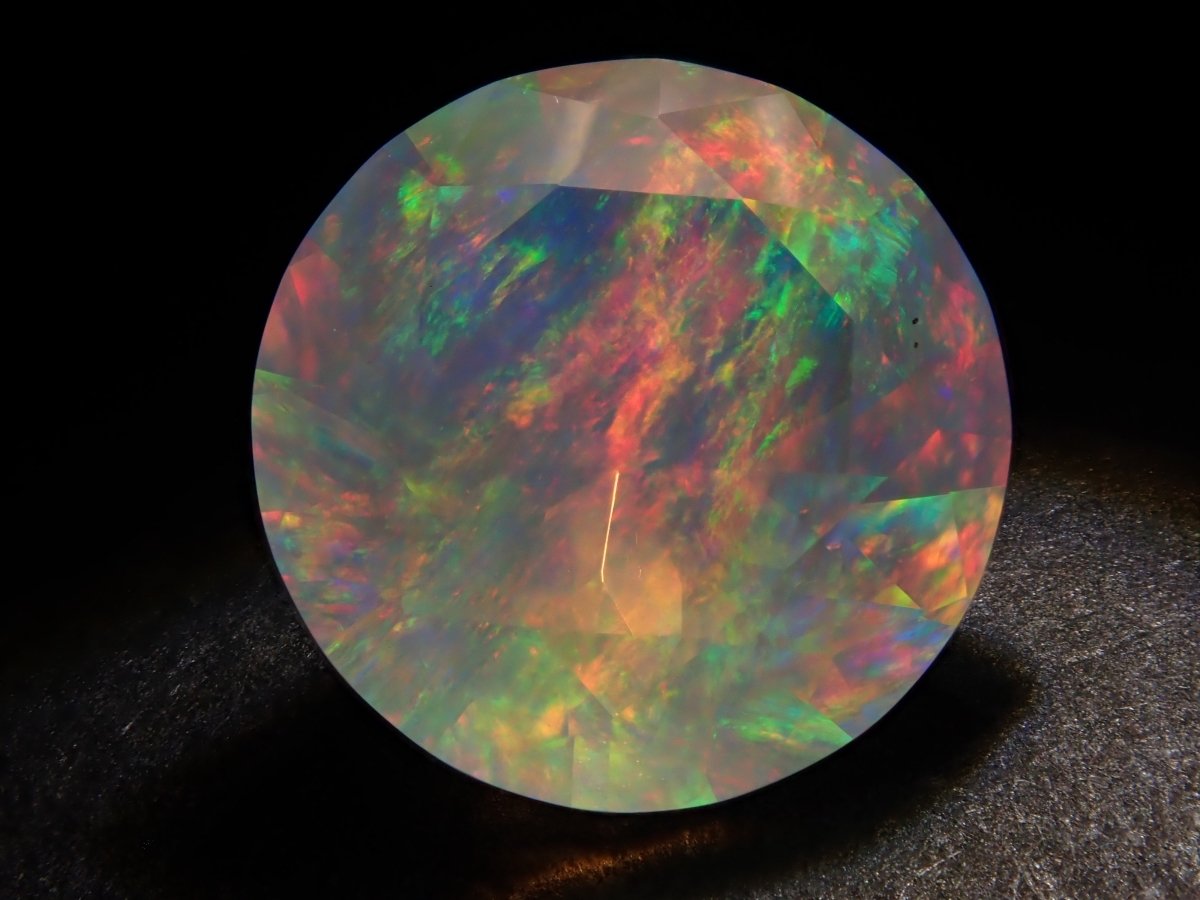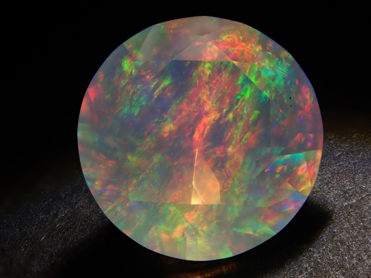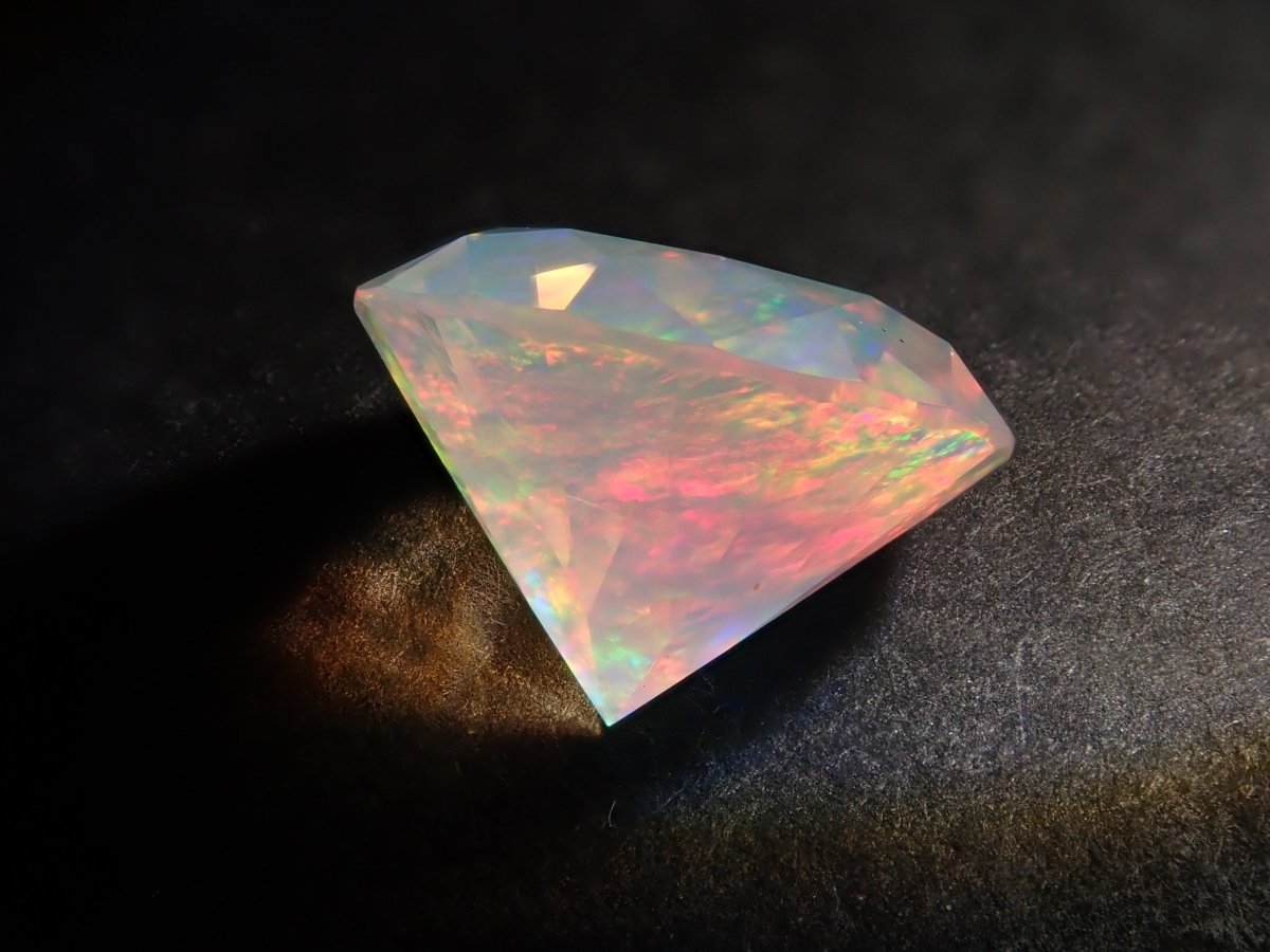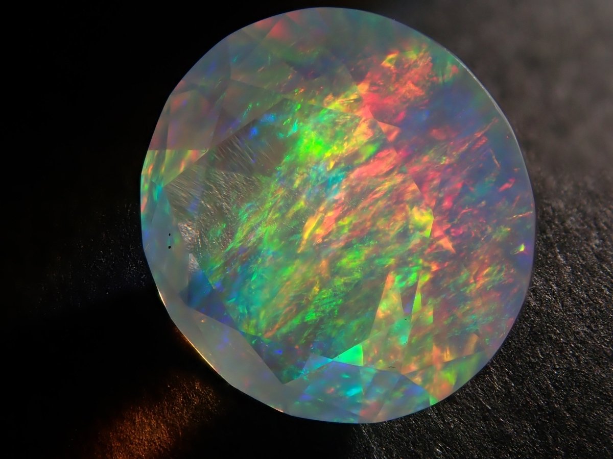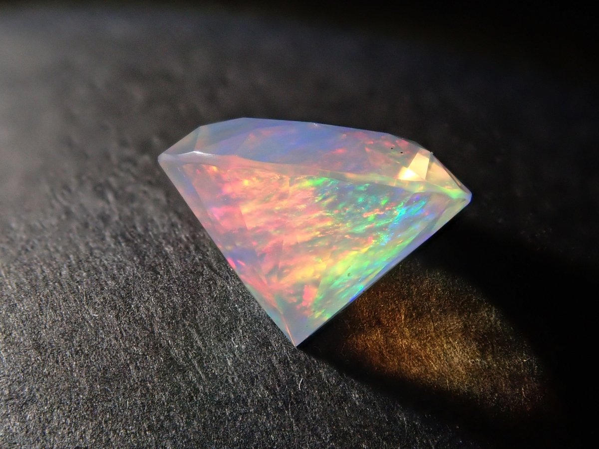 蛋白石是一種閃爍著彩虹色光芒的寶石。蛋白石是一種寶石,有許多不同的類型並具有多種表現形式。有些人被這種魅力所吸引,以至於只收集蛋白石。照片是使用筆燈拍攝的。