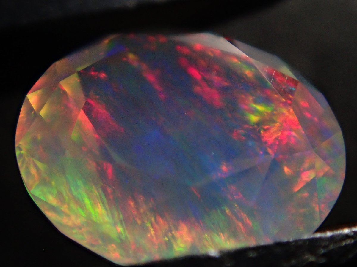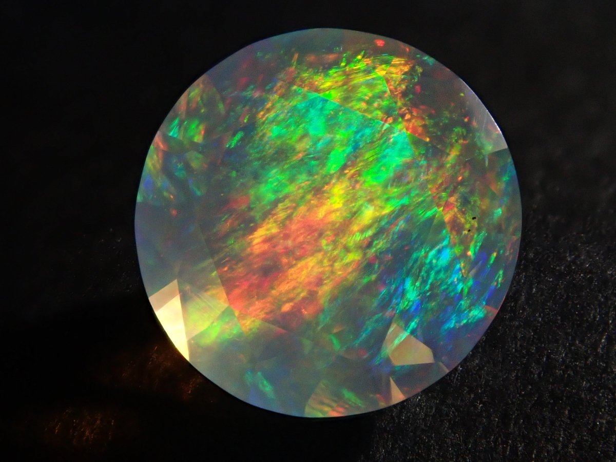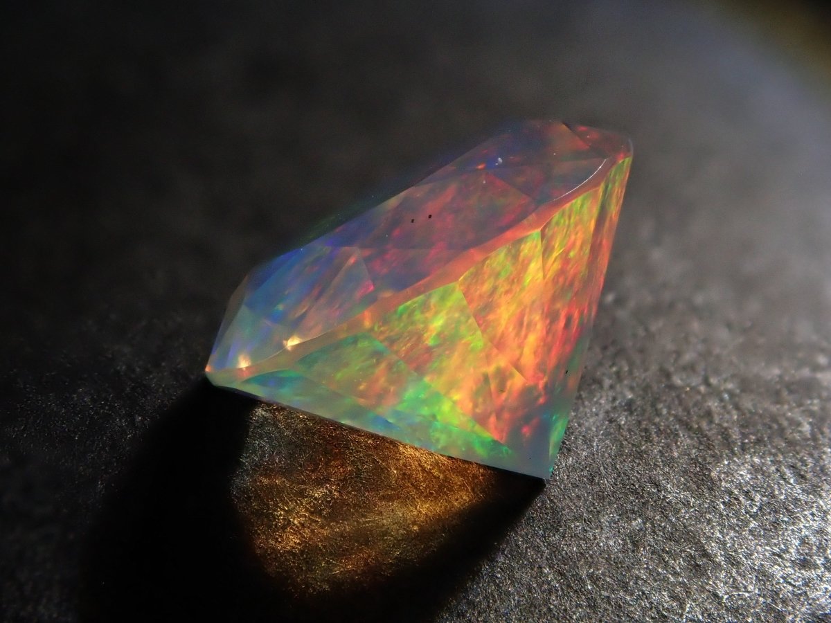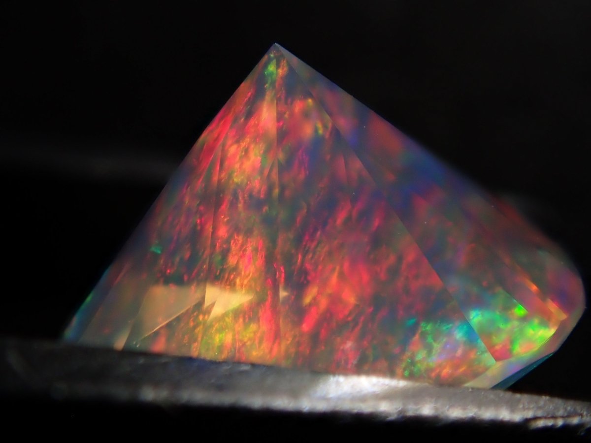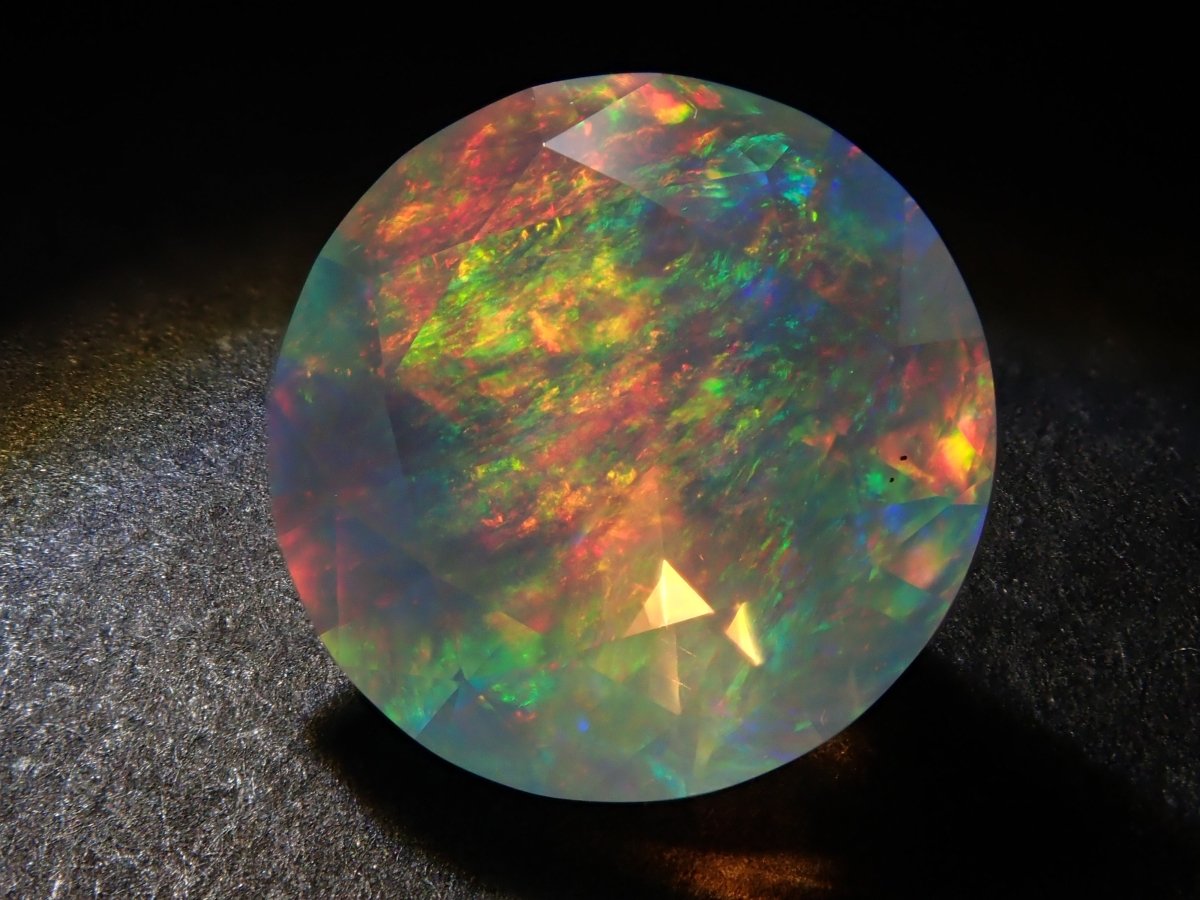 蛋白石是一種閃爍著彩虹色光芒的寶石。蛋白石是一種寶石,有許多不同的類型並具有多種表現形式。有些人被這種魅力所吸引,以至於只收集蛋白石。照片是使用筆燈拍攝的。
