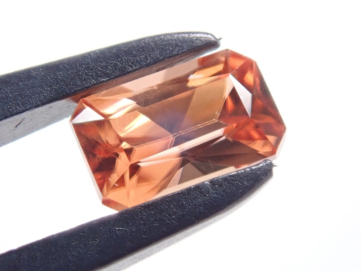 鋯石是世界上最古老的礦物。它是一種顏色多種多樣的石頭,具有高雙折射和一種稱為“雙重”的特性,使其閃閃發光。這是黃棕色類型。