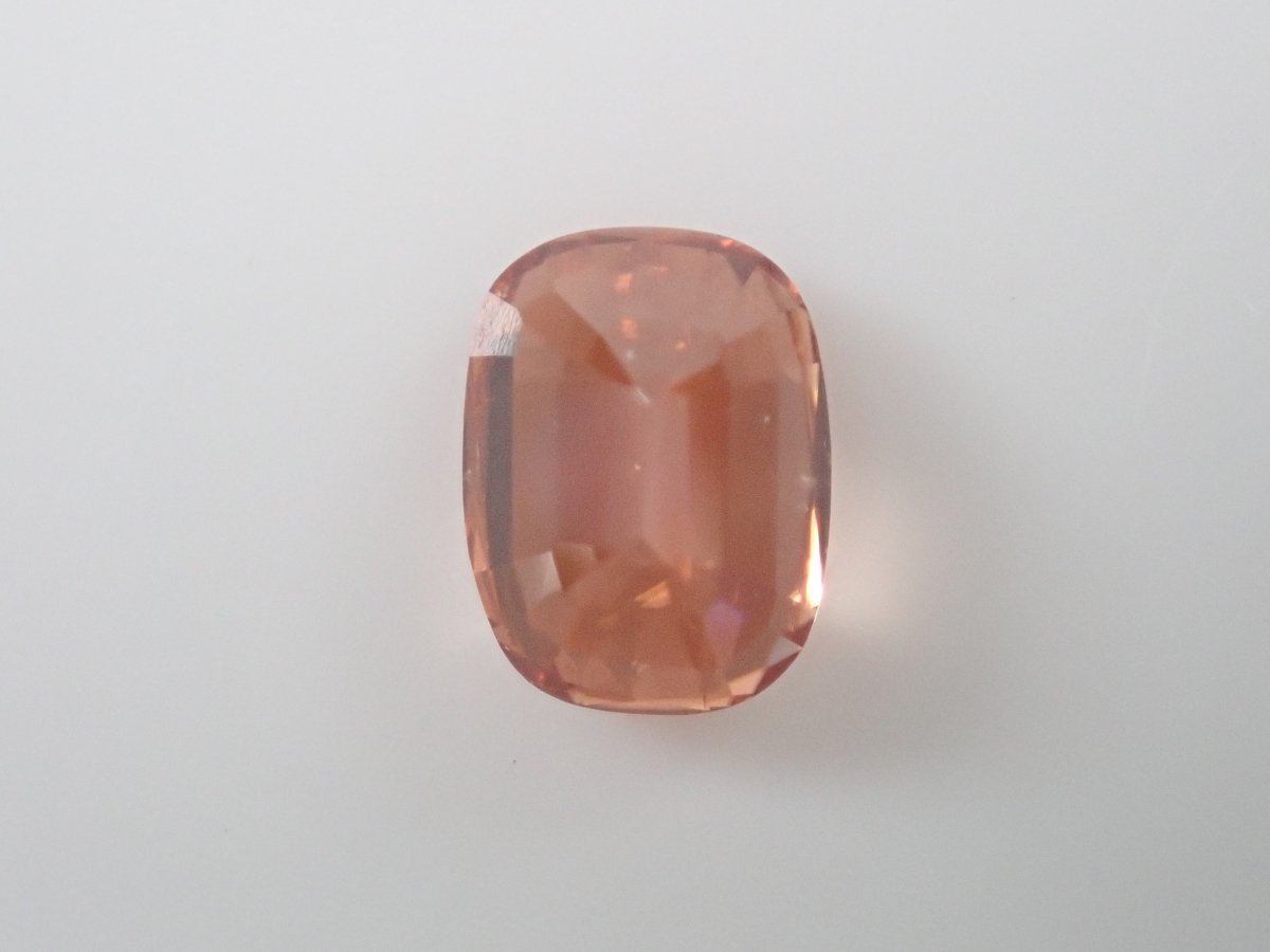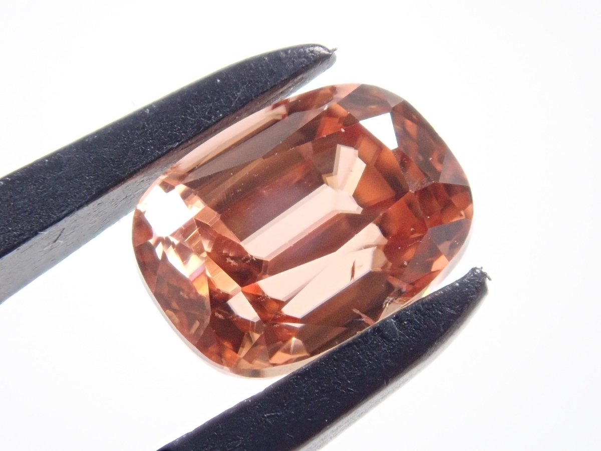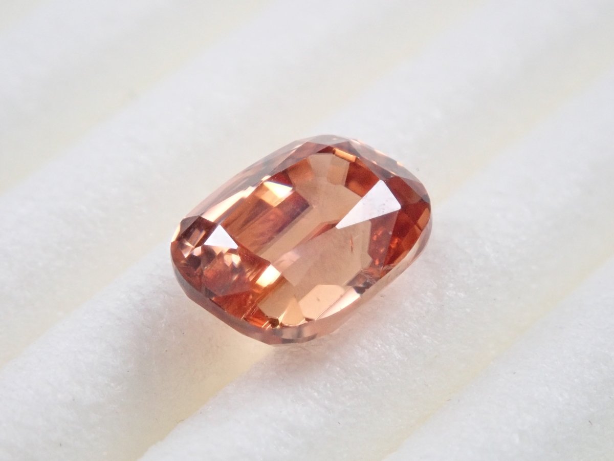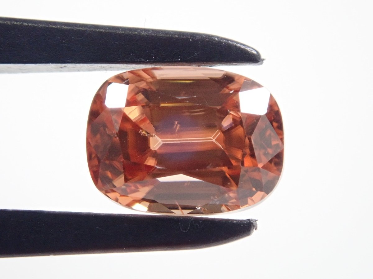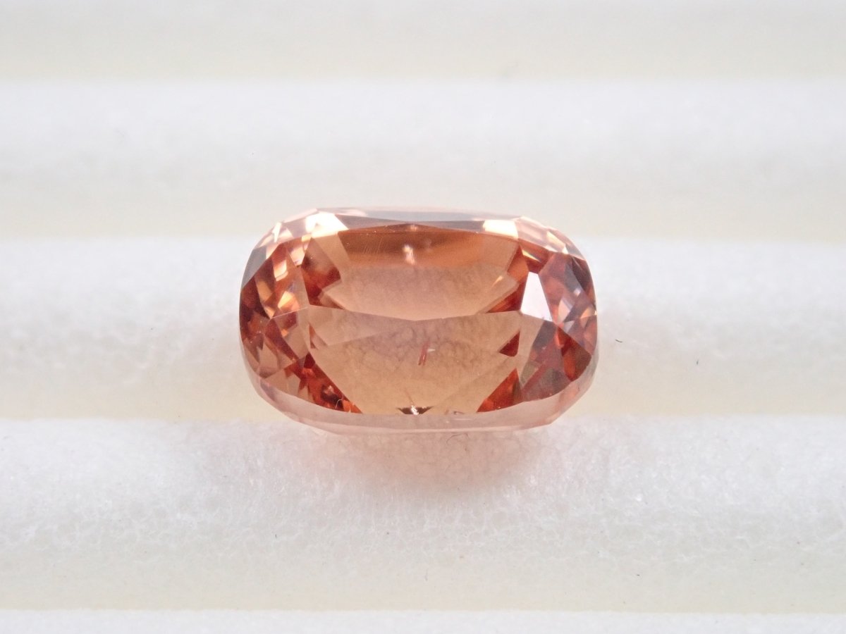 這是一顆來自柬埔寨的 1.519 克拉散裝墊形切割橙色鋯石,透明度高,閃閃發光。