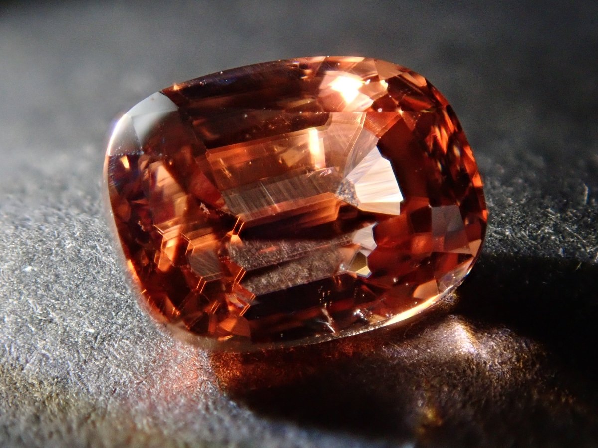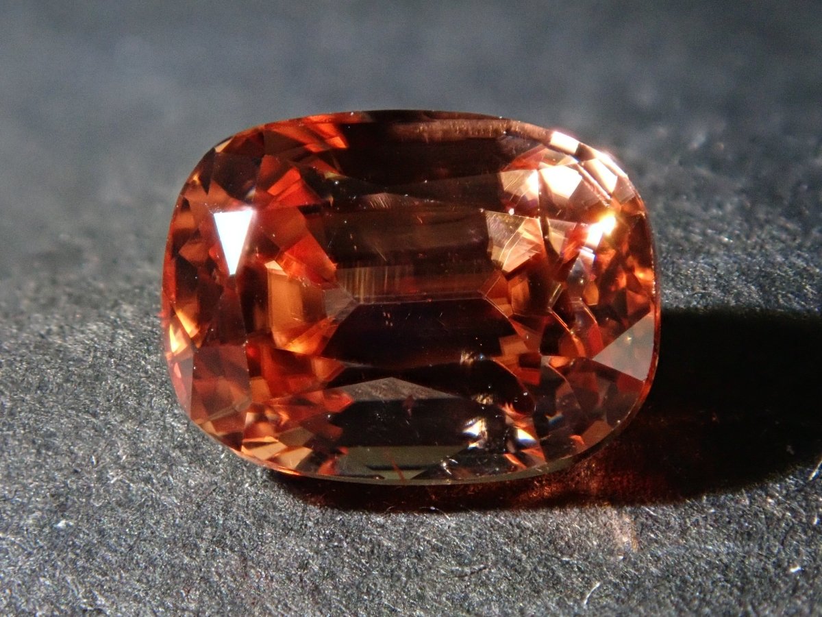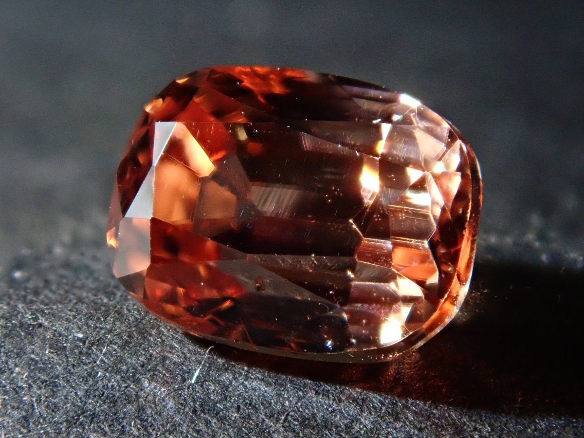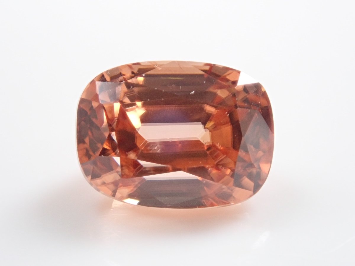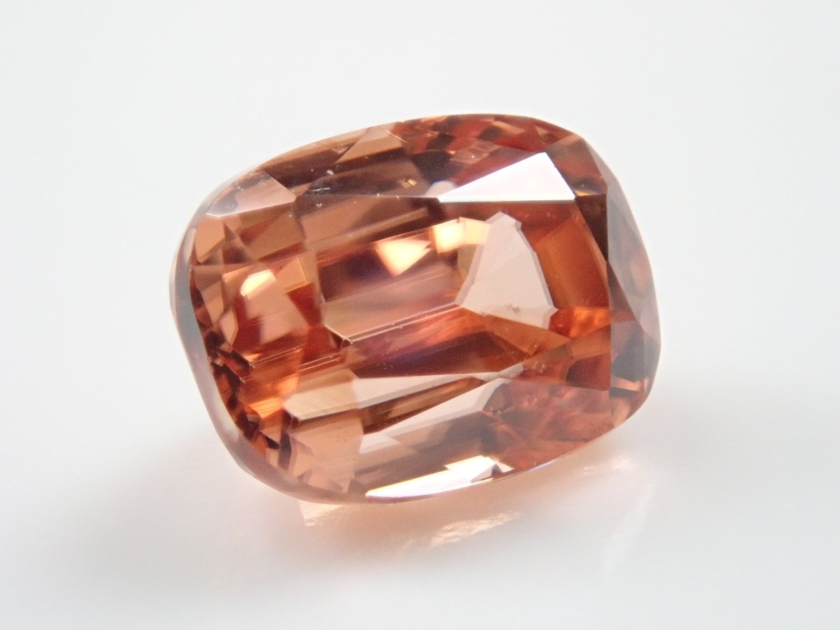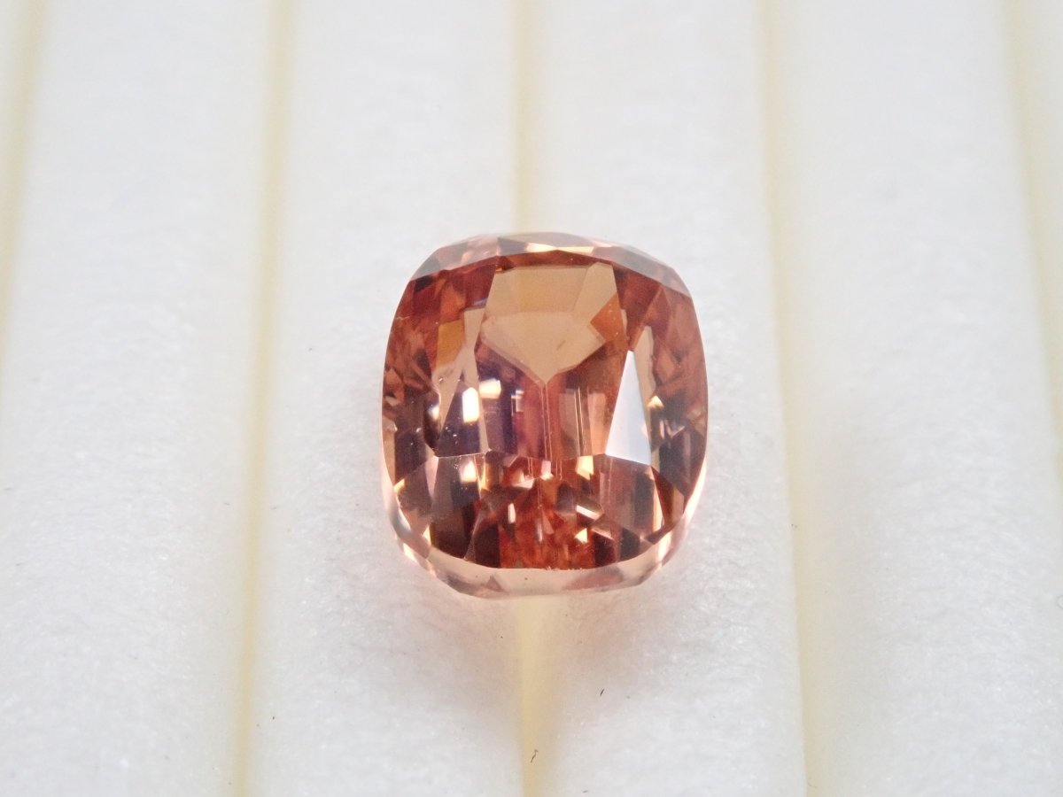 這是一顆來自柬埔寨的 1.519 克拉散裝墊形切割橙色鋯石,透明度高,閃閃發光。