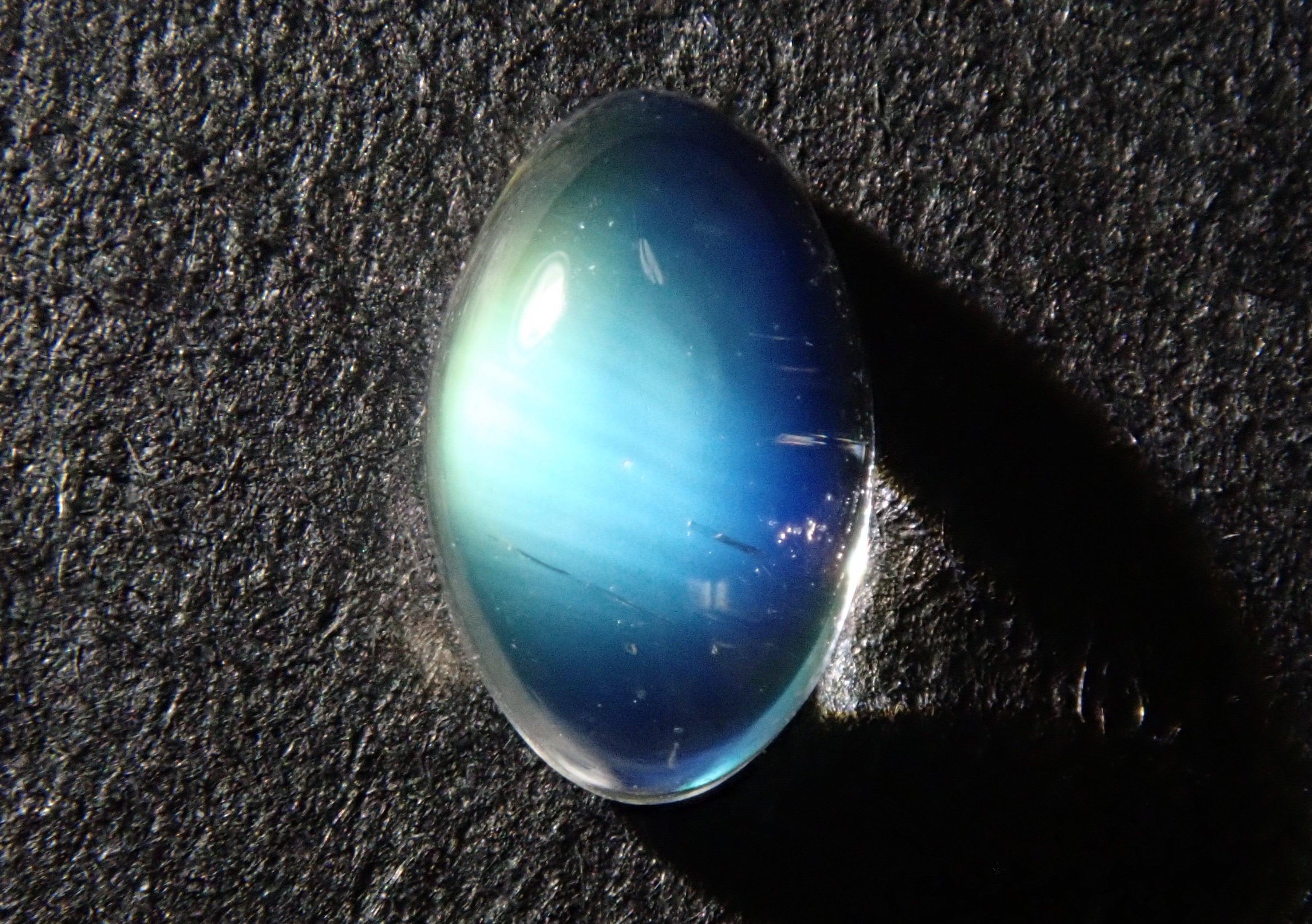這塊寶石位於斜長石組,介於中長石和拉長石之間。彩虹般的光學效果閃耀著神秘的光芒,讓人忍不住想永遠凝視它。