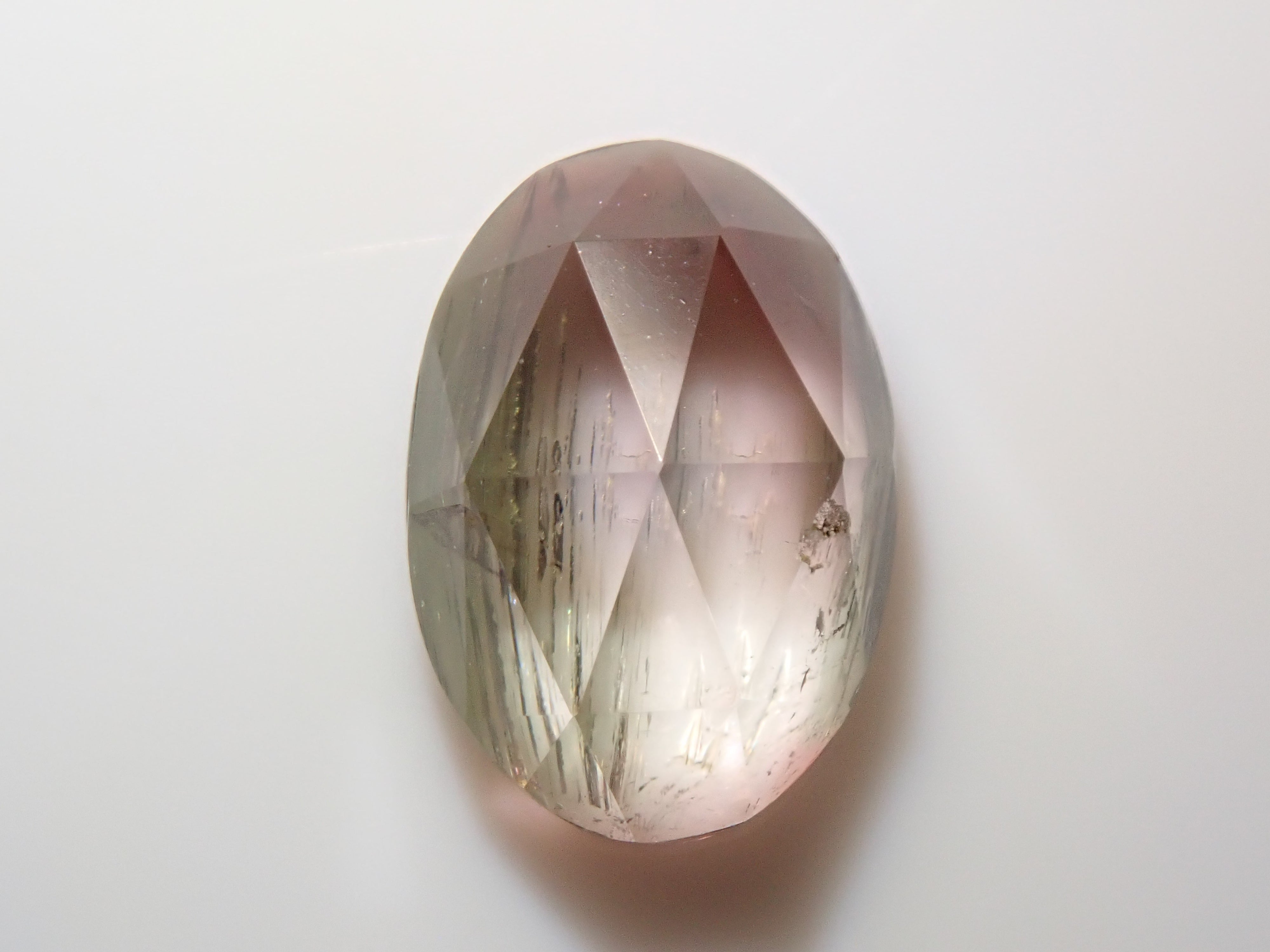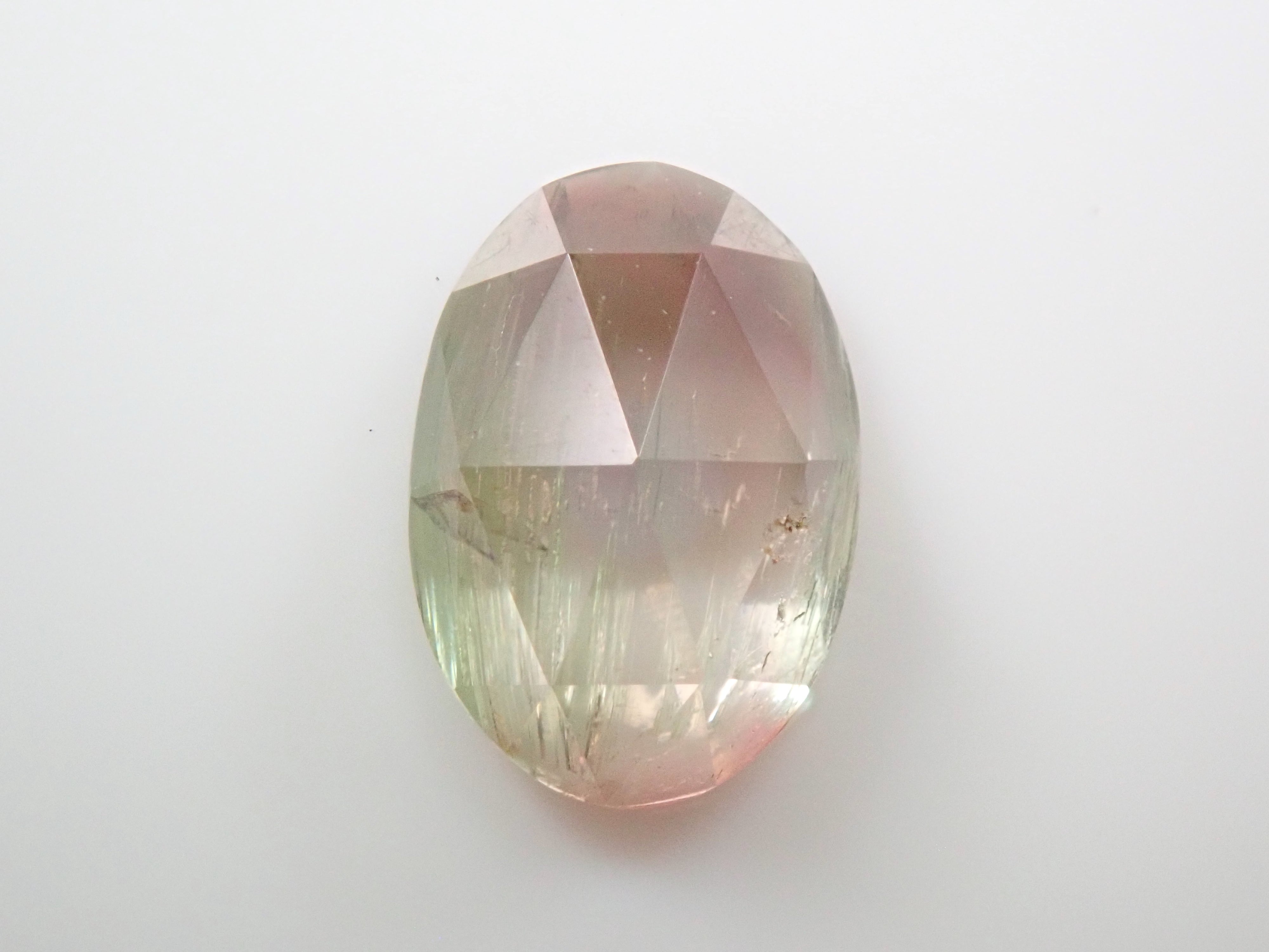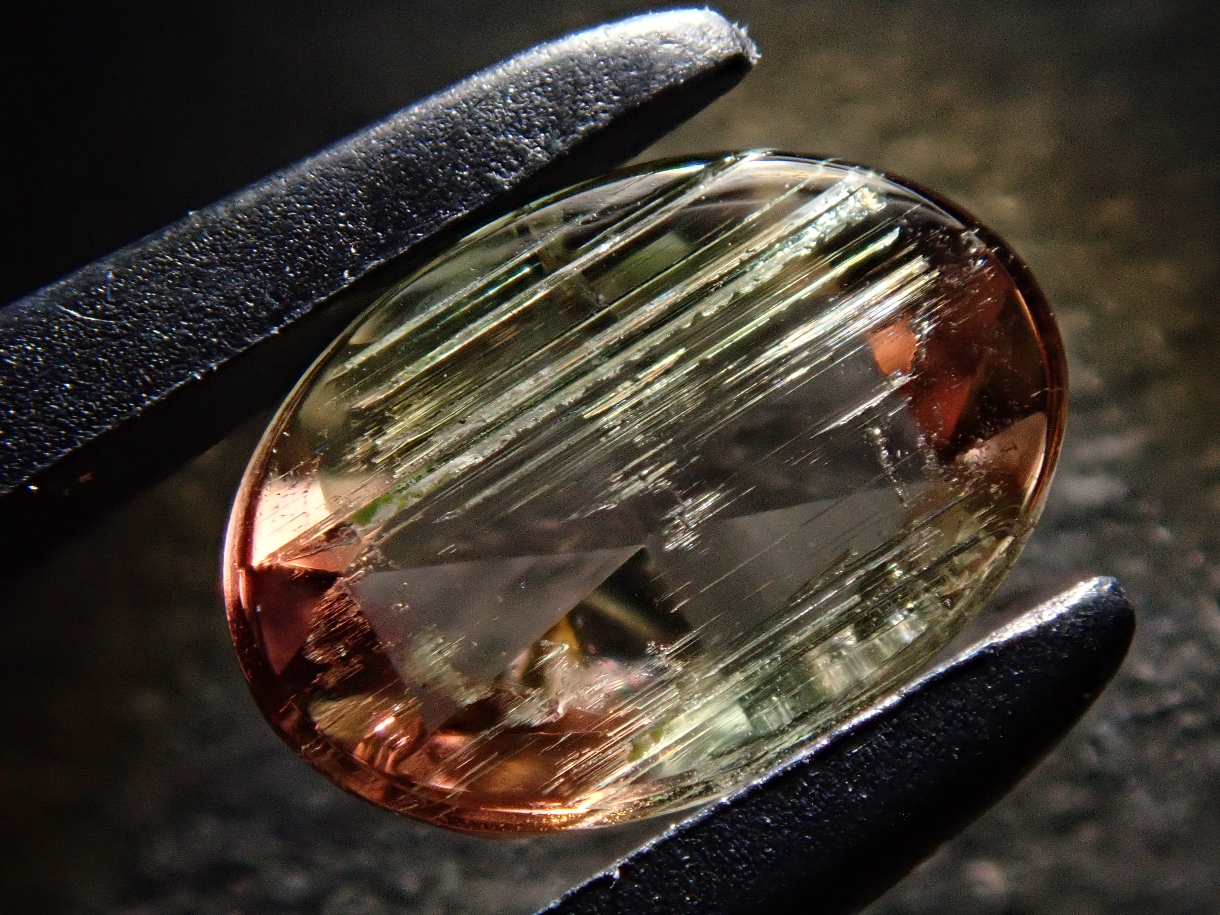 碧璽被稱為色彩寶庫。 「碧璽」一詞源自於僧伽羅語“Tourmali”,意為“五彩繽紛”。其中,一顆碧璽中蘊含兩種顏色,稱為「雙色碧璽」。它擁有豐富的色彩組合,深受收藏家的喜愛。這顆雙色碧璽由NOBU先生打造,他以貓眼式切割而聞名。這顆雙色碧璽的特徵是針狀內含物。