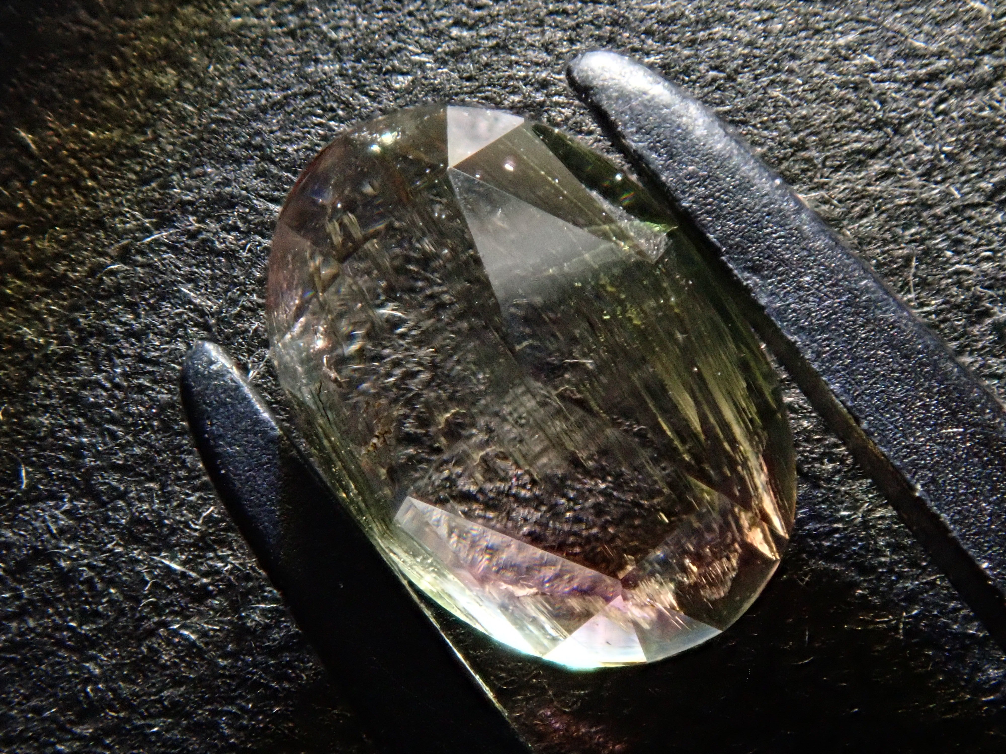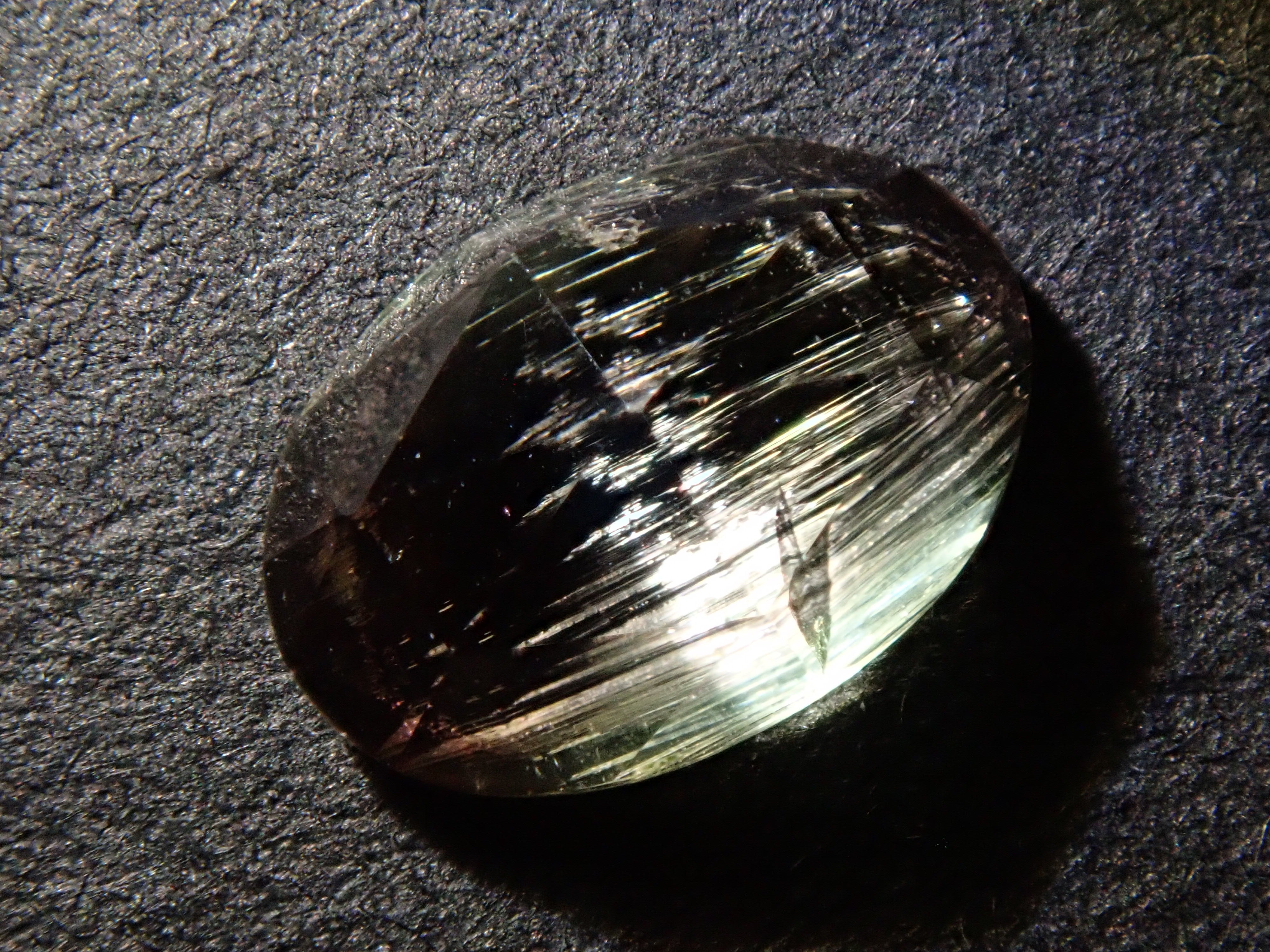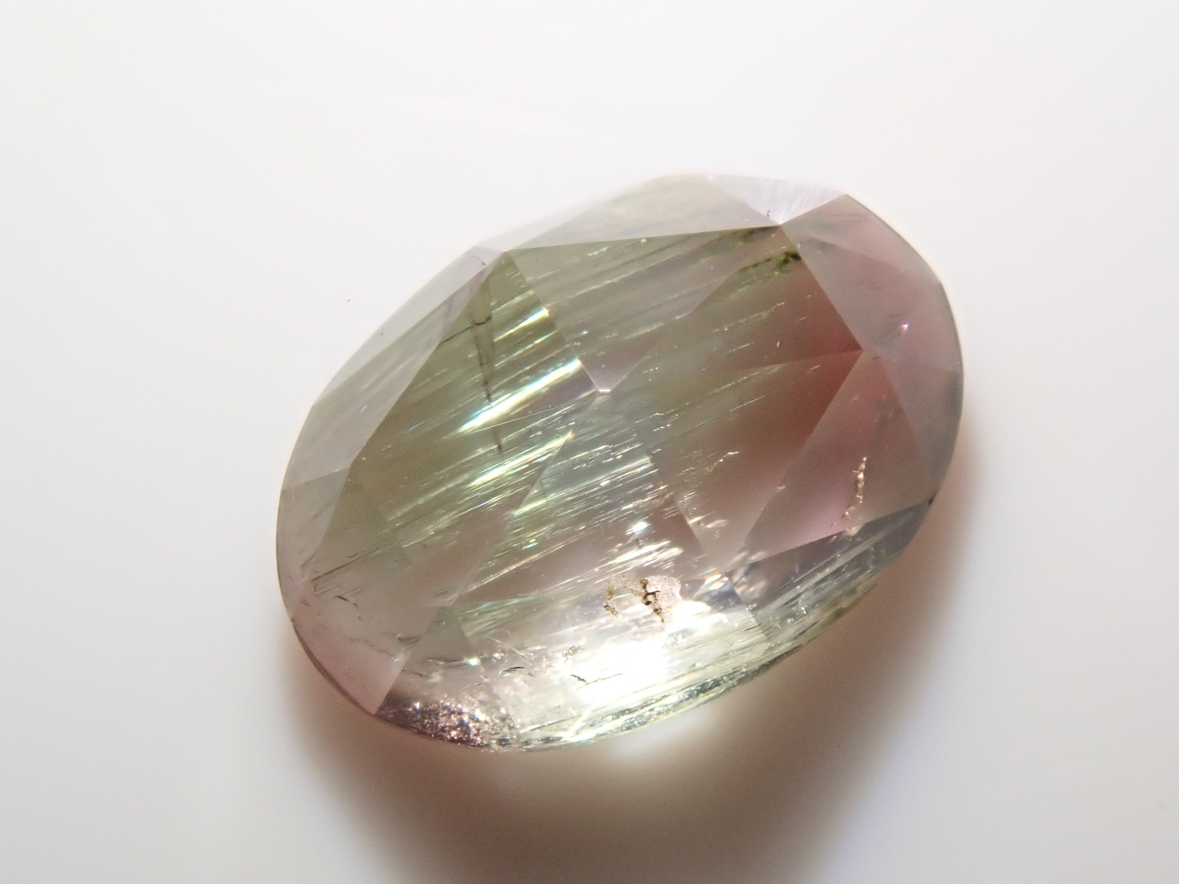 碧璽被稱為色彩寶庫。 「碧璽」一詞源自於僧伽羅語“Tourmali”,意為“五彩繽紛”。其中,一顆碧璽中蘊含兩種顏色,稱為「雙色碧璽」。它擁有豐富的色彩組合,深受收藏家的喜愛。這顆雙色碧璽由NOBU先生打造,他以貓眼式切割而聞名。這顆雙色碧璽的特徵是針狀內含物。