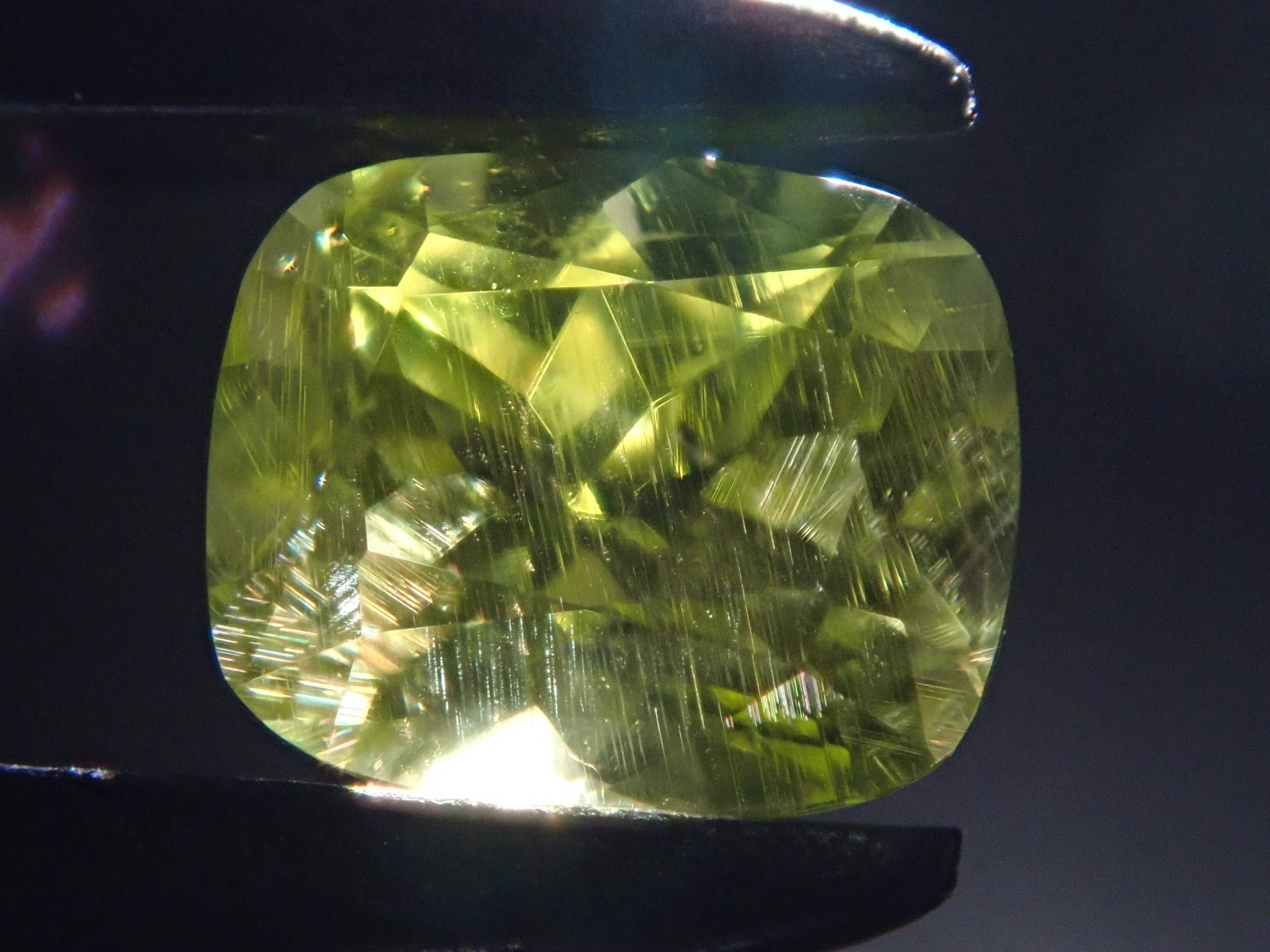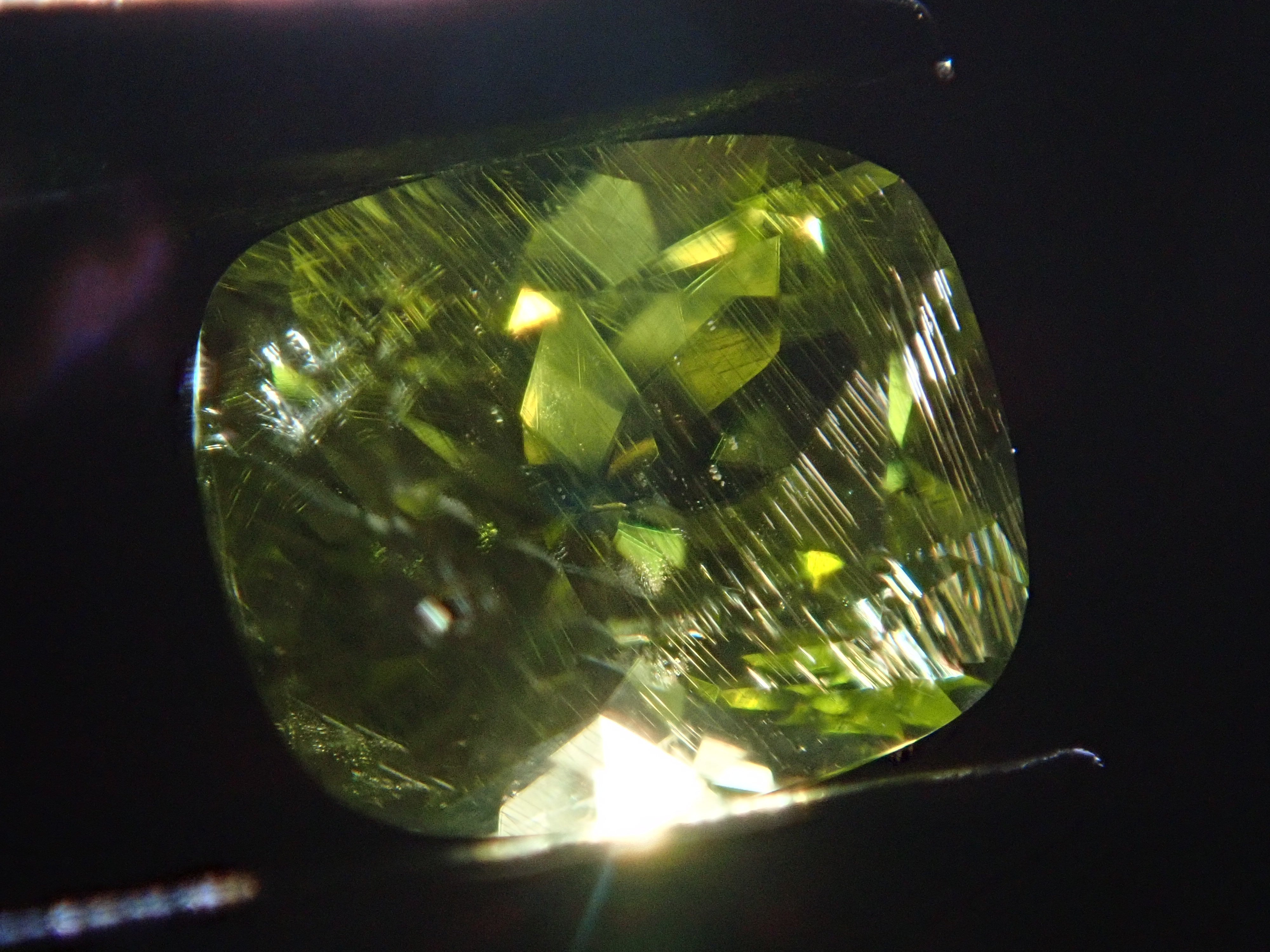 寄生橄欖石,內含物看起來像流星。寶石級 0.5ctUP 流星內含物類型的分佈非常少。