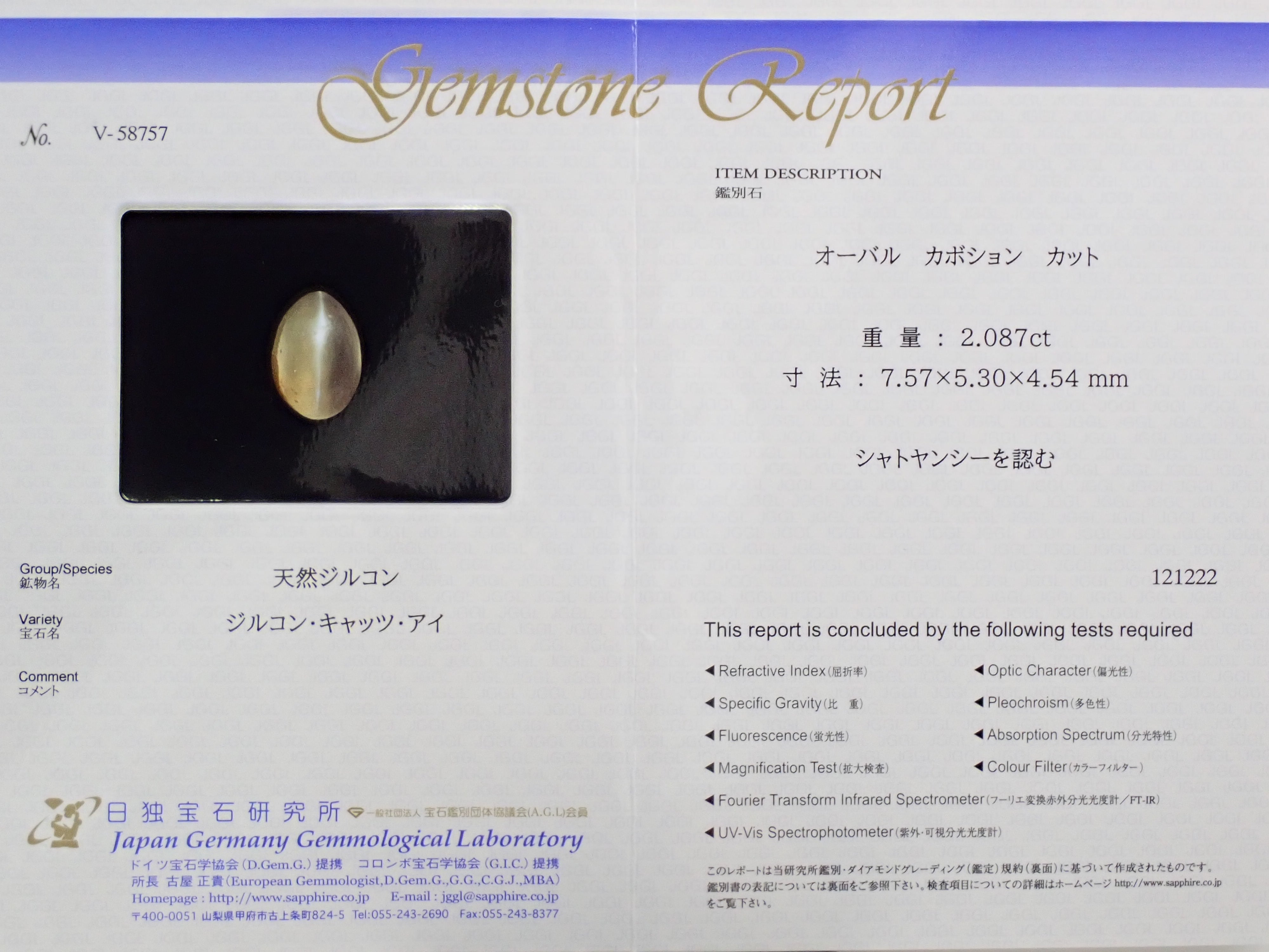來自斯里蘭卡的鋯石貓眼 2.087 克拉 Ruth 日德版