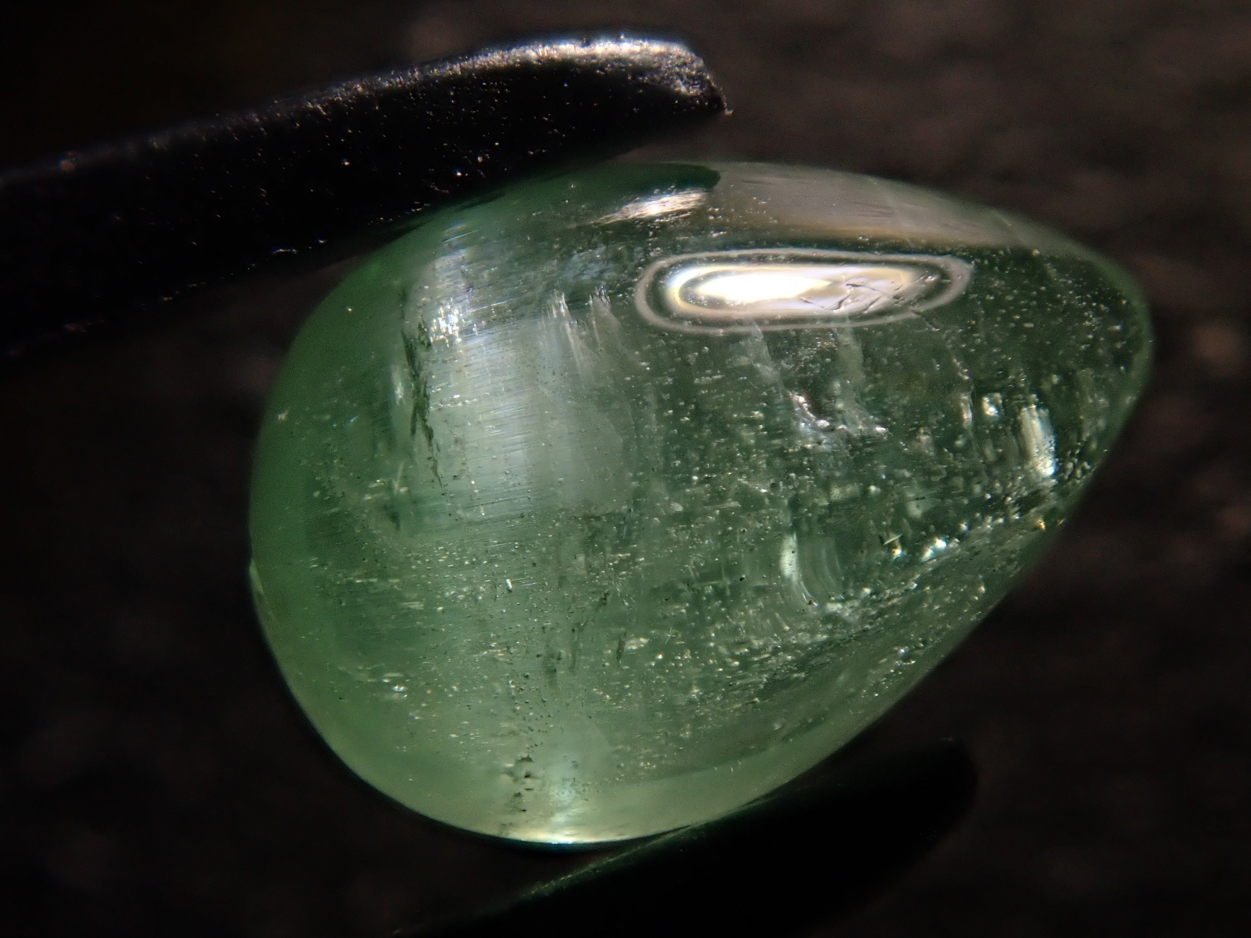 山茱萸因其多色性而引人注目,這使得從不同角度觀看時呈現出不同的顏色。它是稀有寶石之一。有些會神奇地改變顏色,從藍色變成紫色,變成綠色,再變成透明。這種類型具有罕見的貓眼效應。筆燈用於攝影。石頭的背面基本上是未拋光的。