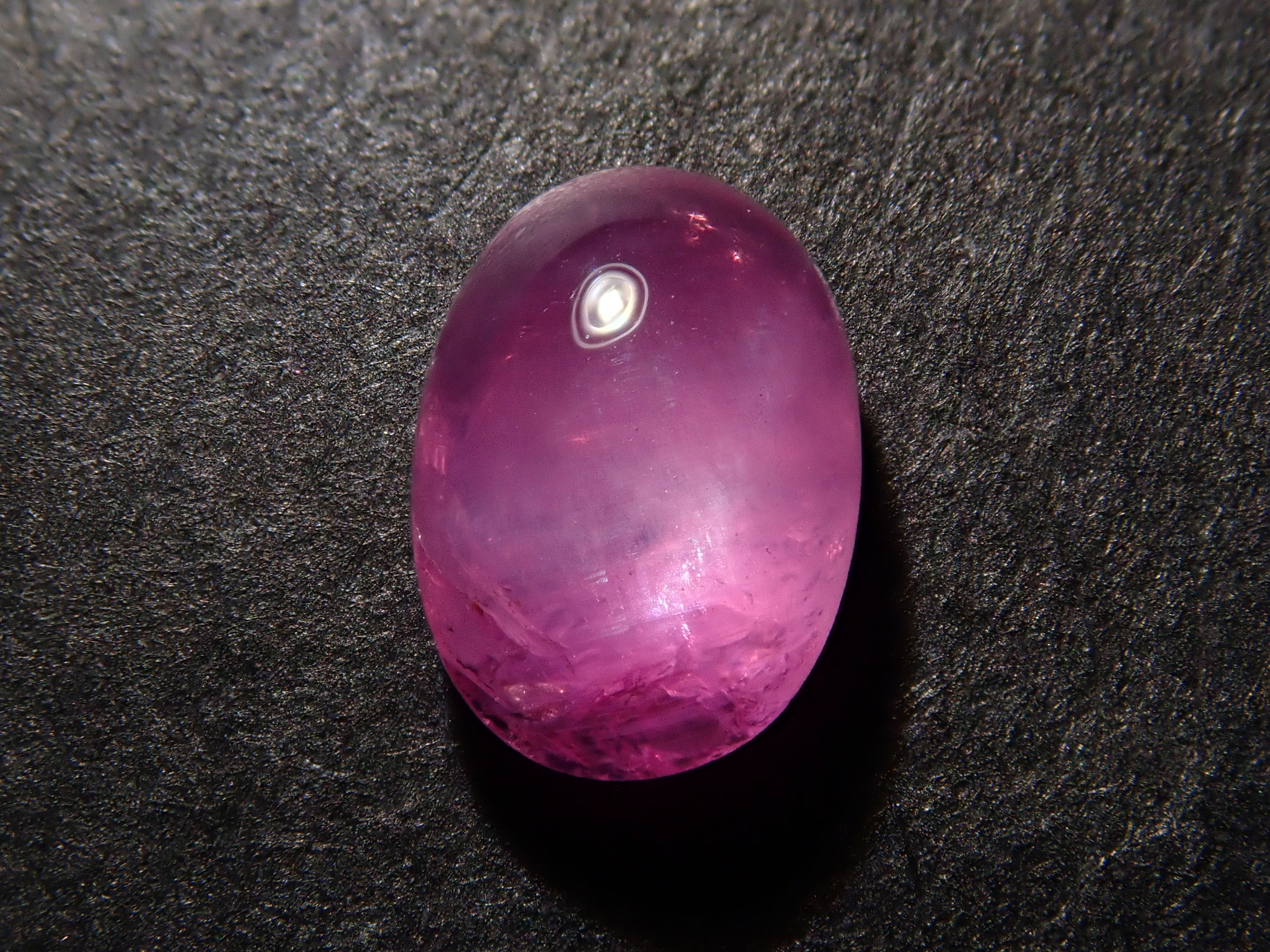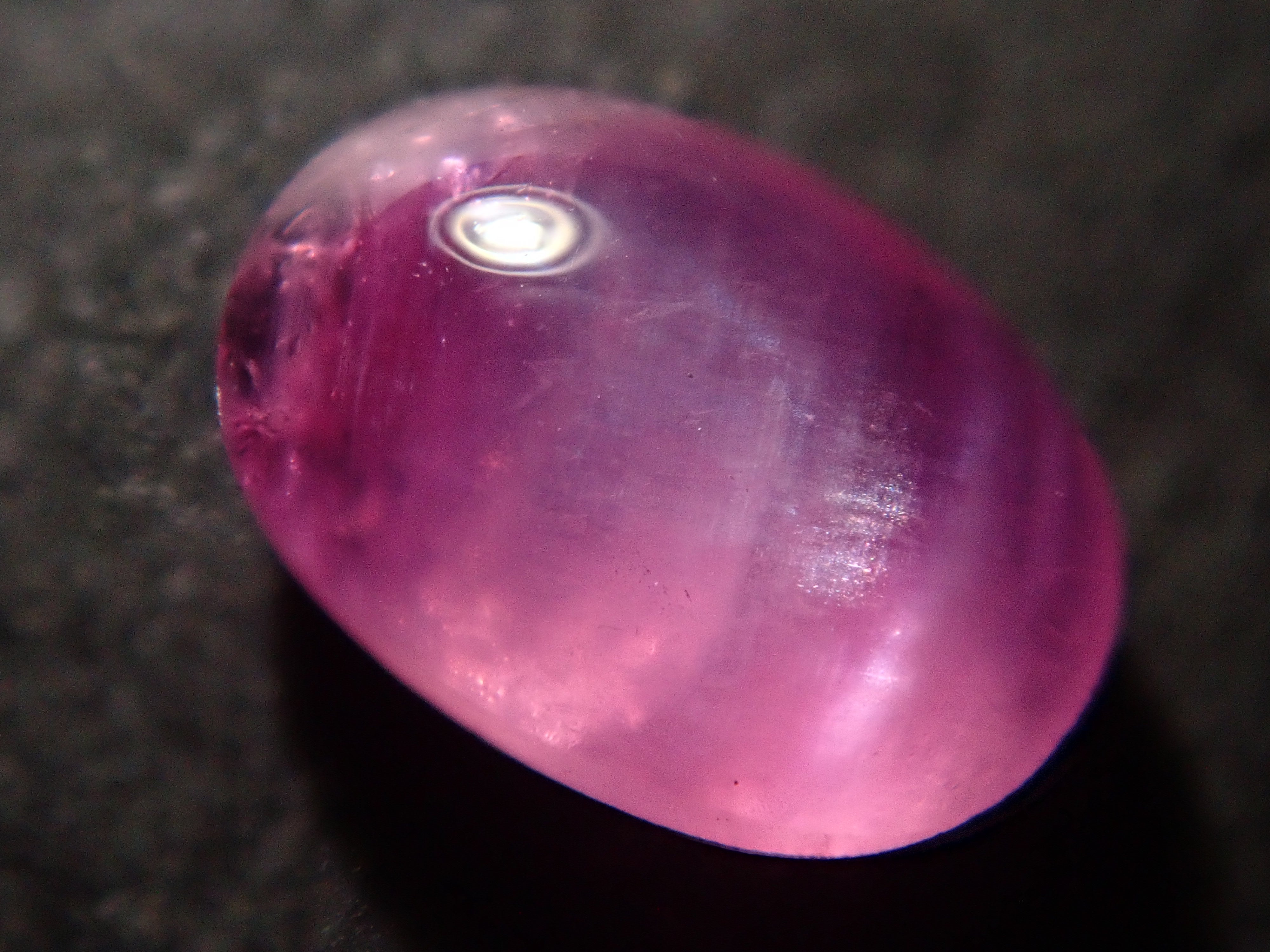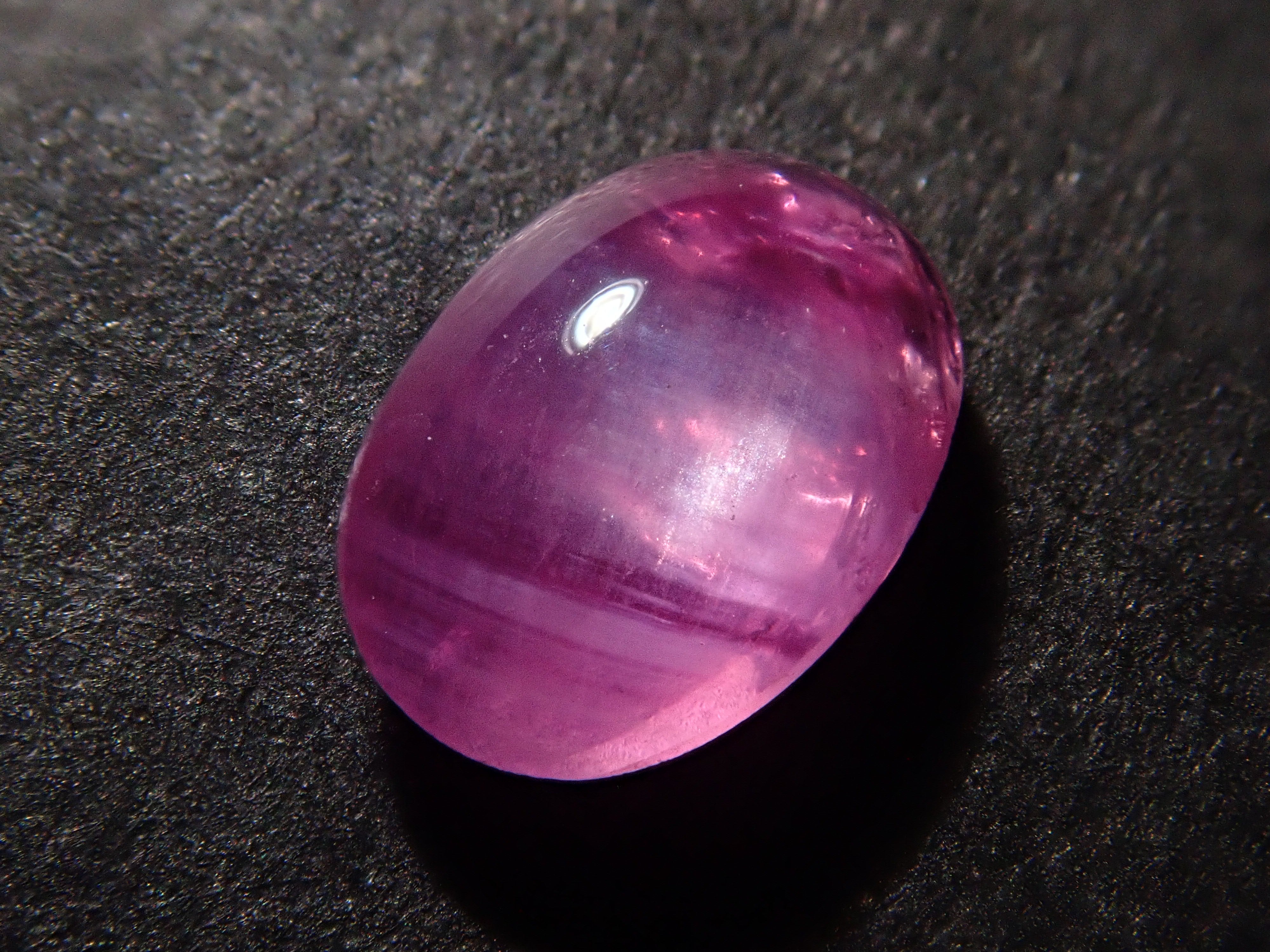 藍寶石是一種著名的寶石。礦物為剛玉,與紅寶石相同,但除紅色以外的所有剛玉稱為藍寶石。這是一顆具有星光效果的粉紅色藍寶石。筆燈用於攝影。石頭的背面基本上是未拋光的。