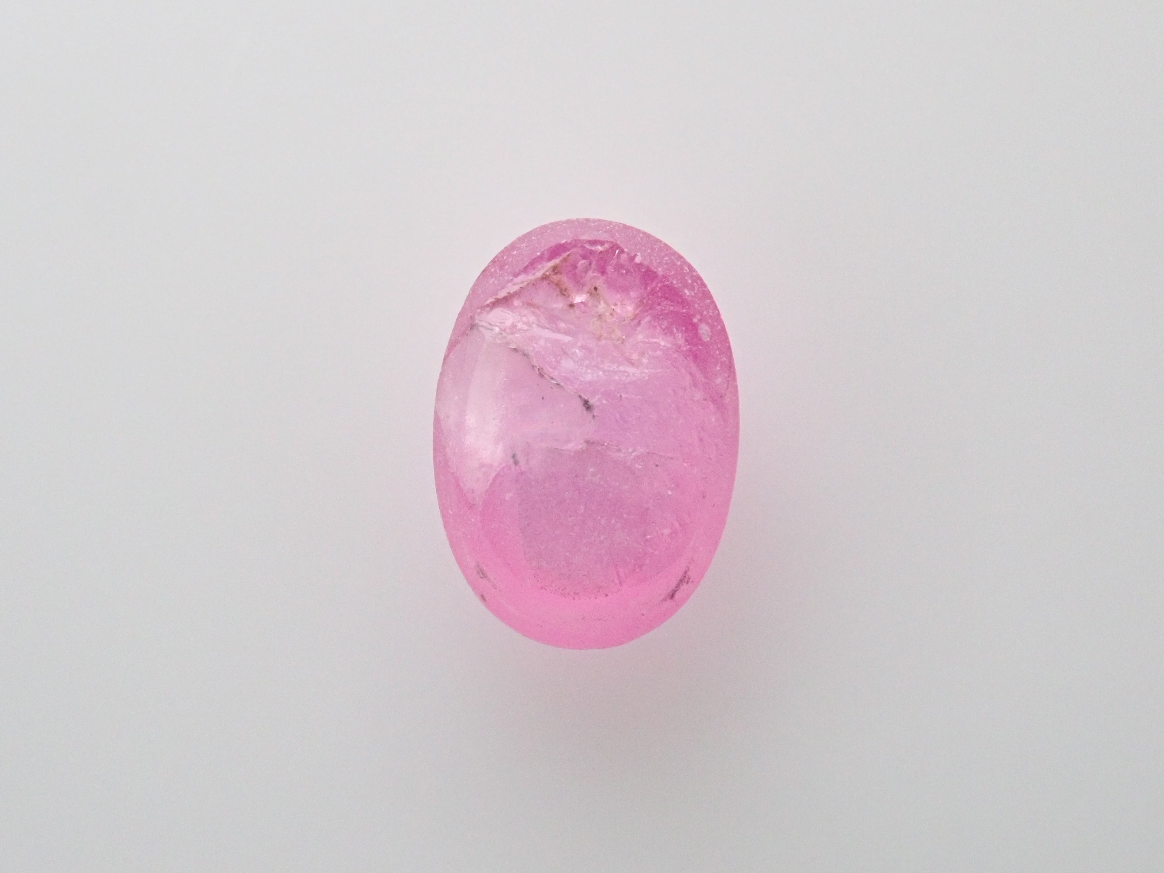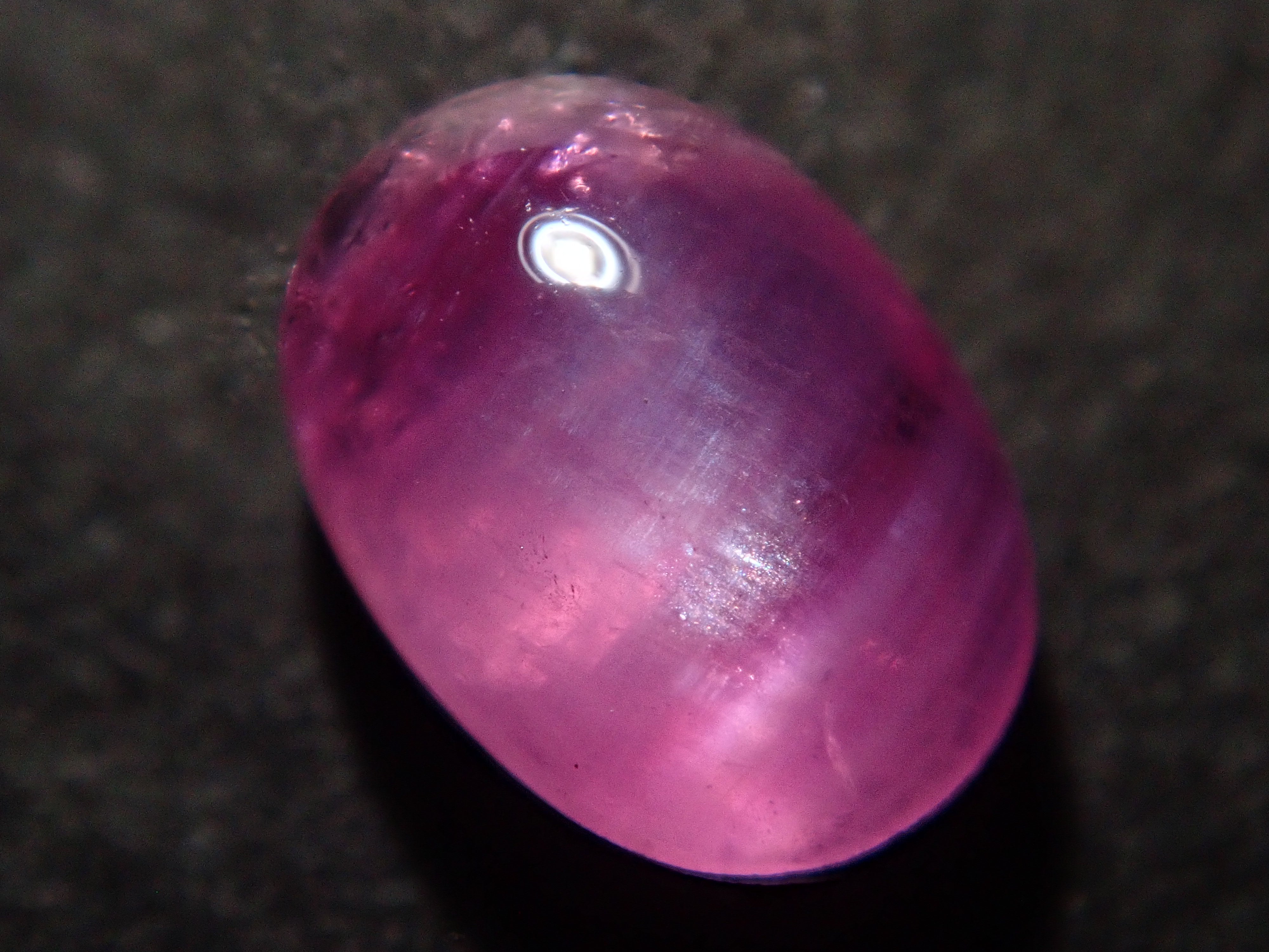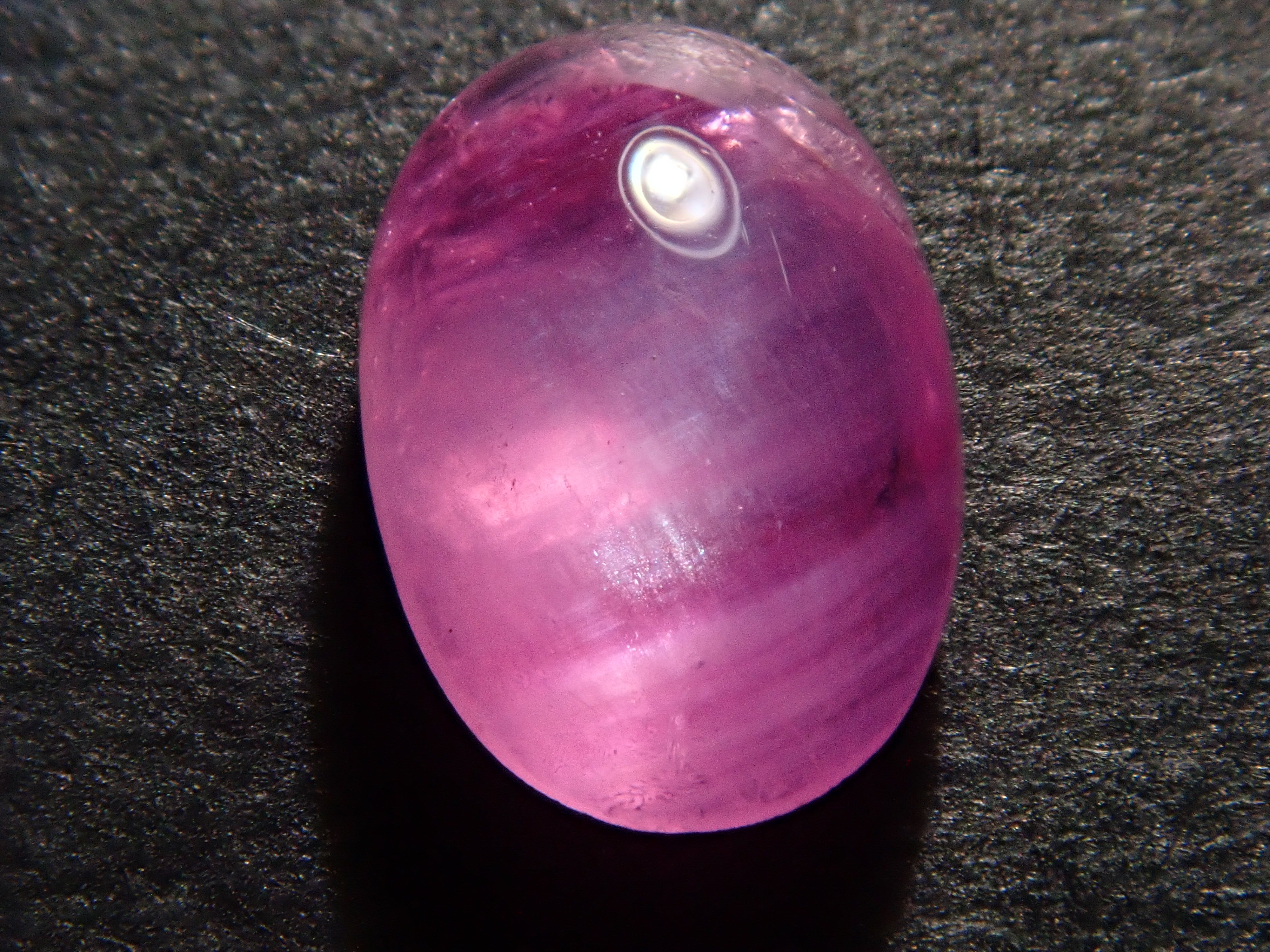 藍寶石是一種著名的寶石。礦物為剛玉,與紅寶石相同,但除紅色以外的所有剛玉稱為藍寶石。這是一顆具有星光效果的粉紅色藍寶石。筆燈用於攝影。石頭的背面基本上是未拋光的。