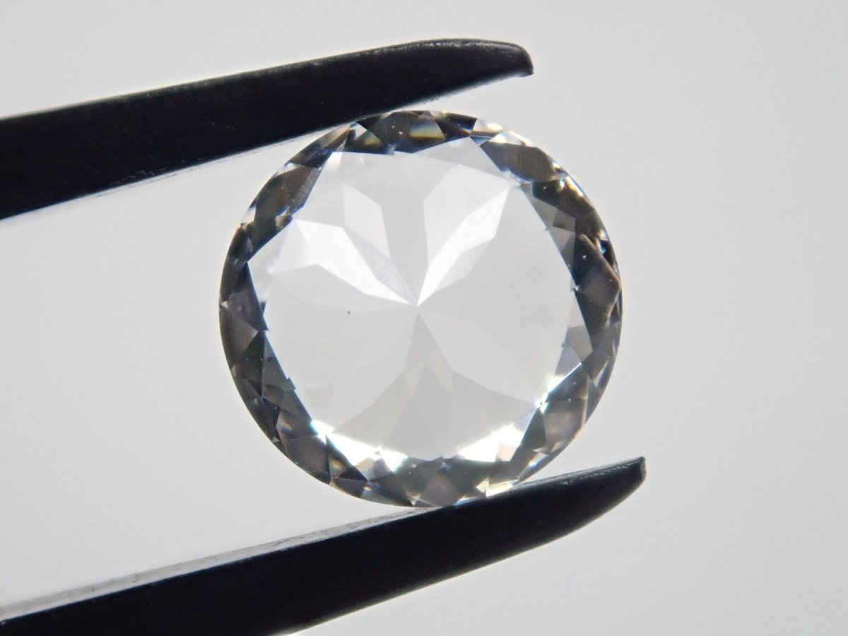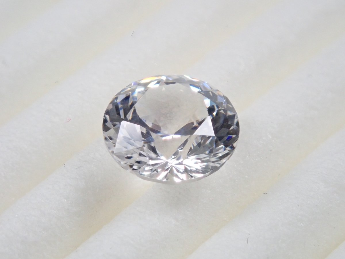 作為鑽石替代品製造的類似寶石的歷史可以追溯到 20 世紀 40 年代末的合成金紅石、20 世紀 50 年代的鈦酸鍶以及 1970 年代左右流通的人造寶石,例如YAG(釔鋁石榴石) 。 ,它是一種人造石,是钆鎵石榴石(GGG)的表親。它是由斯里蘭卡拋光師 Sanje 先生葡萄牙切割的。尺寸為 6.5 毫米。