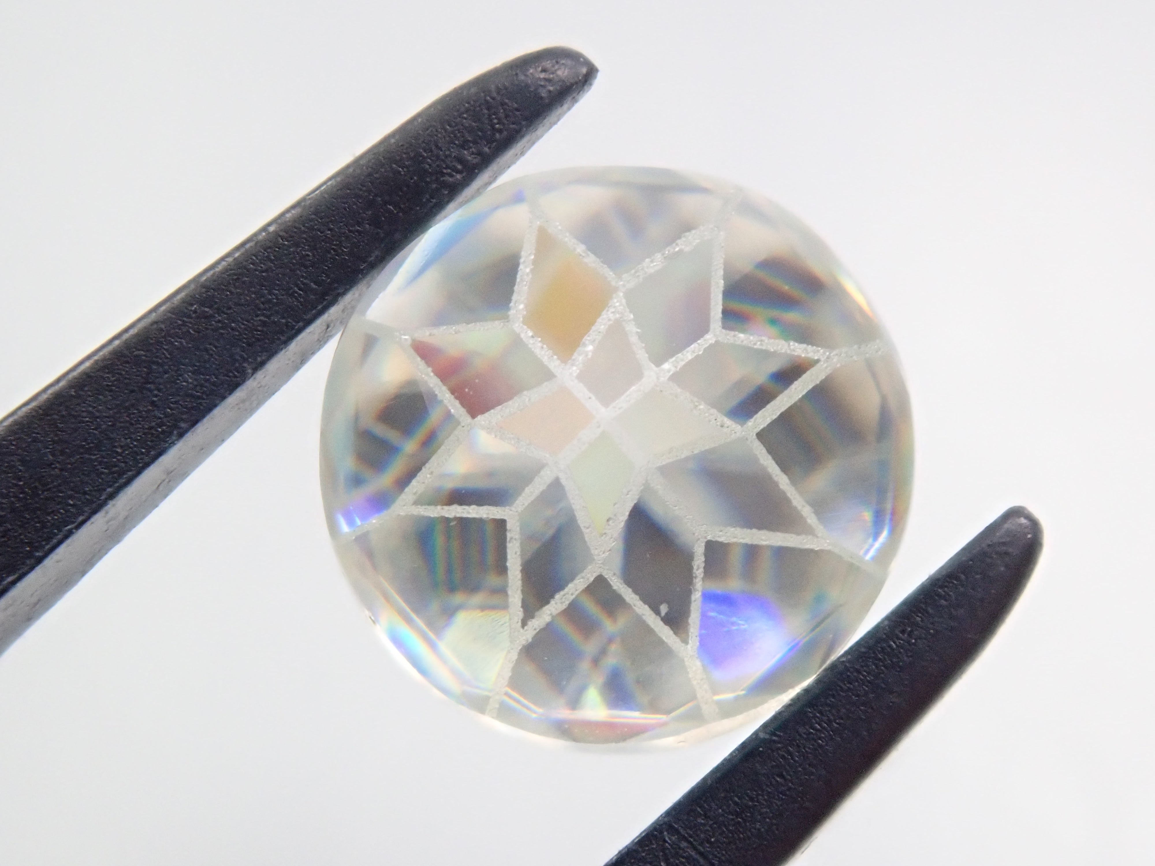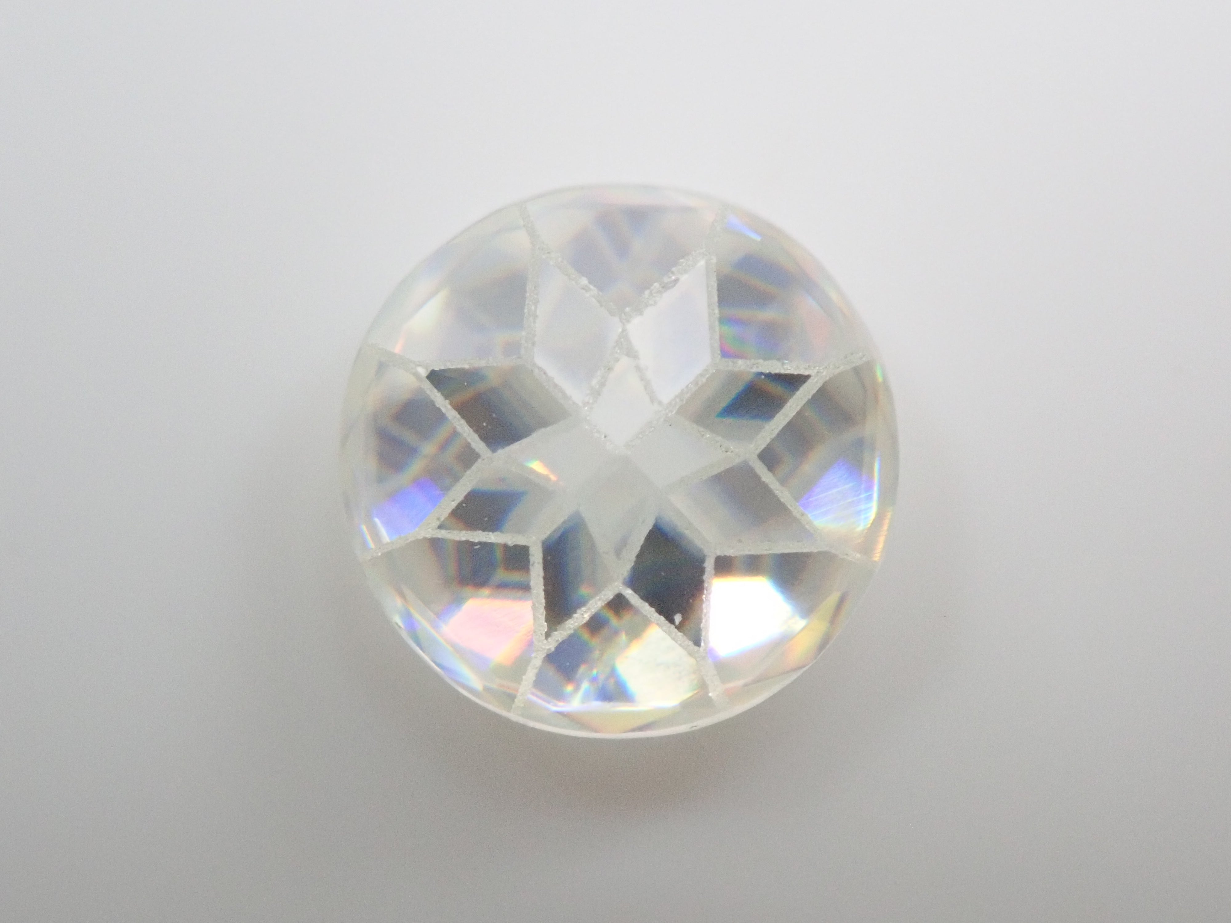 清水奇蹟的蒲公英剪。合成金紅石 7 毫米。目前合成金紅石供應有限,且拋光難度高、耗時長,難以穩定供應。