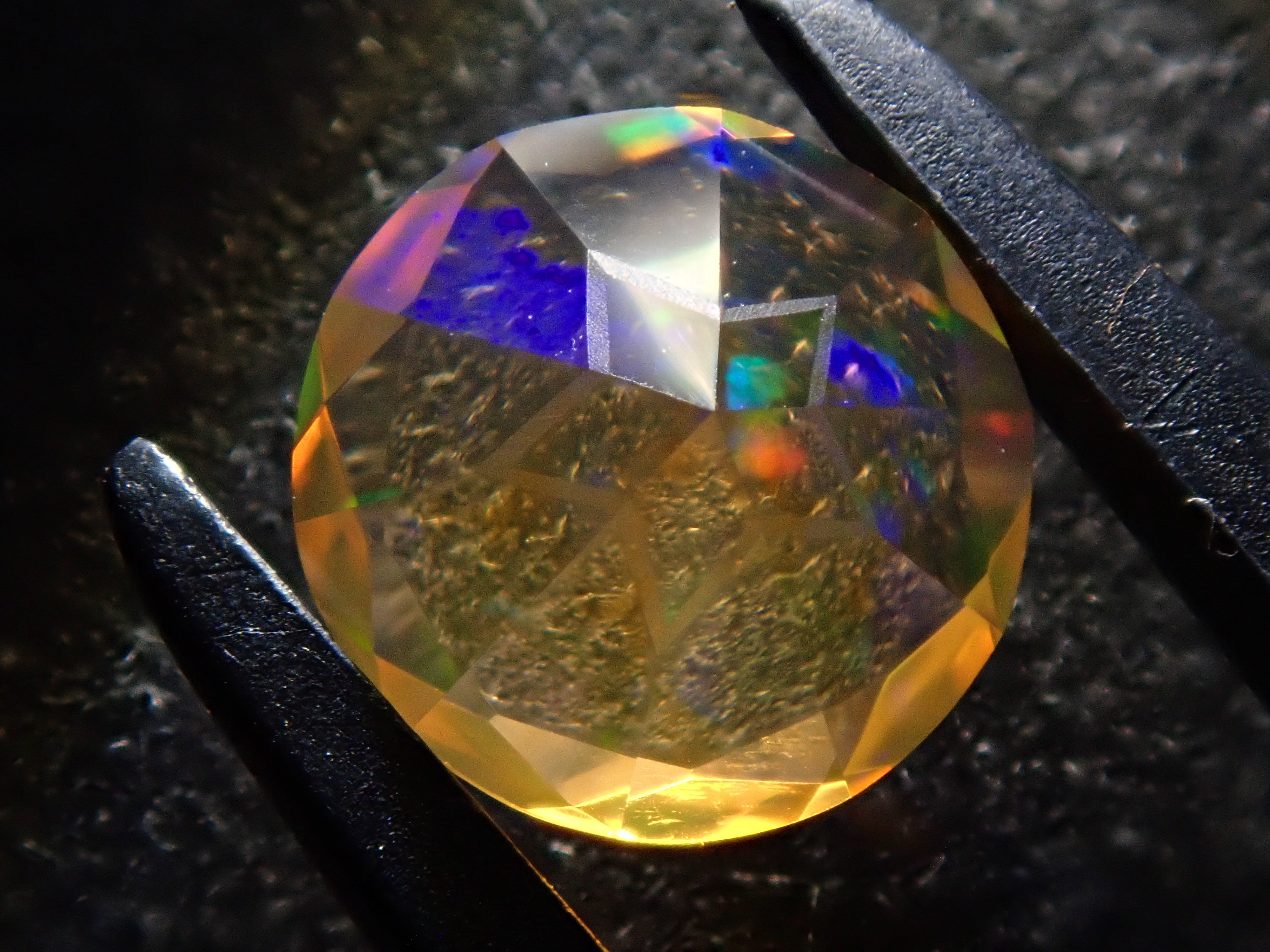 自古羅馬時代以來,蛋白石就廣受歡迎。火蛋白石是一種以紅色到橘色為底色的蛋白石,形狀像「火」。這張照片是用筆型電筒拍攝的。