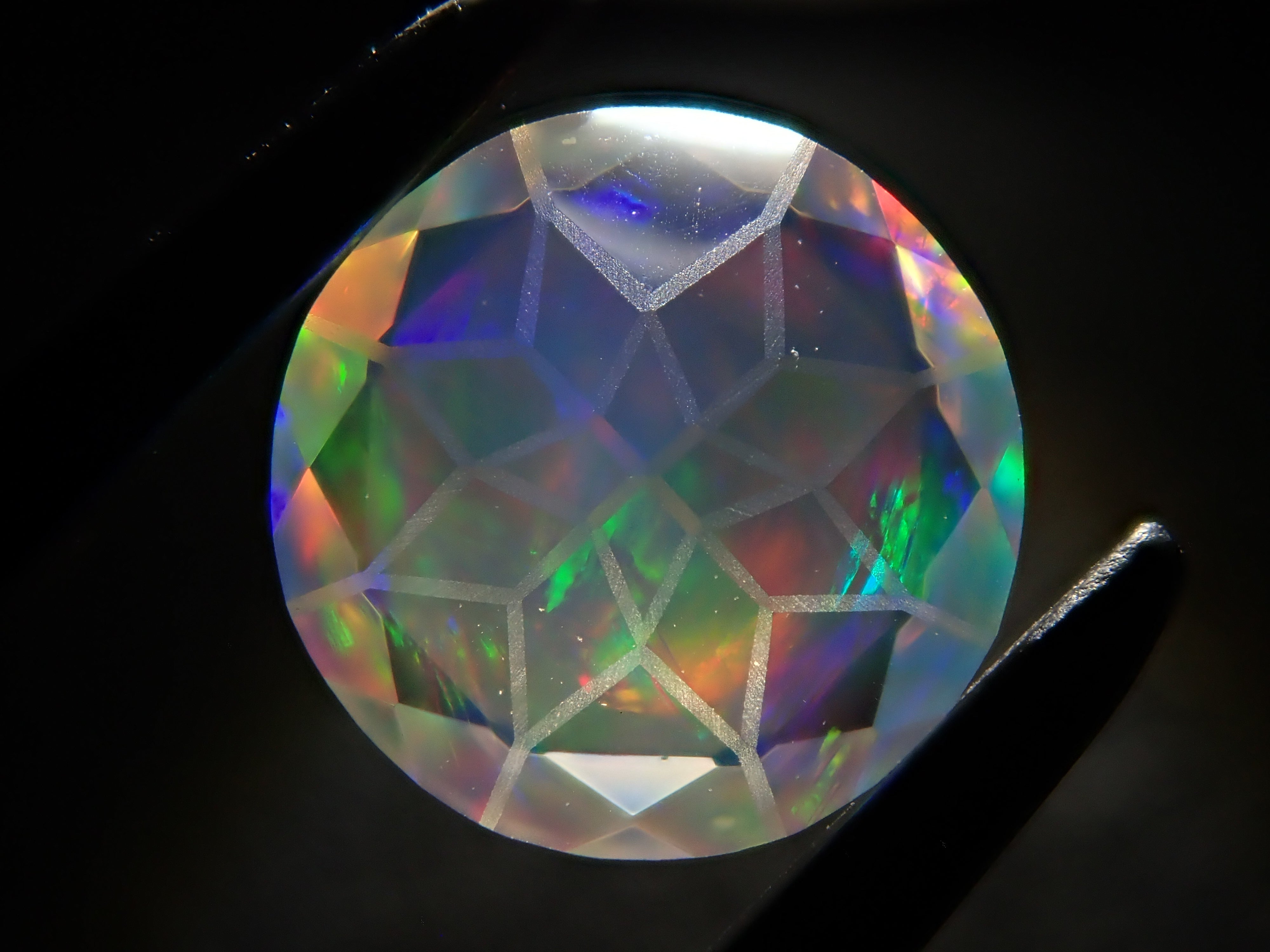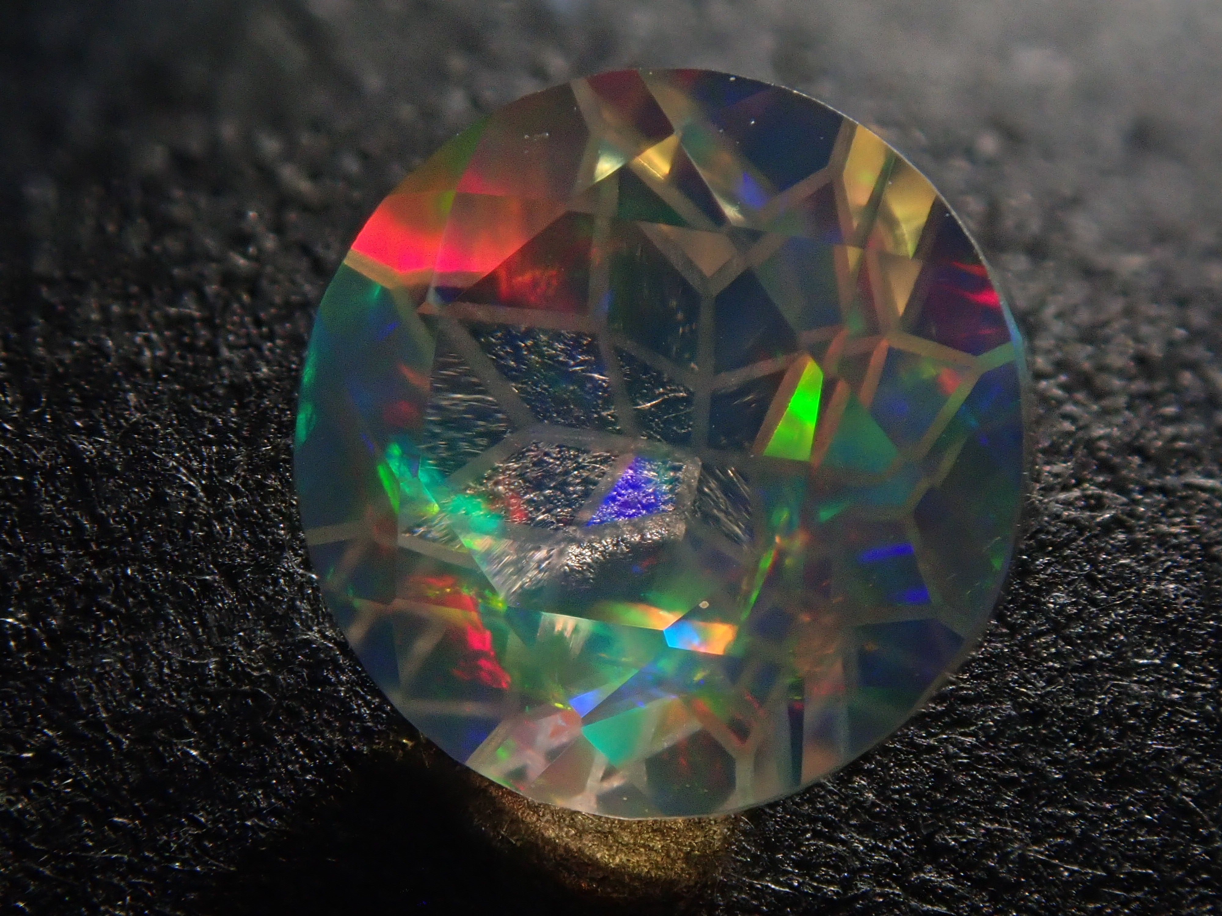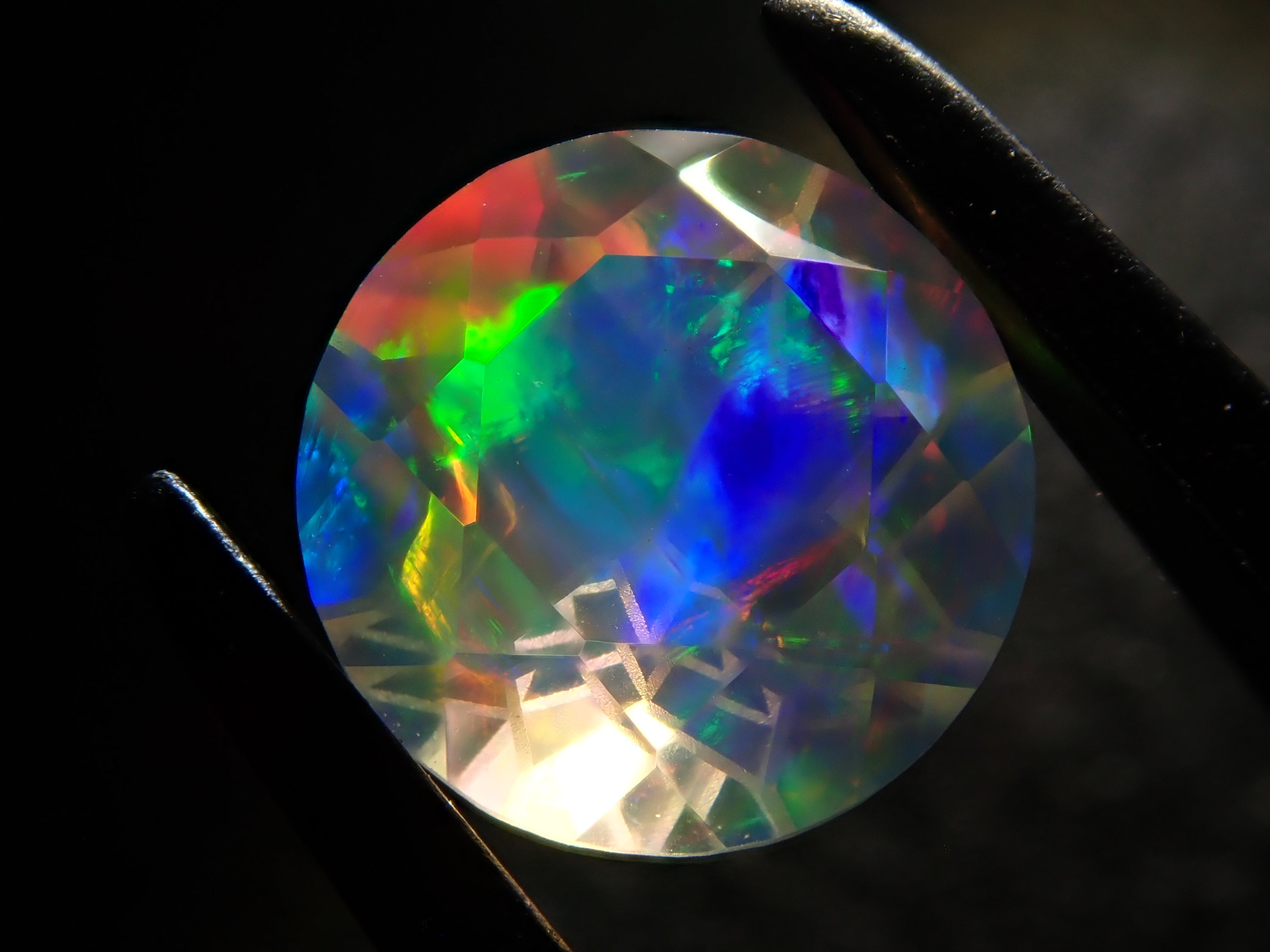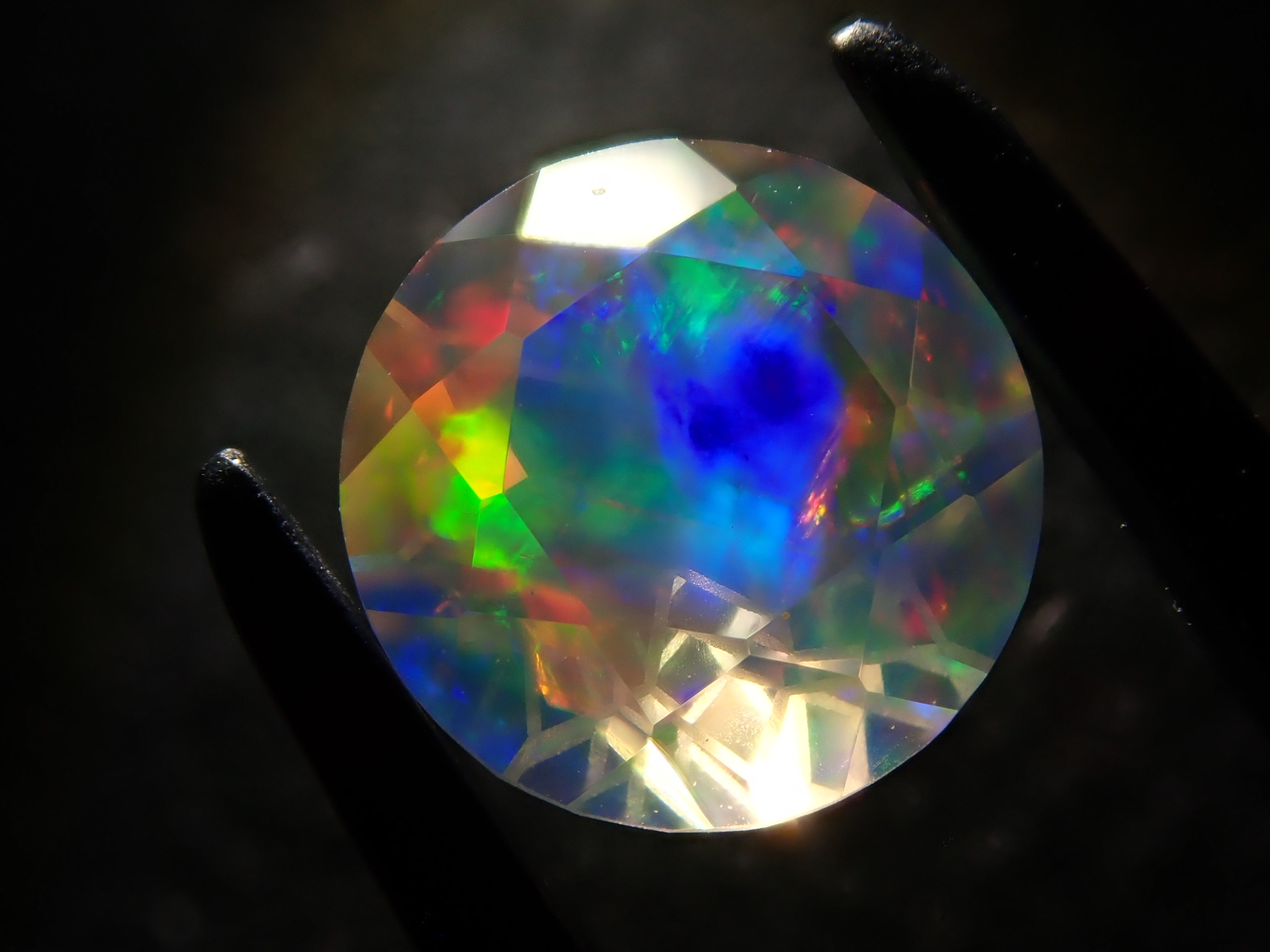 蛋白石是一種閃爍著彩虹色光芒的寶石。蛋白石是一種寶石,有許多不同的類型並具有多種表現形式。有些人被這種魅力所吸引,以至於只收集蛋白石。照片是使用筆燈拍攝的。