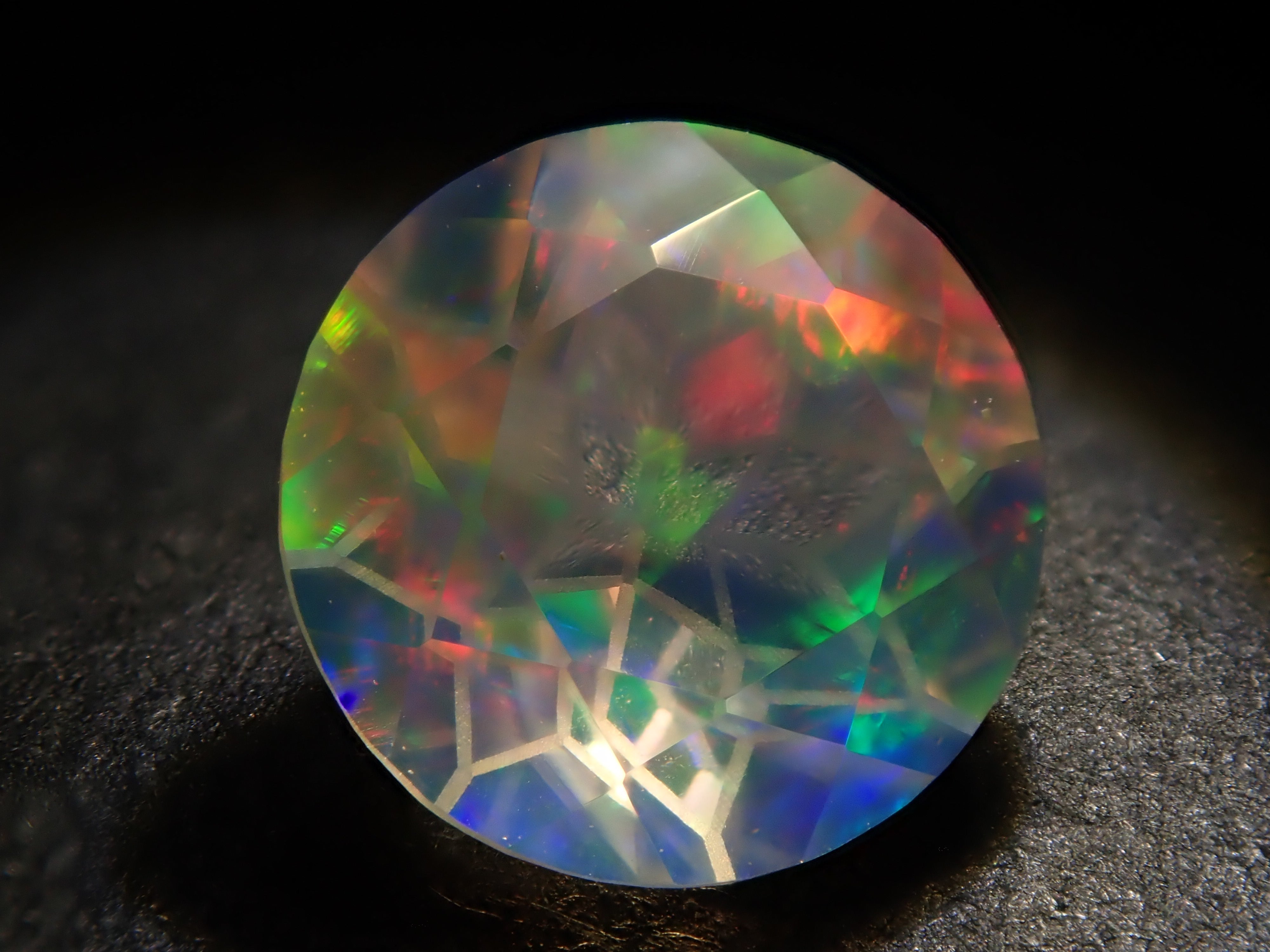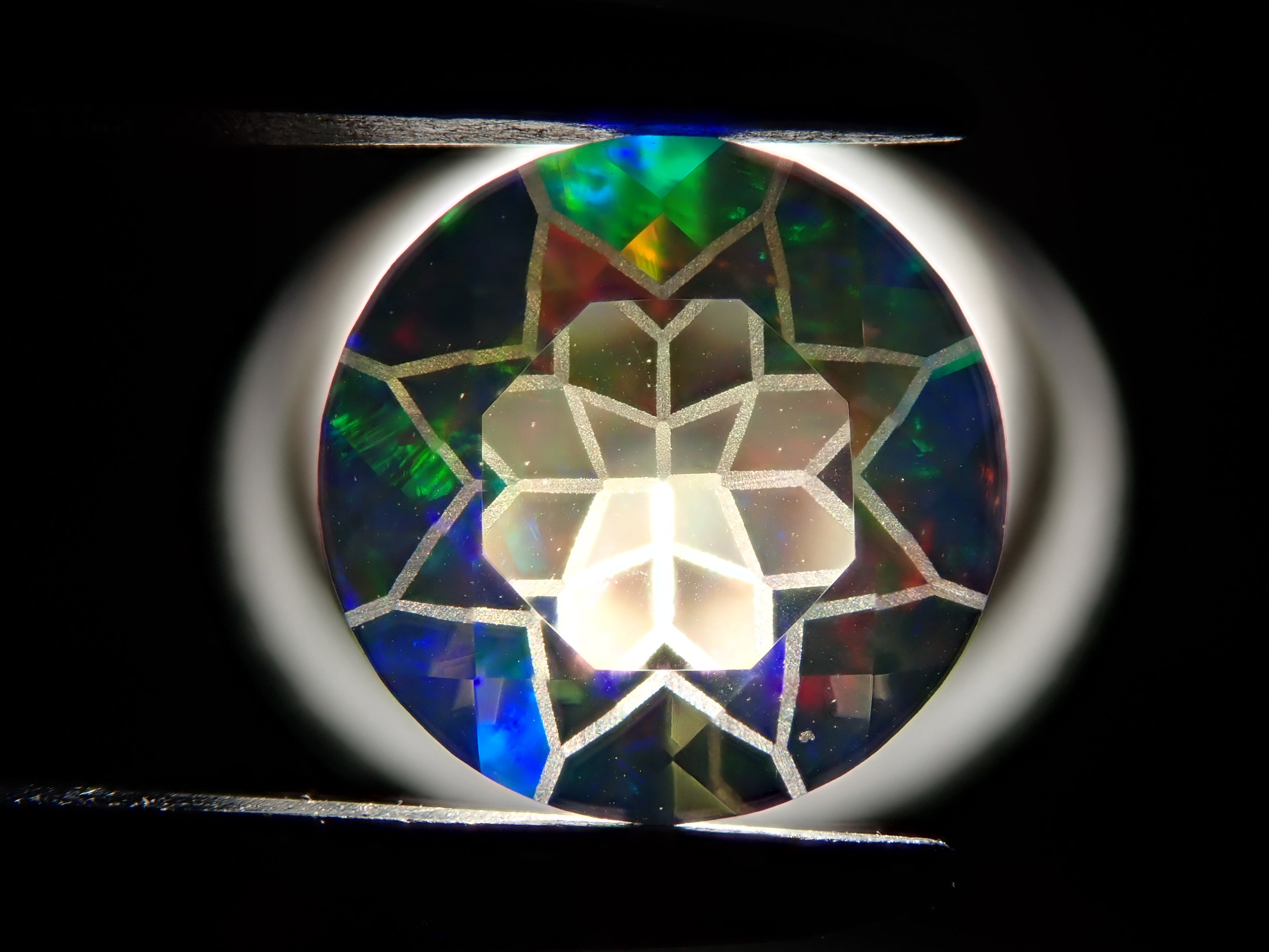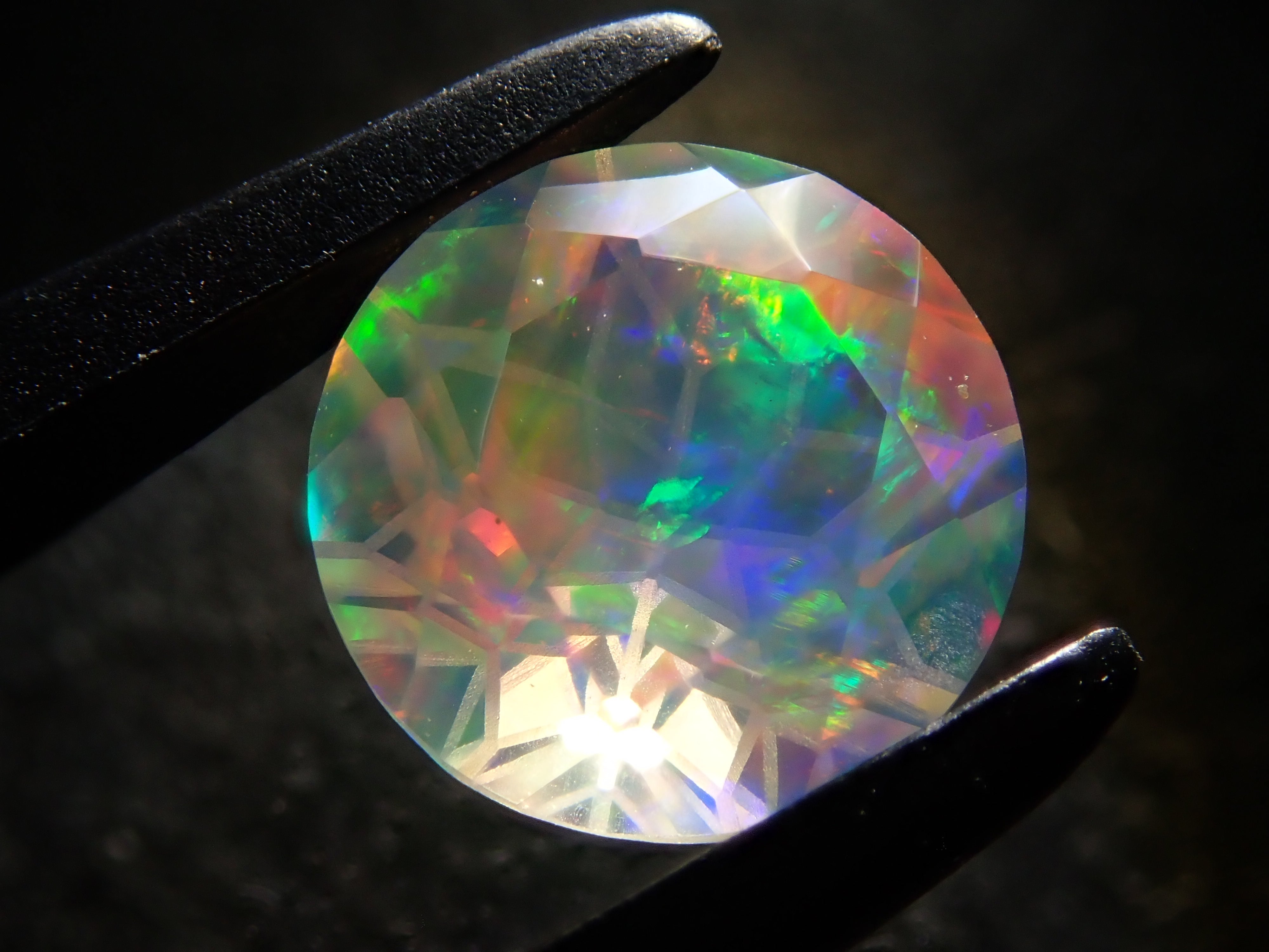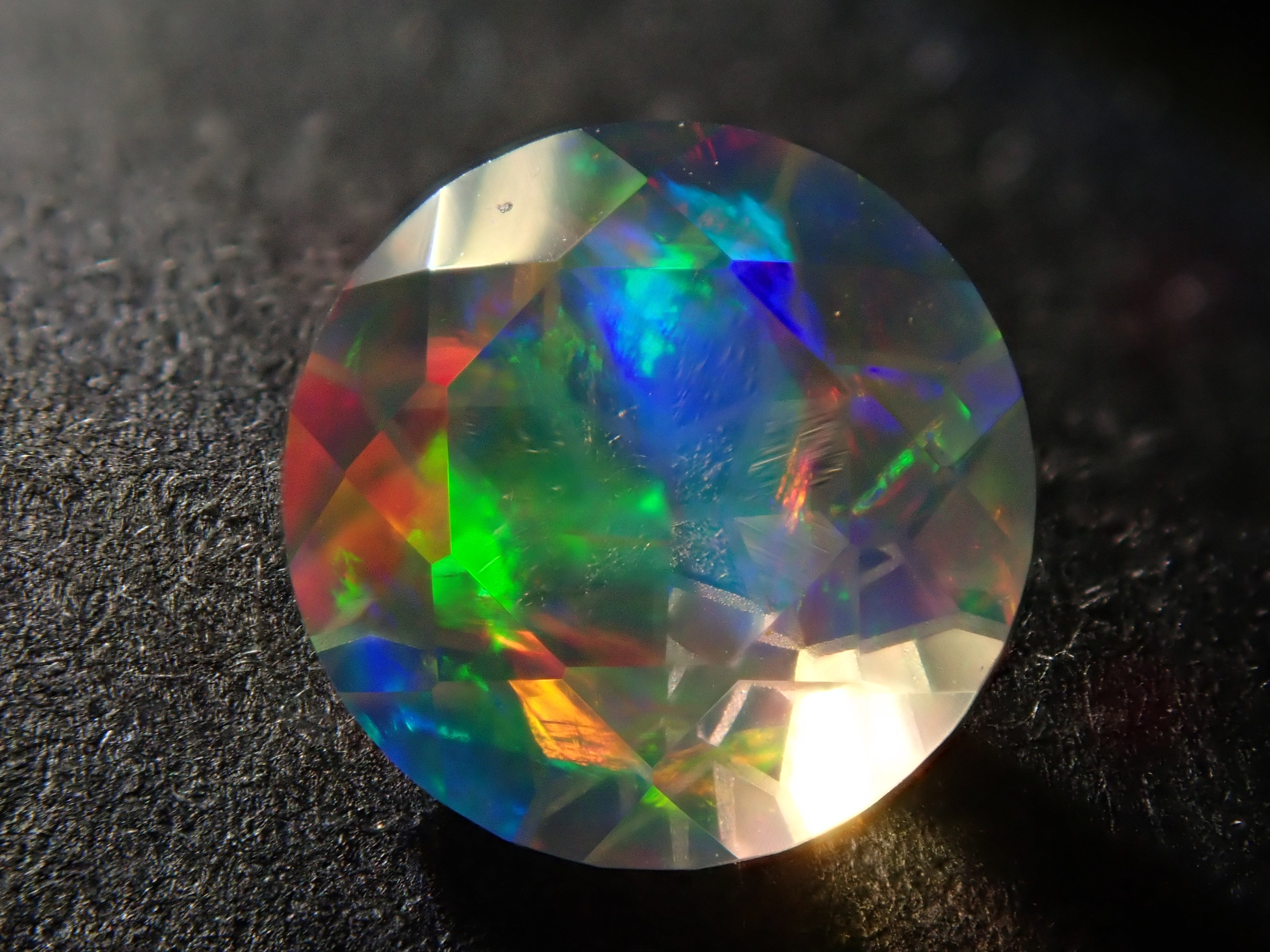 蛋白石是一種閃爍著彩虹色光芒的寶石。蛋白石是一種寶石,有許多不同的類型並具有多種表現形式。有些人被這種魅力所吸引,以至於只收集蛋白石。照片是使用筆燈拍攝的。