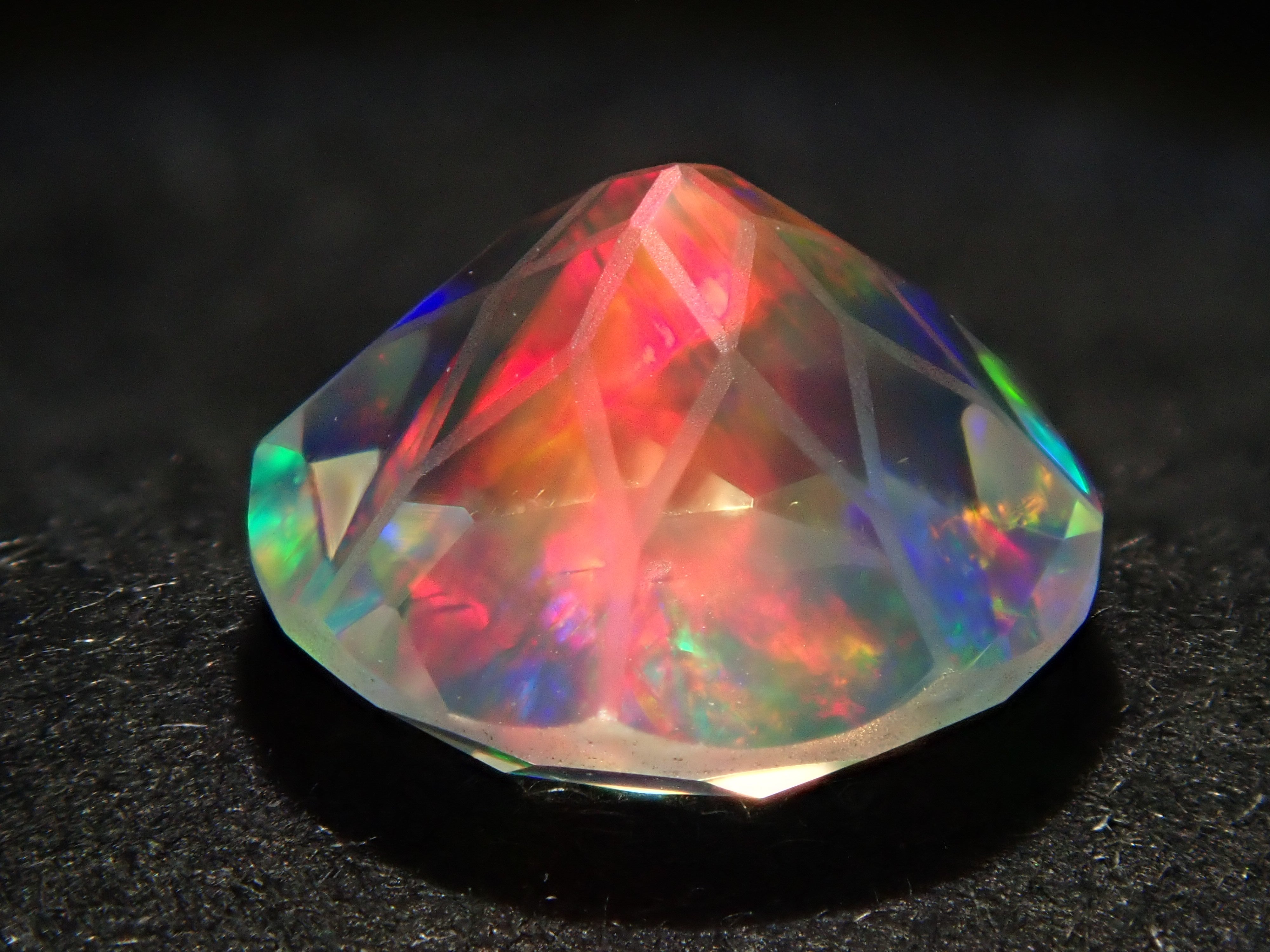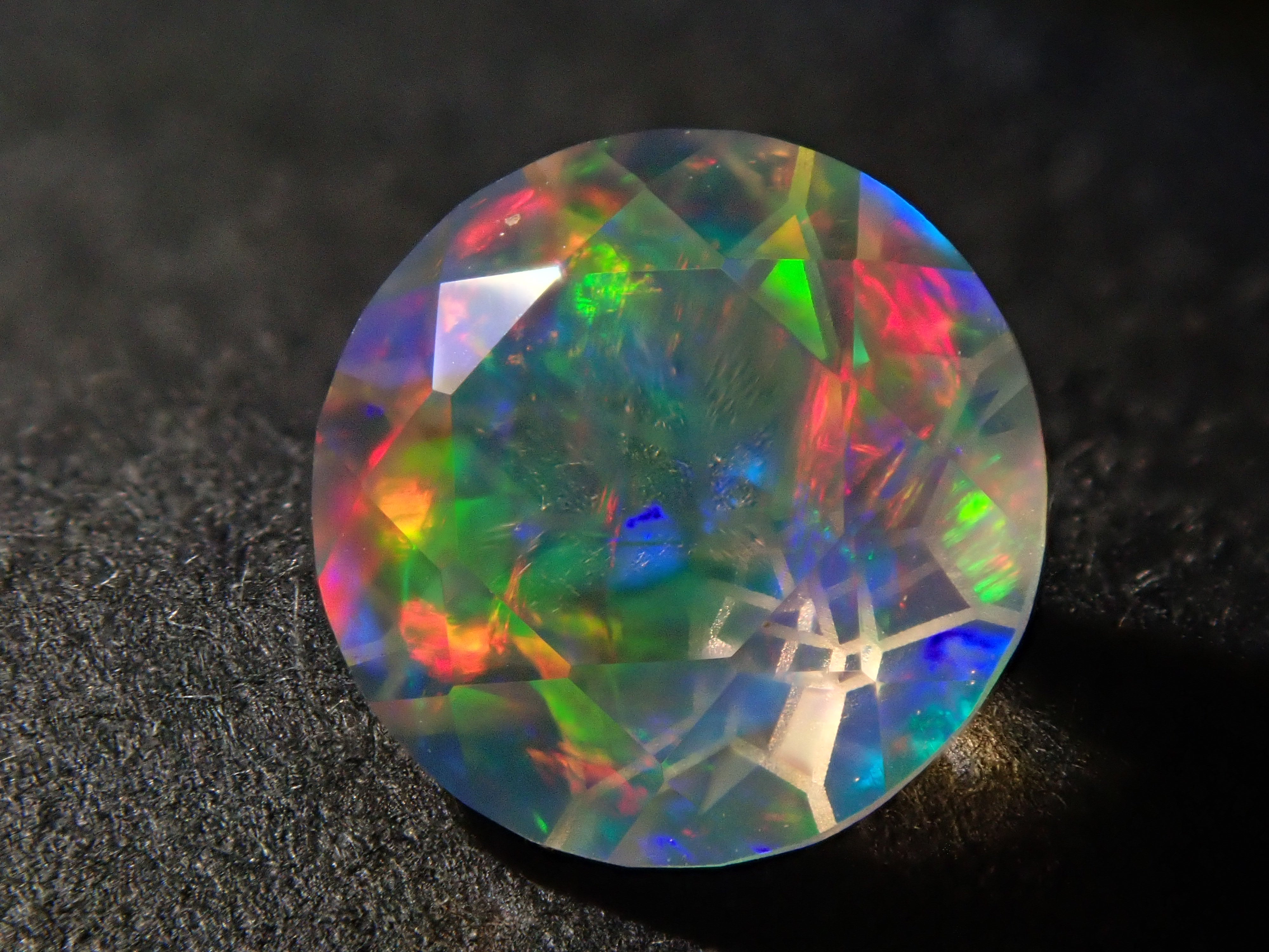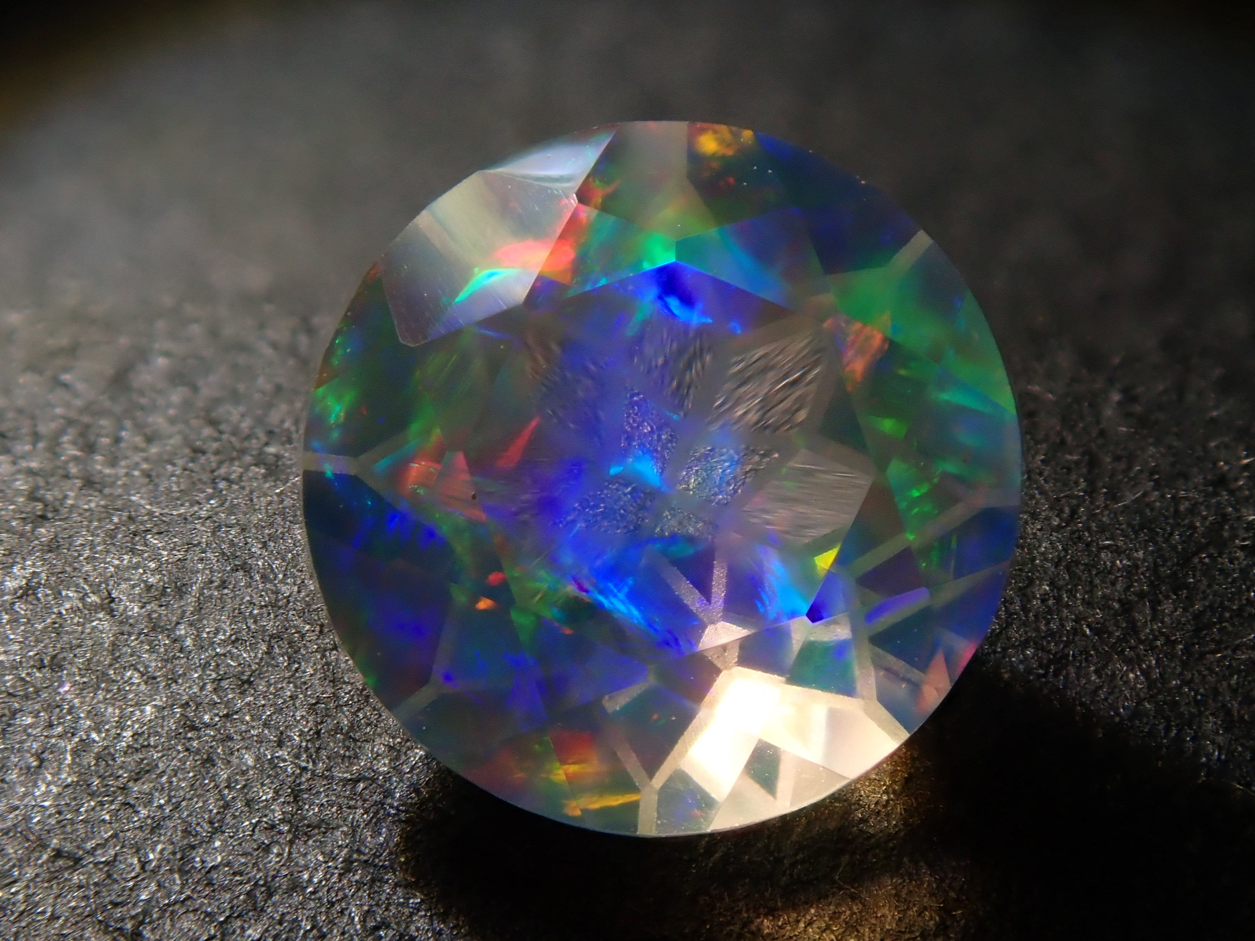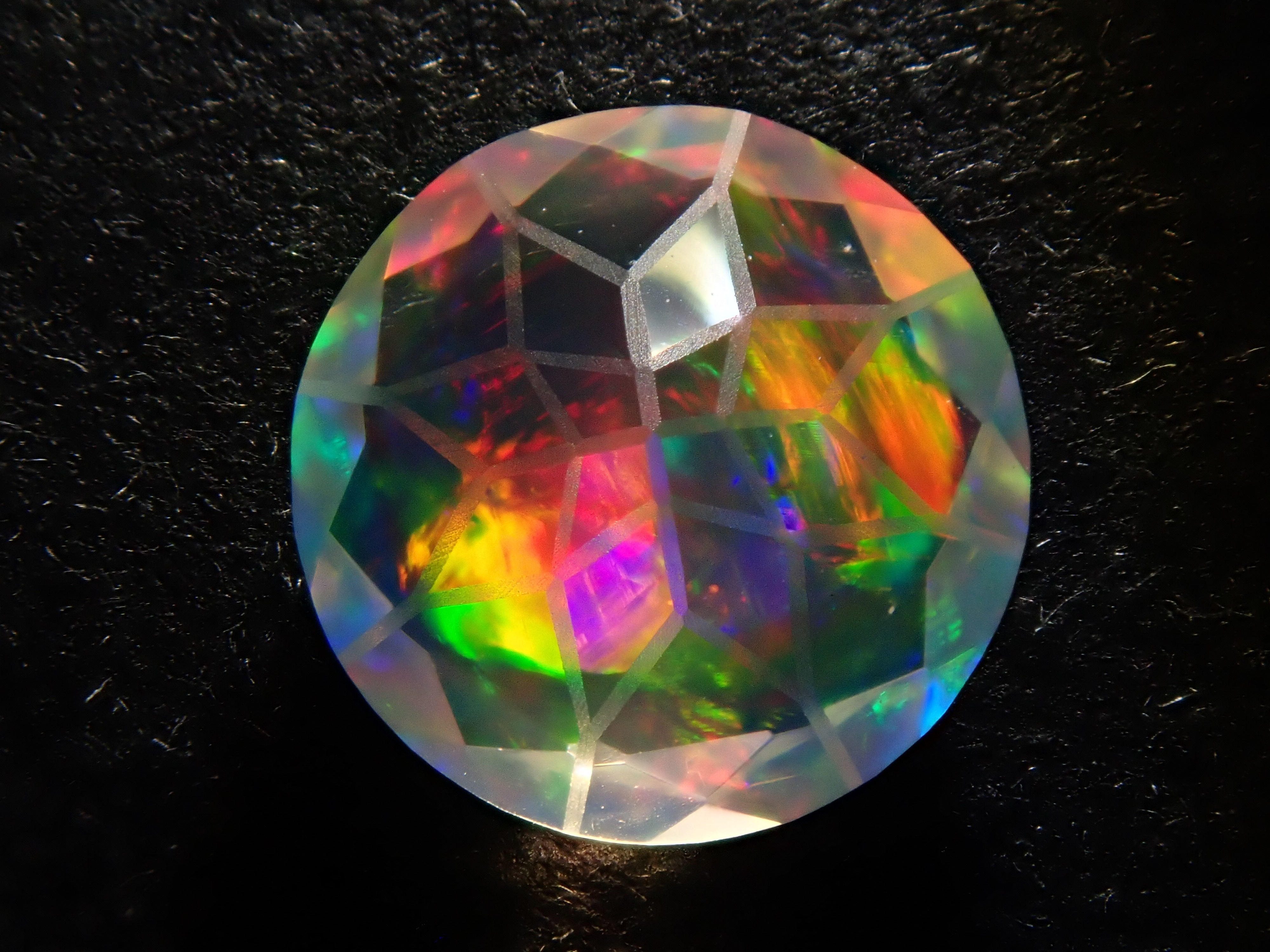 蛋白石是一種閃爍著彩虹色光芒的寶石。蛋白石是一種寶石,有許多不同的類型並具有多種表現形式。有些人被這種魅力所吸引,以至於只收集蛋白石。照片是使用筆燈拍攝的。