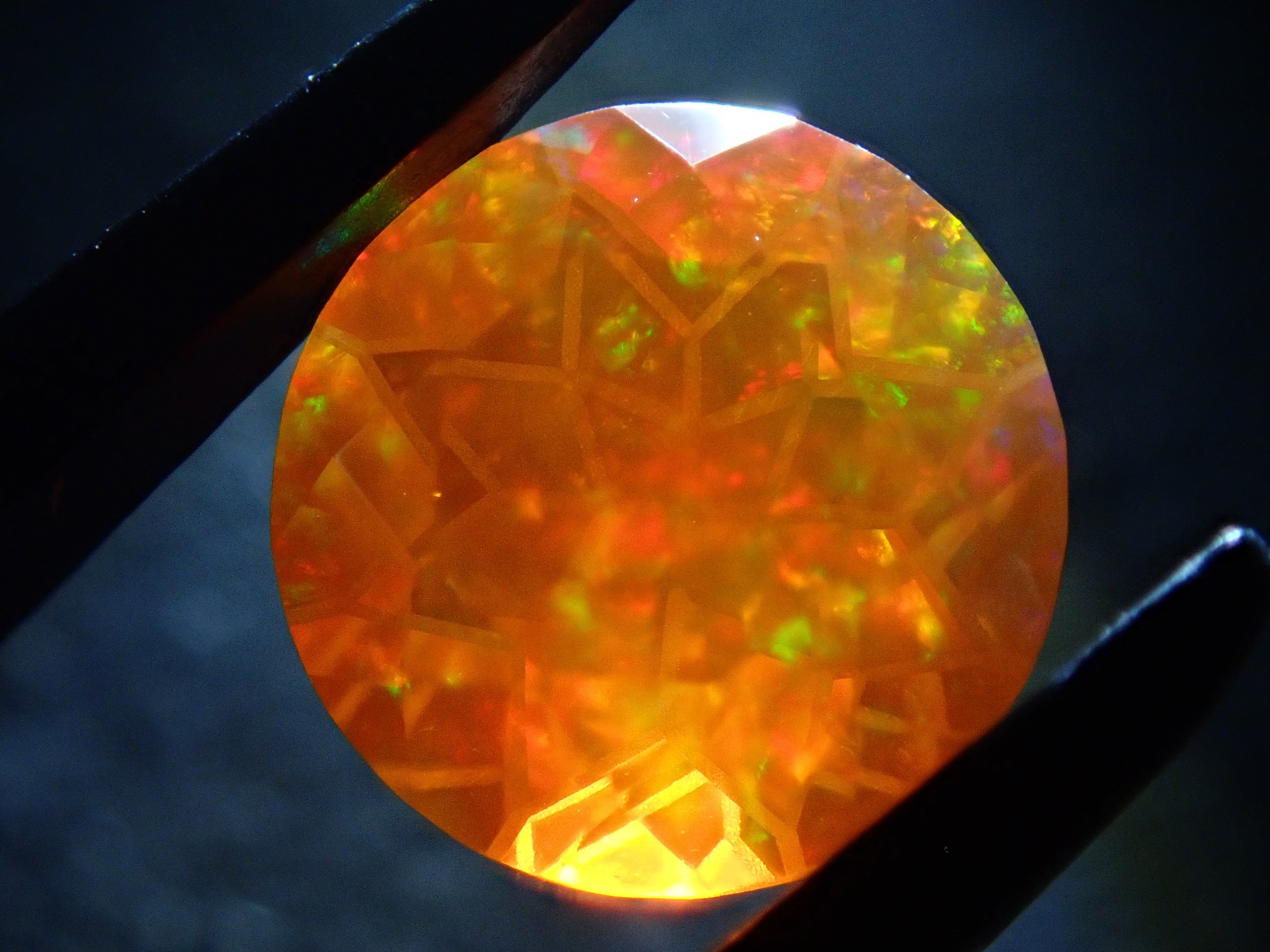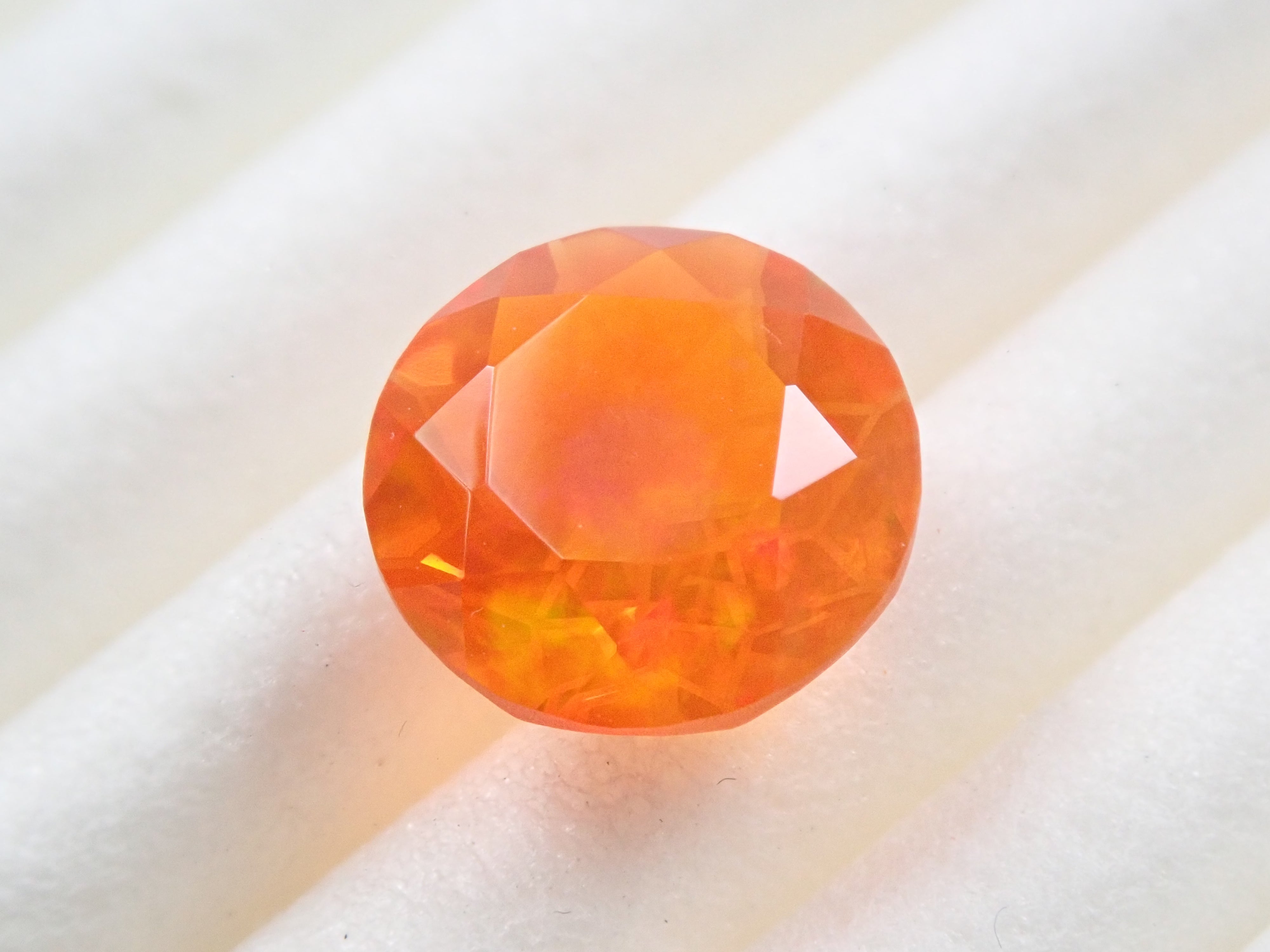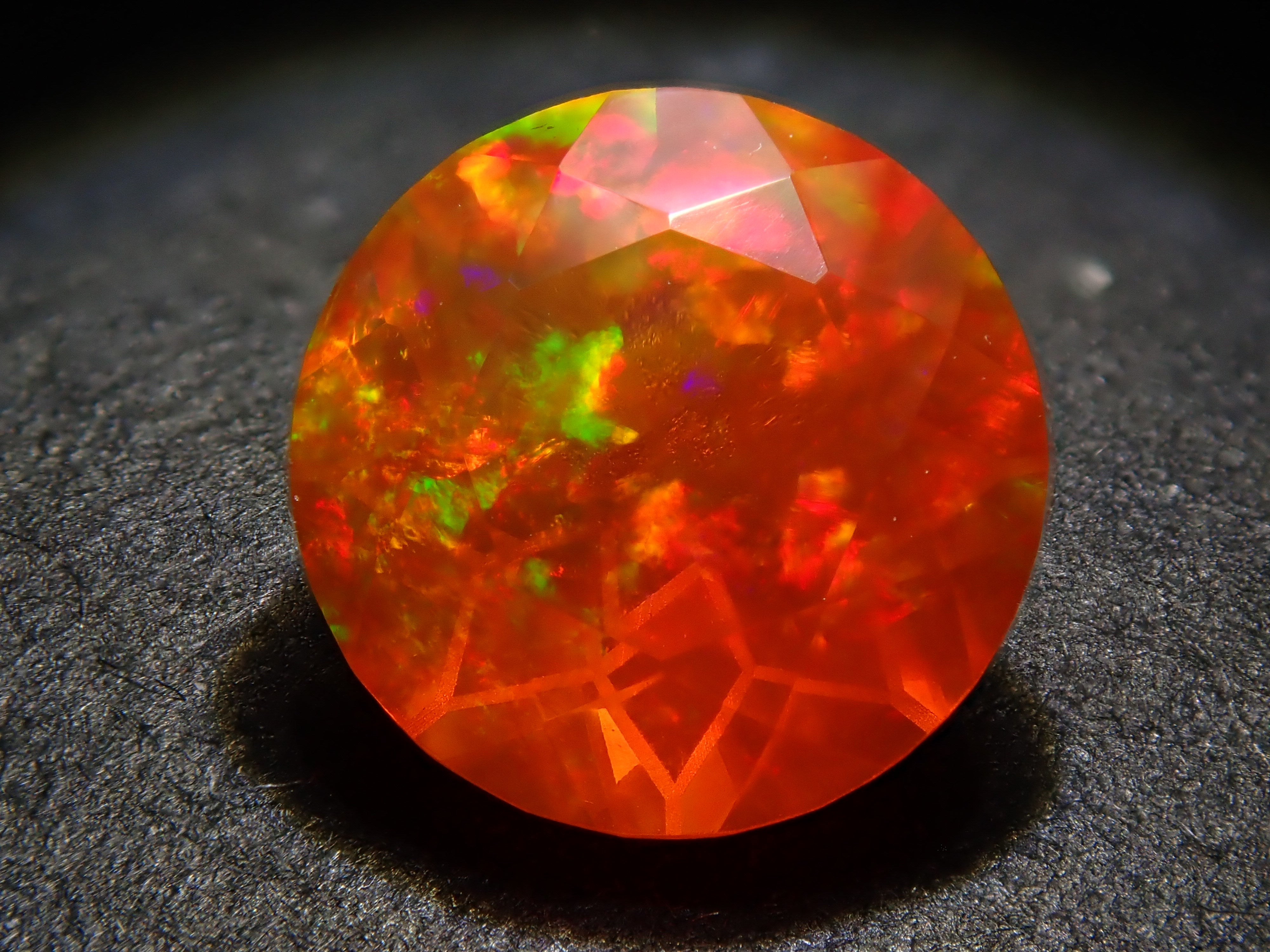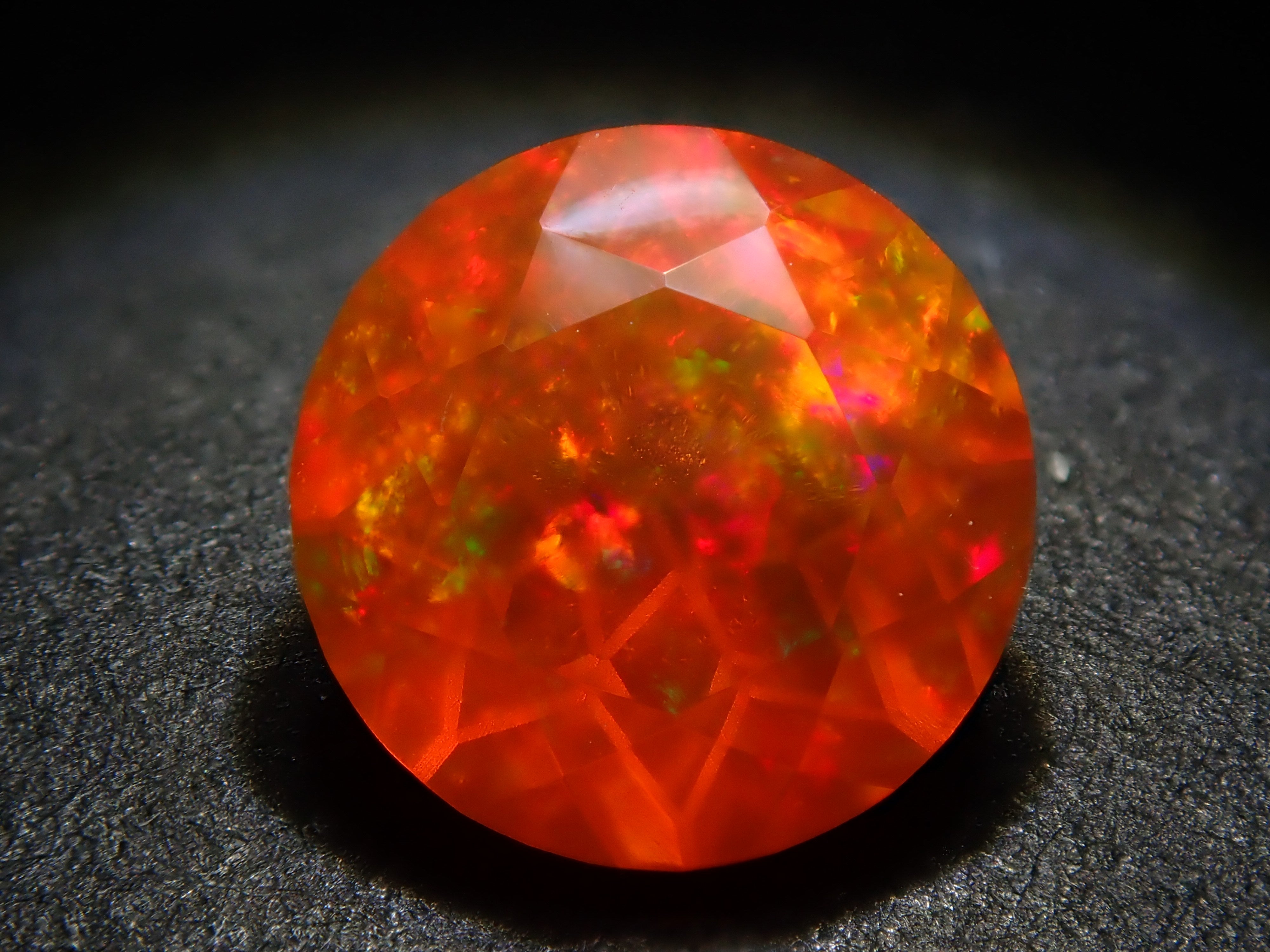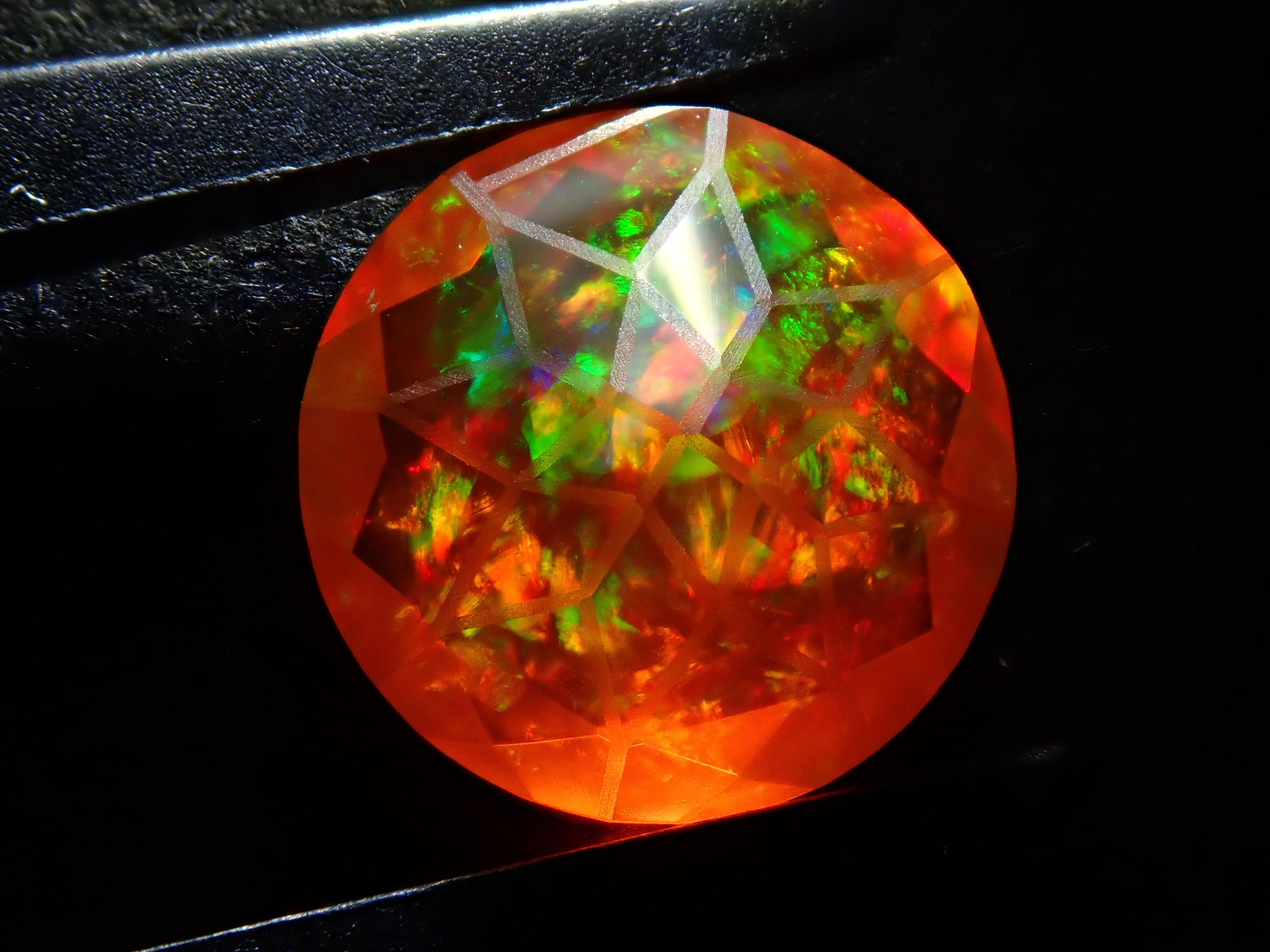 蛋白石自古羅馬時代就很受歡迎。火蛋白石是指底色從紅色到橘色的蛋白石,給人火的形象。照片是使用筆燈拍攝的。