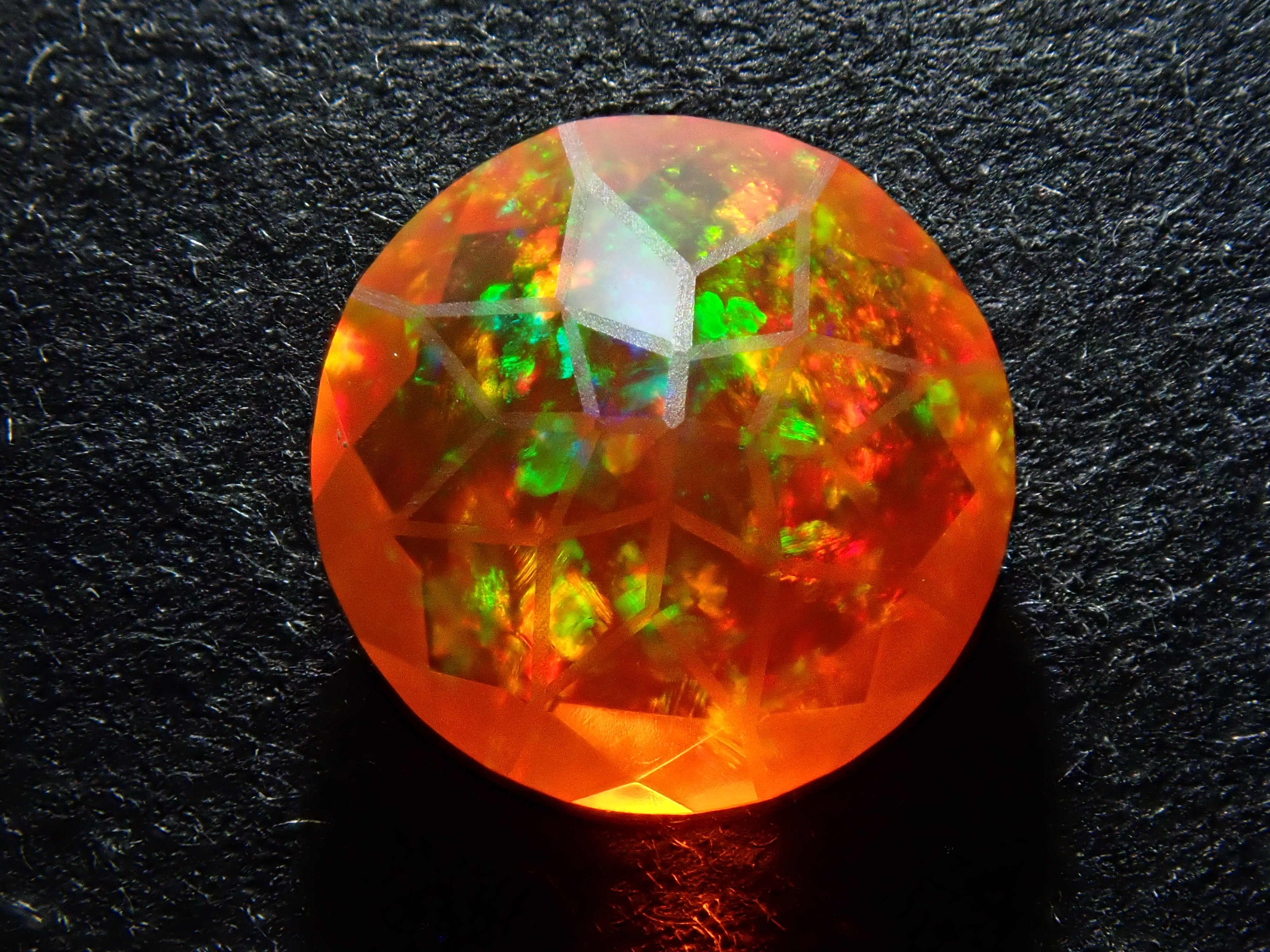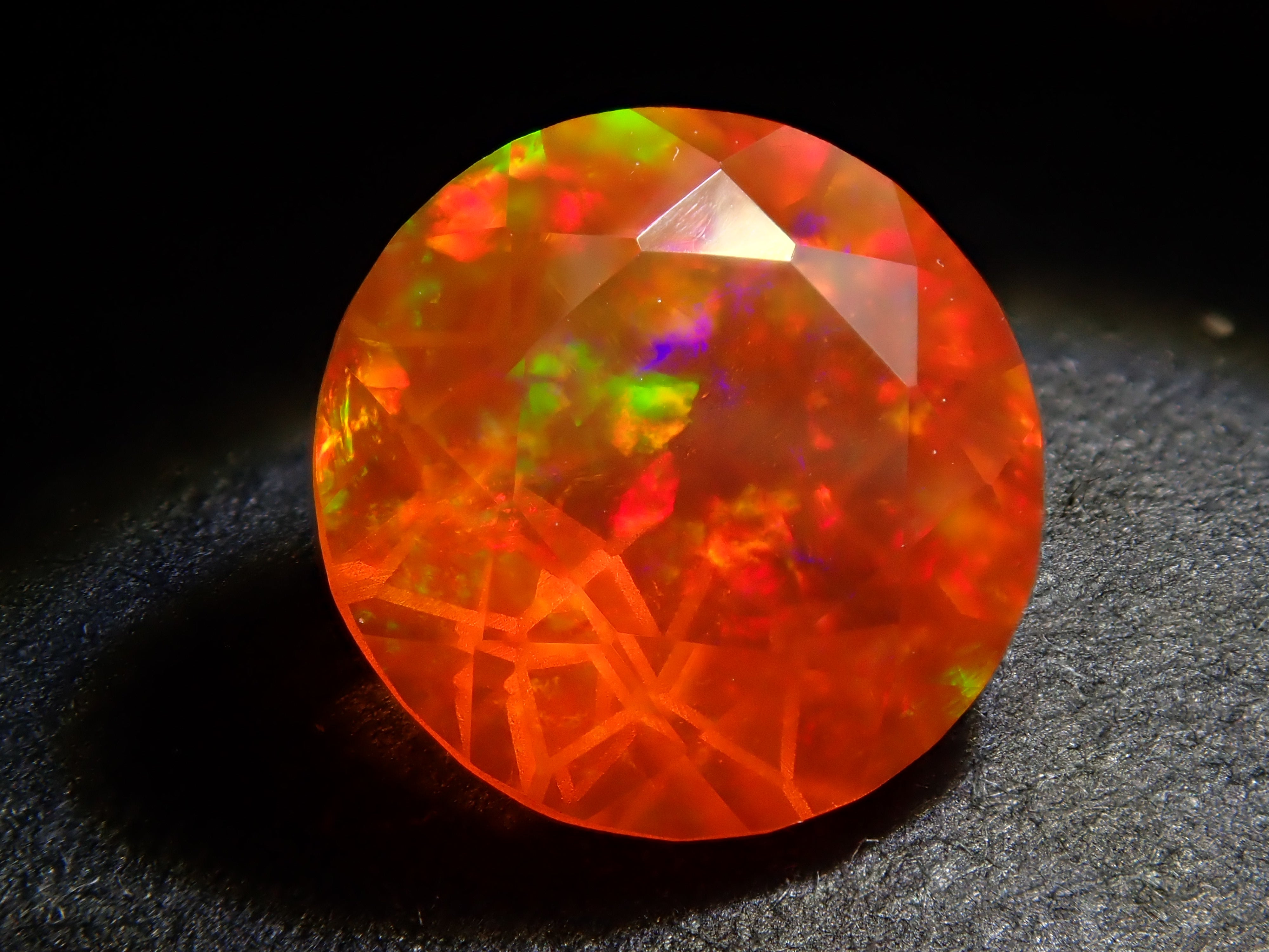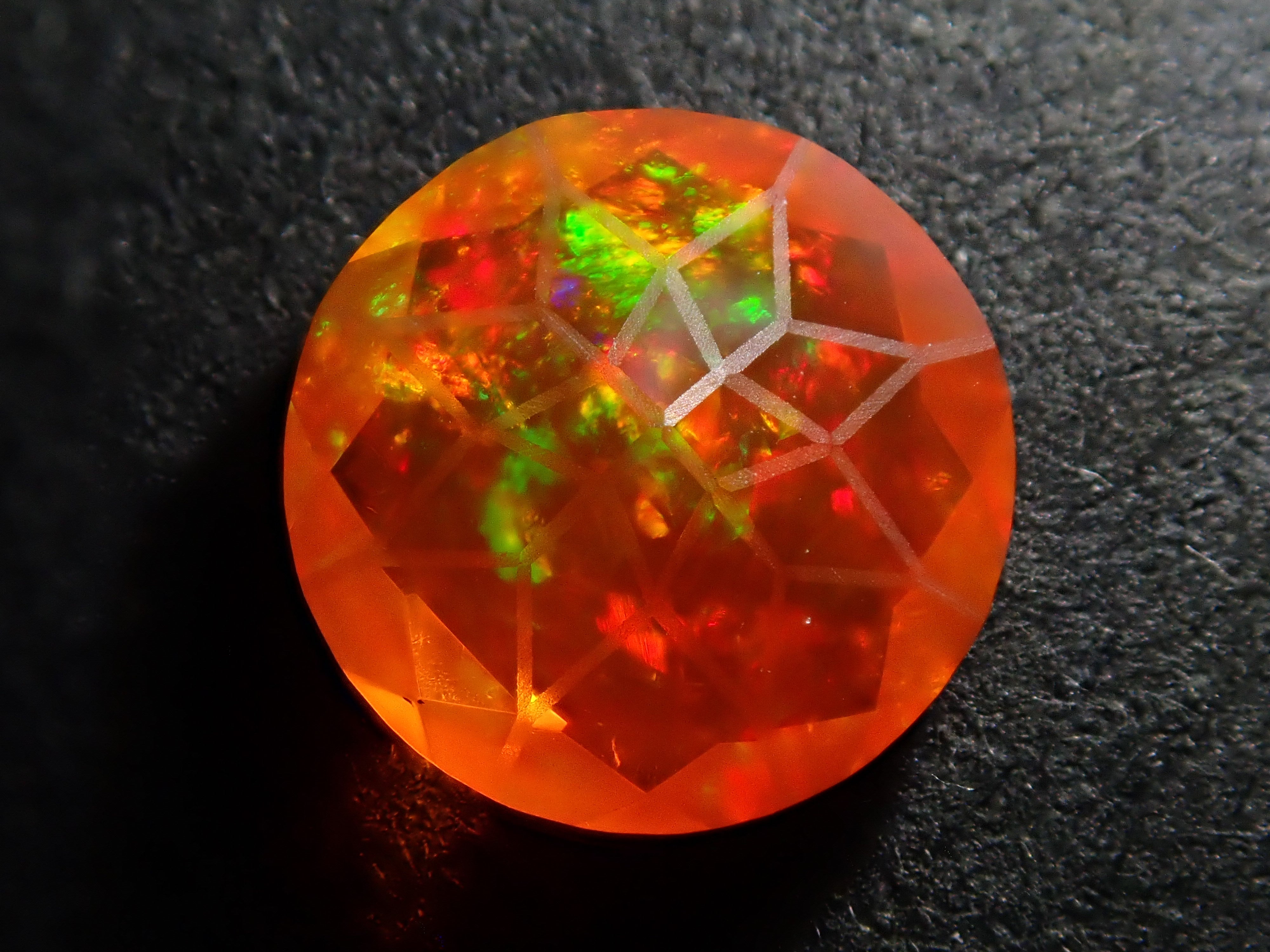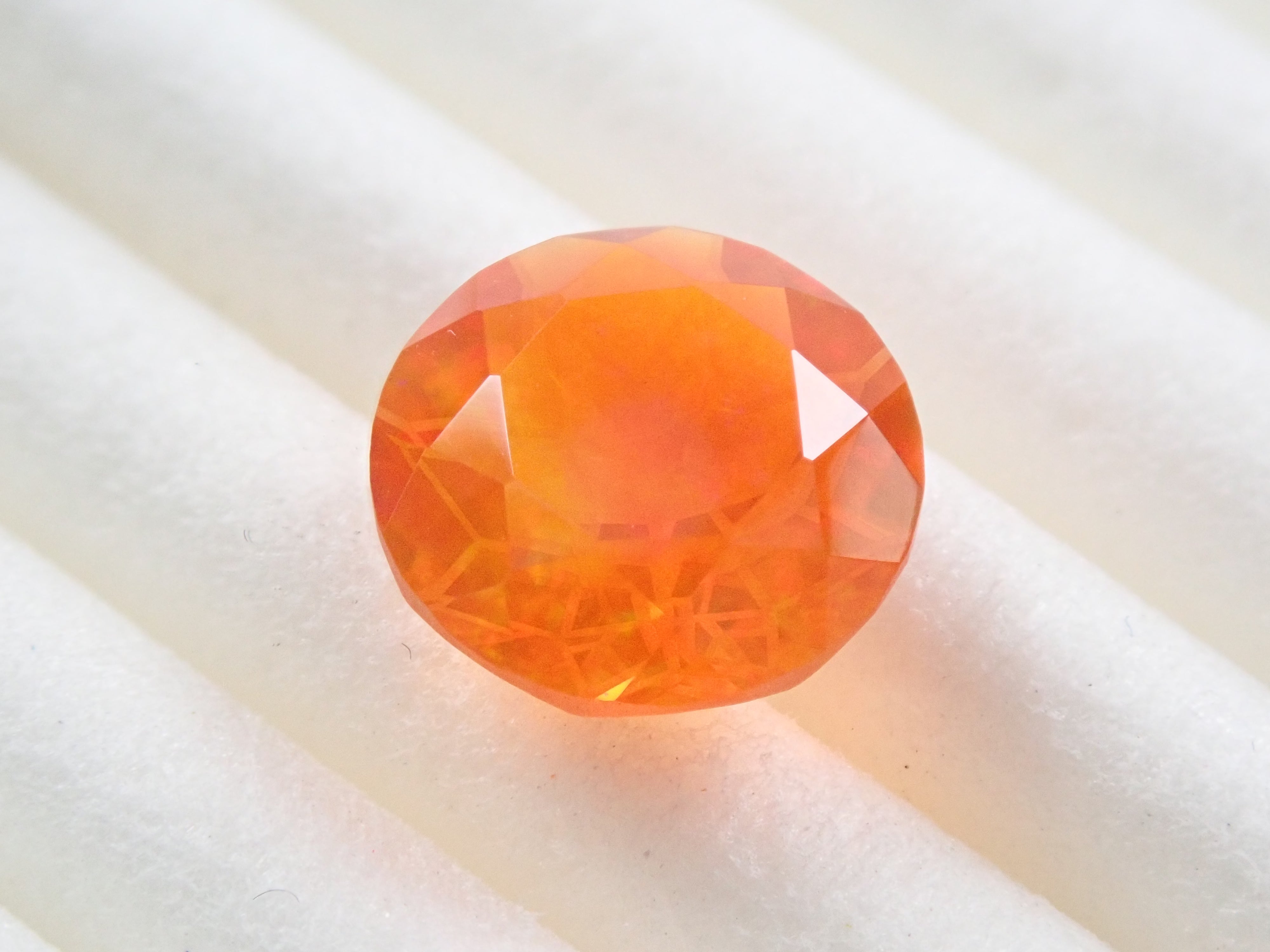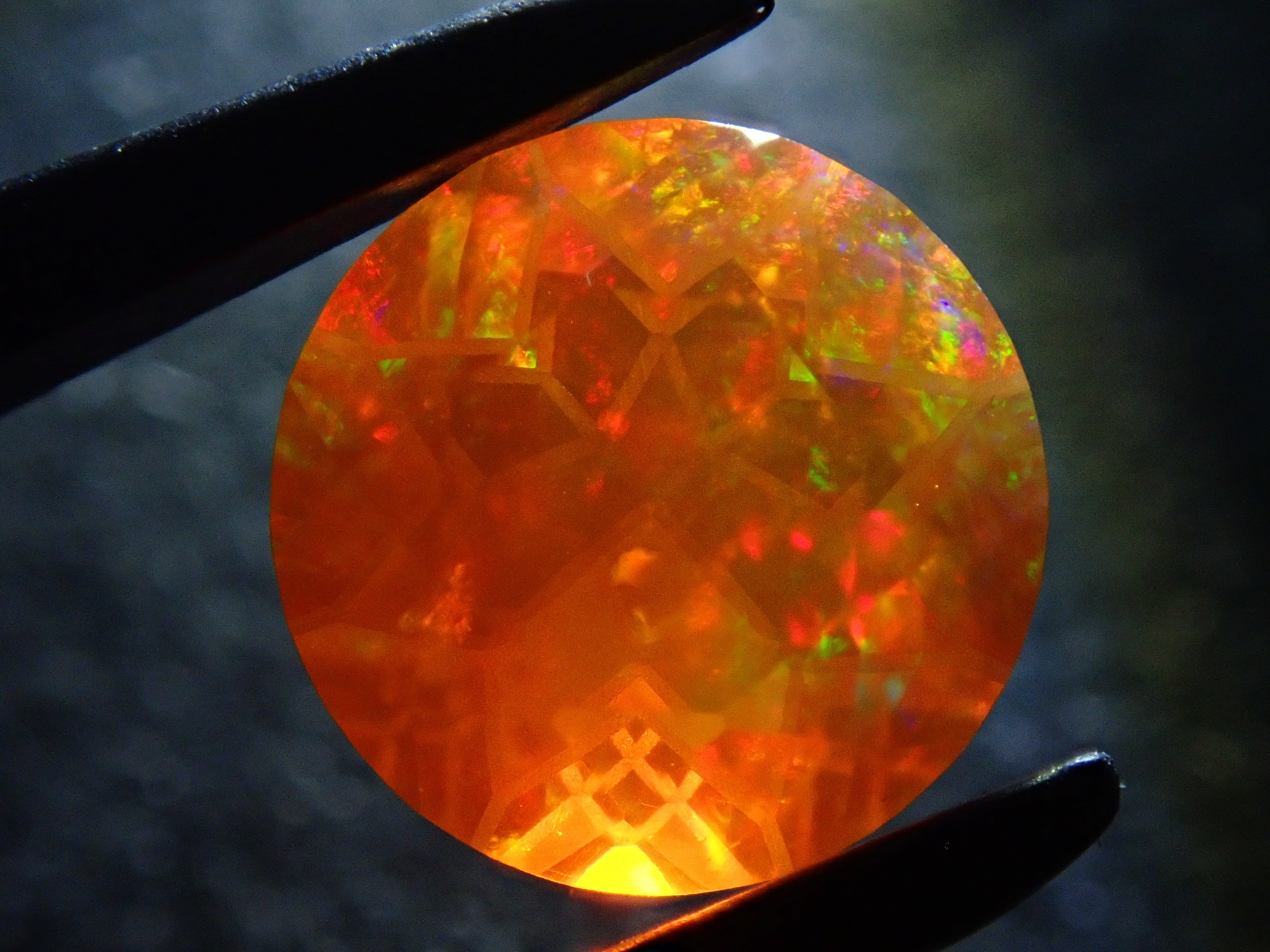 蛋白石自古羅馬時代就很受歡迎。火蛋白石是指底色從紅色到橘色的蛋白石,給人火的形象。照片是使用筆燈拍攝的。