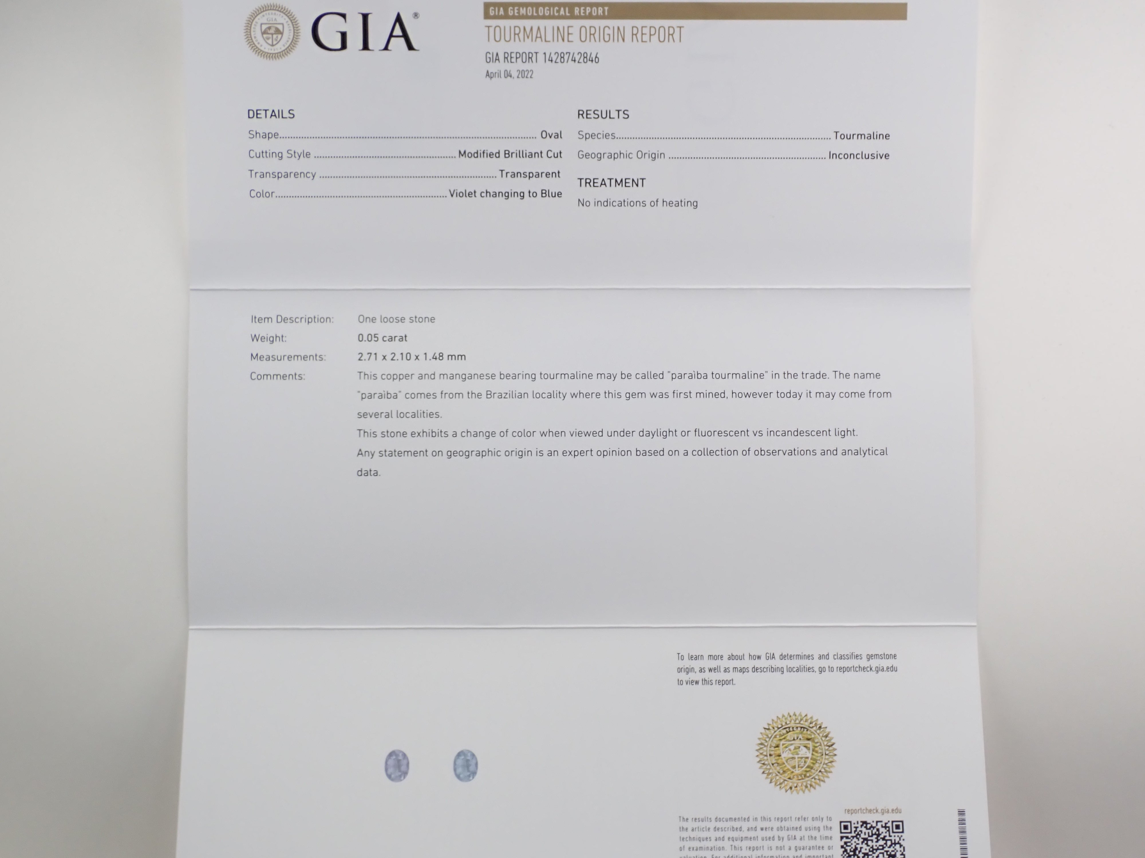 帕拉伊巴碧璽有著不同於大海的藍色或天空的藍色的精緻色彩。它在日本的定義是“含有銅的藍色到綠色碧璽(無論產地)。”它是一種非常受歡迎的寶石。這是一種罕見的非加熱產品。非加熱變色帕拉伊巴碧璽。這是一種非加熱變色帕拉伊巴碧璽,即使在海外也很少分佈。隨附 GIA 真品證書。由於非加熱變色帕拉伊巴碧璽,非常透明且疏鬆。