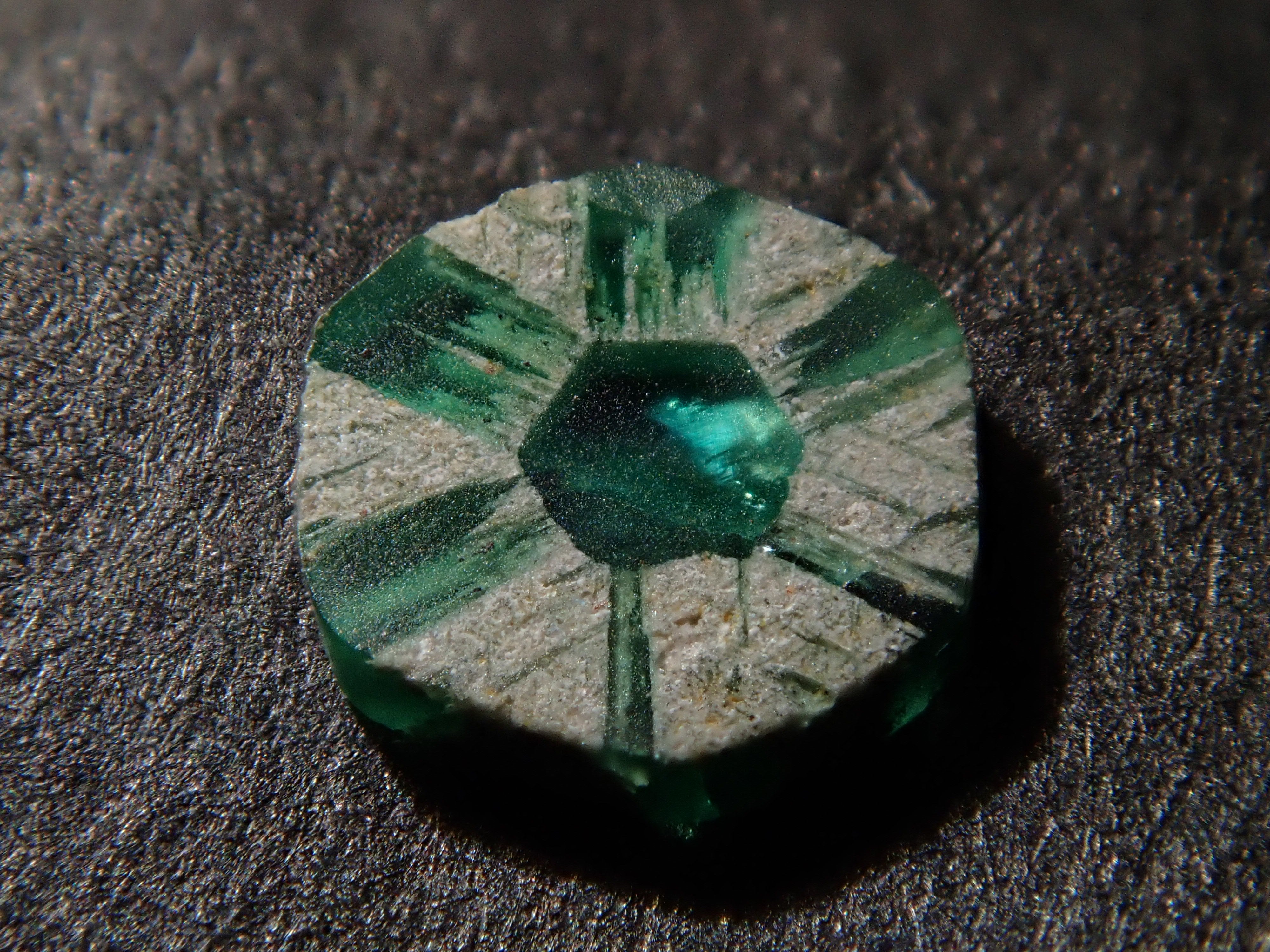 達碧茲祖母綠有六條線,是一種稀有寶石,僅佔所有祖母綠的一小部分。人們認為這種圖案是由於晶體生長過程中混入雜質並沿著晶體垂直延伸而造成的。這是一顆鬆散達碧茲祖母綠,與普通達碧茲祖母綠類型相反。這是一種非常罕見的祖母綠類型,稱為反向達碧茲祖母綠,其中心有一顆祖母綠原石,生長方式與平常不同。在當地它也被稱為達碧茲祖母綠 Contrario。