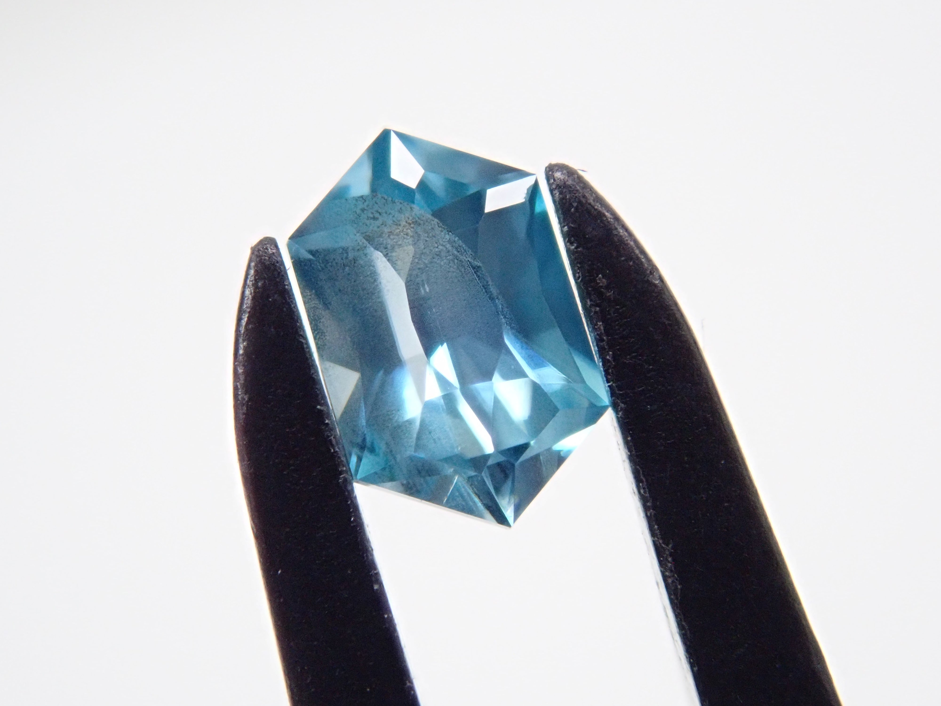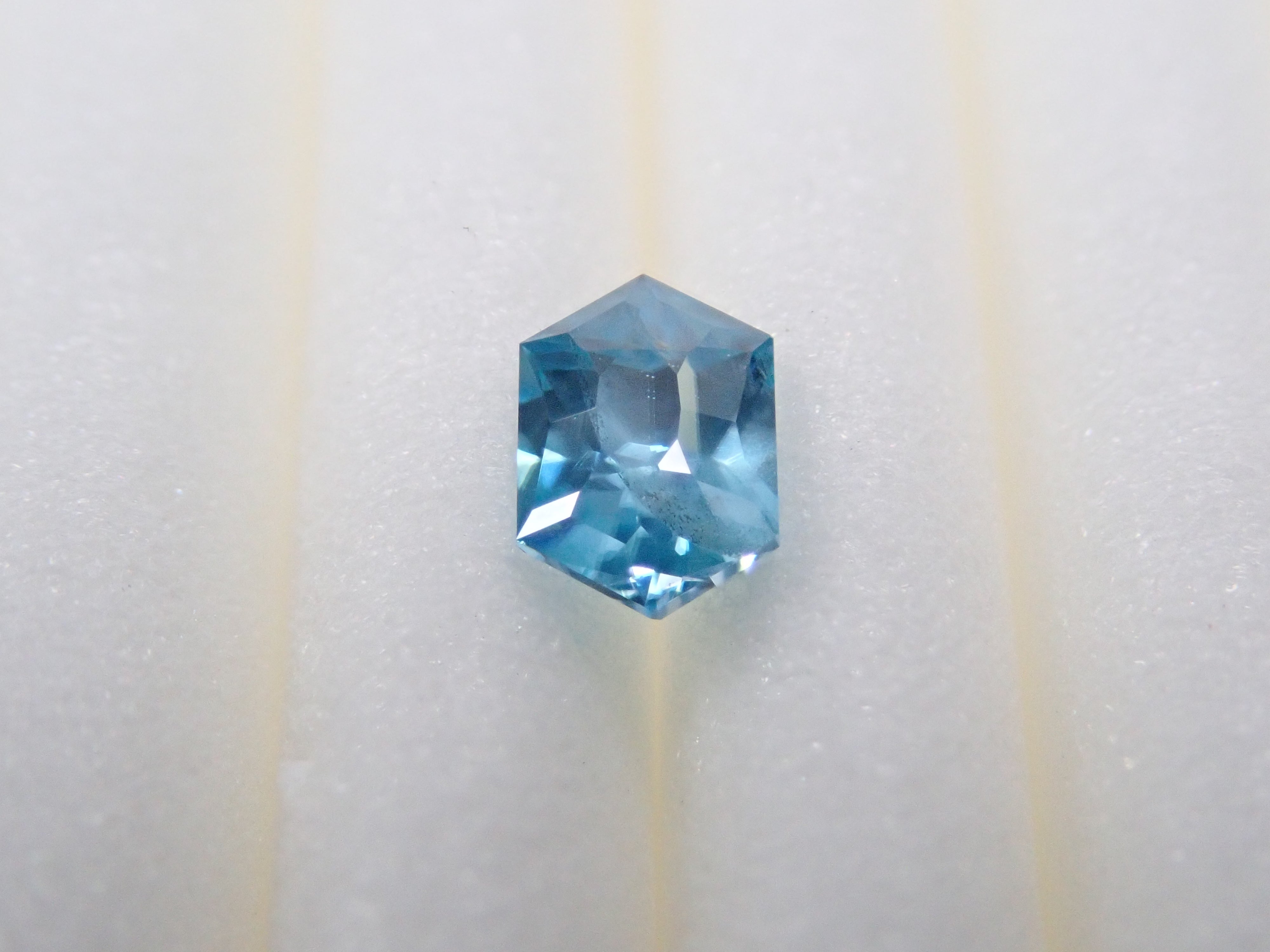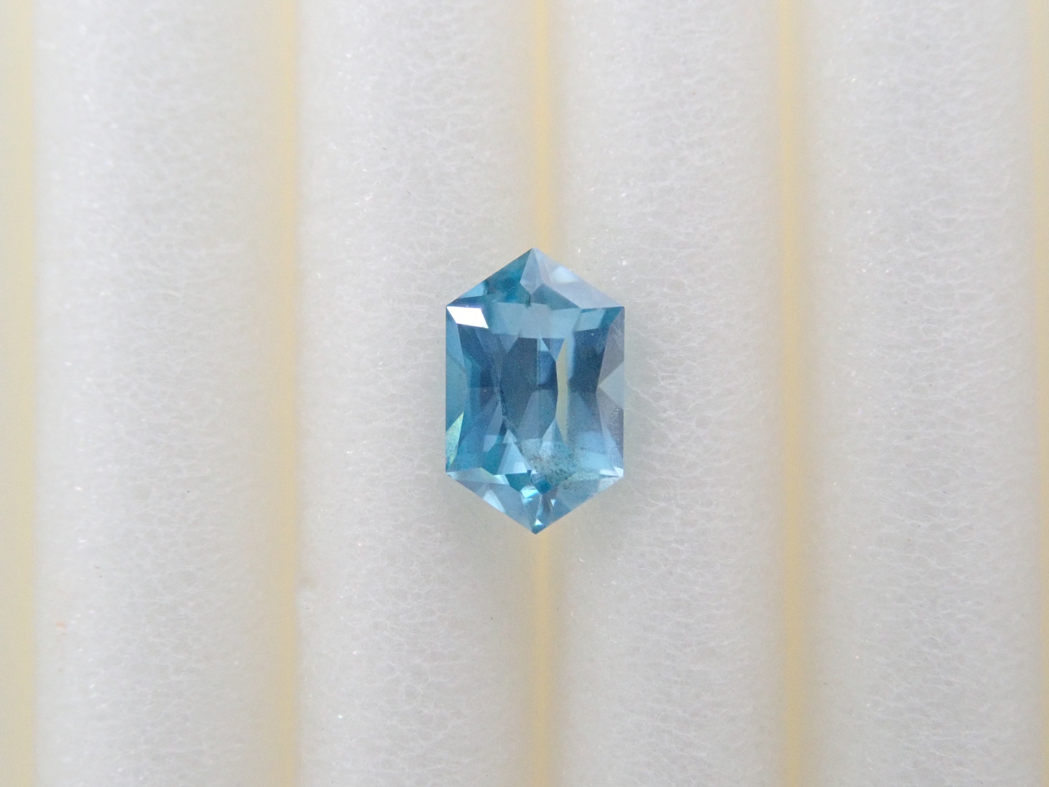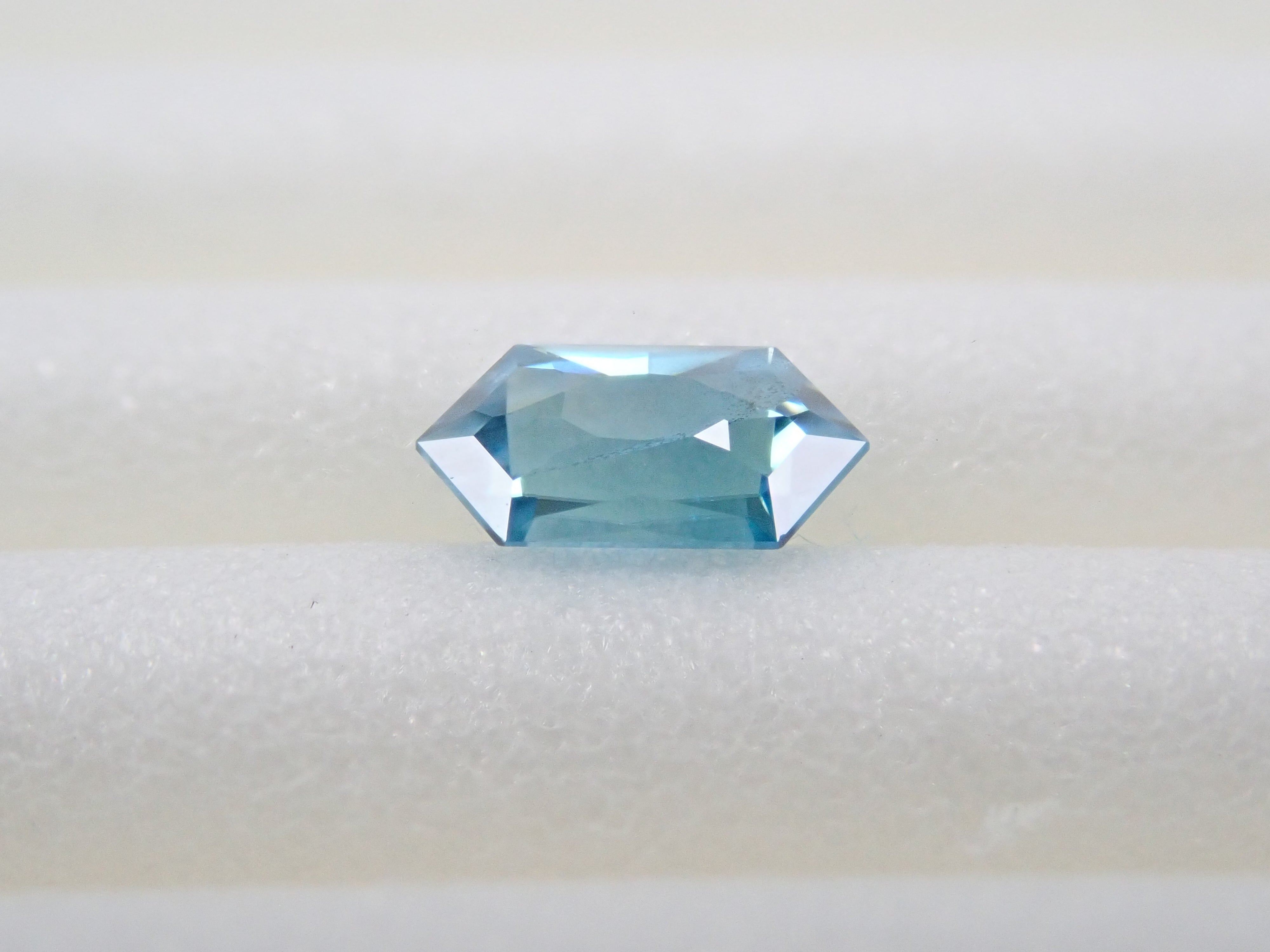 這是來自柬埔寨的長六角形切割藍色鋯石。