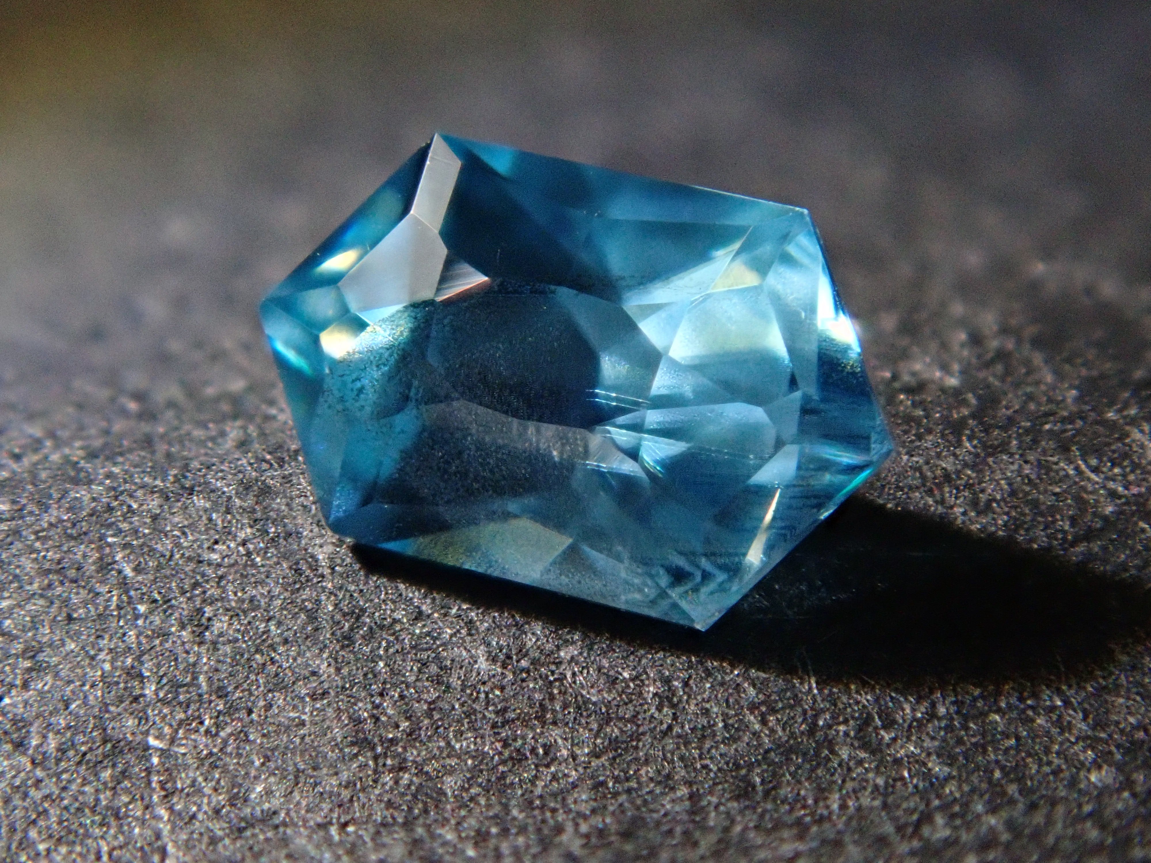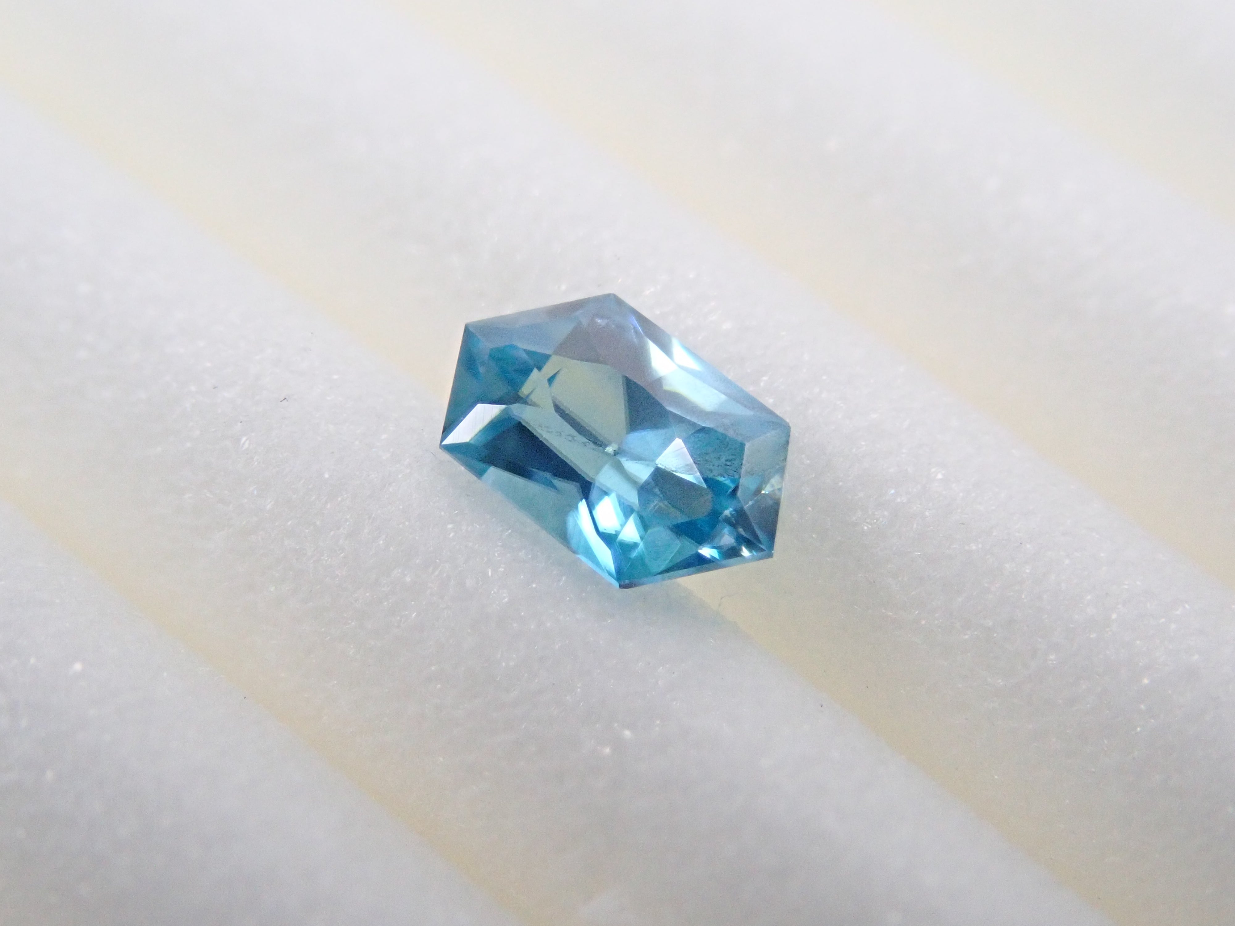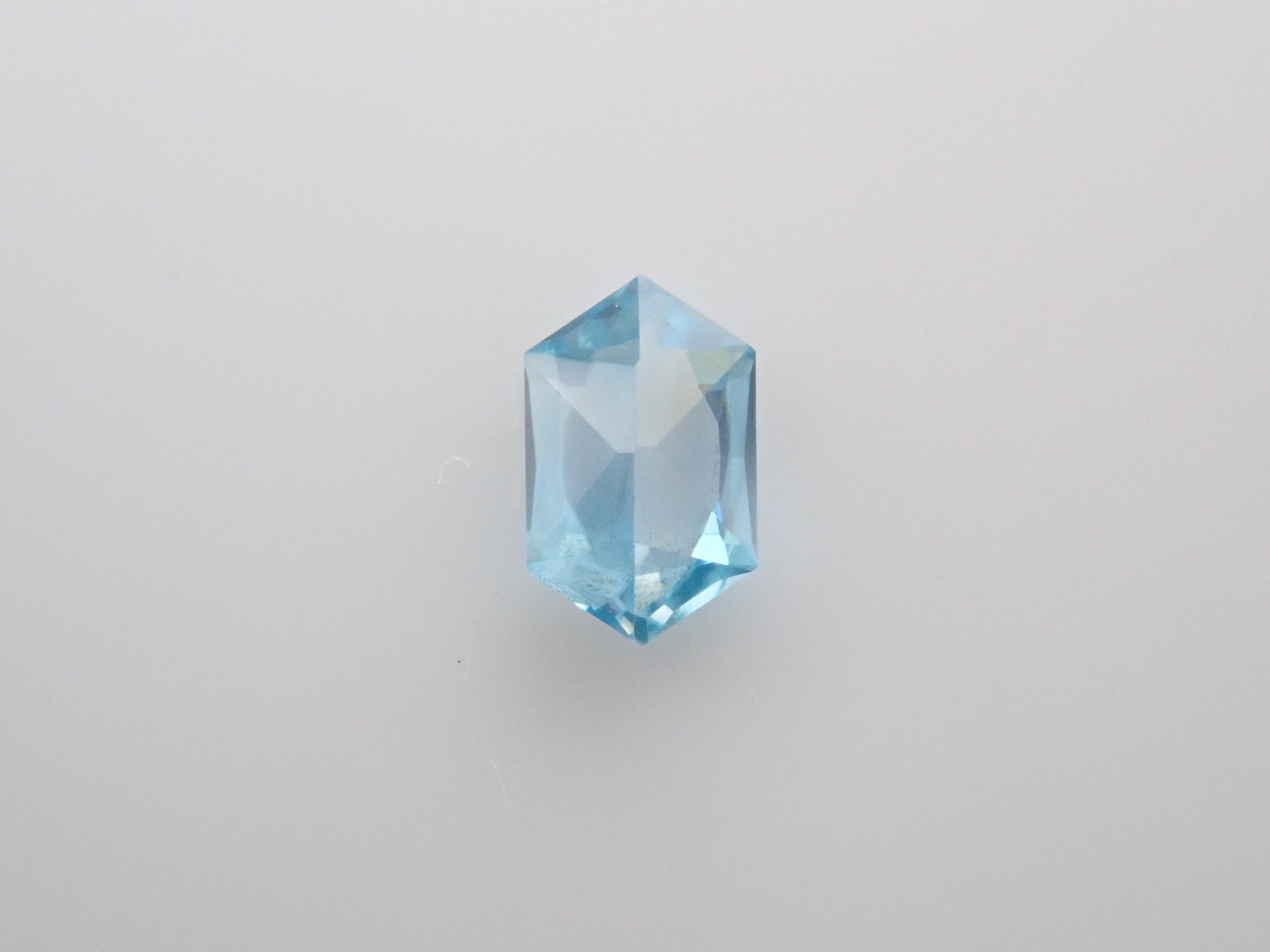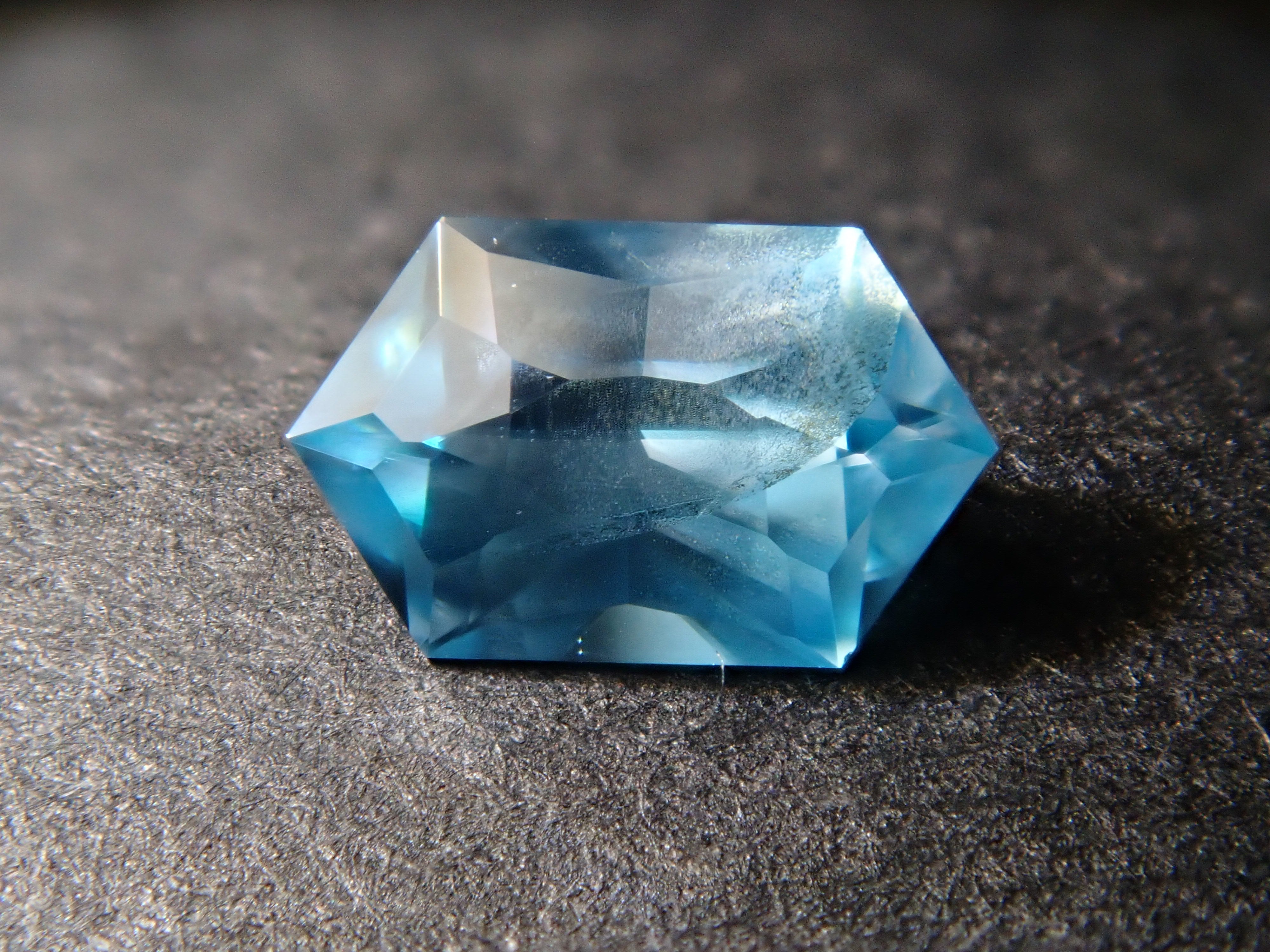 這是來自柬埔寨的長六角形切割藍色鋯石。
