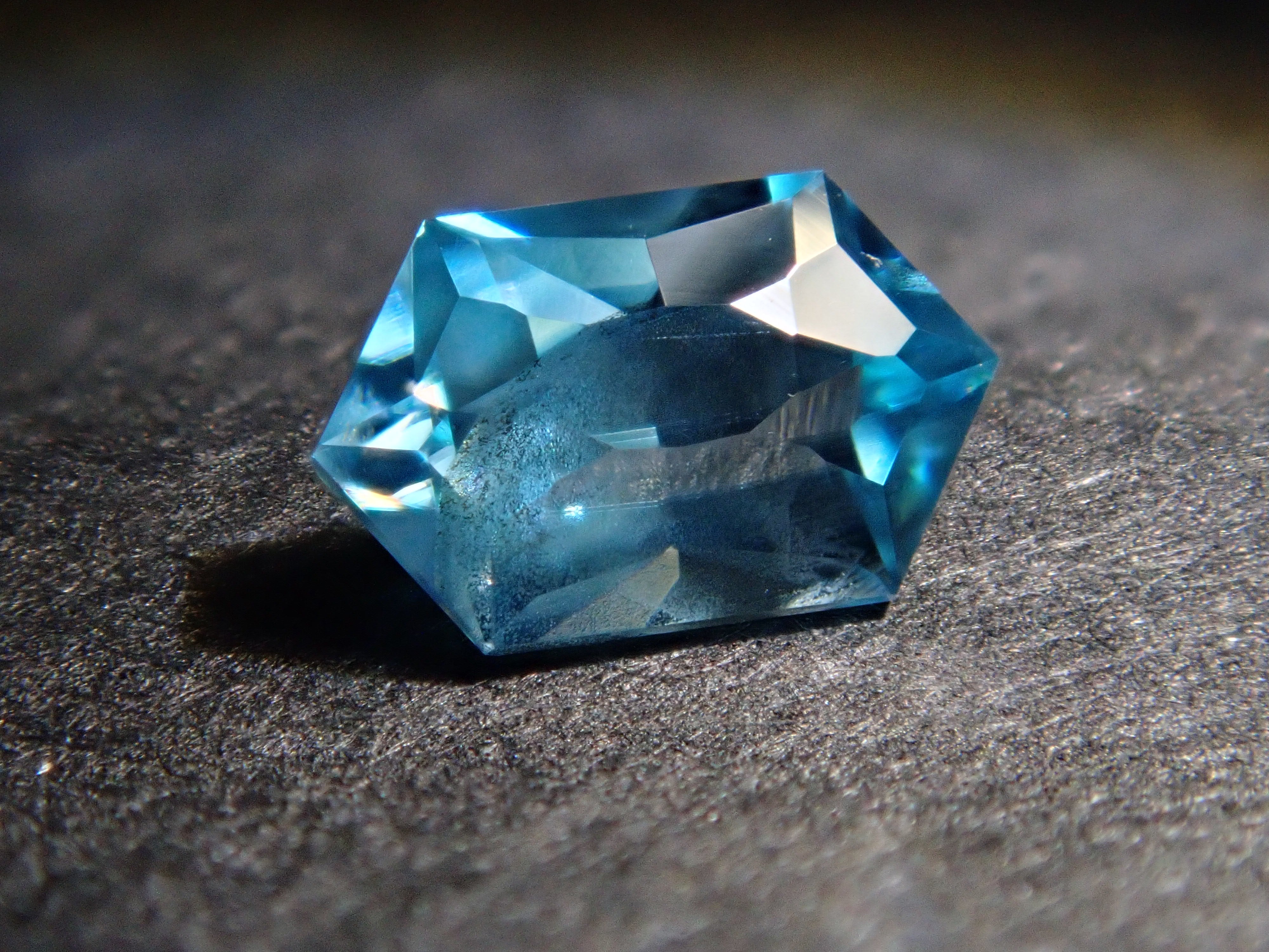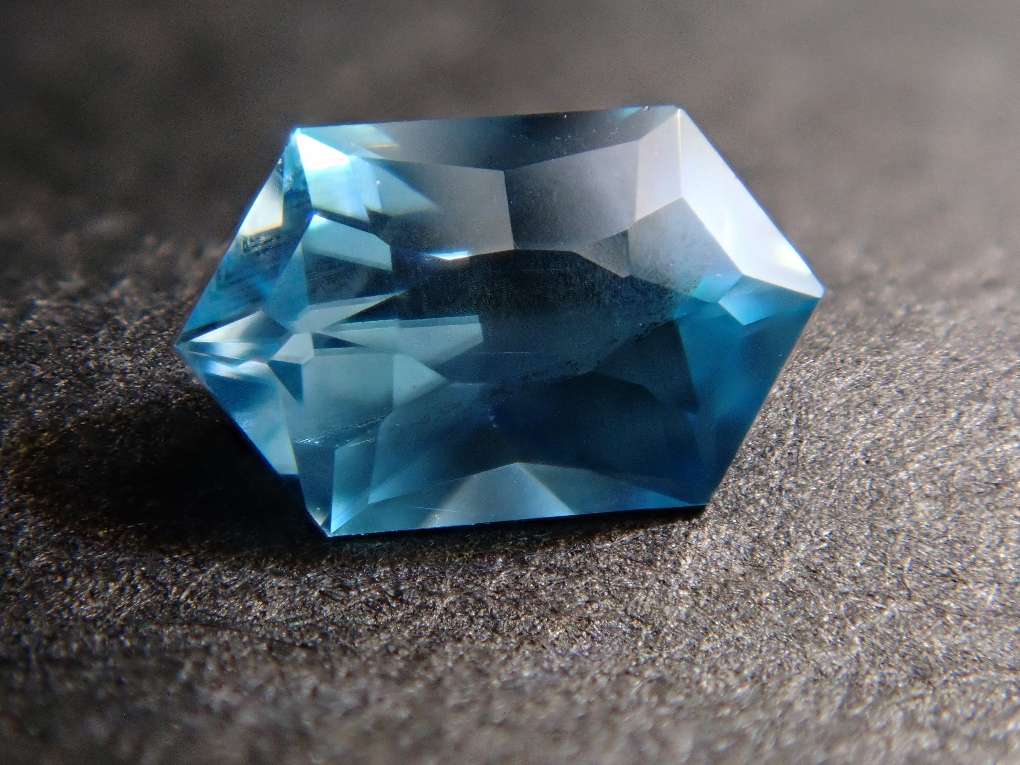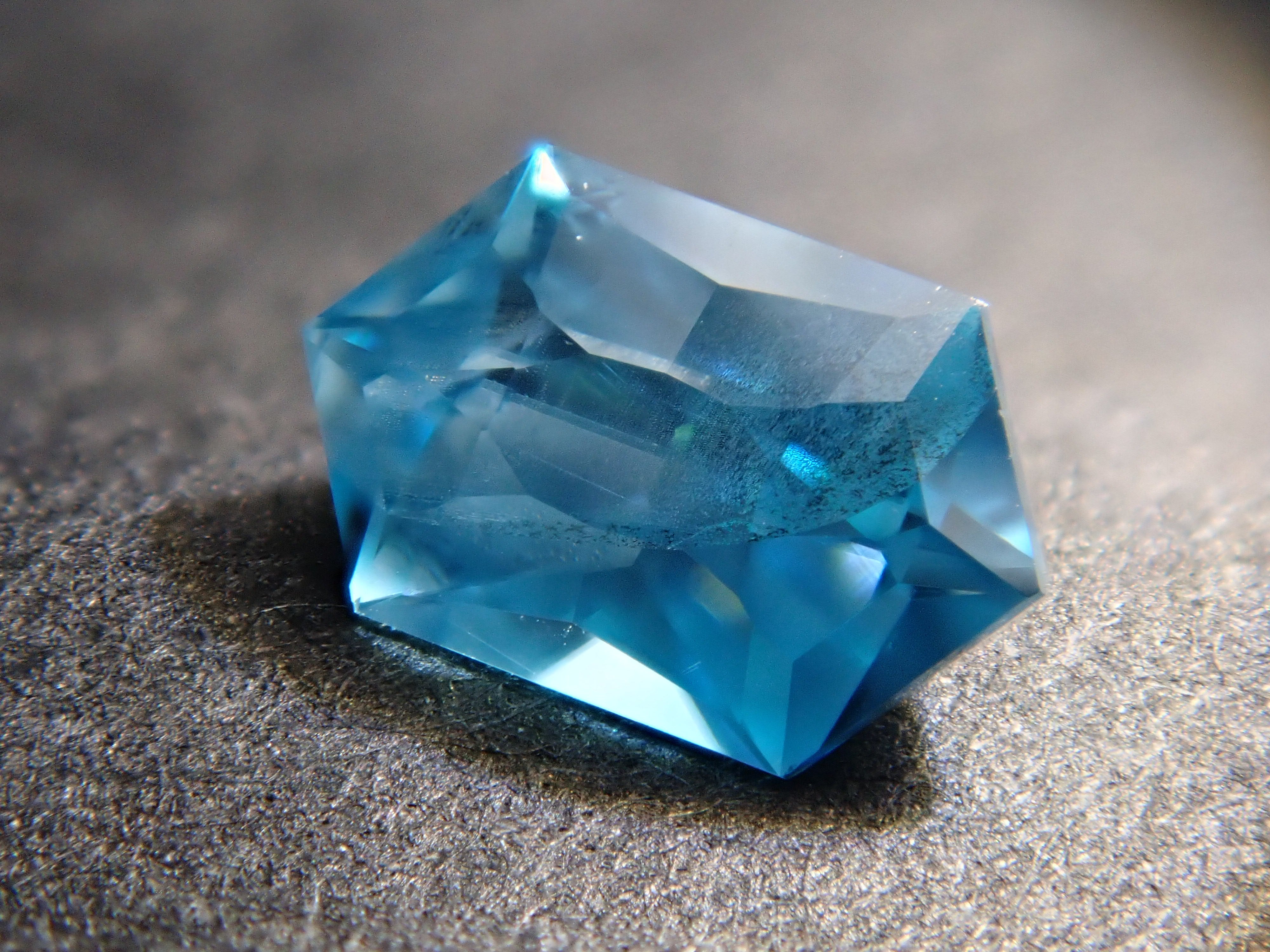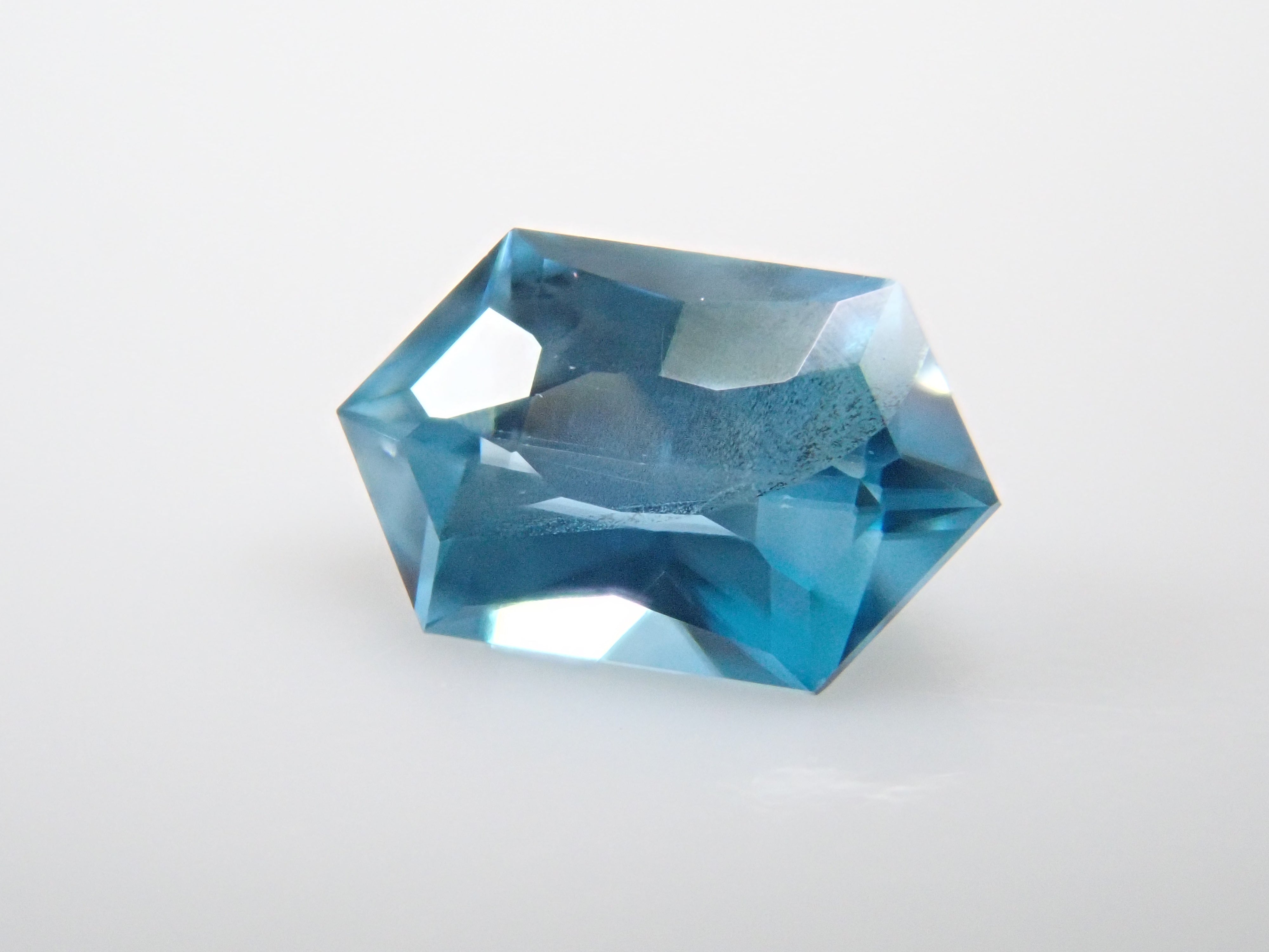 這是來自柬埔寨的長六角形切割藍色鋯石。