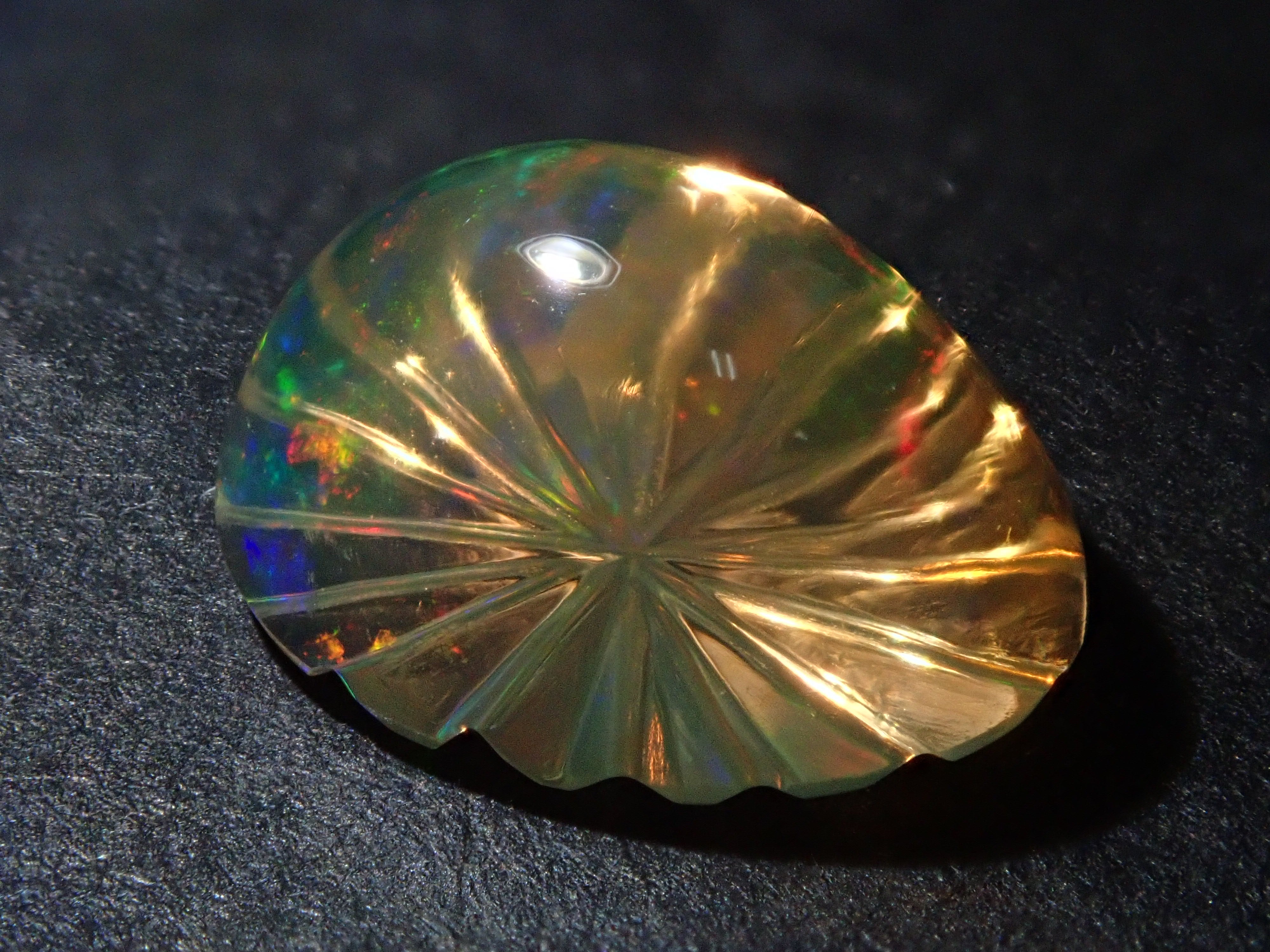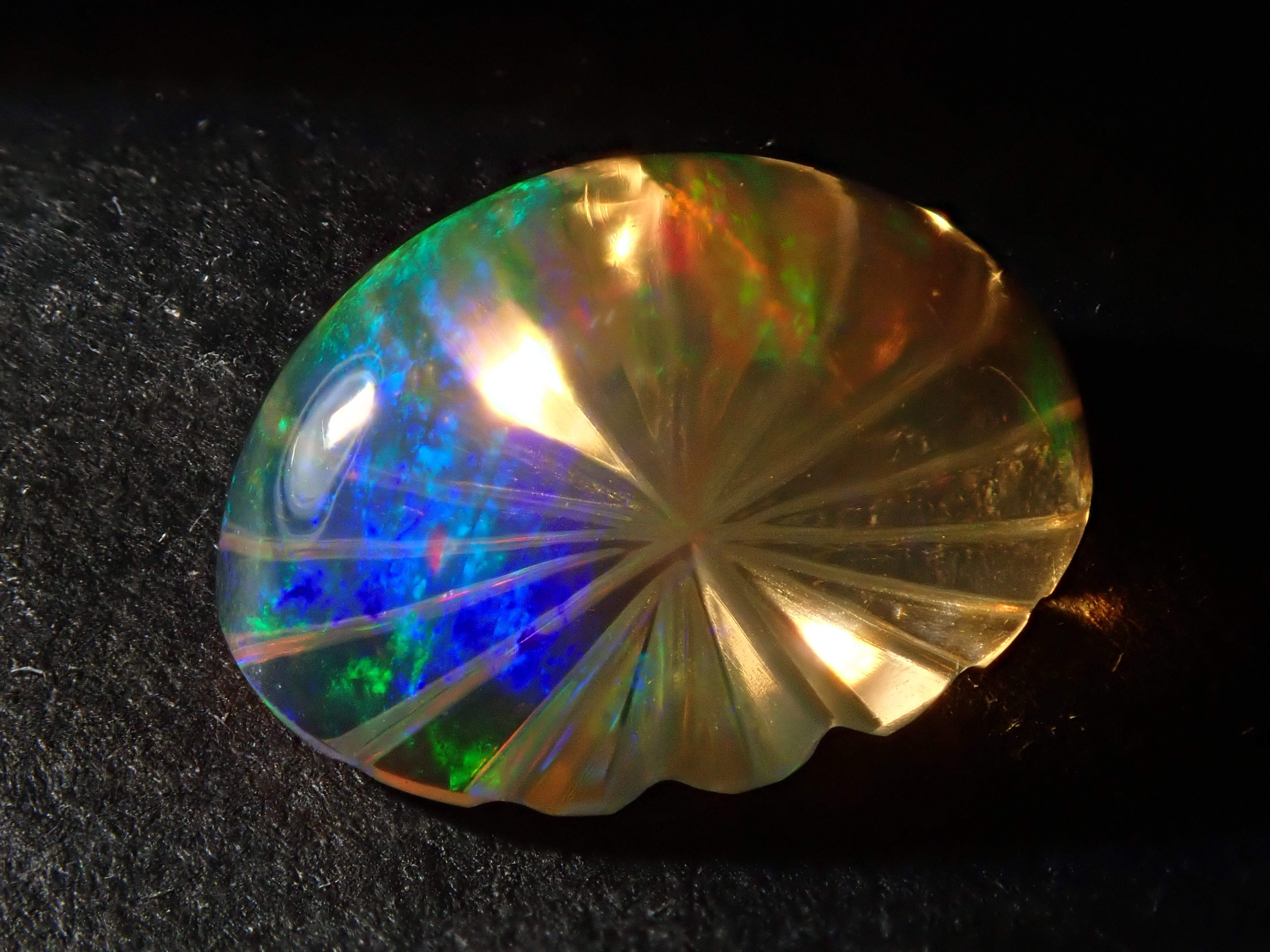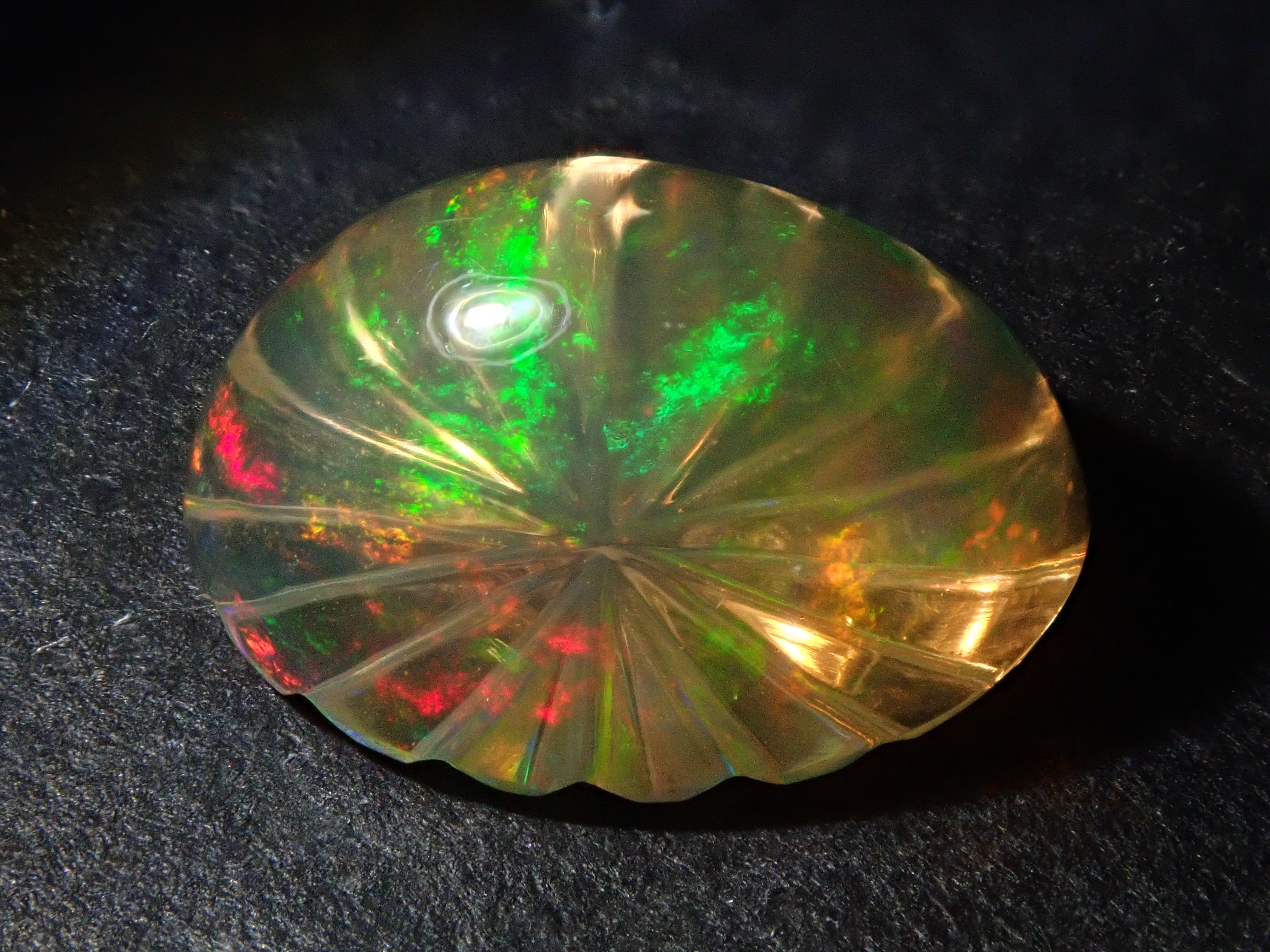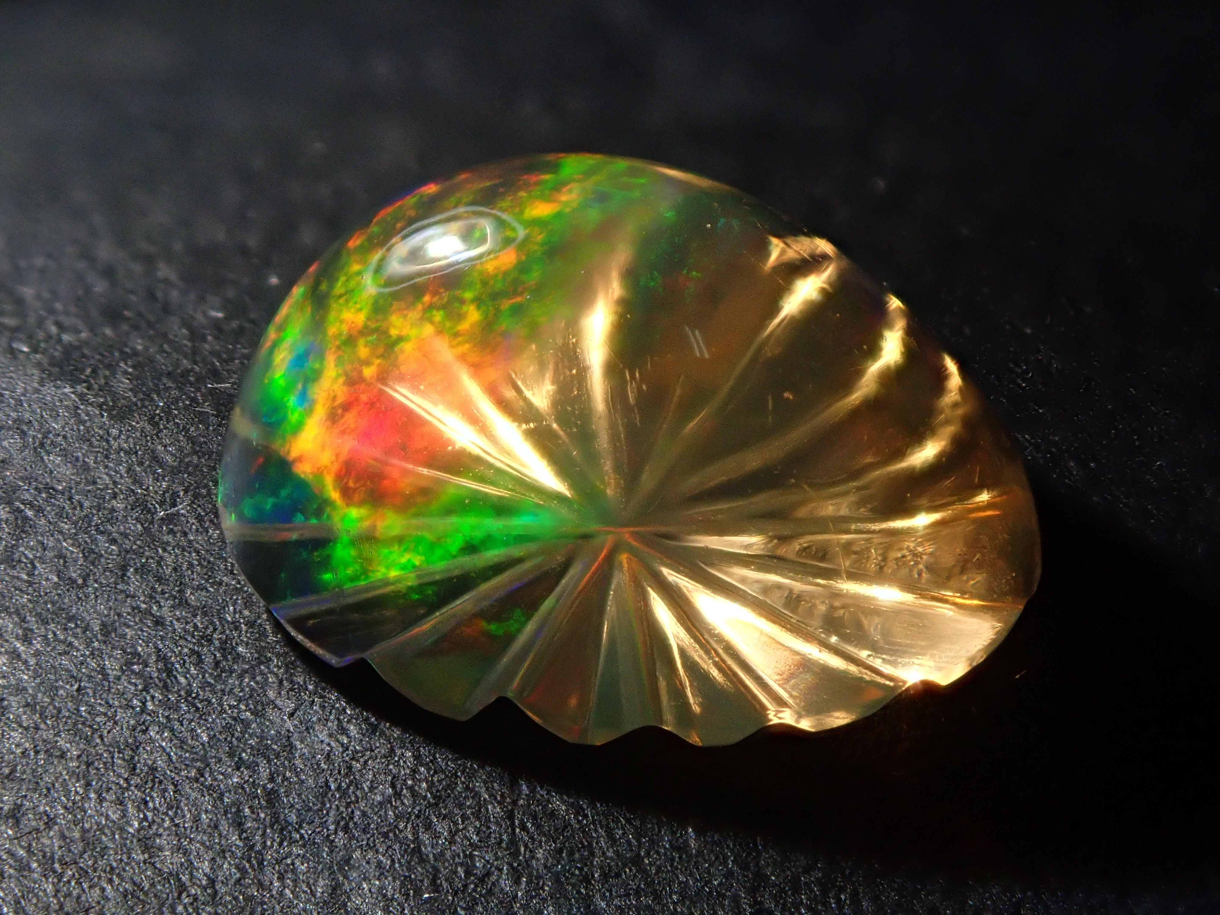 蛋白石自古羅馬時代以來就很受歡迎。火蛋白石是指底色從紅色到橘色的蛋白石,給人火的形象。照片是使用筆燈拍攝的。