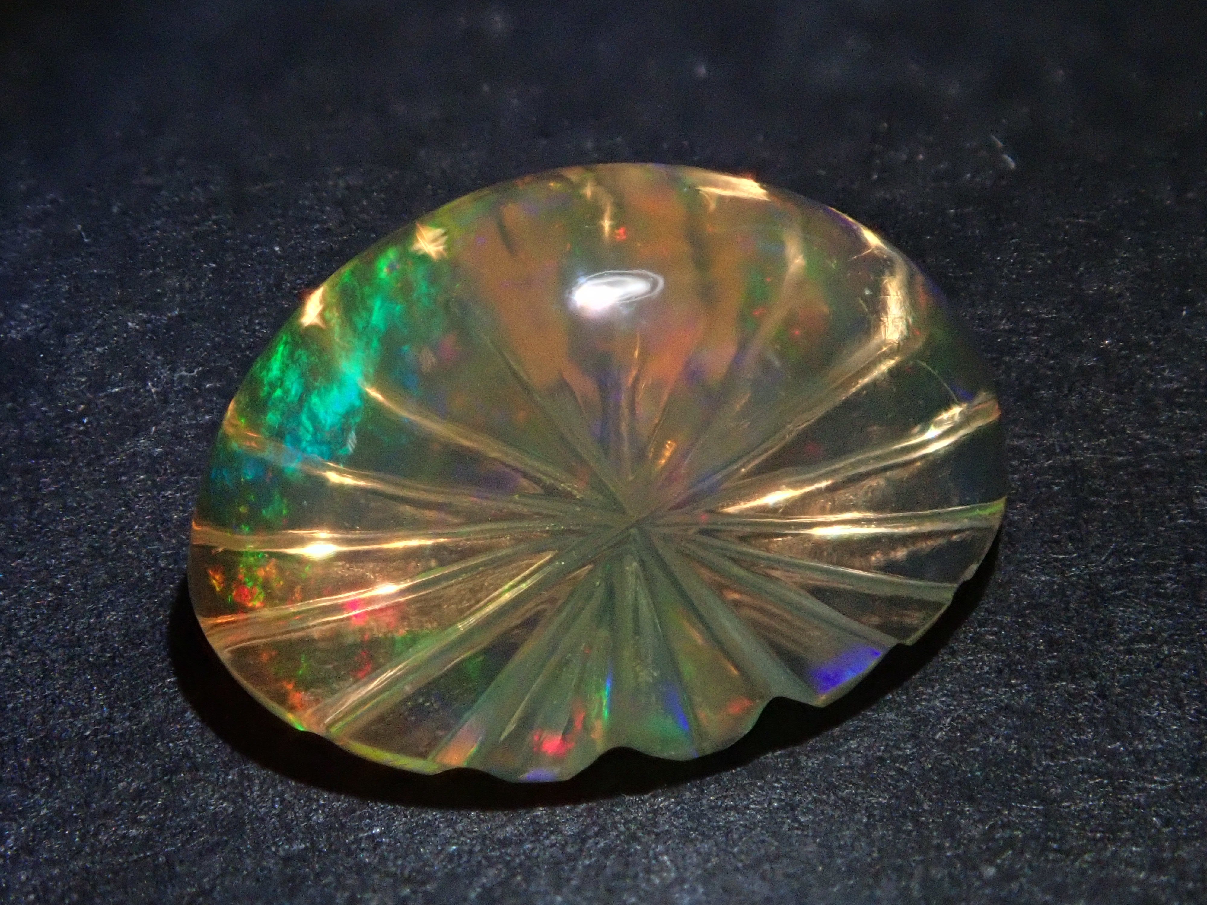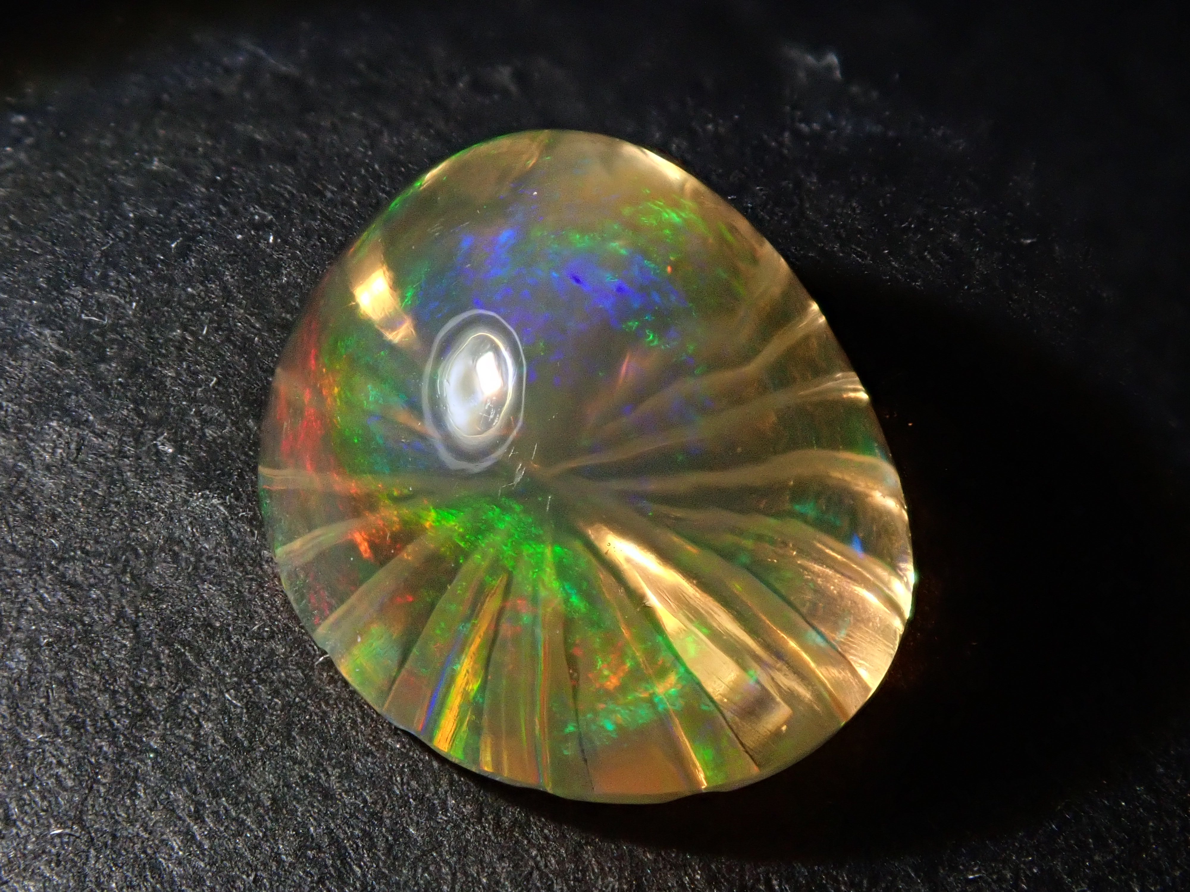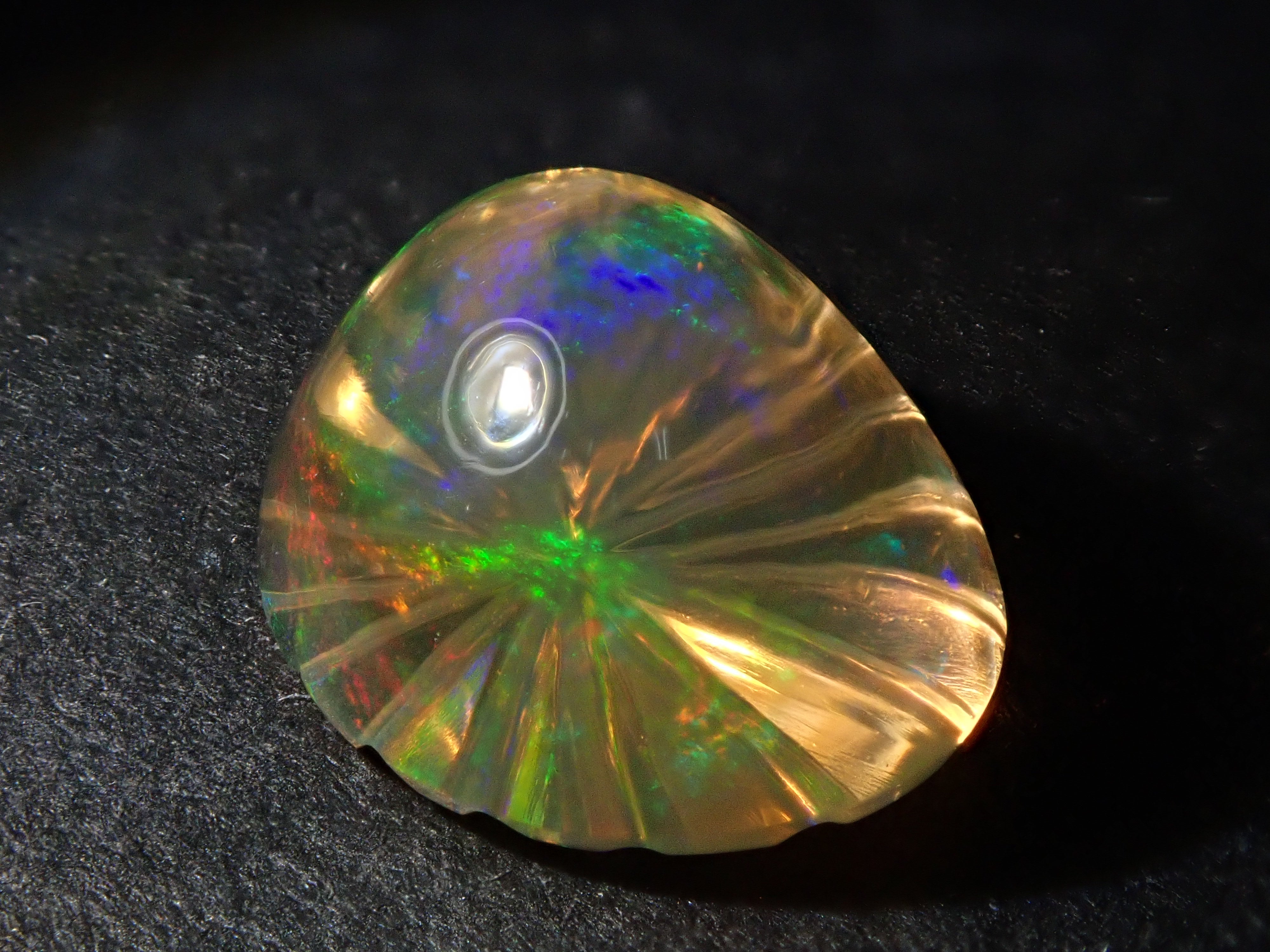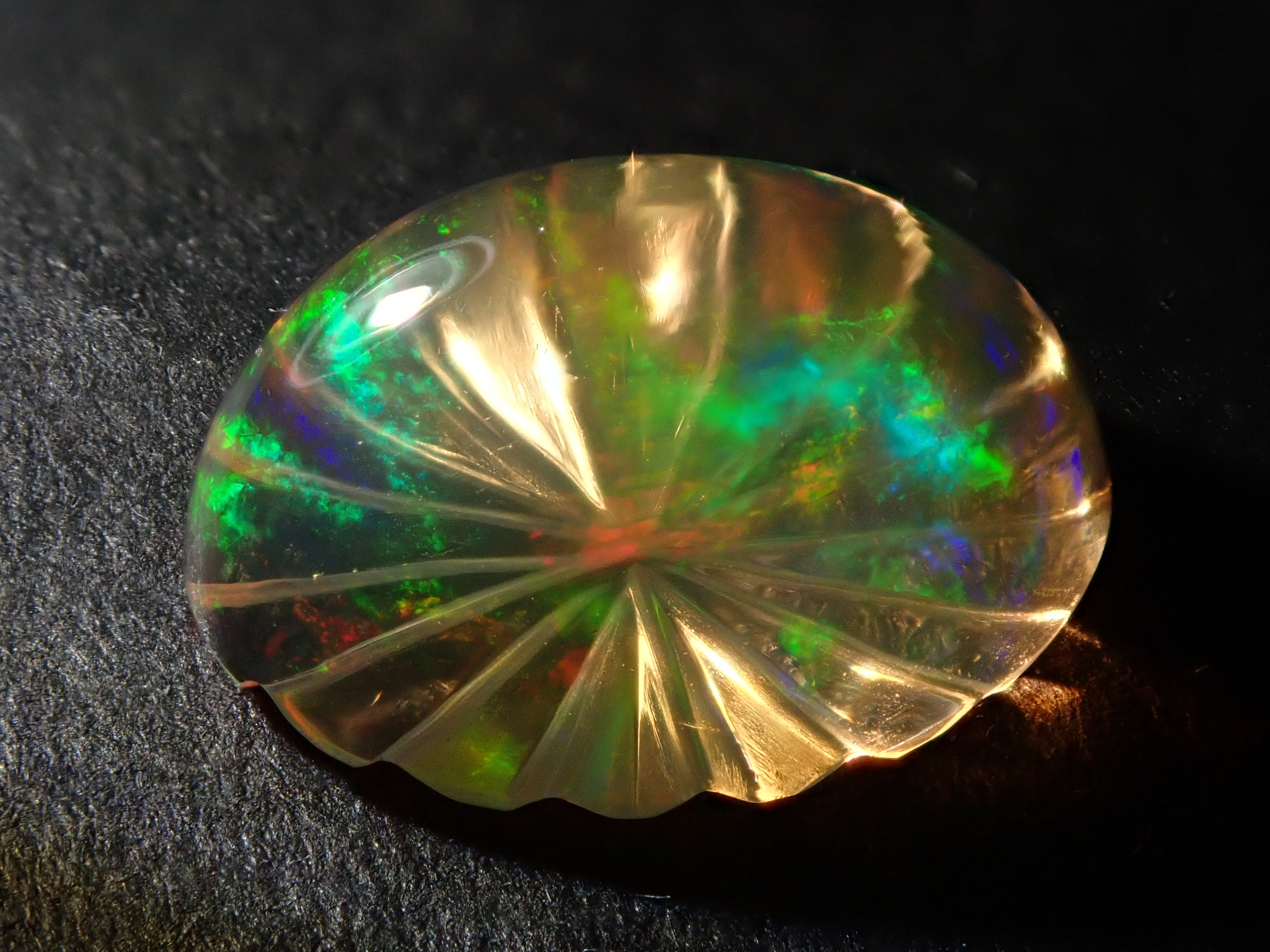 蛋白石自古羅馬時代以來就很受歡迎。火蛋白石是指底色從紅色到橘色的蛋白石,給人火的形象。照片是使用筆燈拍攝的。
