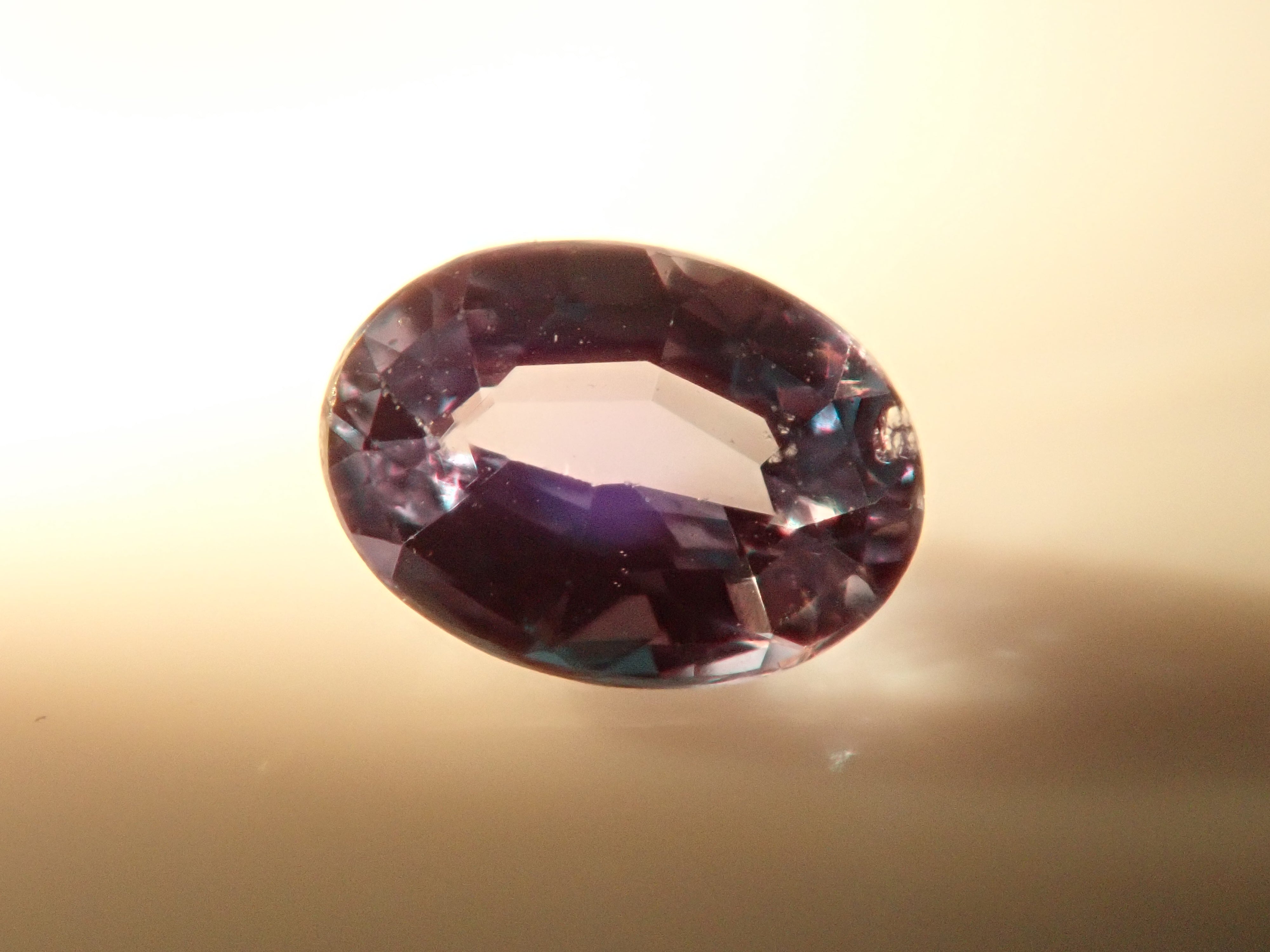 紫翠玉也被稱為「寶石之王」。它是一種顏色從綠色變為紅色的神秘寶石,也被稱為“白天的祖母綠和夜間的紅寶石”。這是來自巴西的亞歷山大變石。請使用紅色變色筆燈欣賞變色效果。