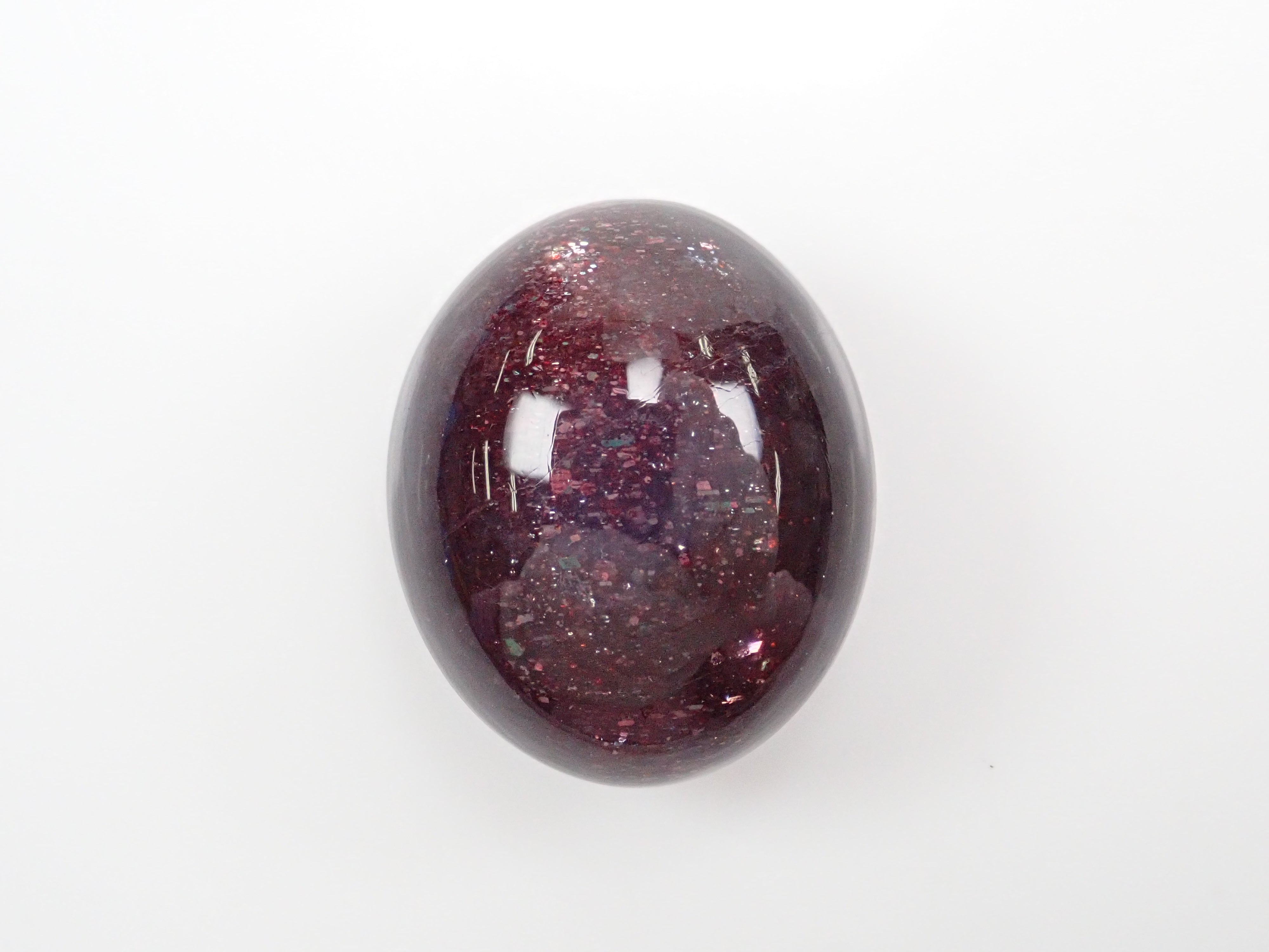 在表現出這種效果的那些中,那些帶有紅色斑點狀圖案的被稱為“血絲”。據說紅色的主要原因是纖鐵礦。它是一顆充滿夜空魅力的寶石。