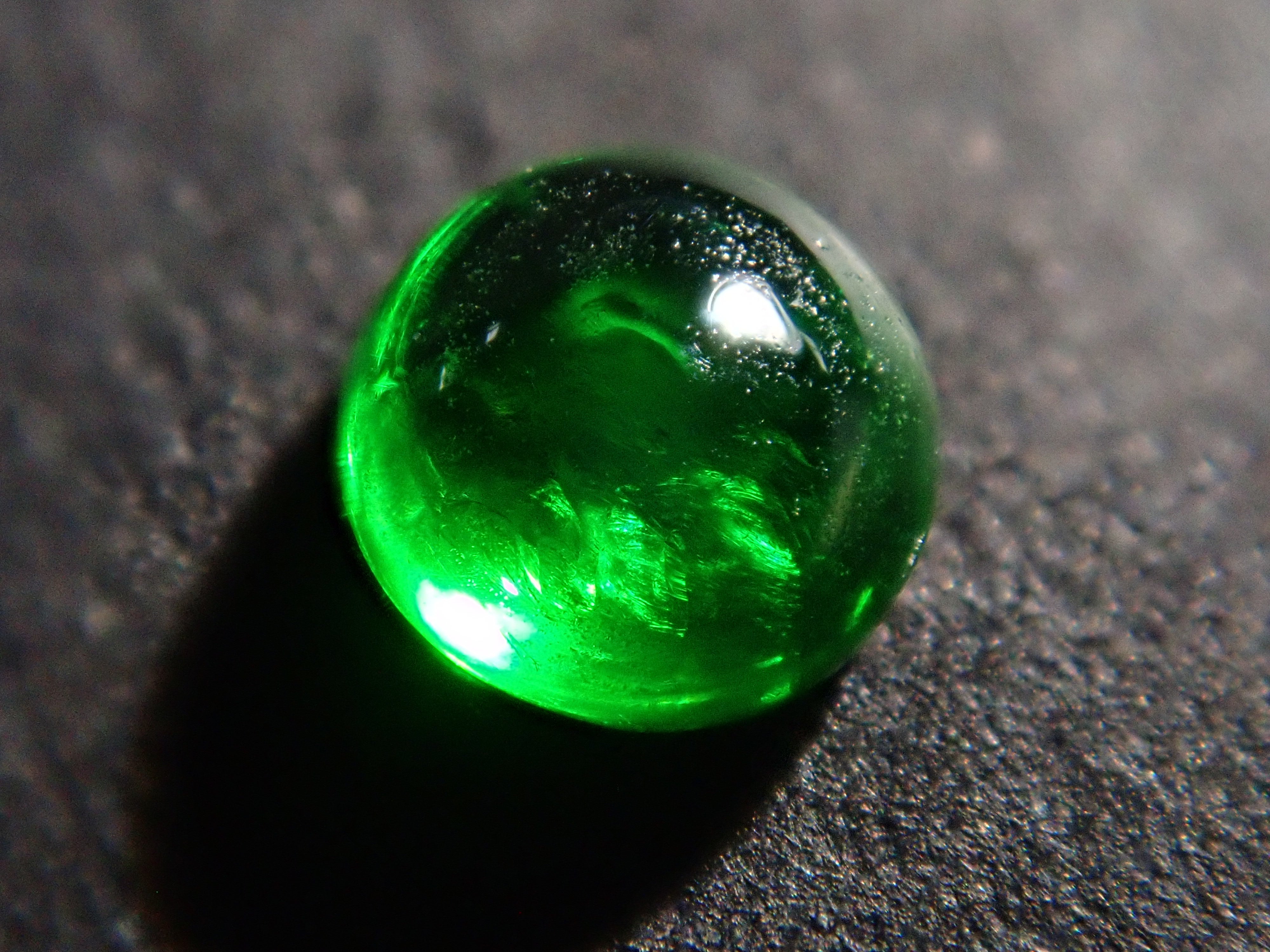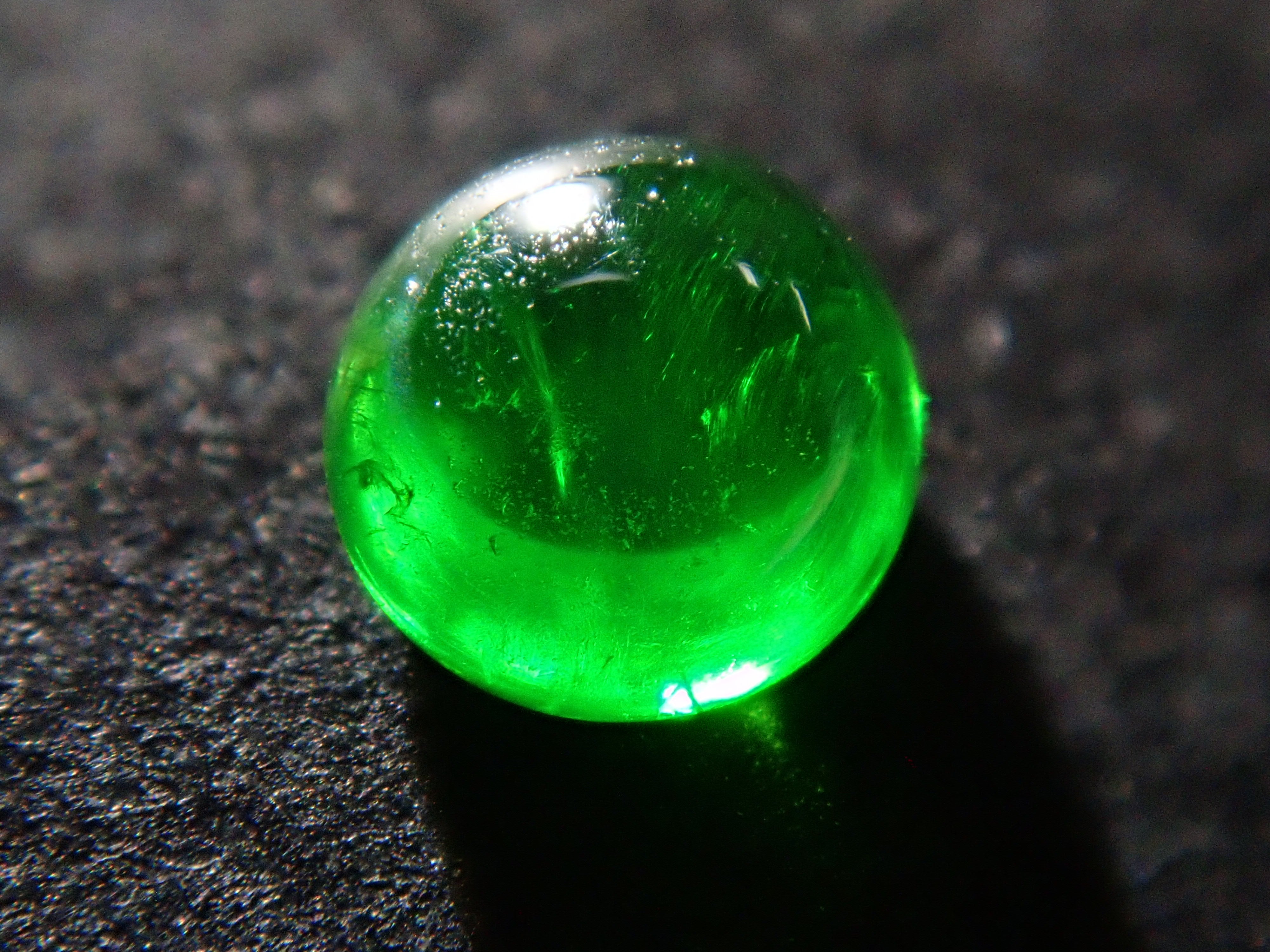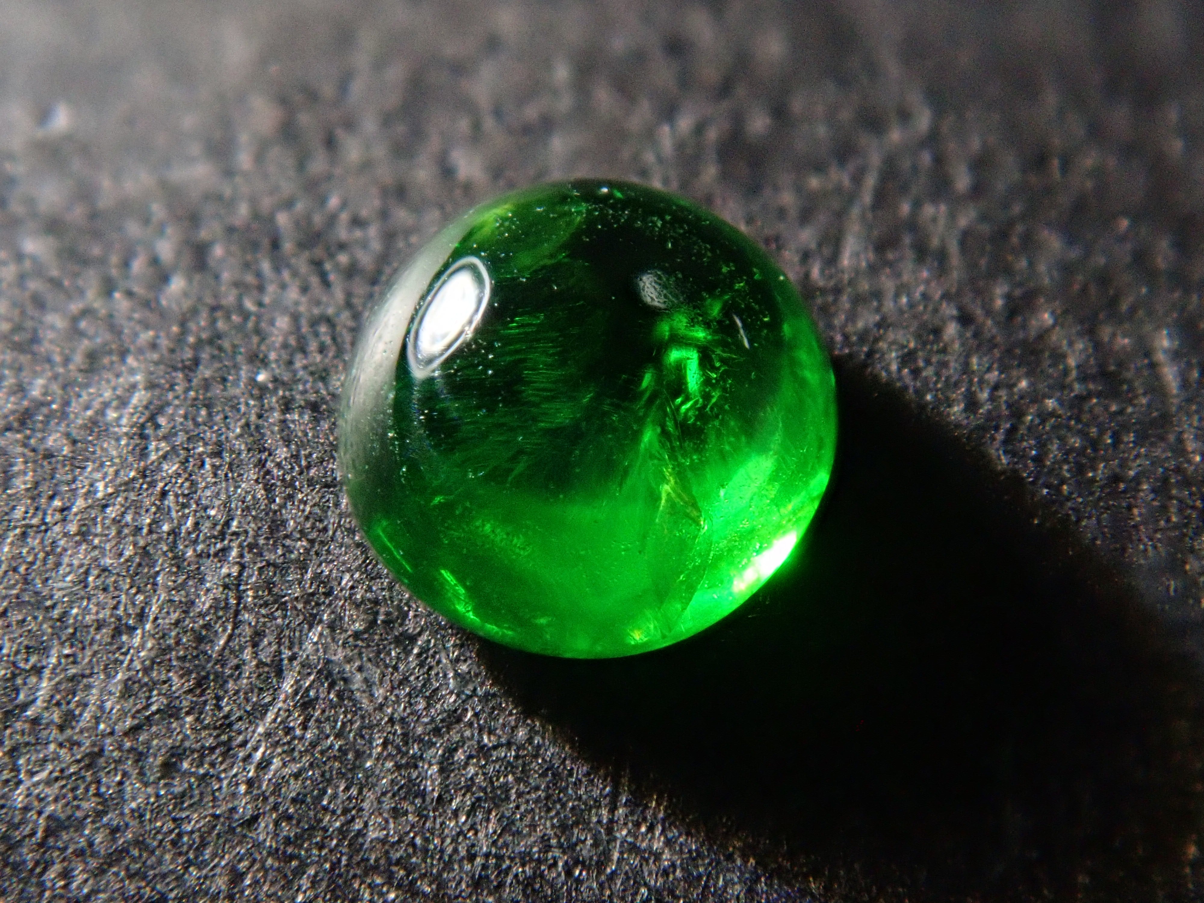 石榴石具有強烈的光色散和強烈的閃光。其中,這顆綠色的「濃綠榴石」是一種特別美麗且稀有的石榴石。這種類型的內含物被稱為“馬尾”,看起來像馬尾巴,甚至有貓眼效果。而且,這在俄羅斯也是很少見的。筆燈用於攝影。石頭的背面基本上是未拋光的。透過顯微鏡檢查證實了馬尾草的存在。這顆濃綠榴石是直接從俄羅斯濃綠榴石礦主購買的。凸圓形切割 3 毫米。