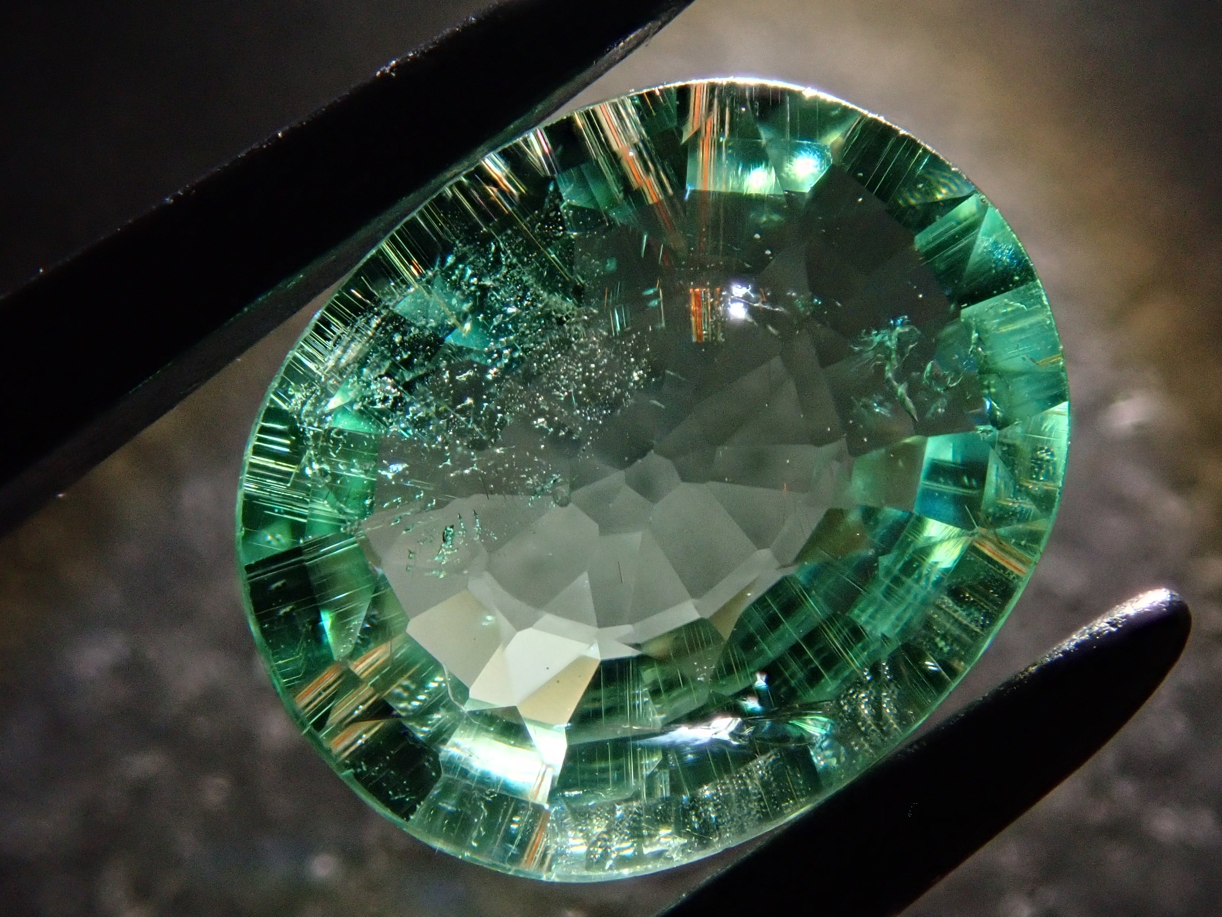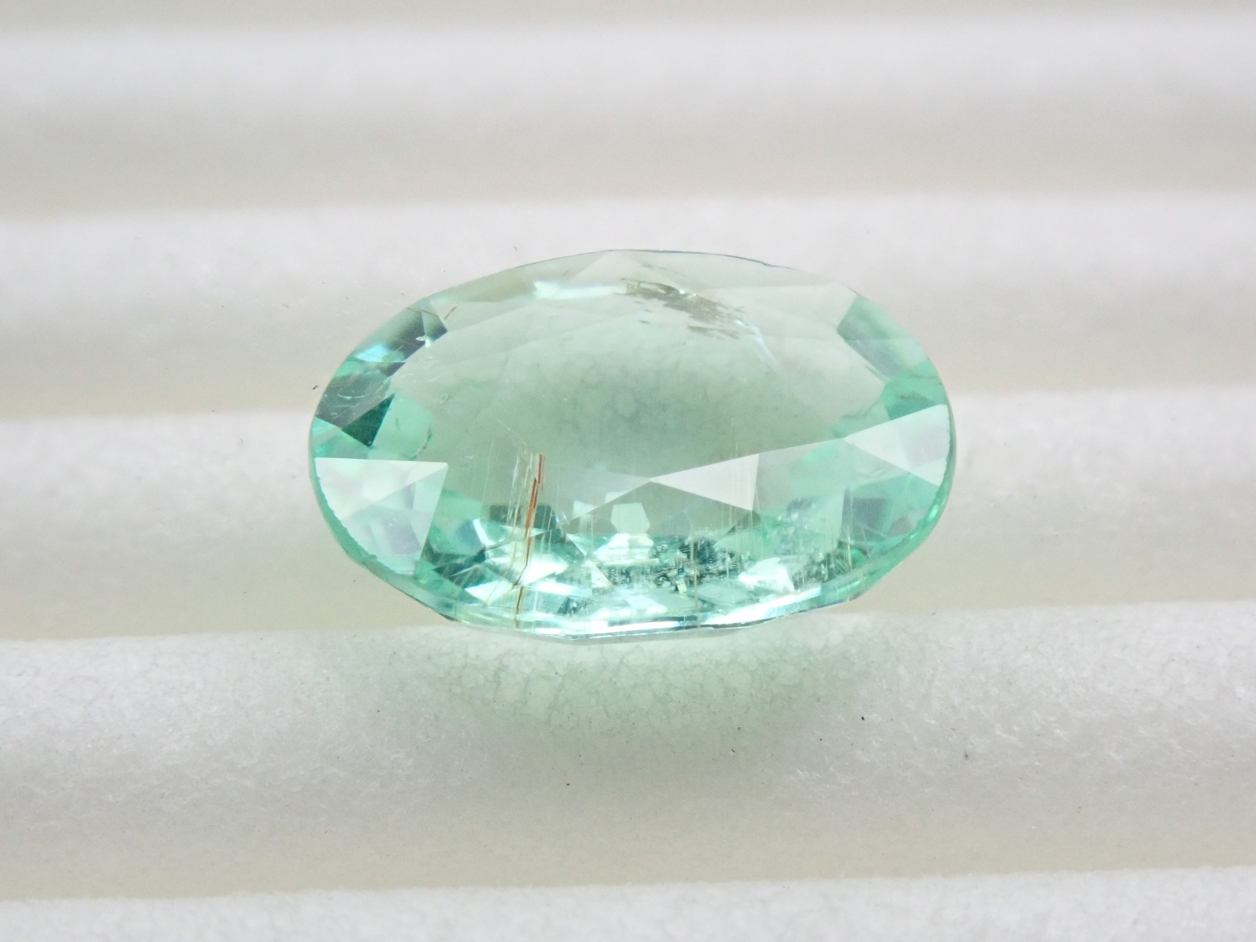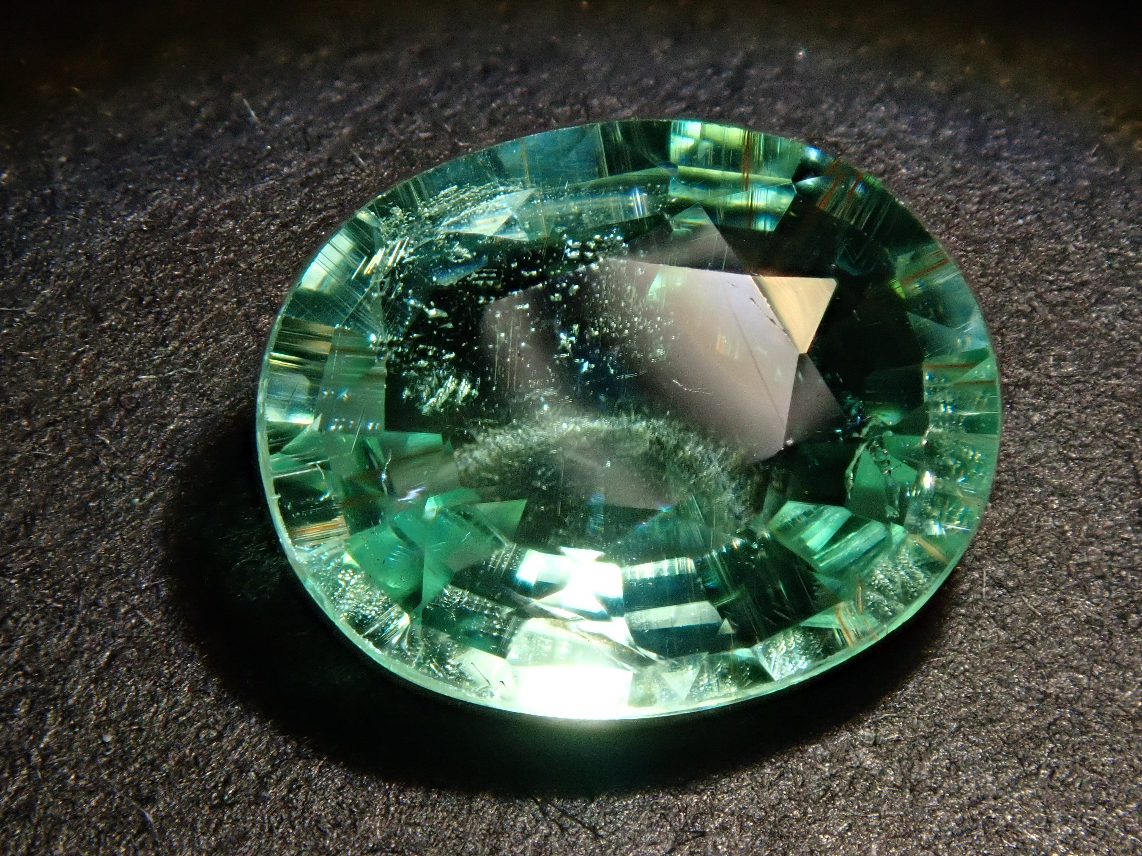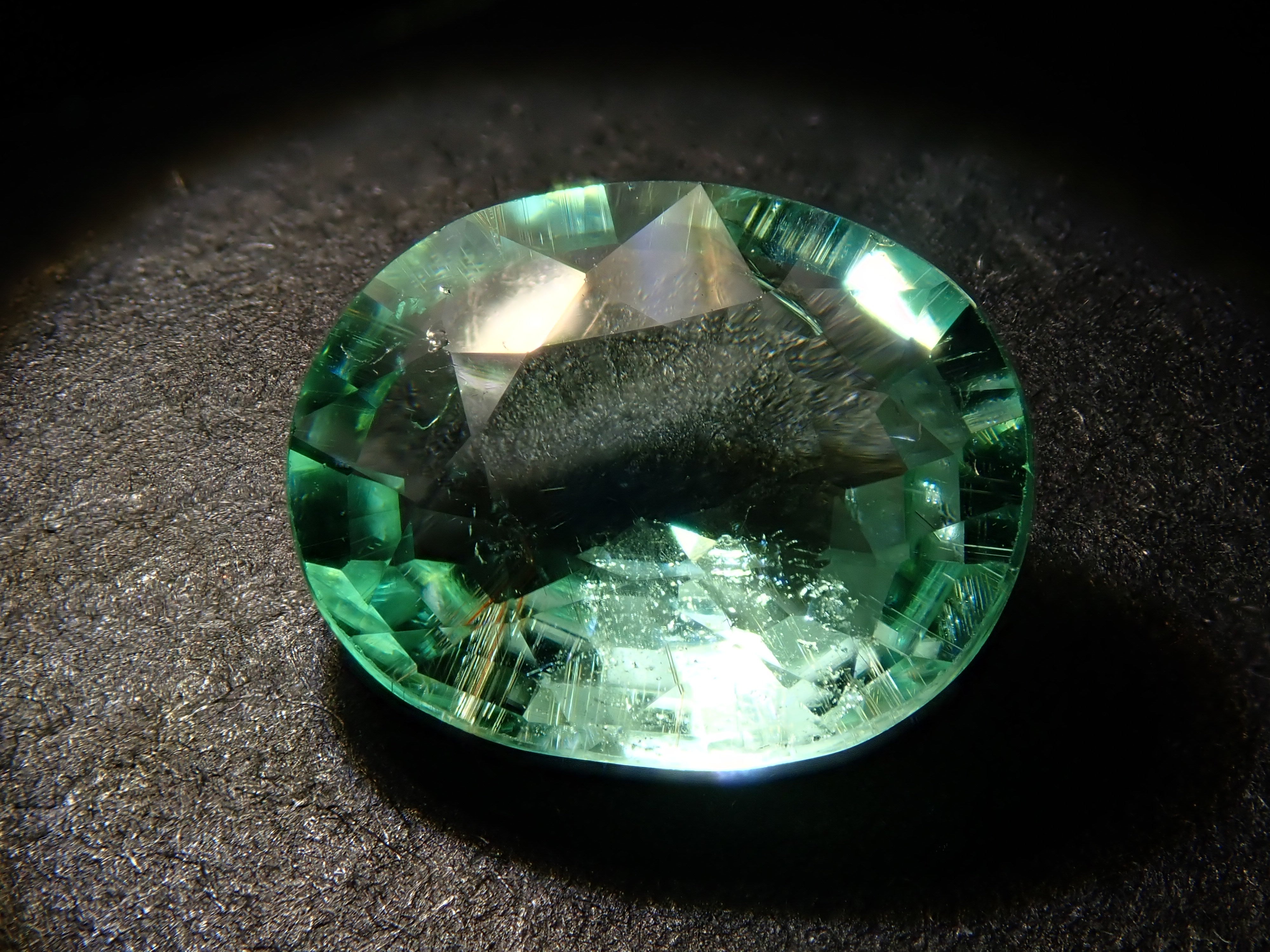 這是一顆近1.5克拉的大顆帕拉伊巴碧璽,透明度極高,閃閃發光。