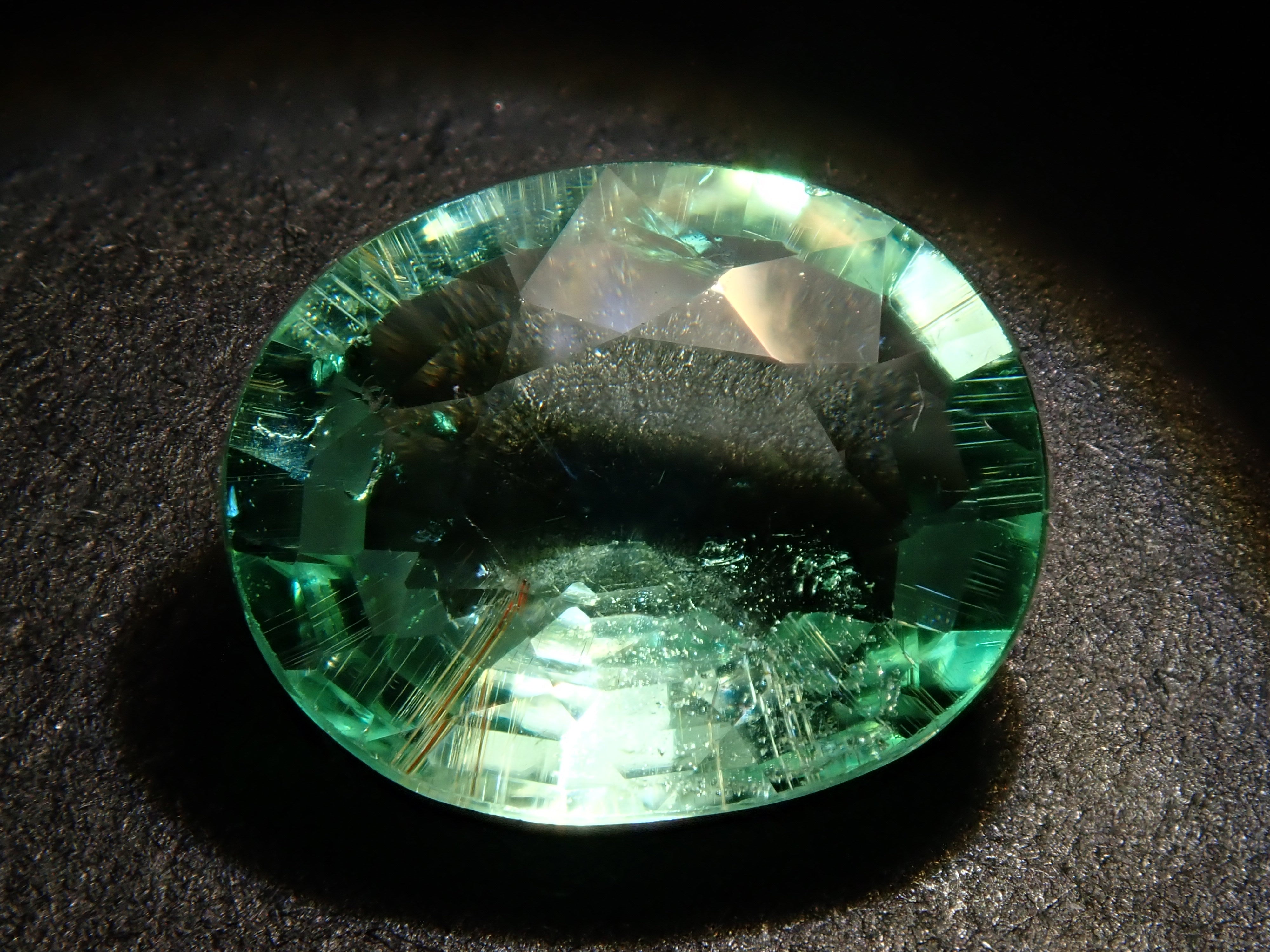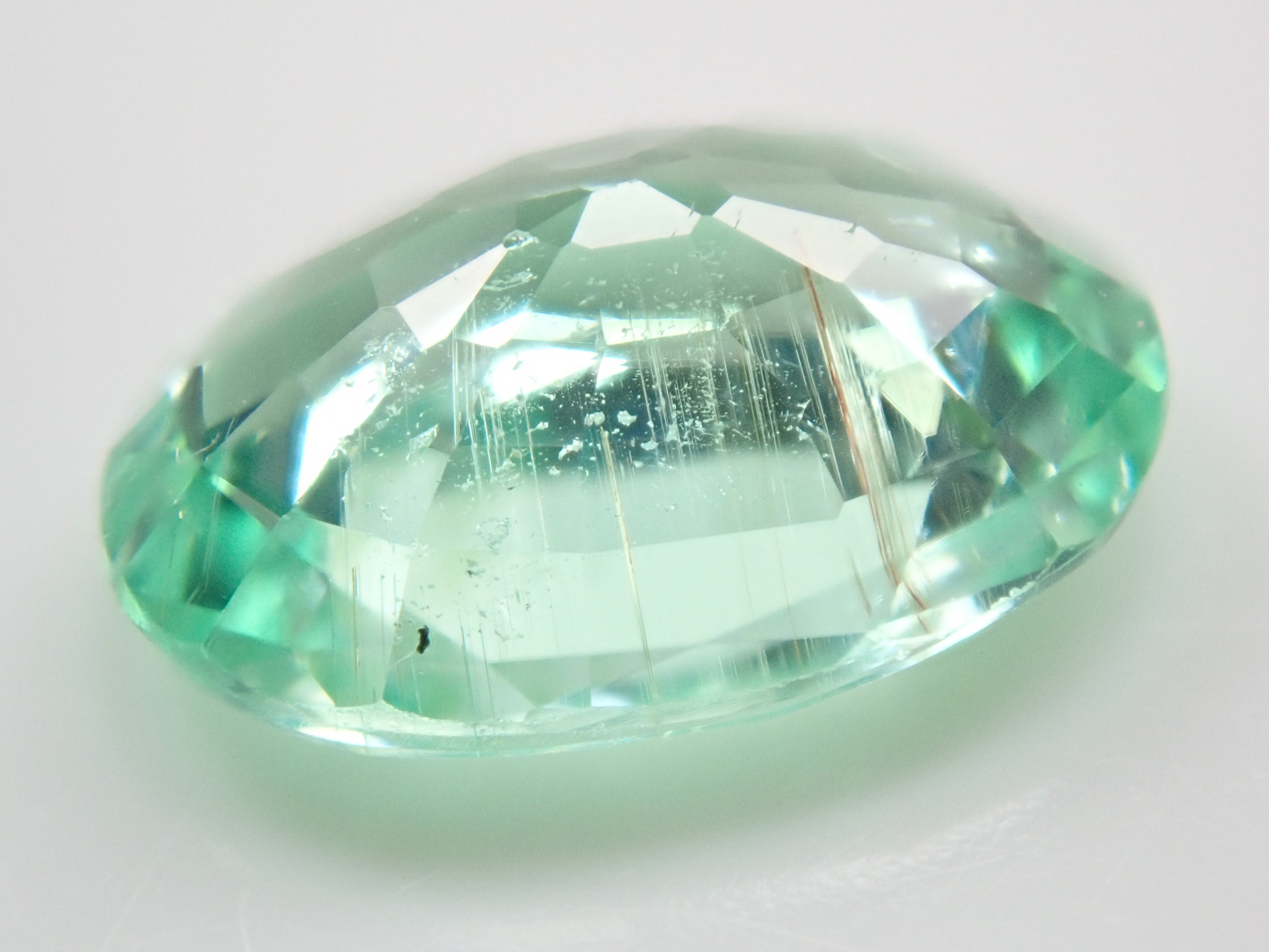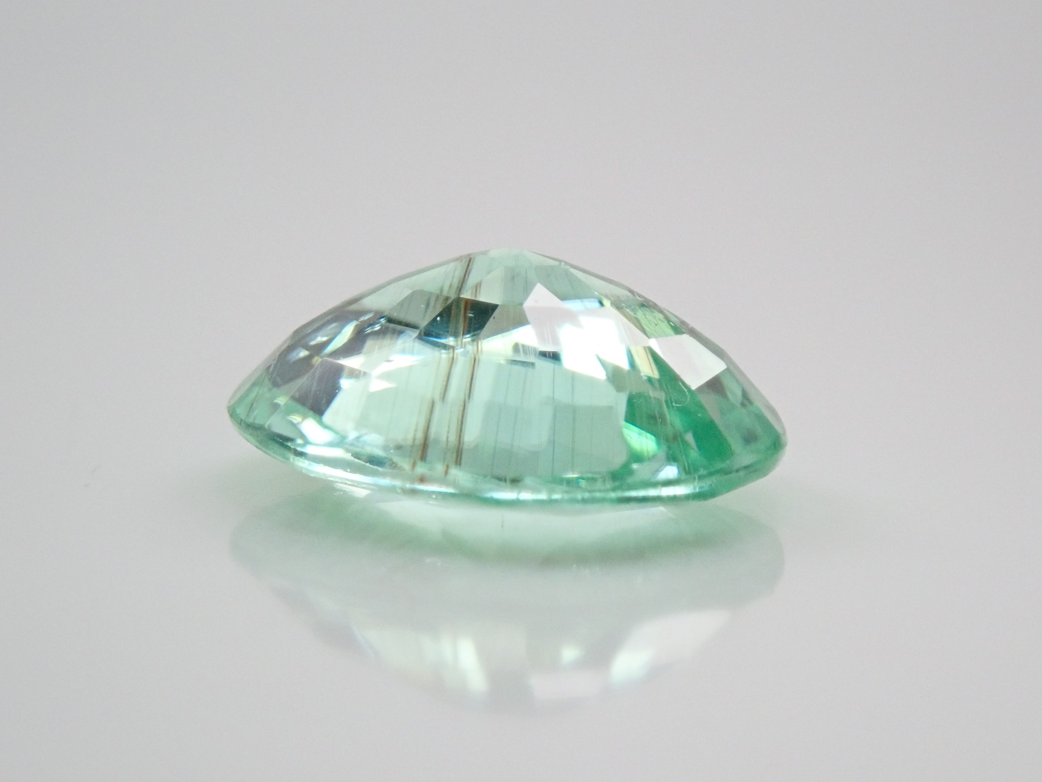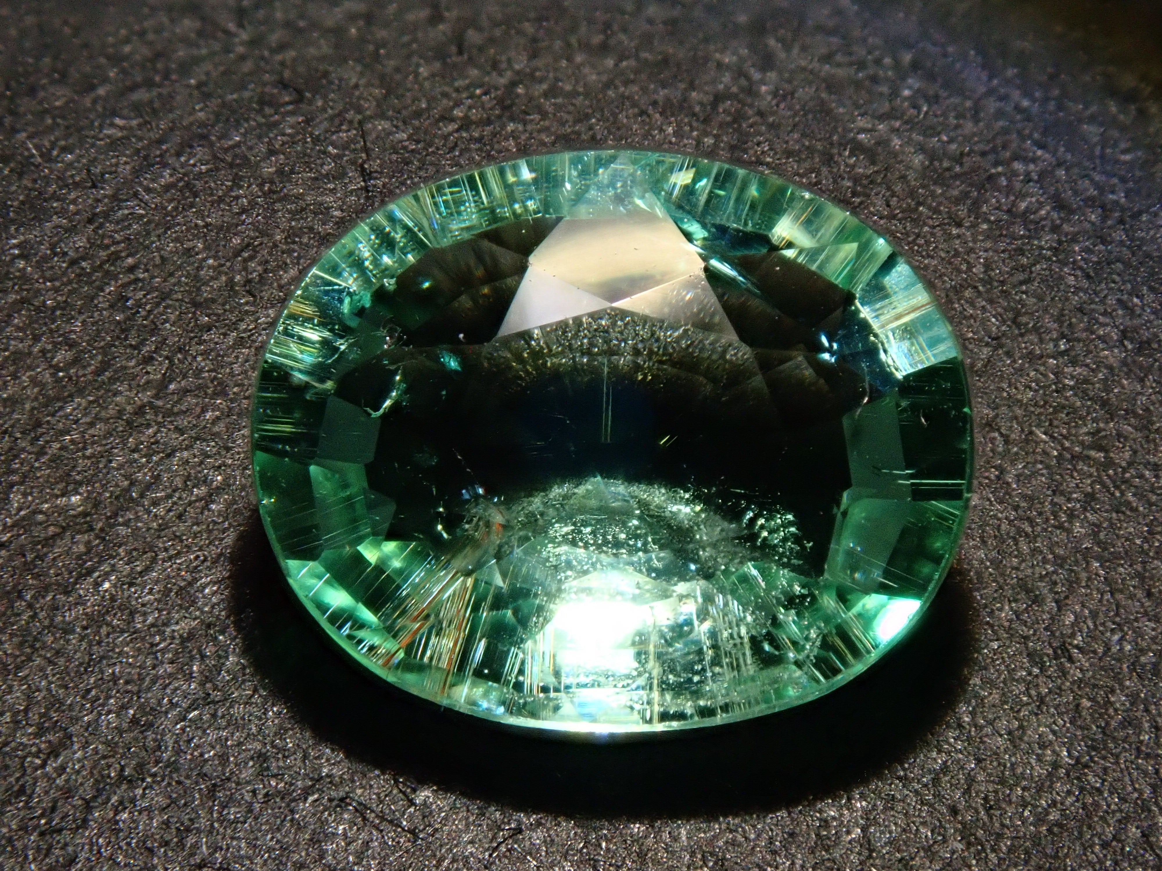 這是一顆近1.5克拉的大顆帕拉伊巴碧璽,透明度極高,閃閃發光。
