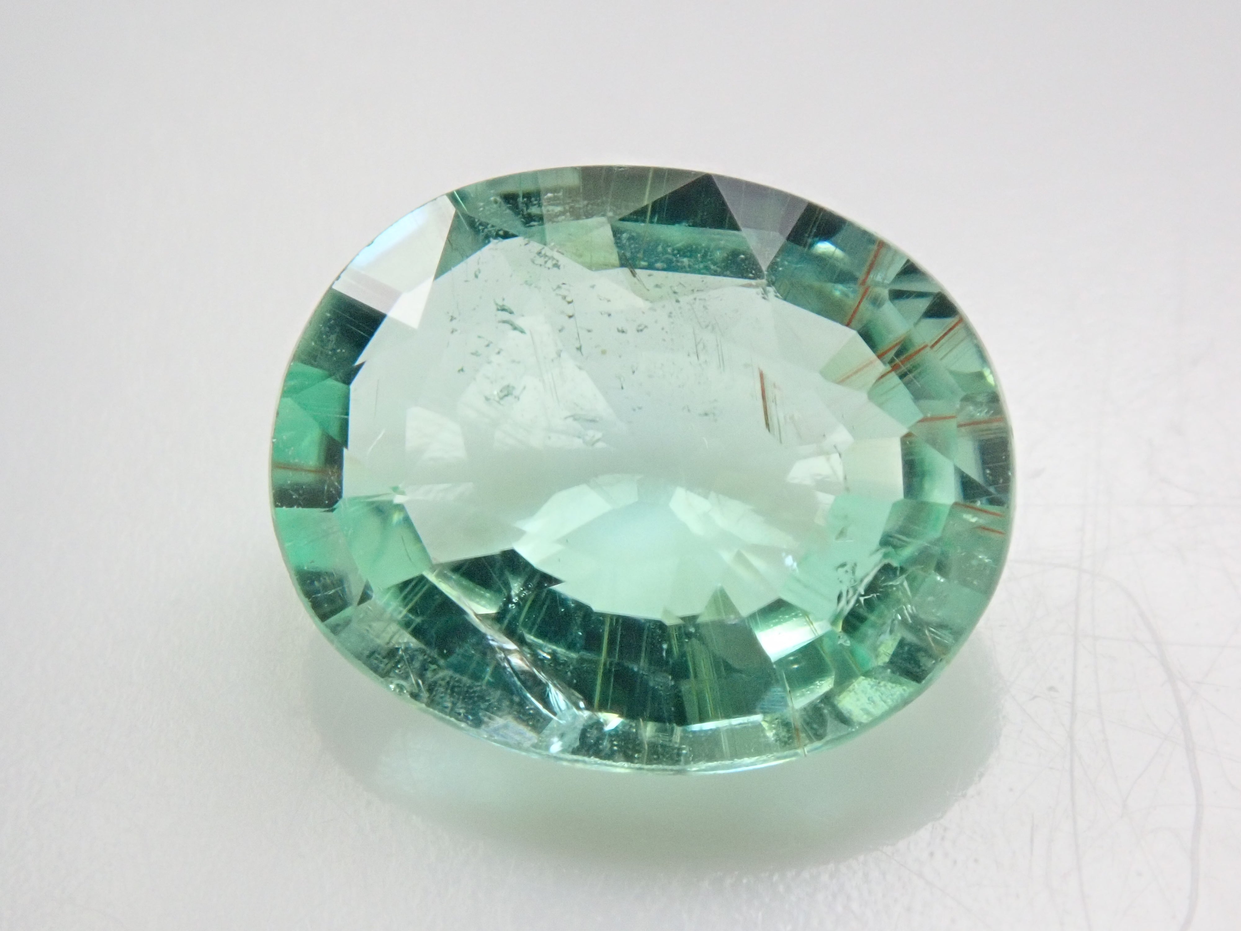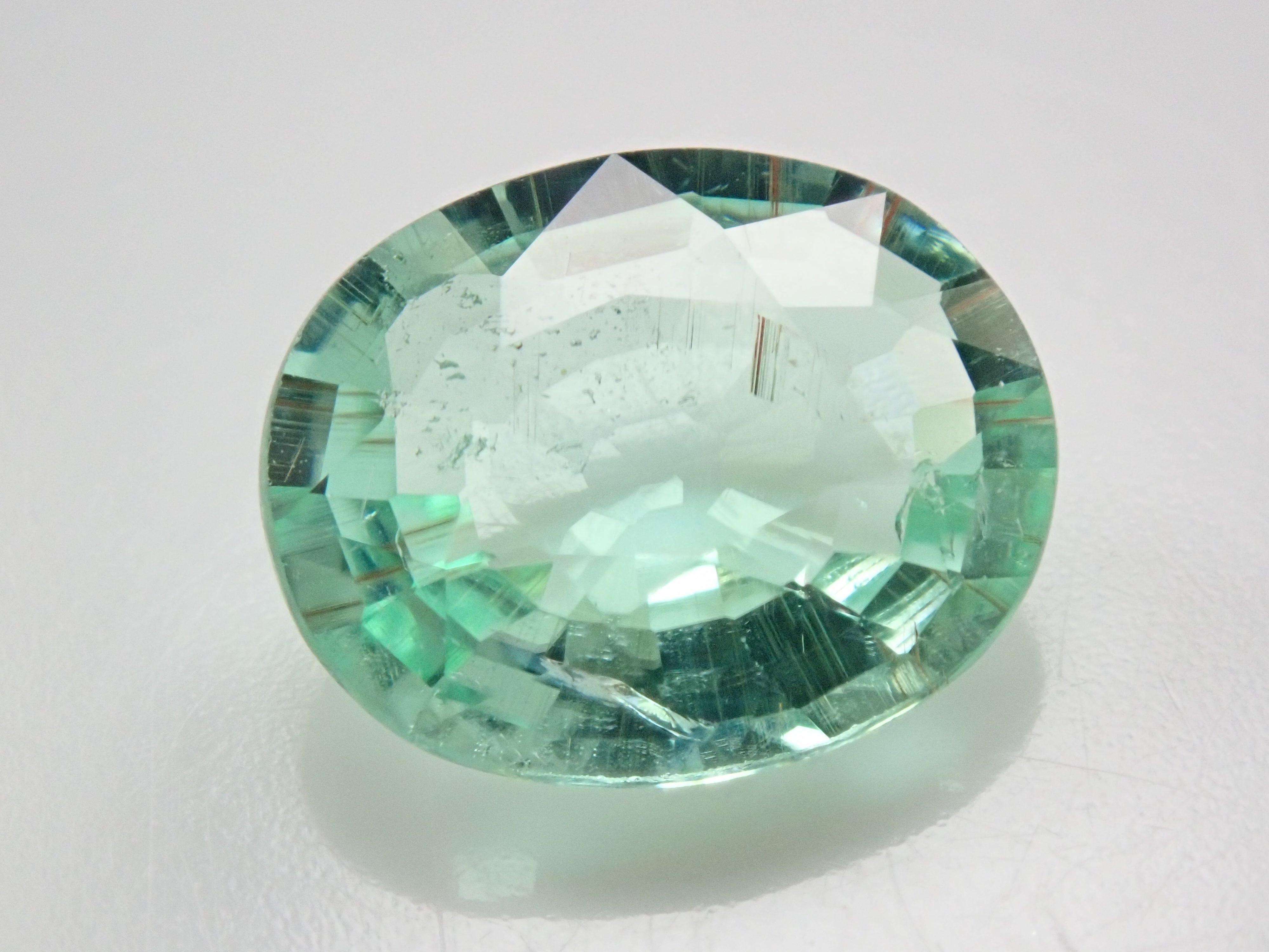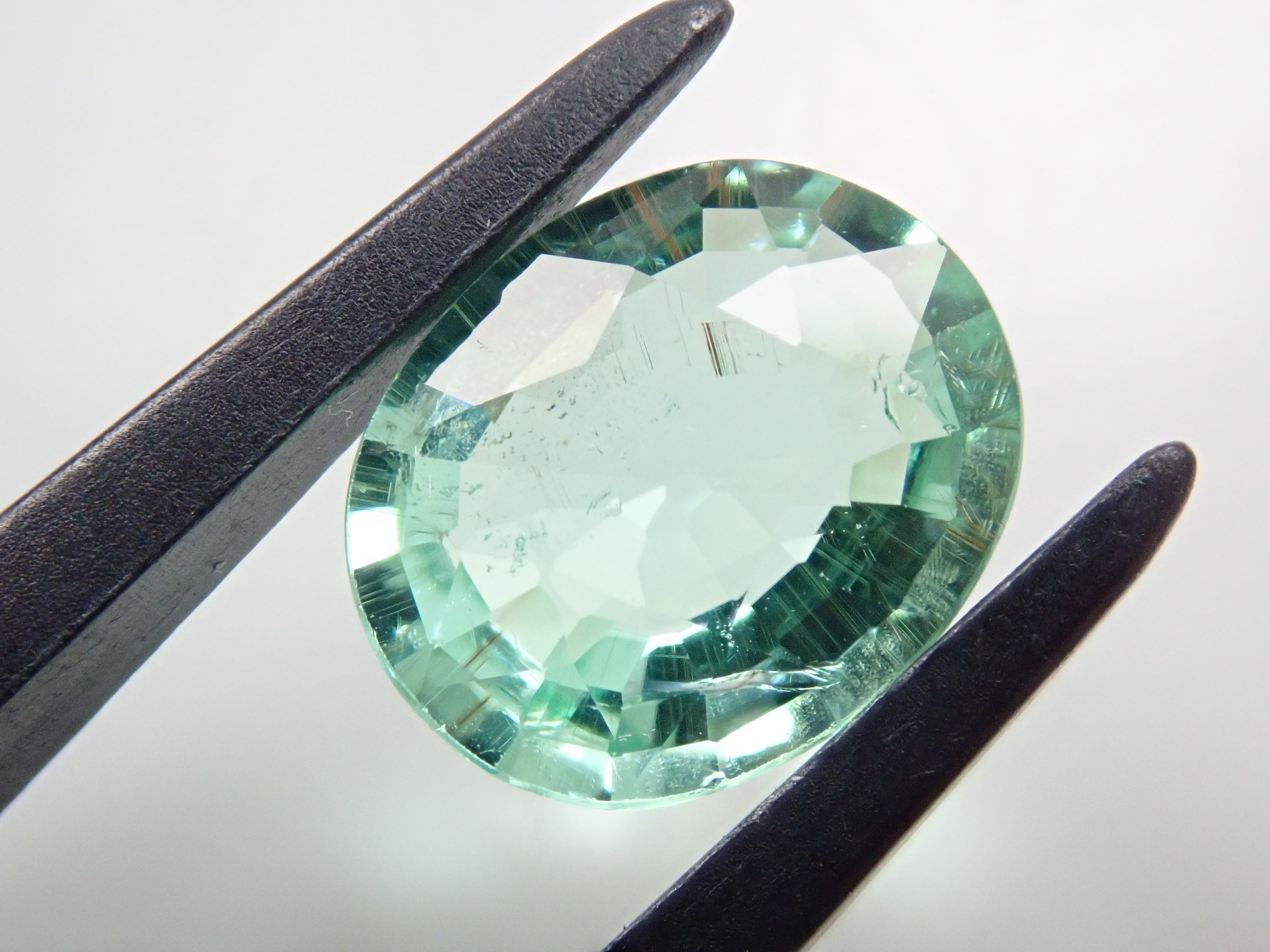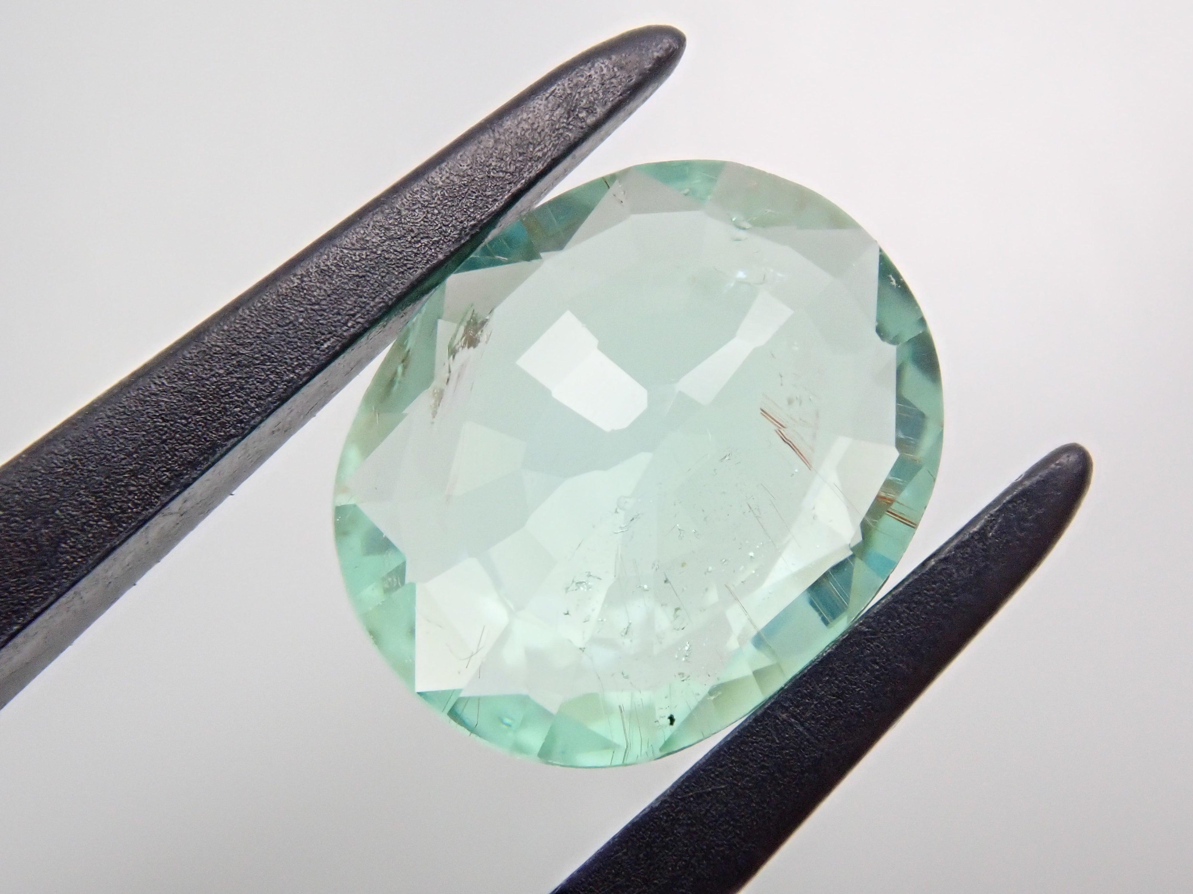 這是一顆近1.5克拉的大顆帕拉伊巴碧璽,透明度極高,閃閃發光。