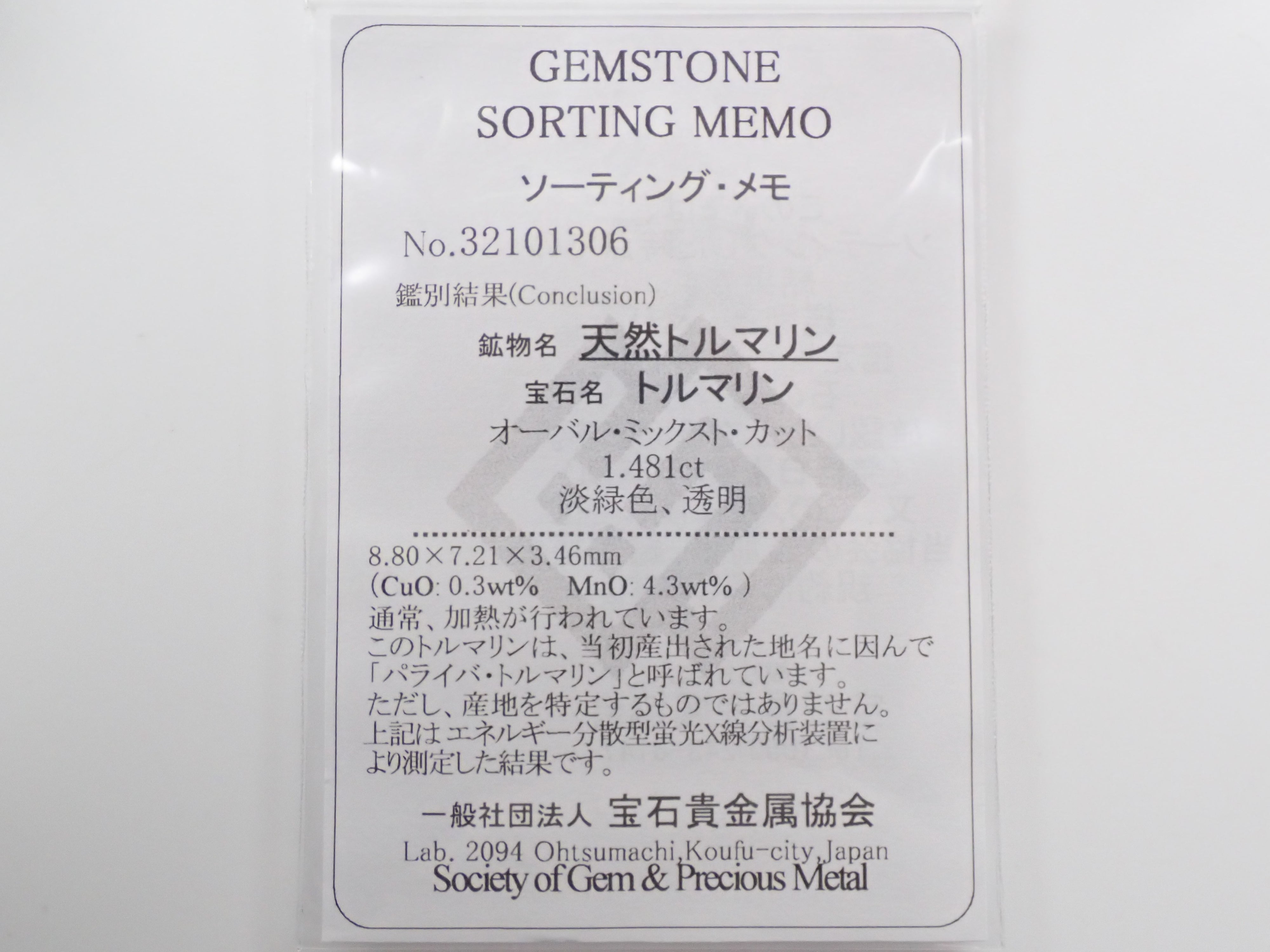 它經過日本珠寶商和貴金屬協會的分類。