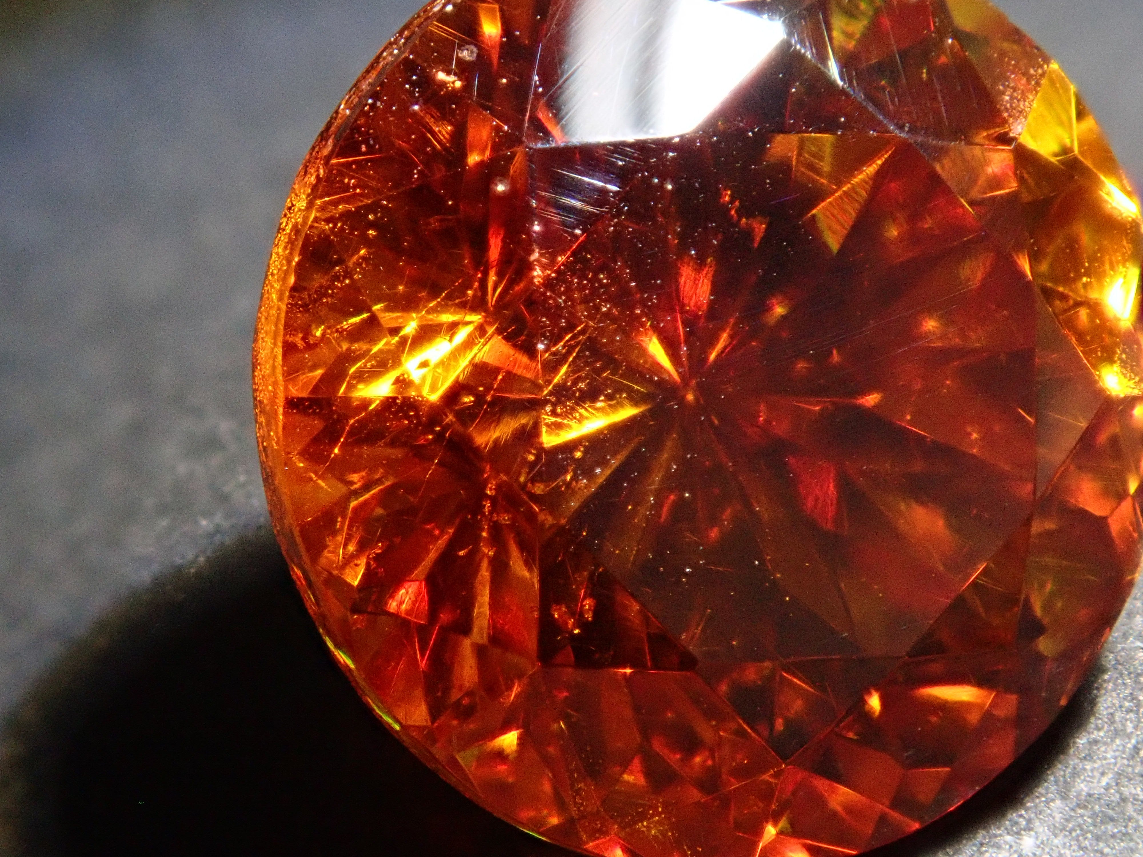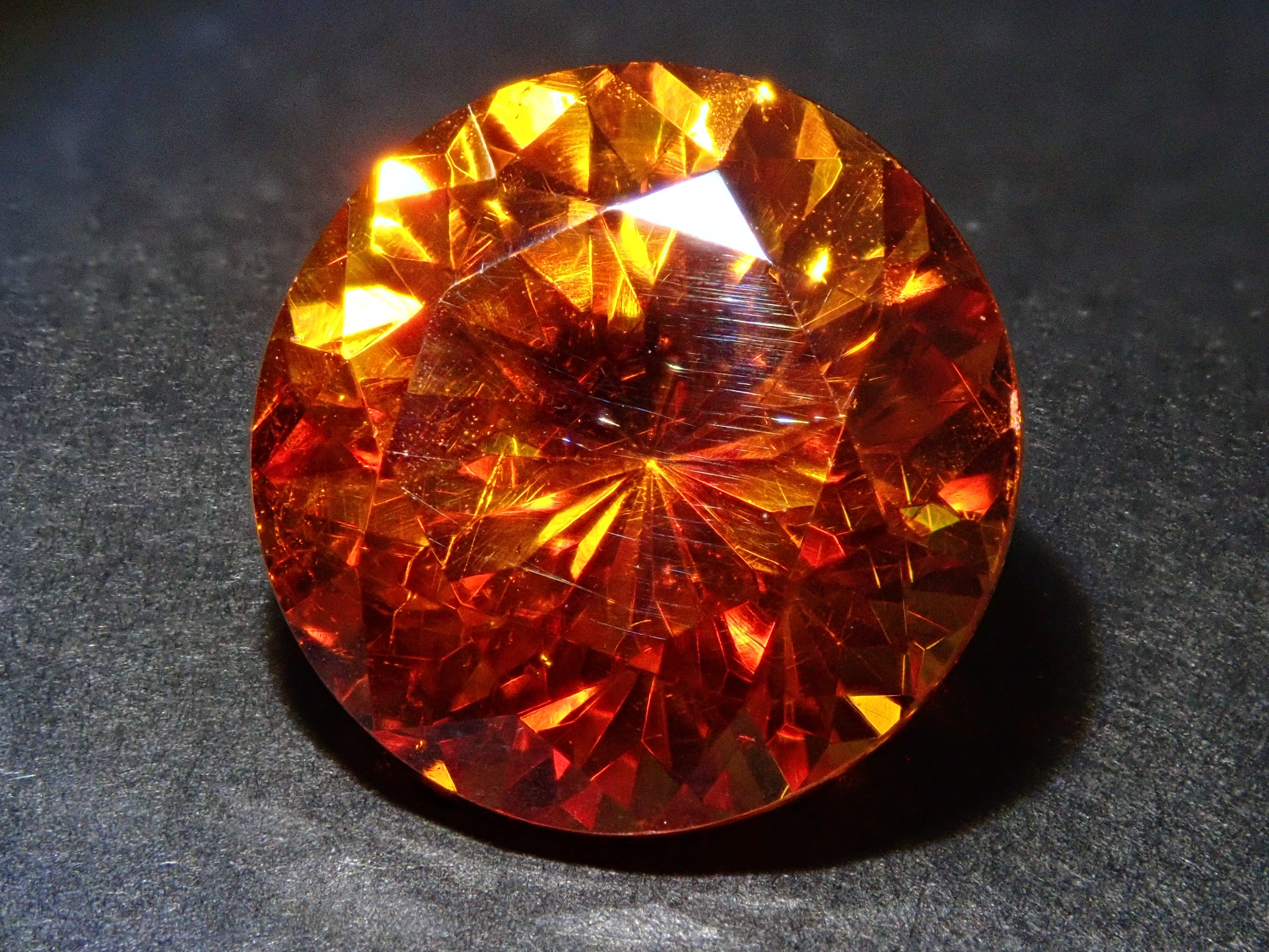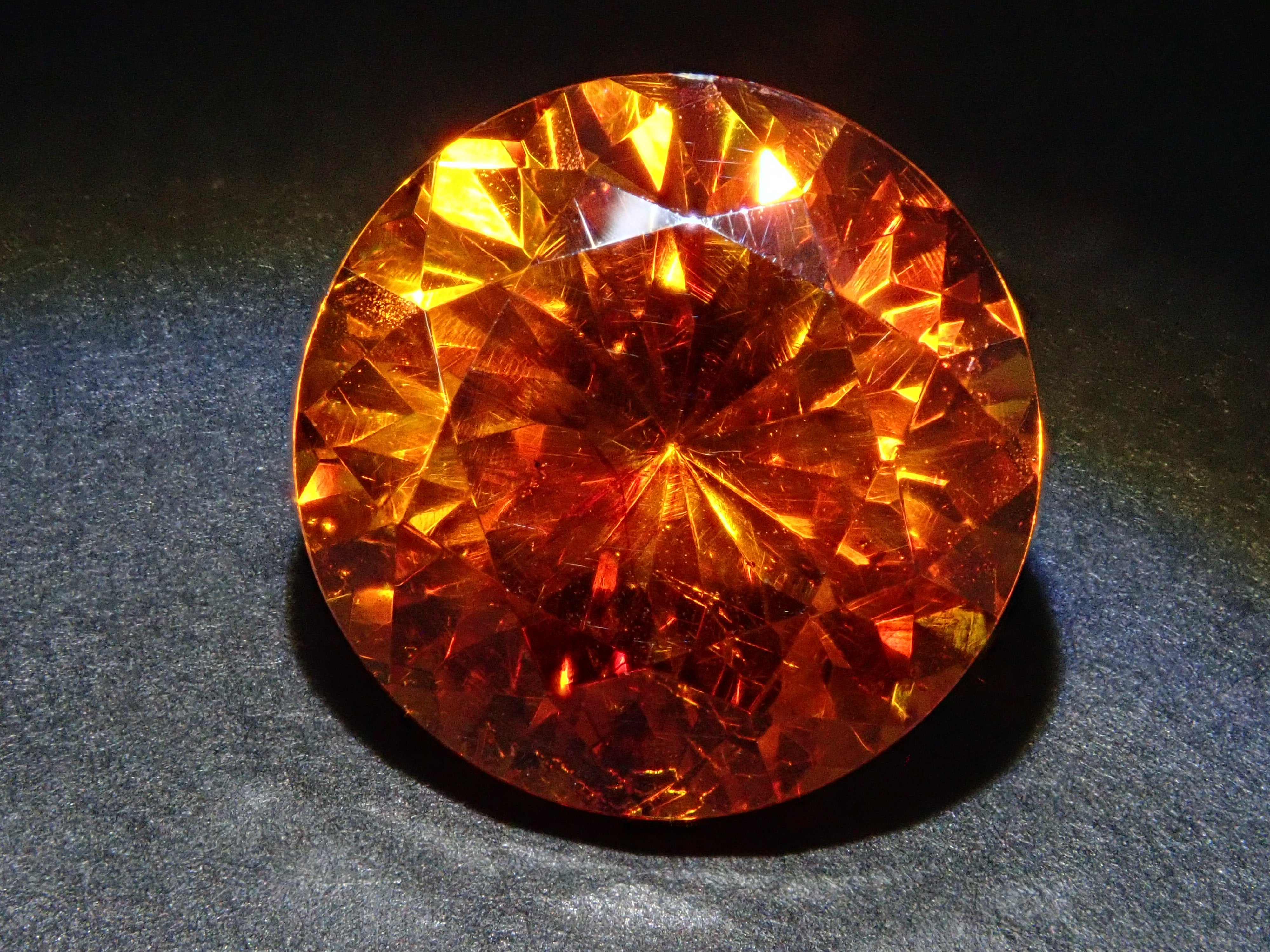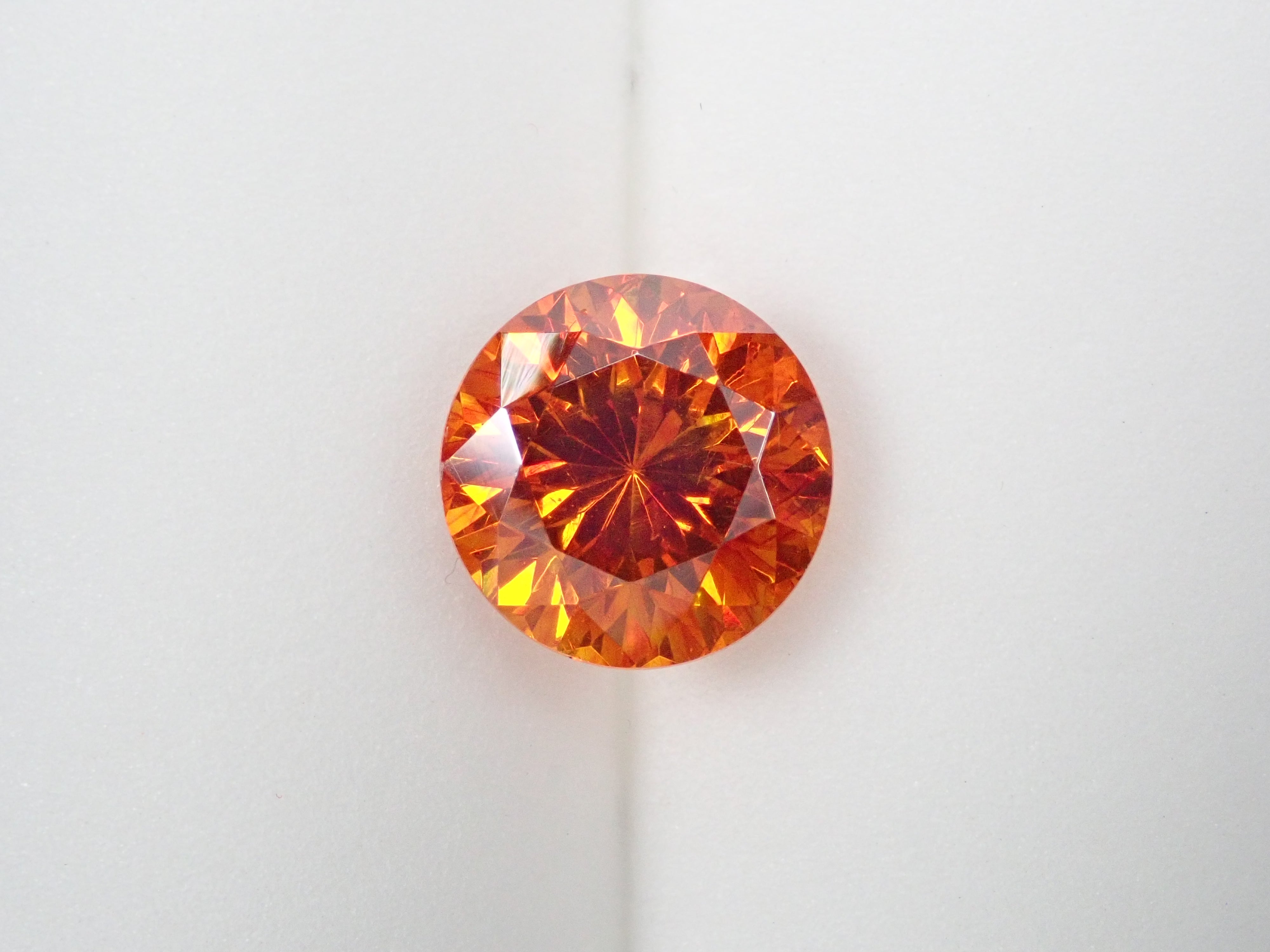 閃鋅礦的色散率接近鑽石的四倍,並呈現出絢麗的火彩。據說是流通量很小、市場上數量不多的稀有寶石之一。底色有黃、橙、綠等,在火中可以欣賞到黃、棕、橙、紅、綠等各種顏色。這是一顆圓形切割的 10 毫米閃鋅礦。這是一種可以用火來欣賞的優質閃鋅礦。