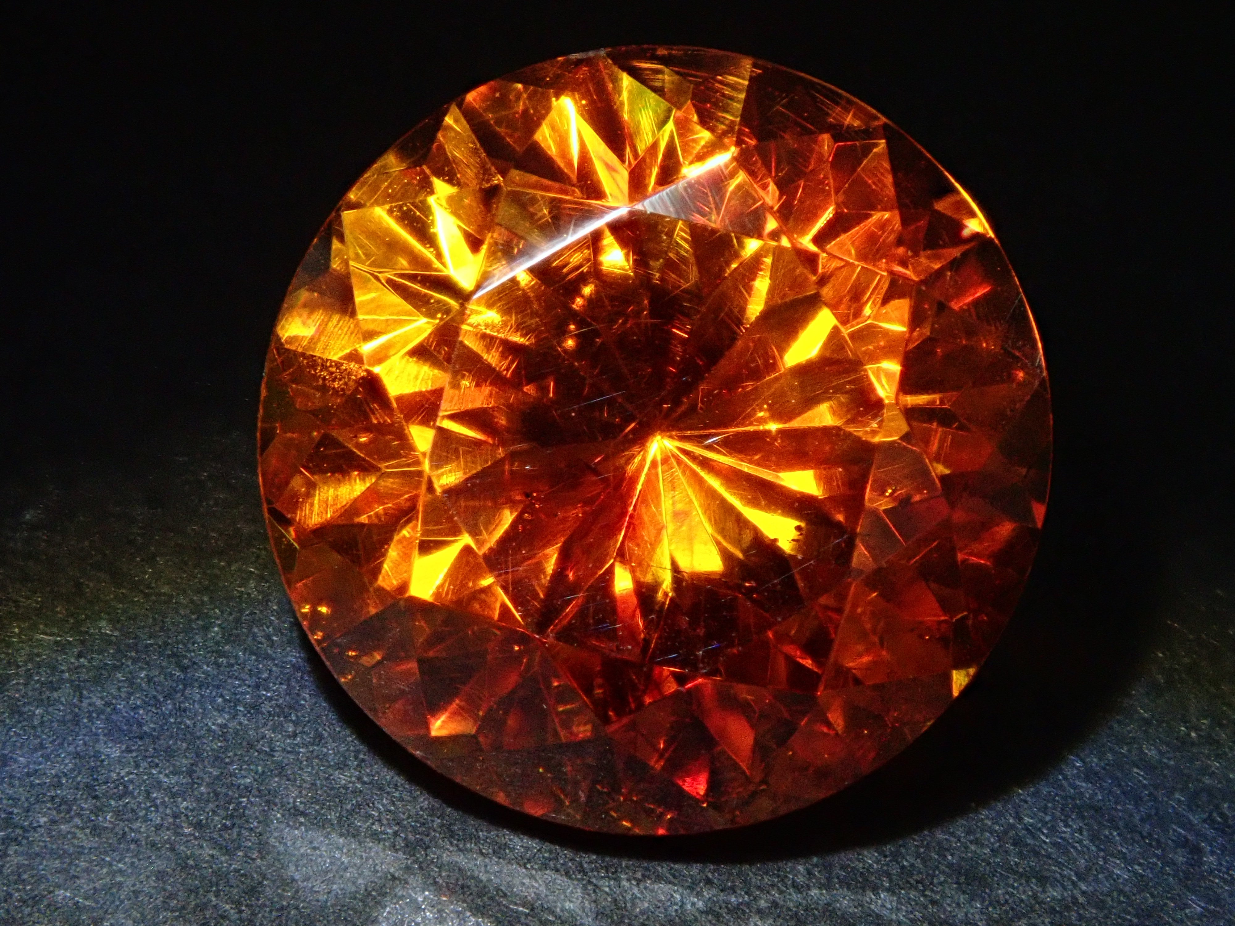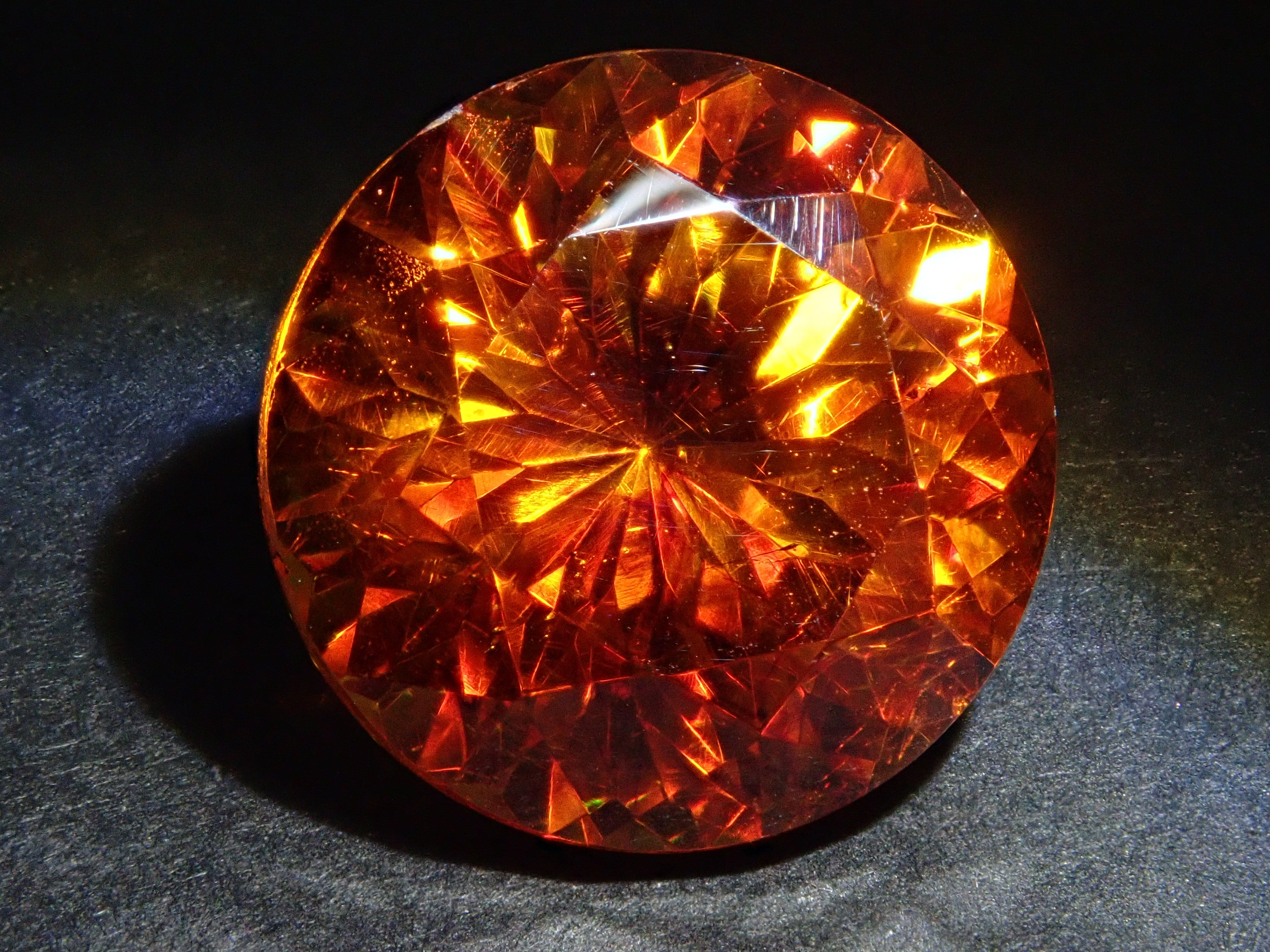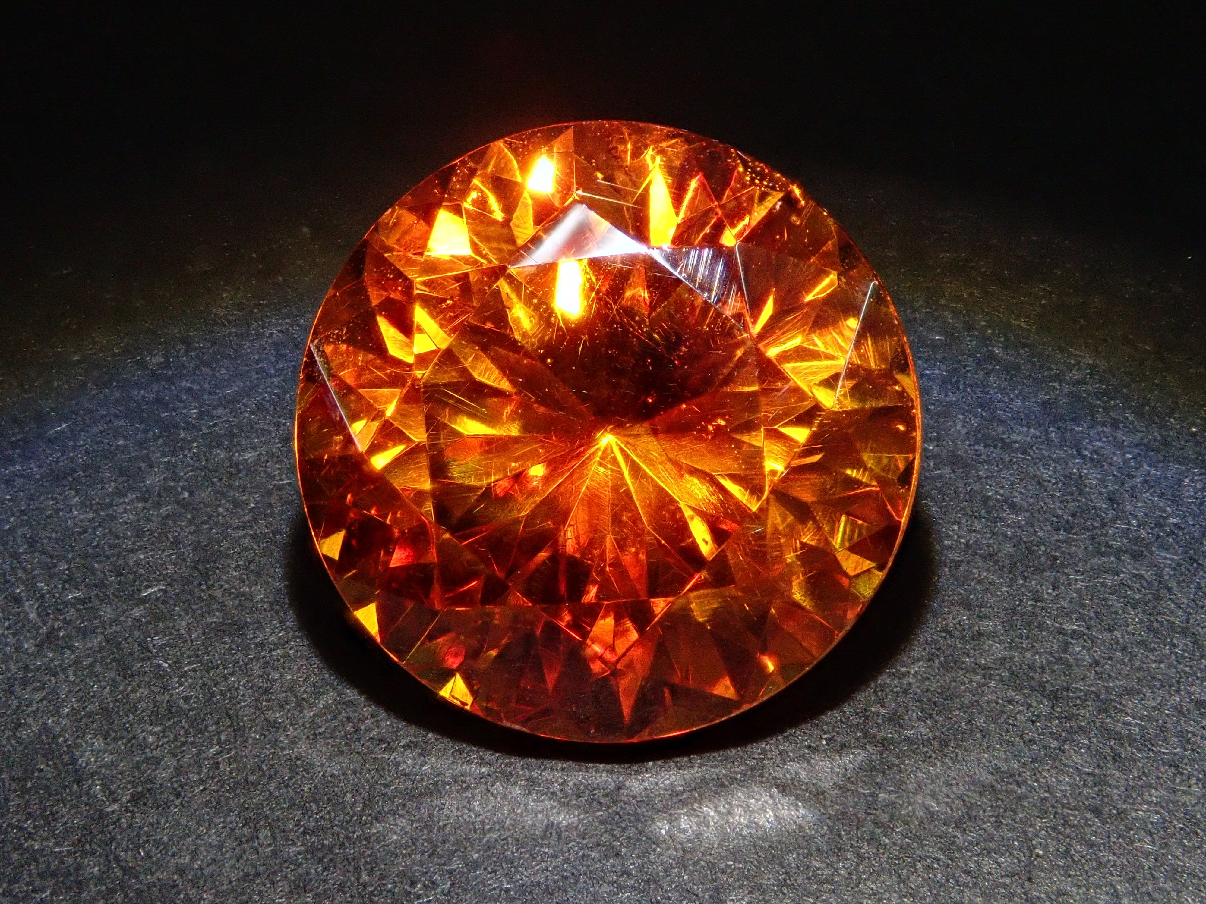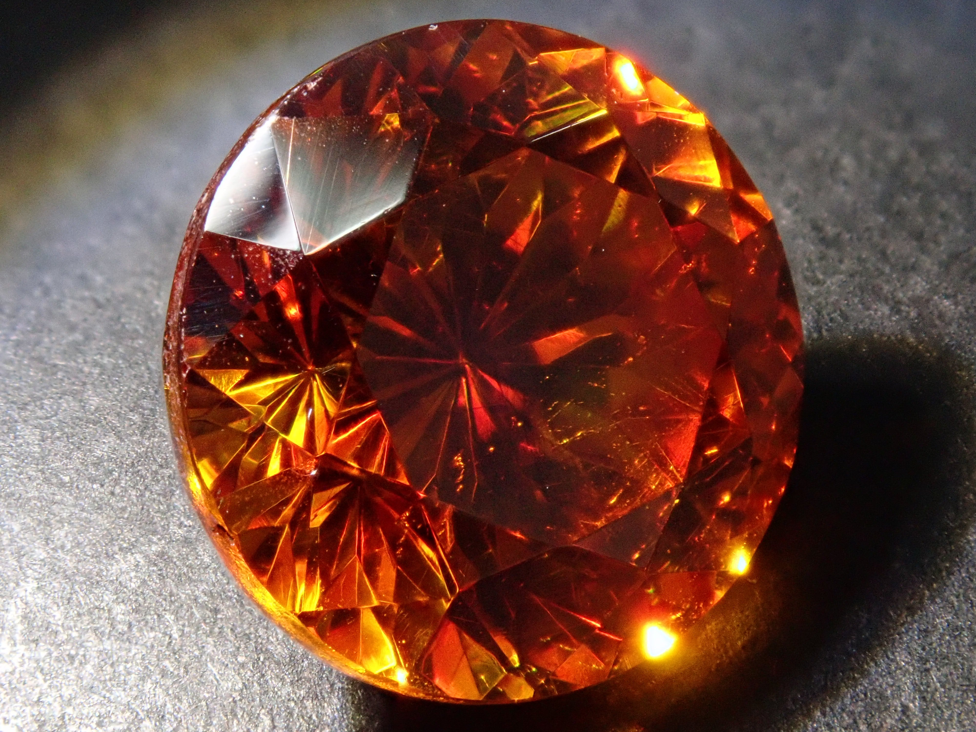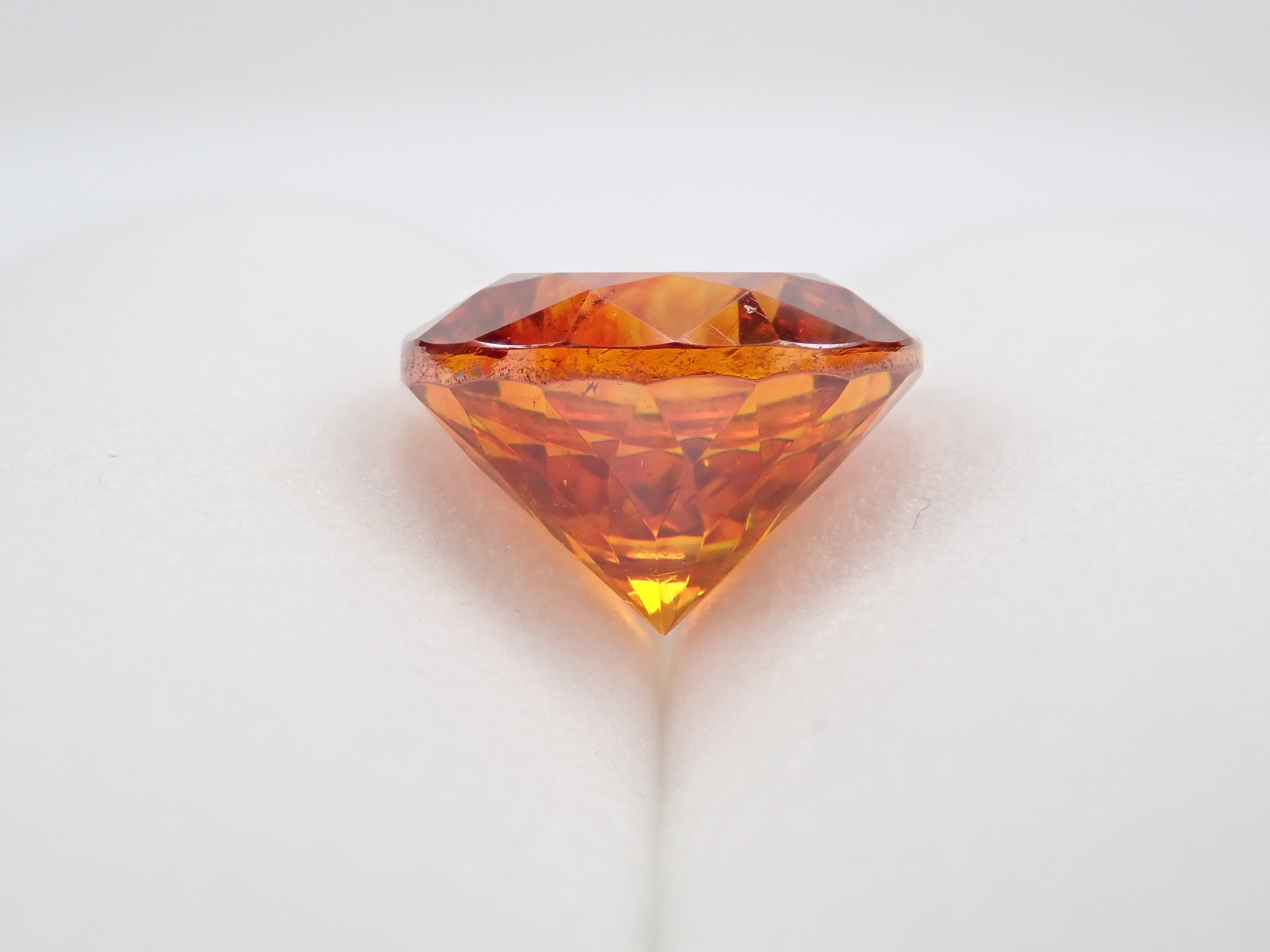 閃鋅礦的色散率接近鑽石的四倍,並呈現出絢麗的火彩。據說是流通量很小、市場上數量不多的稀有寶石之一。底色有黃、橙、綠等,在火中可以欣賞到黃、棕、橙、紅、綠等各種顏色。這是一顆圓形切割的 10 毫米閃鋅礦。這是一種可以用火來欣賞的優質閃鋅礦。