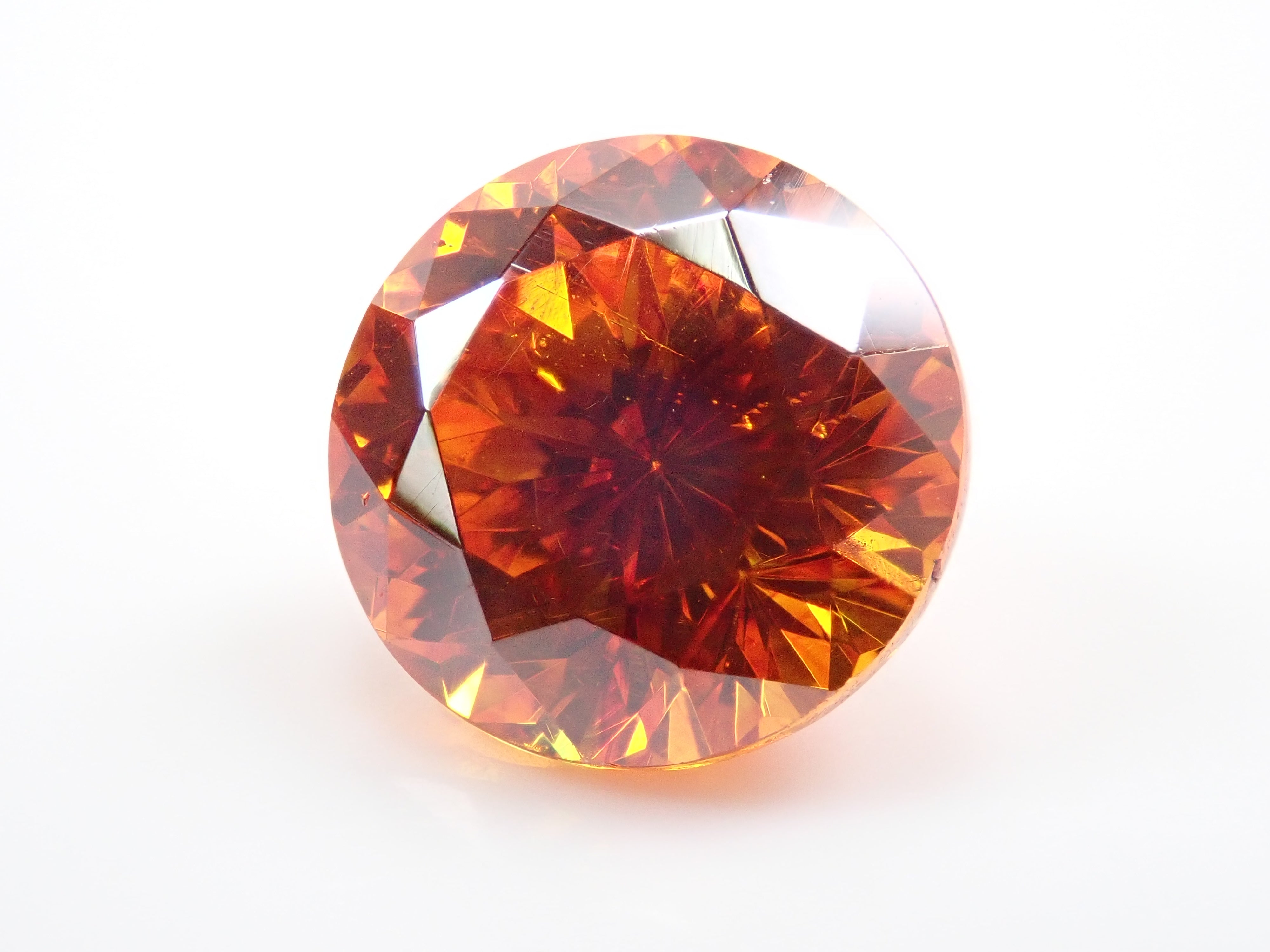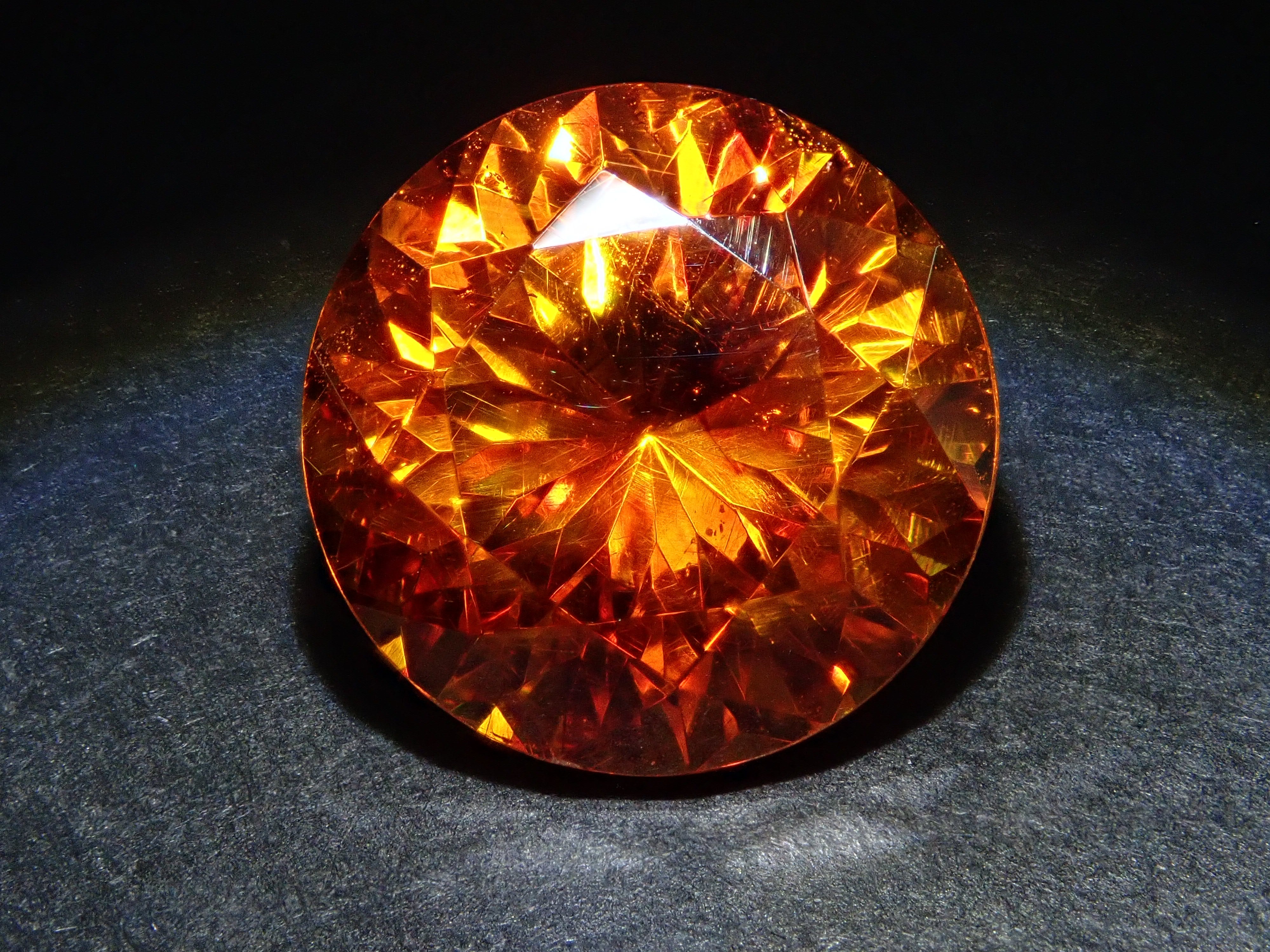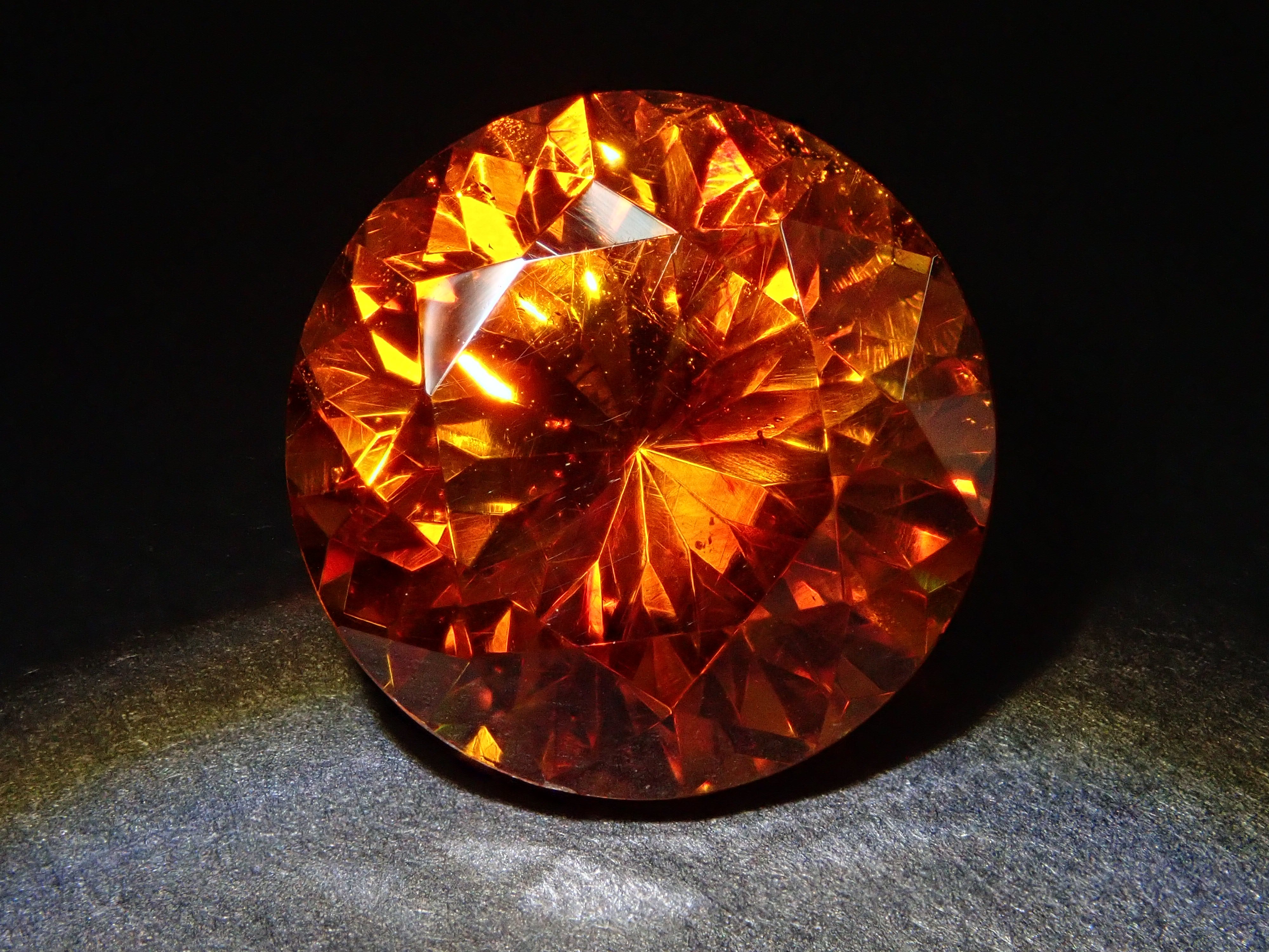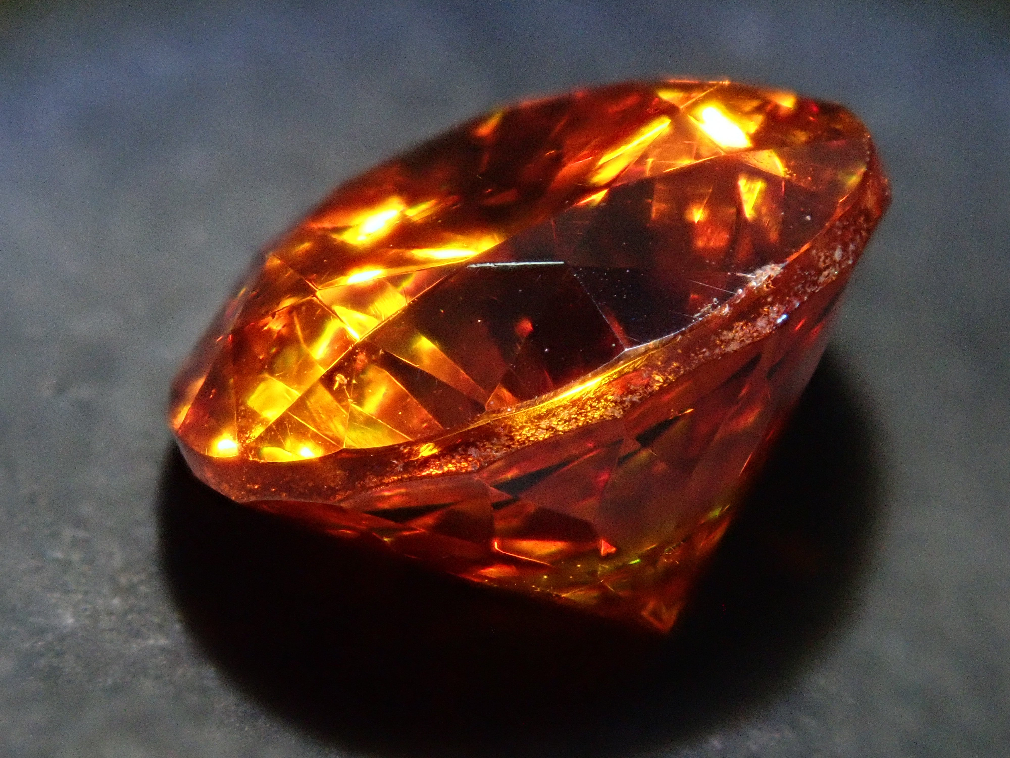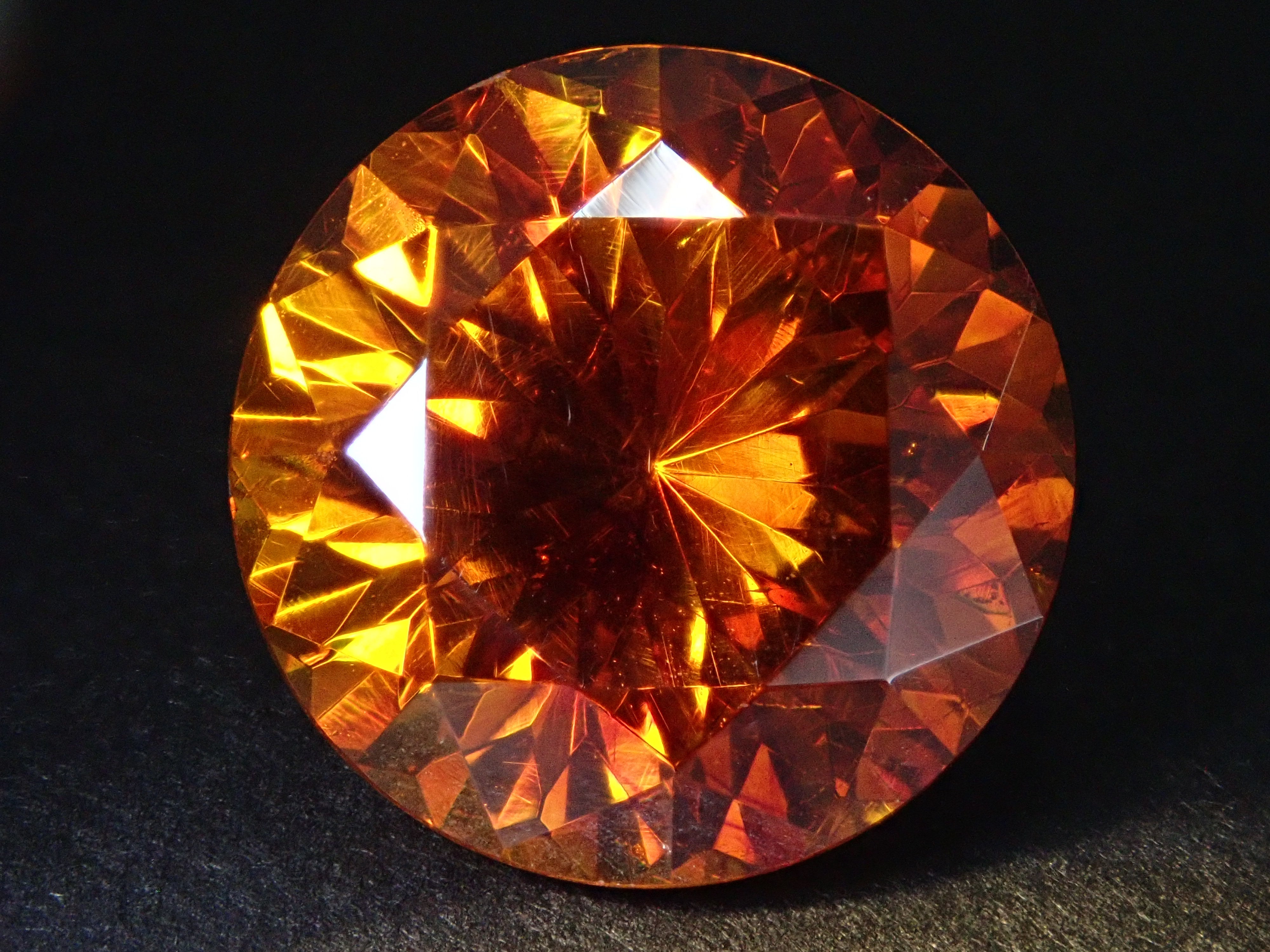 閃鋅礦的色散率接近鑽石的四倍,並呈現出絢麗的火彩。據說是流通量很小、市場上數量不多的稀有寶石之一。底色有黃、橙、綠等,在火中可以欣賞到黃、棕、橙、紅、綠等各種顏色。這是一顆圓形切割的 10 毫米閃鋅礦。這是一種可以用火來欣賞的優質閃鋅礦。
