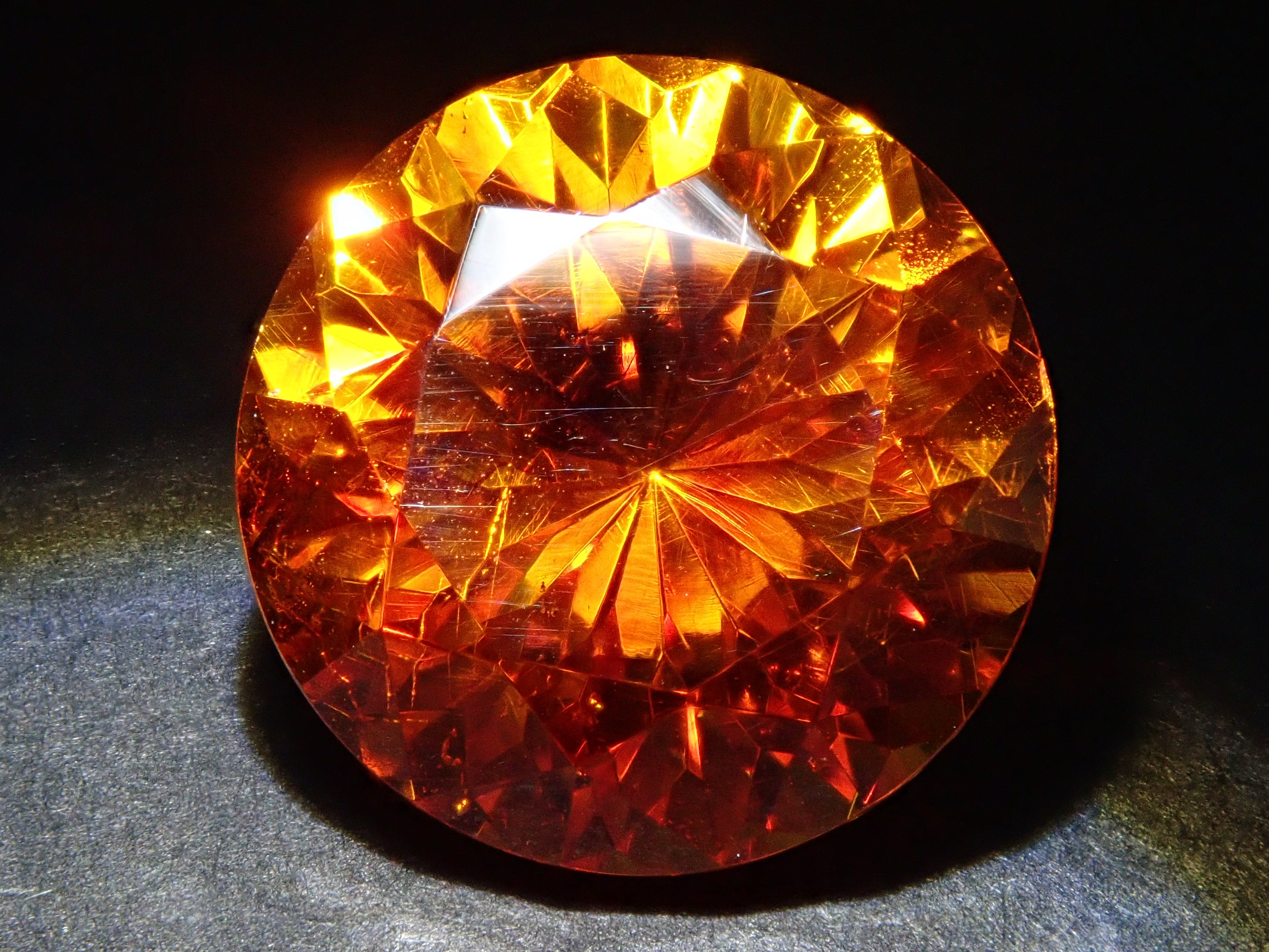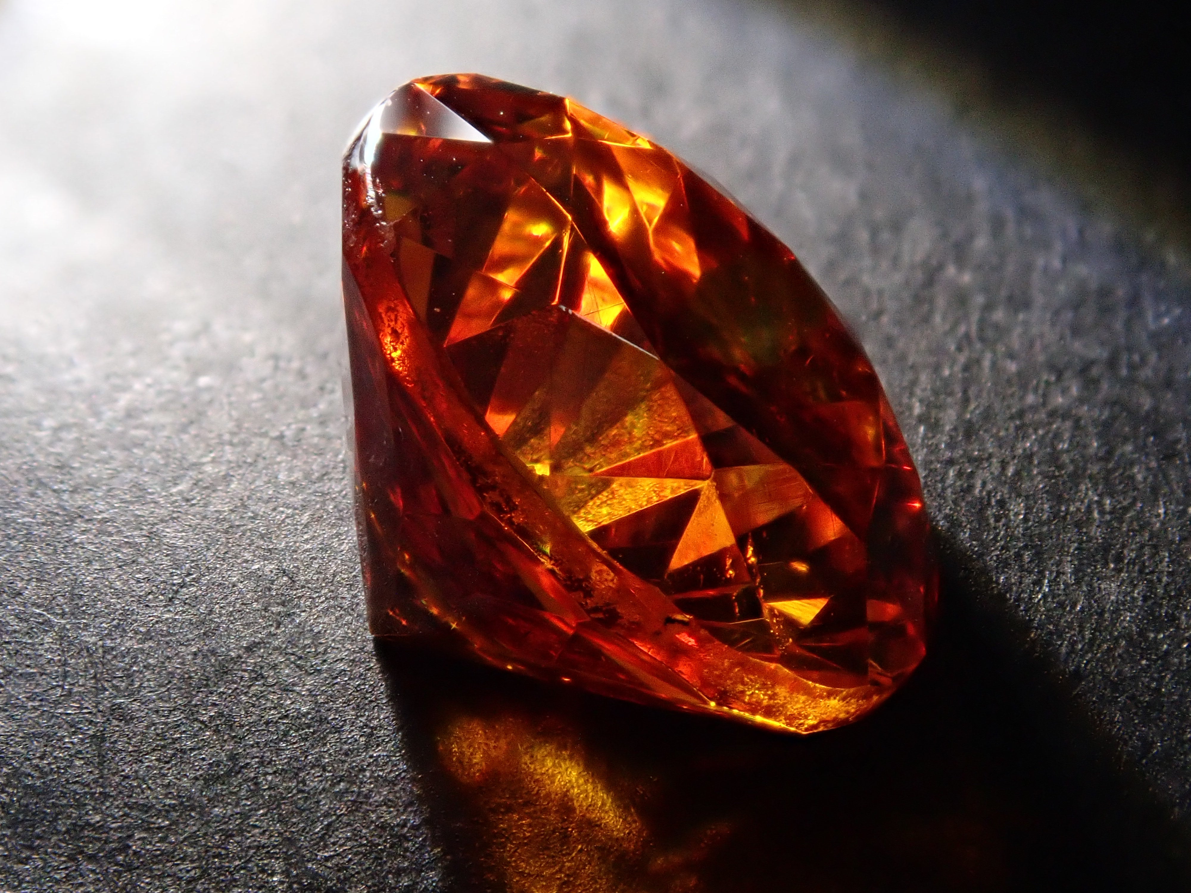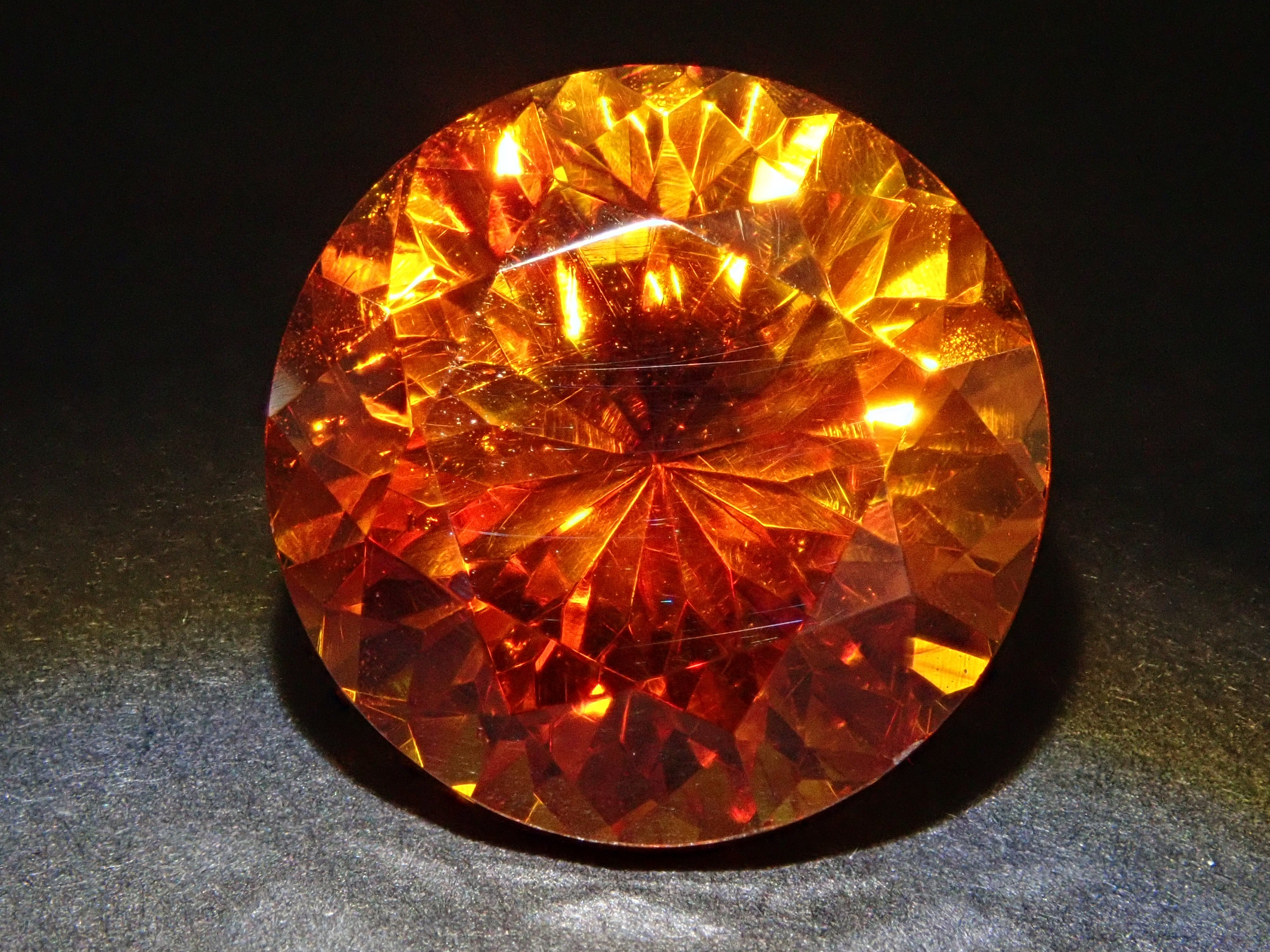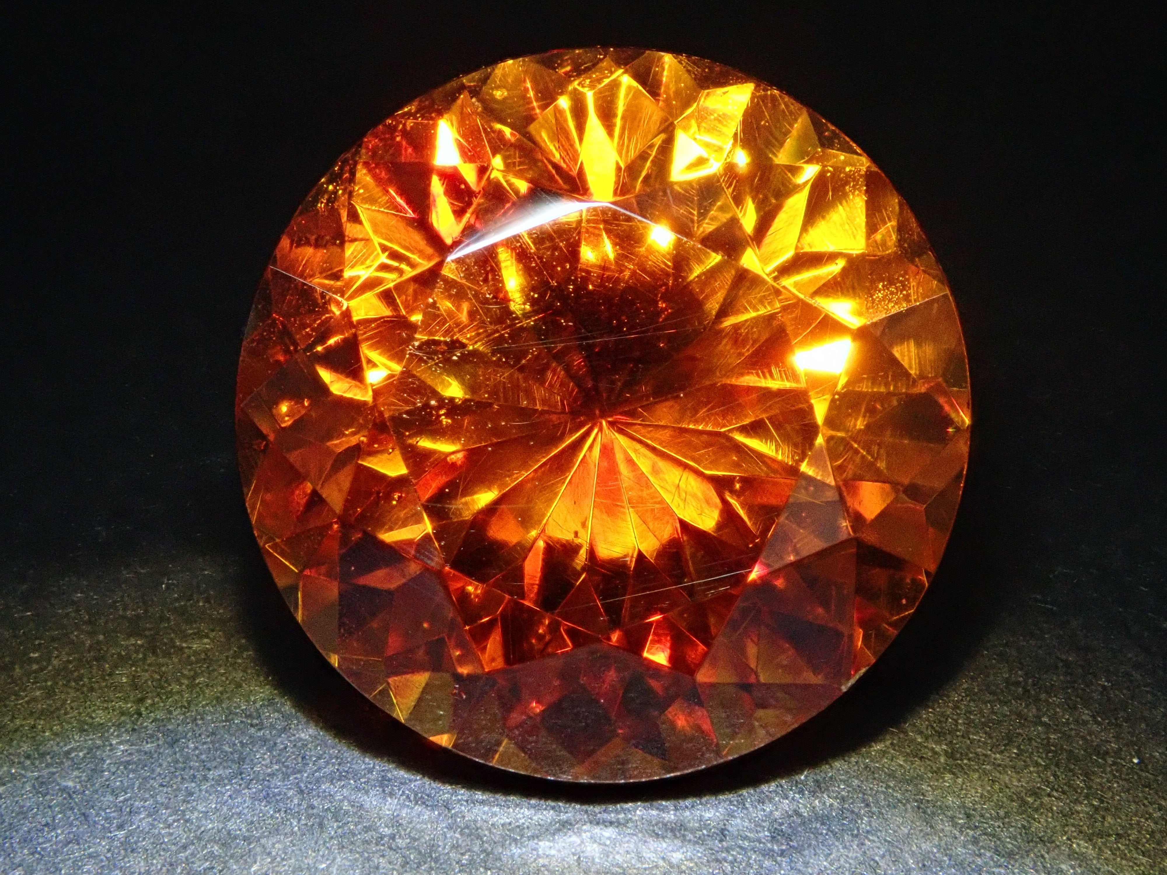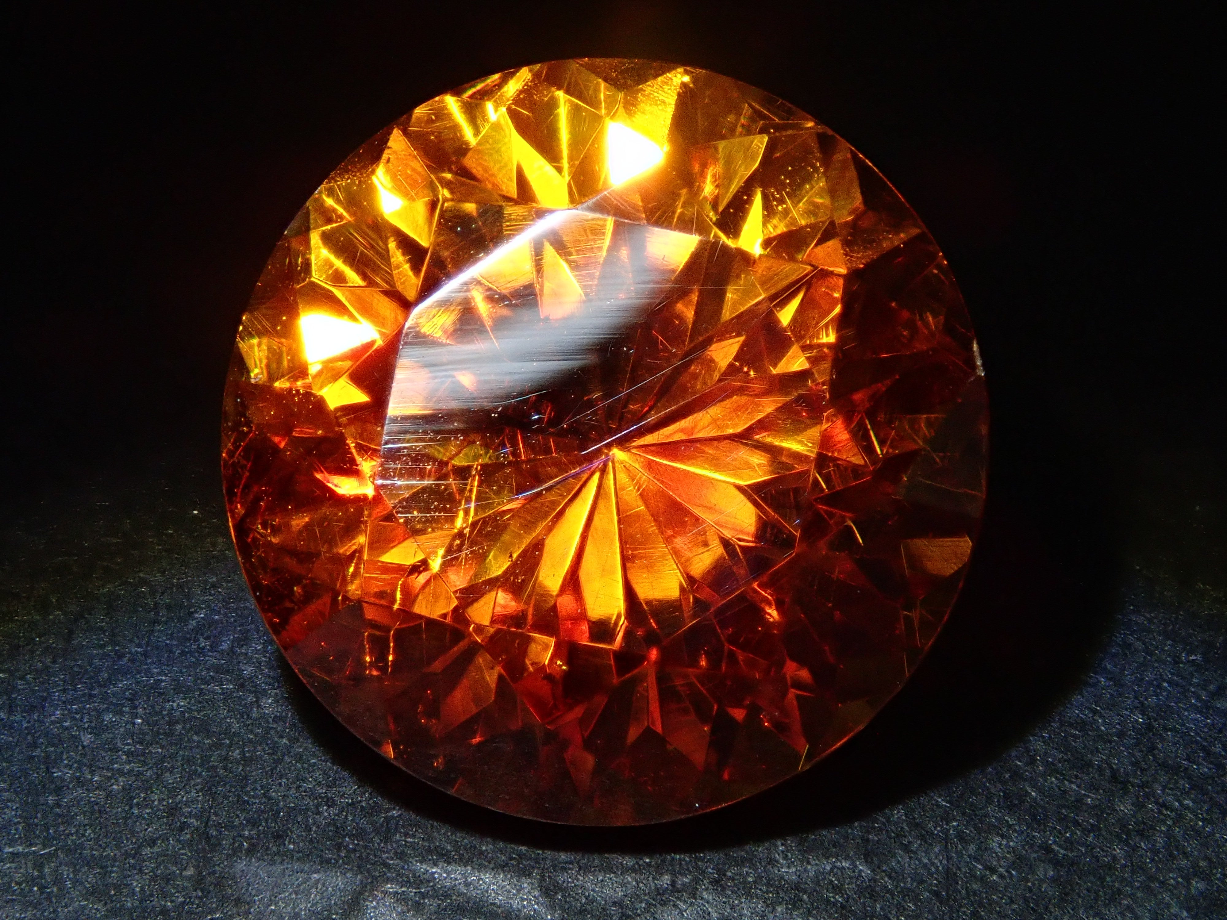閃鋅礦的色散率接近鑽石的四倍,並呈現出絢麗的火彩。據說是流通量很小、市場上數量不多的稀有寶石之一。底色有黃、橙、綠等,在火中可以欣賞到黃、棕、橙、紅、綠等各種顏色。這是一顆圓形切割的 10 毫米閃鋅礦。這是一種可以用火來欣賞的優質閃鋅礦。